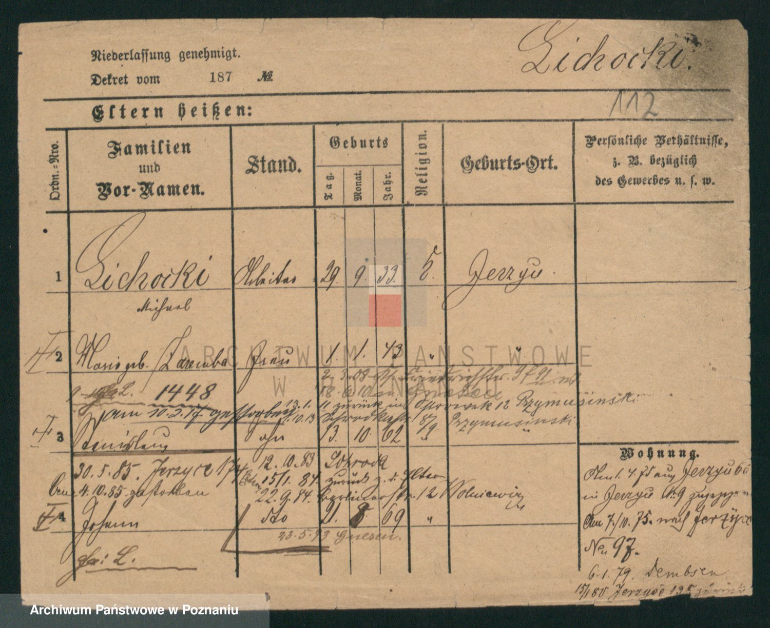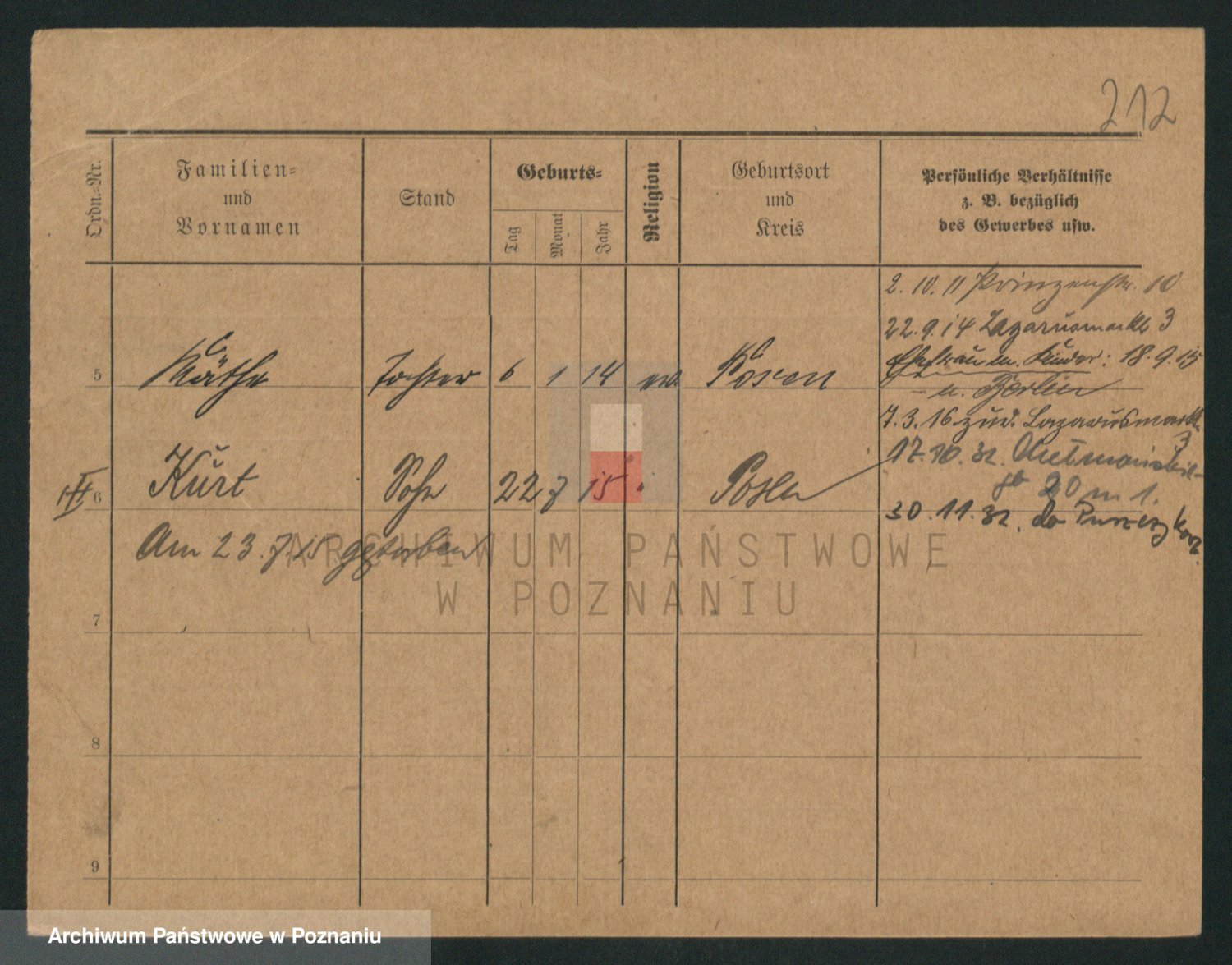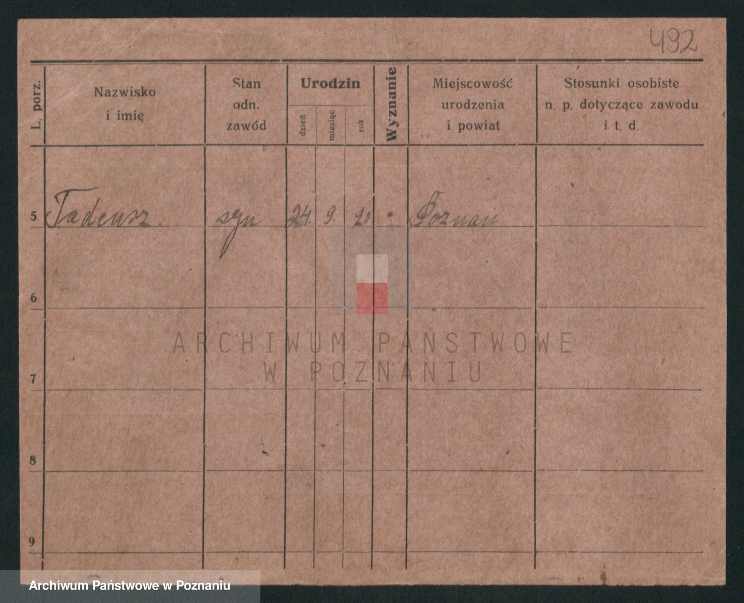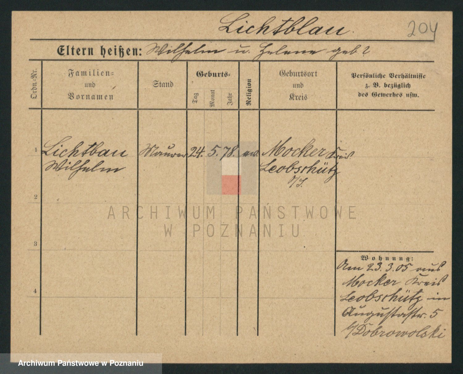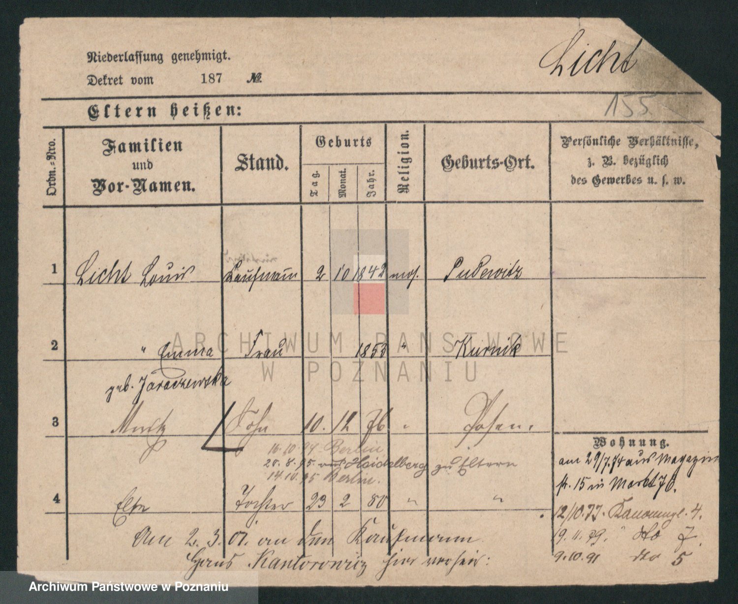 Podgląd karty osobowej dostępny jest po kliknięciu na nazwisko lub ikonkę karty. Można dokonywać powiększenia (ikony na górze) lub przechodzić między kolejnymi skanami (strzałki po bokach).