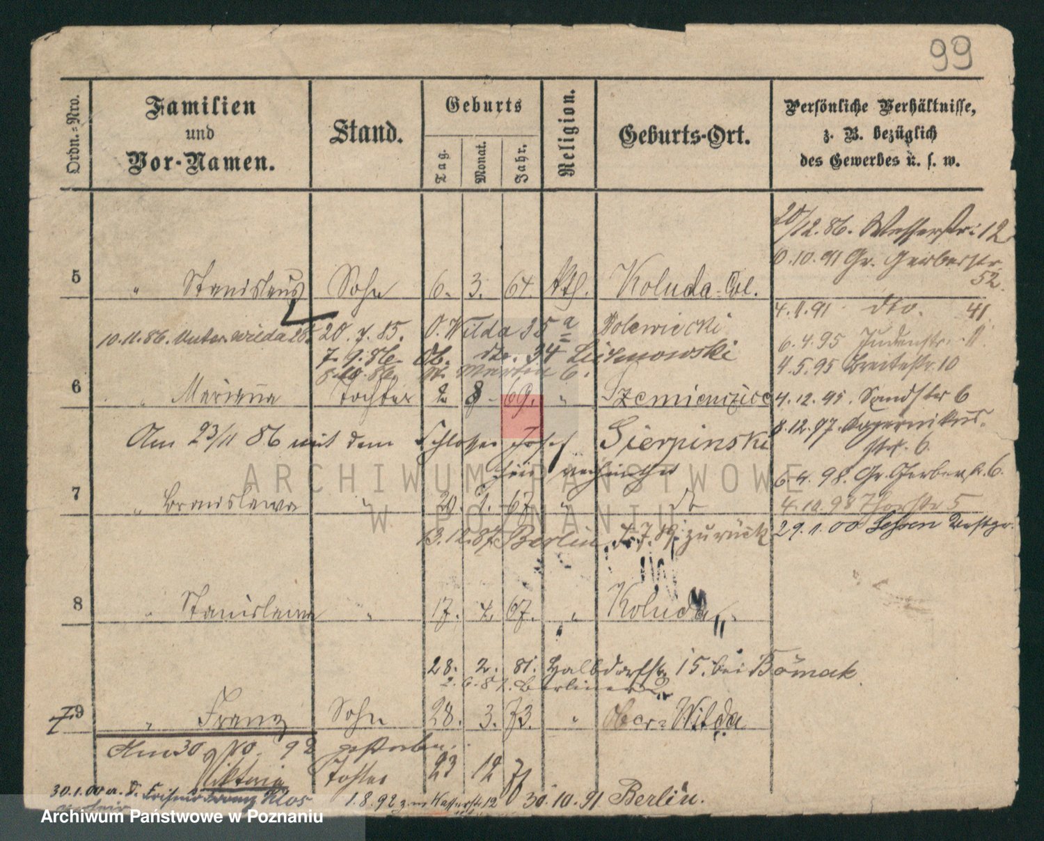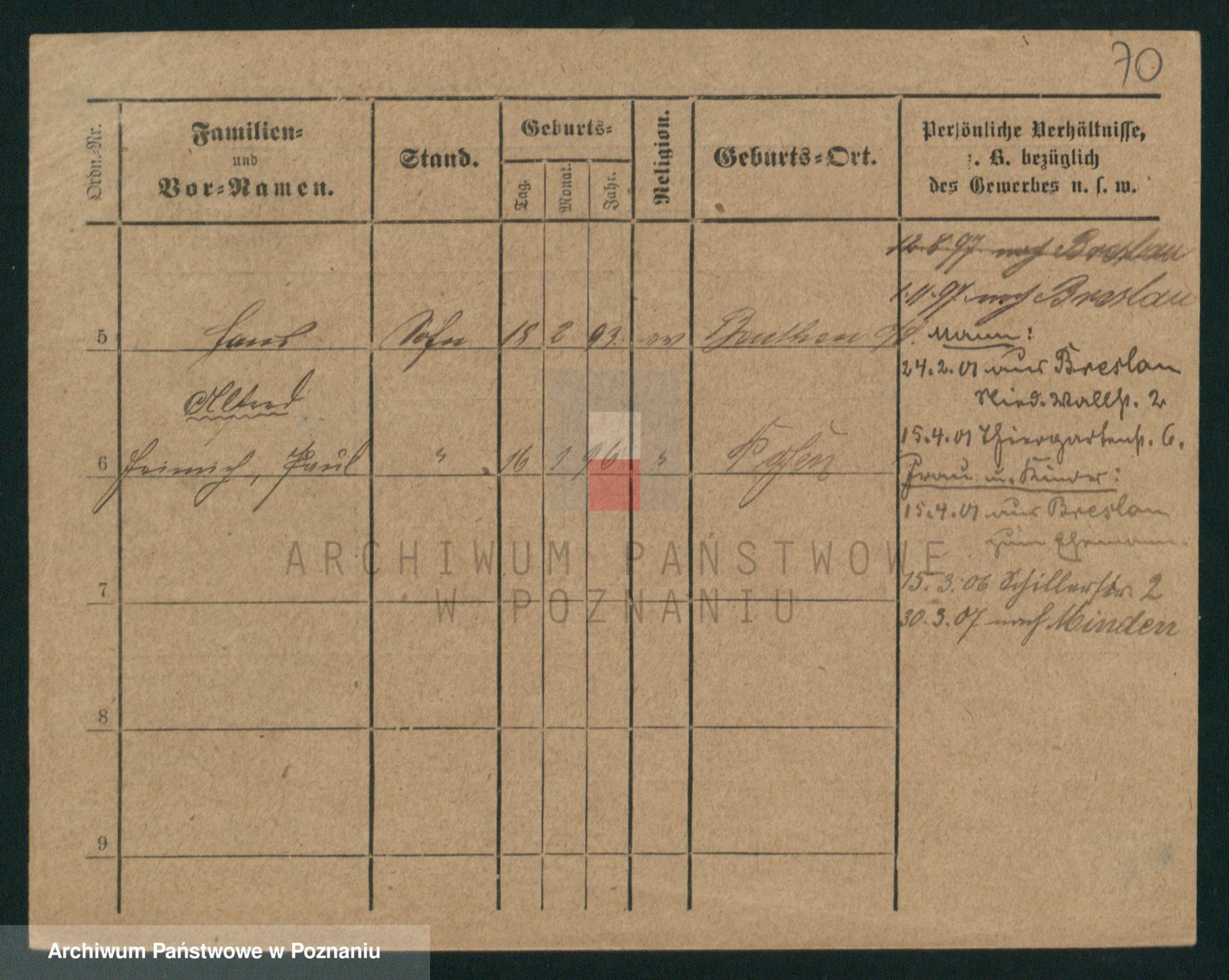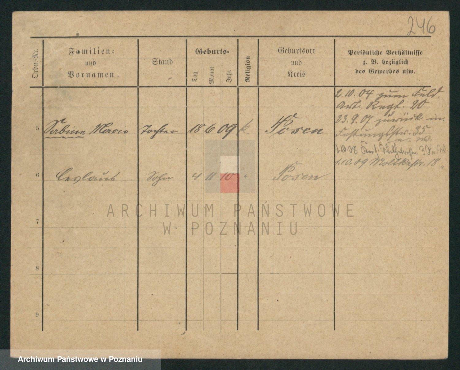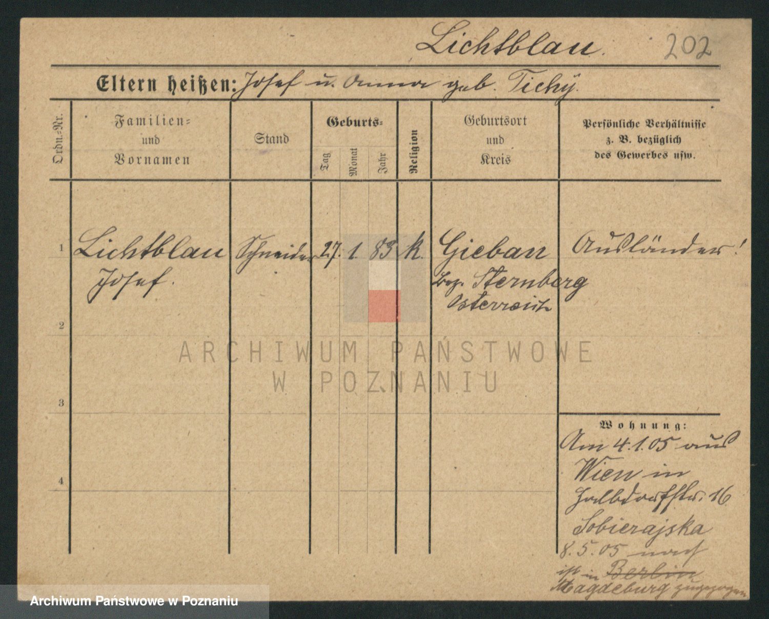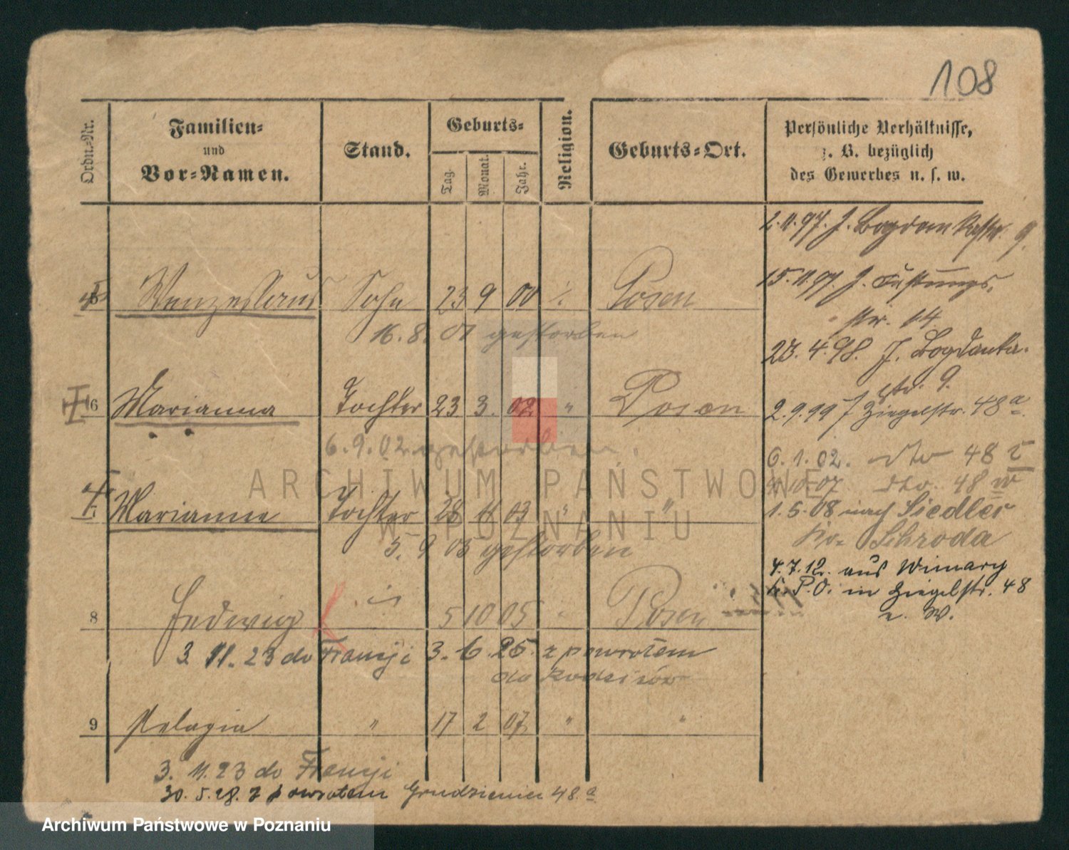 Podgląd karty osobowej dostępny jest po kliknięciu na nazwisko lub ikonkę karty. Można dokonywać powiększenia (ikony na górze) lub przechodzić między kolejnymi skanami (strzałki po bokach).