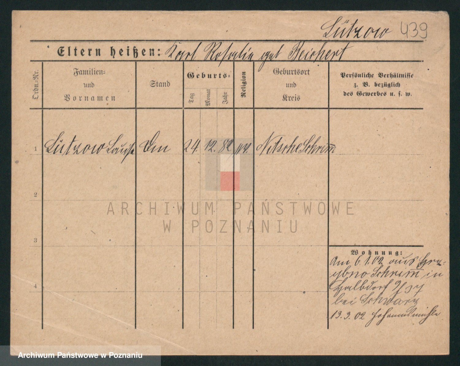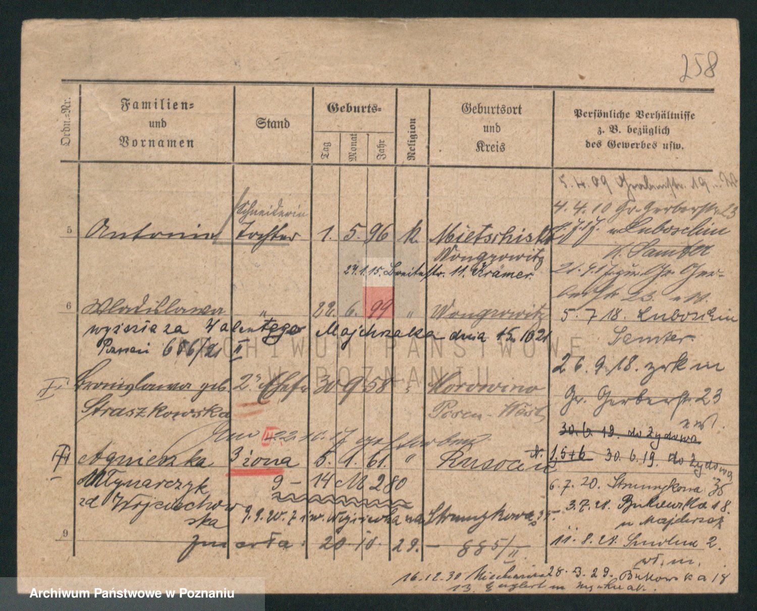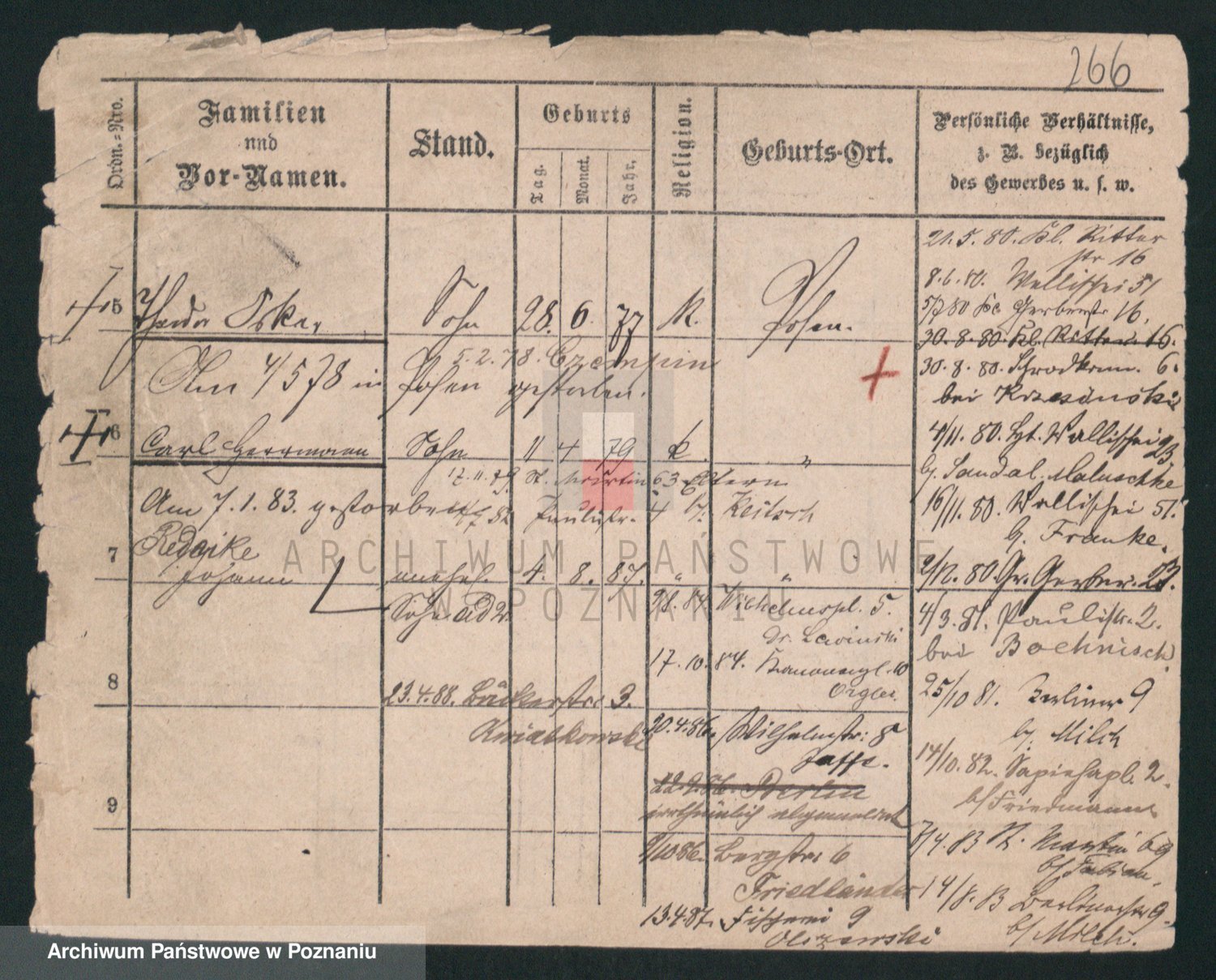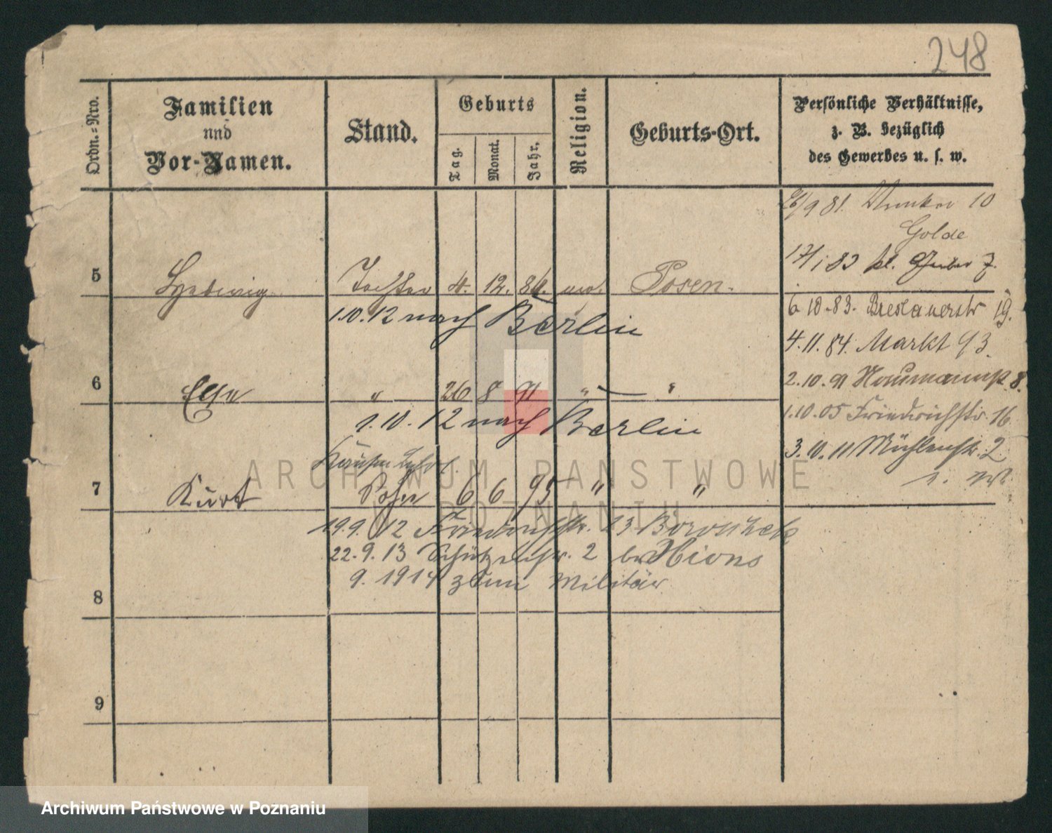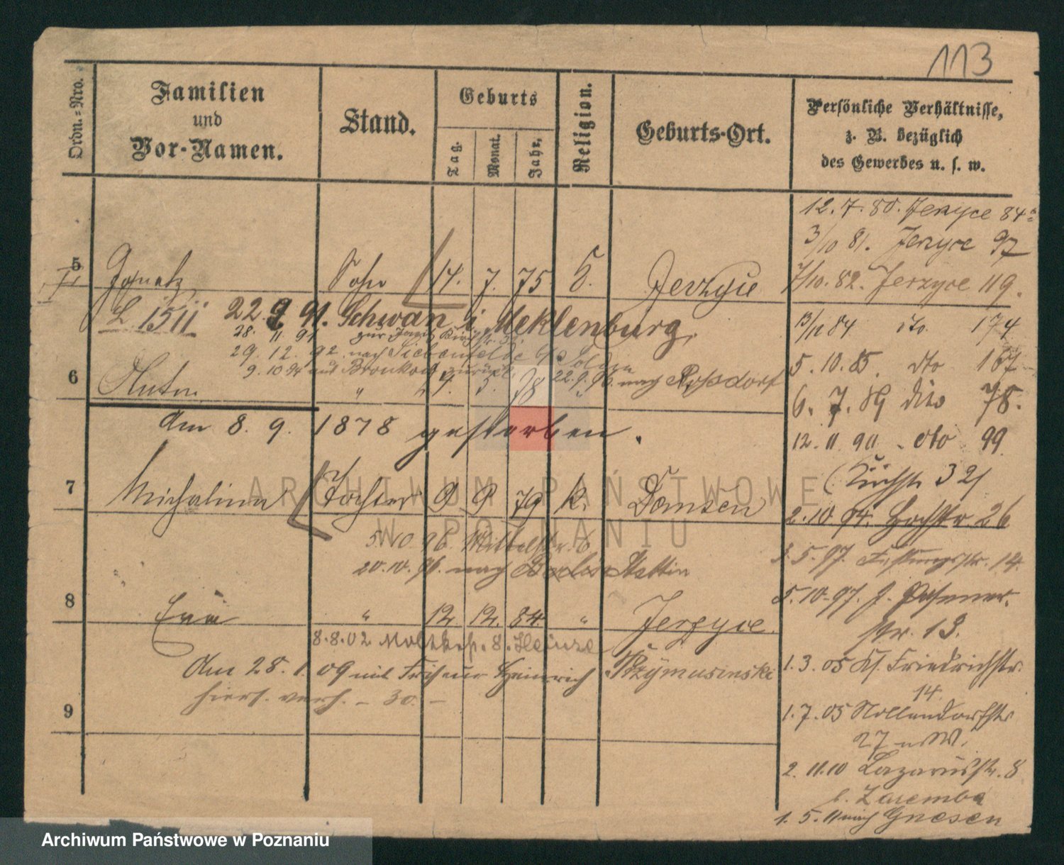 Podgląd karty osobowej dostępny jest po kliknięciu na nazwisko lub ikonkę karty. Można dokonywać powiększenia (ikony na górze) lub przechodzić między kolejnymi skanami (strzałki po bokach).