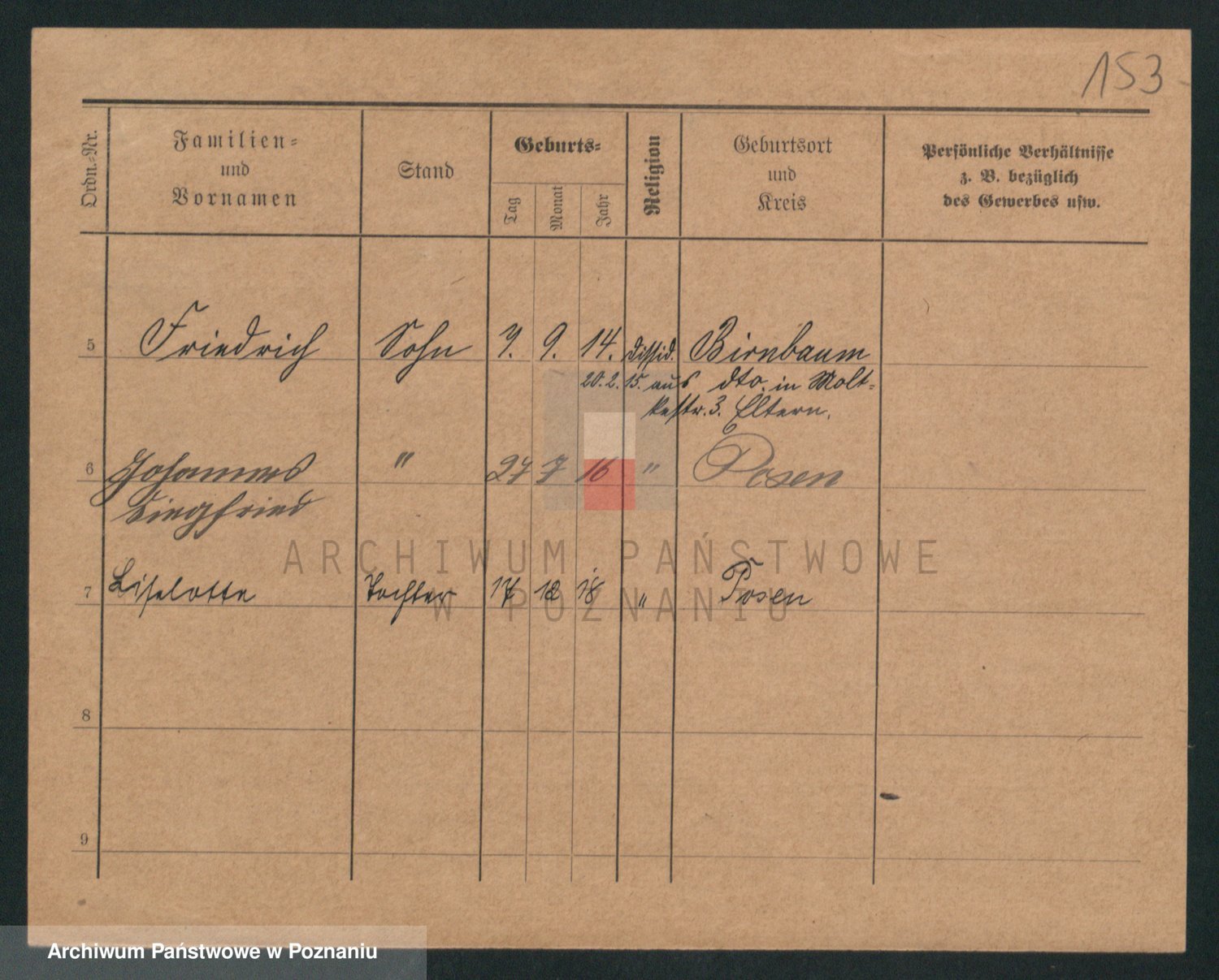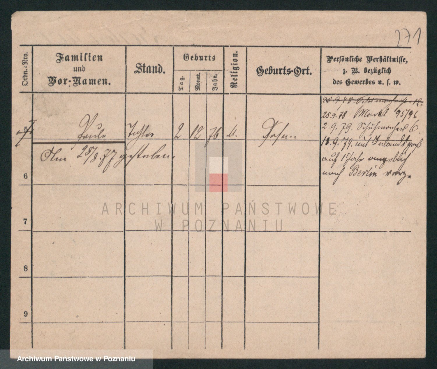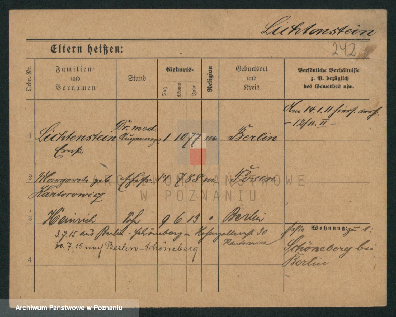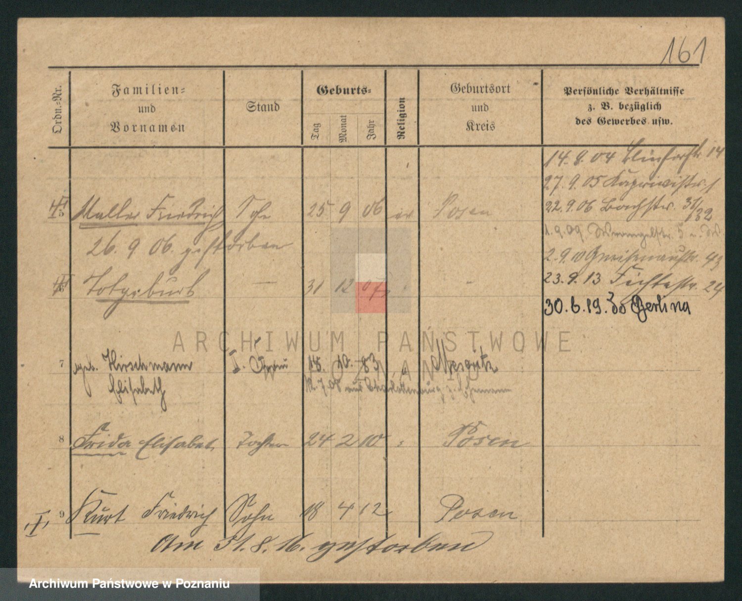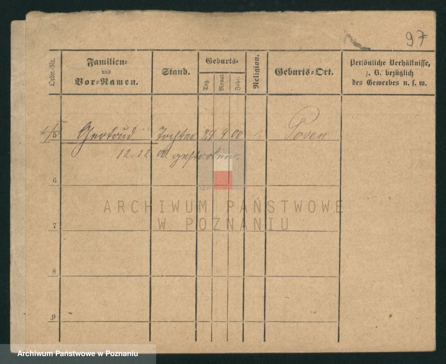 Podgląd karty osobowej dostępny jest po kliknięciu na nazwisko lub ikonkę karty. Można dokonywać powiększenia (ikony na górze) lub przechodzić między kolejnymi skanami (strzałki po bokach).