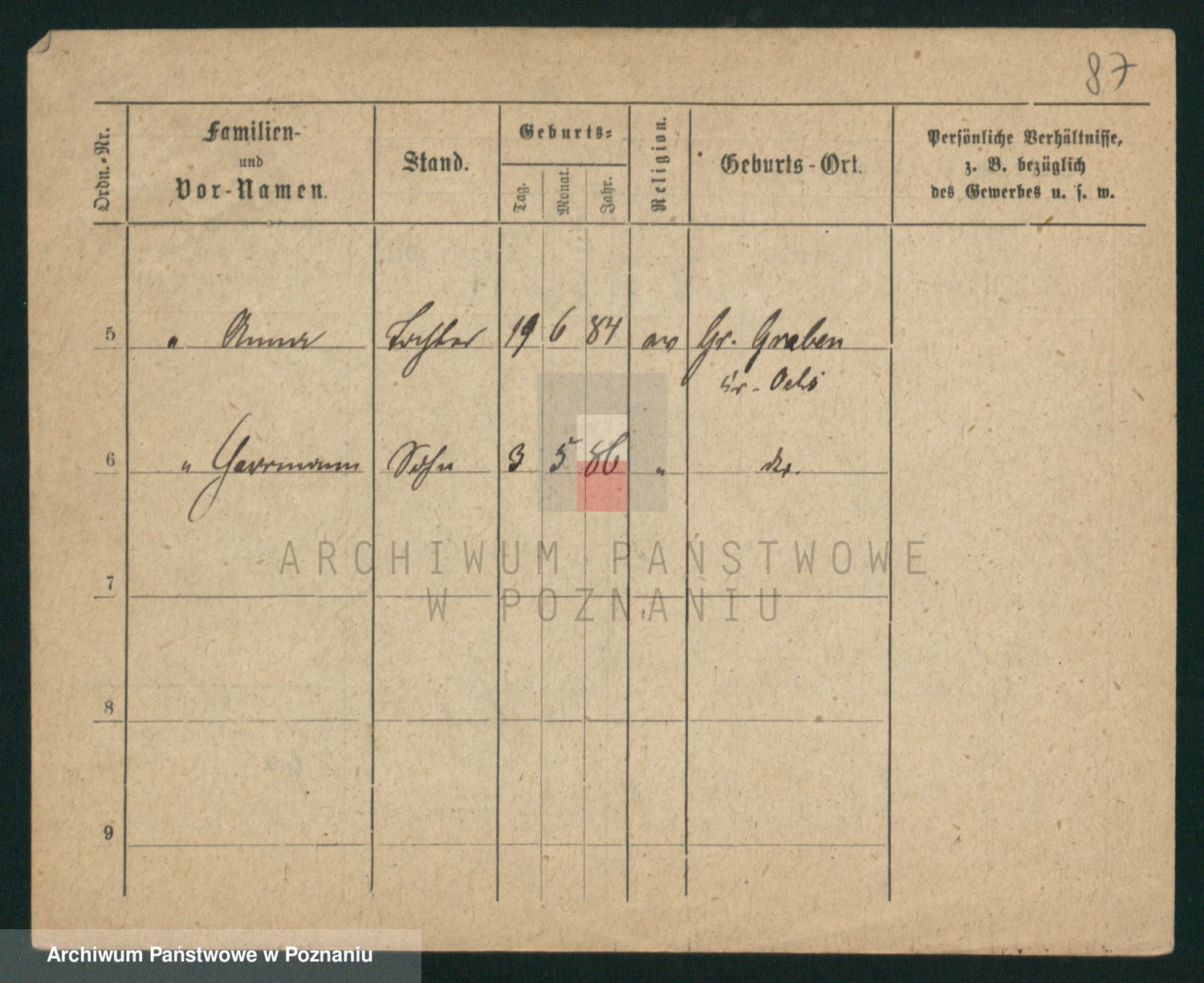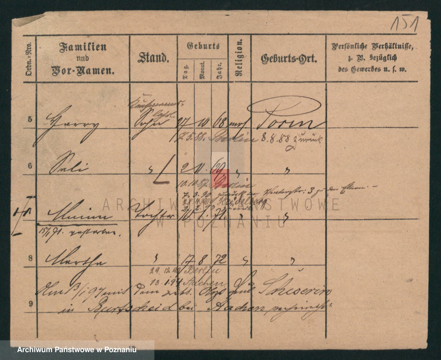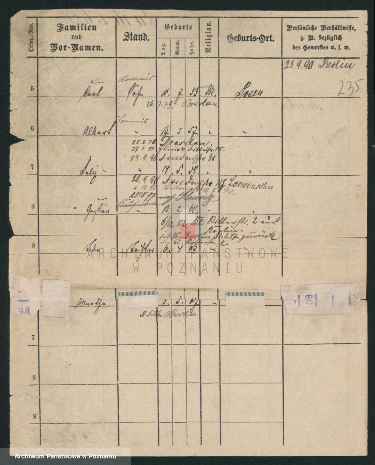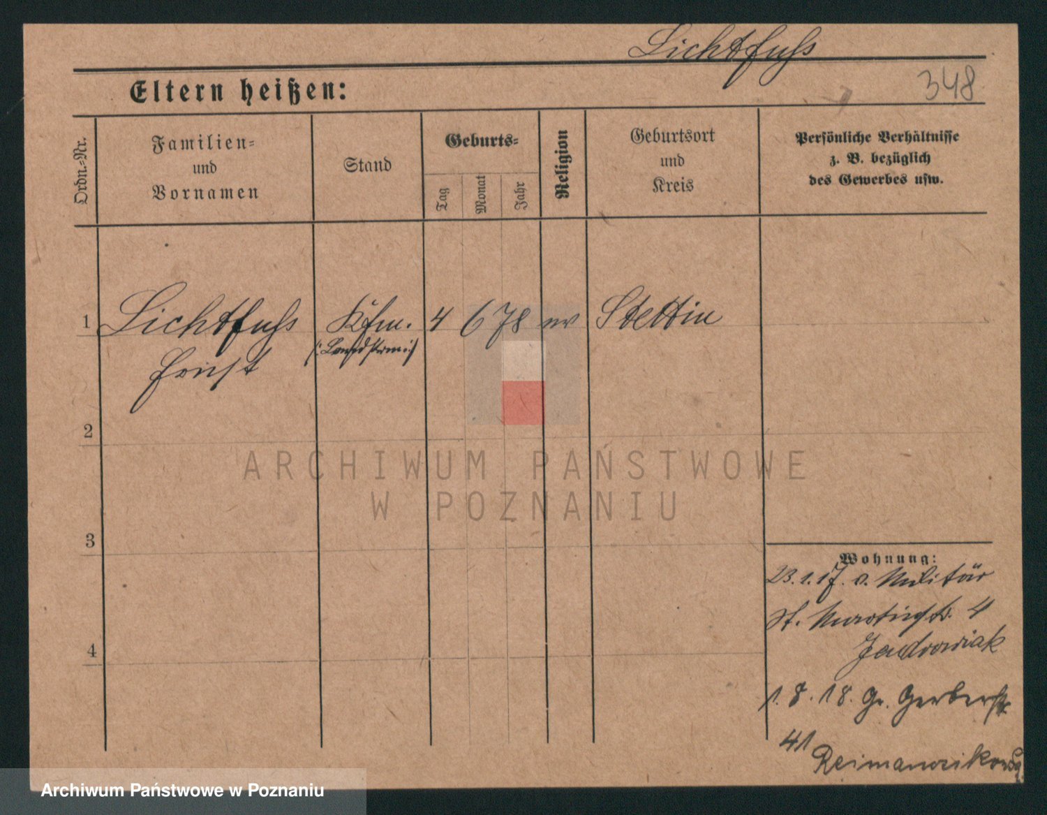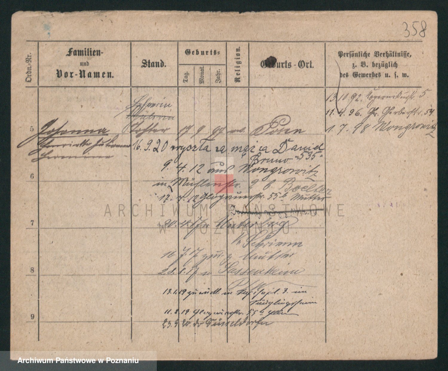 Podgląd karty osobowej dostępny jest po kliknięciu na nazwisko lub ikonkę karty. Można dokonywać powiększenia (ikony na górze) lub przechodzić między kolejnymi skanami (strzałki po bokach).