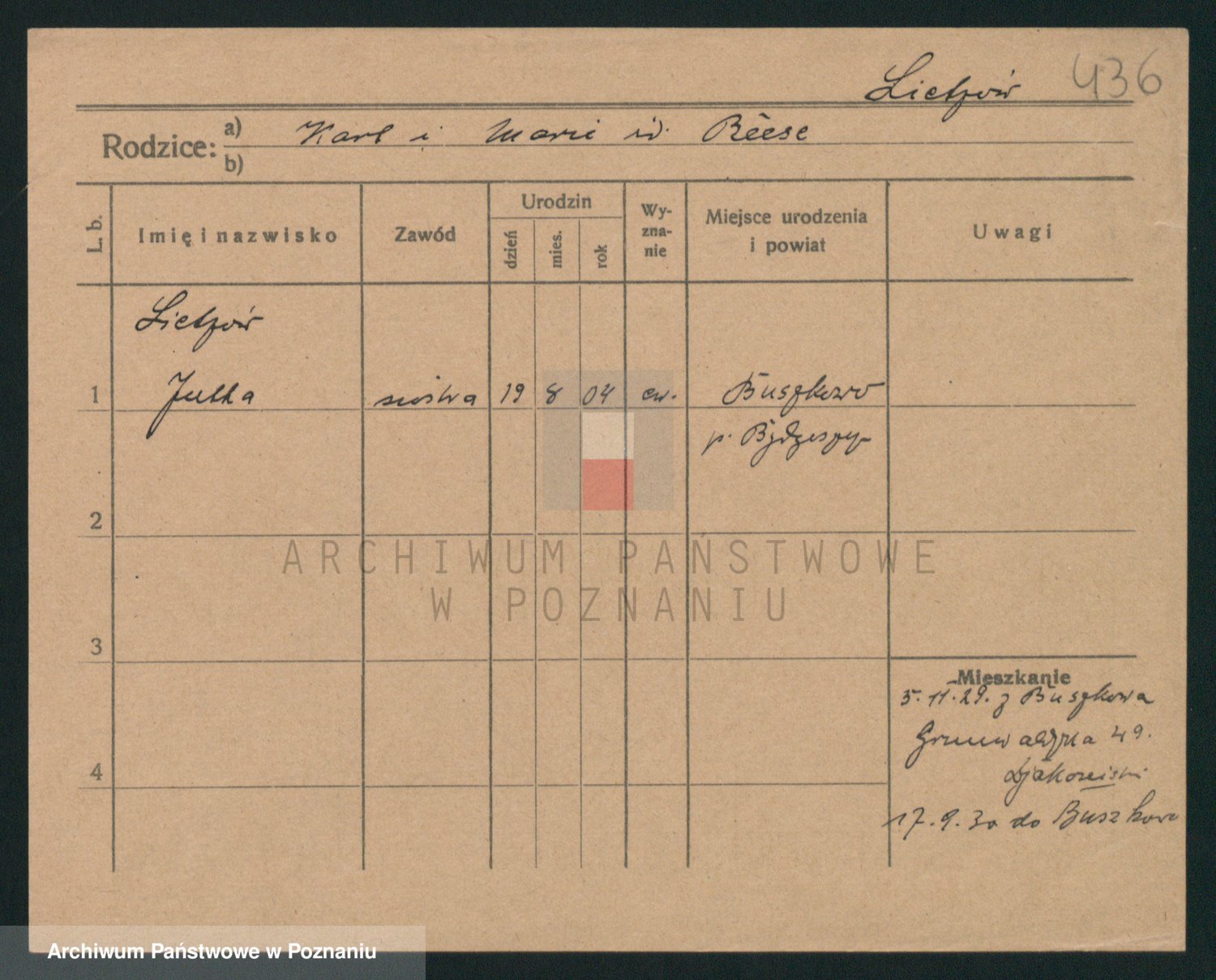 Liczbinski z.d. Szwaba (Szwabe), Marie Elisabeth