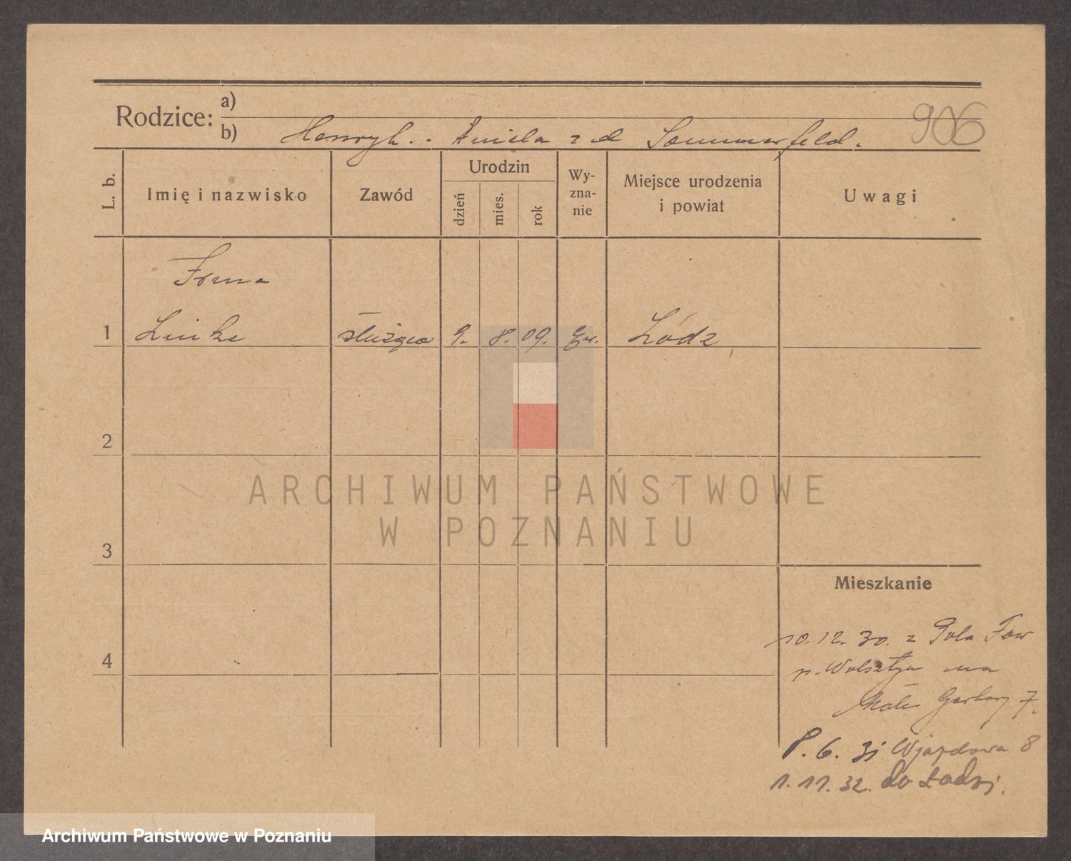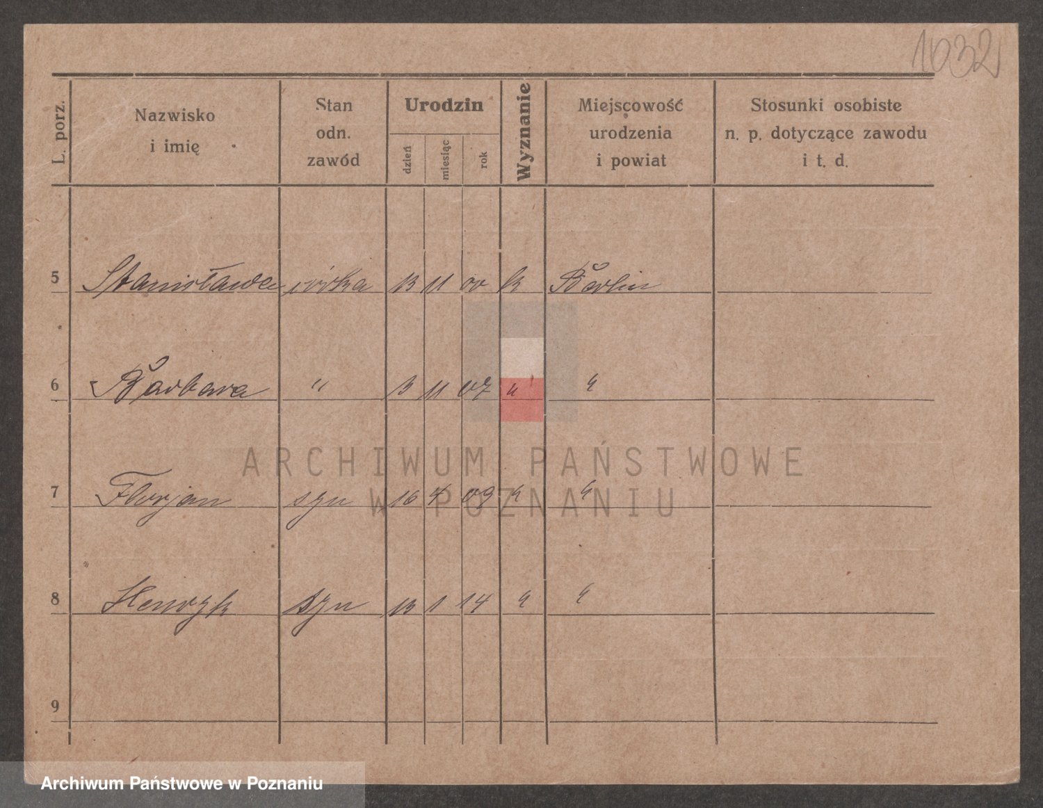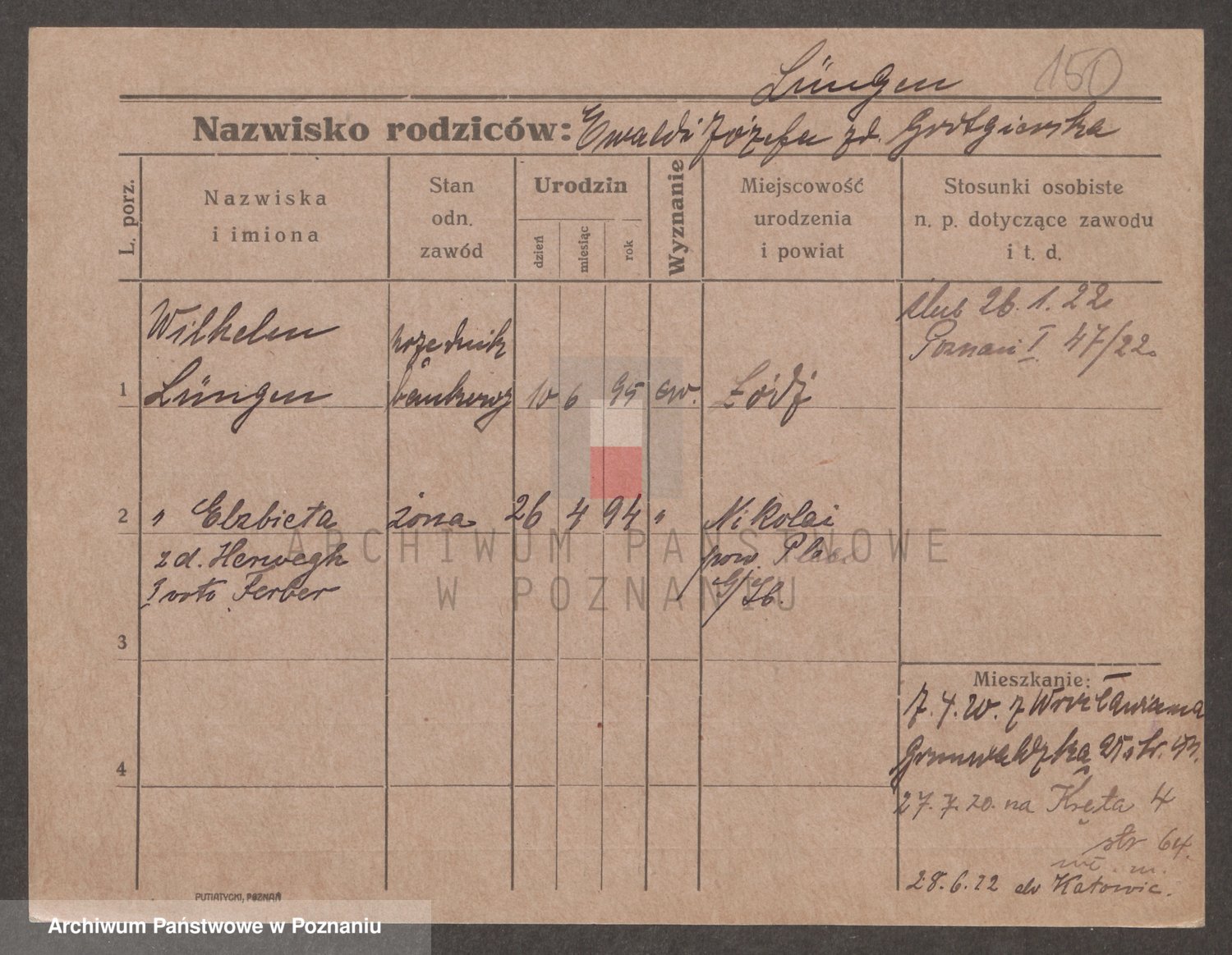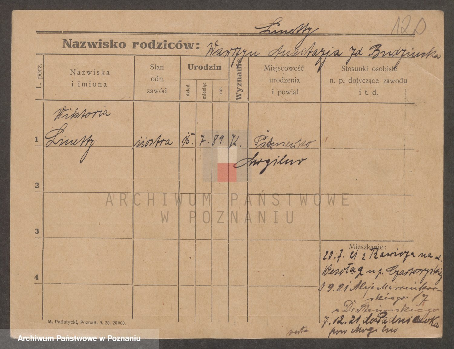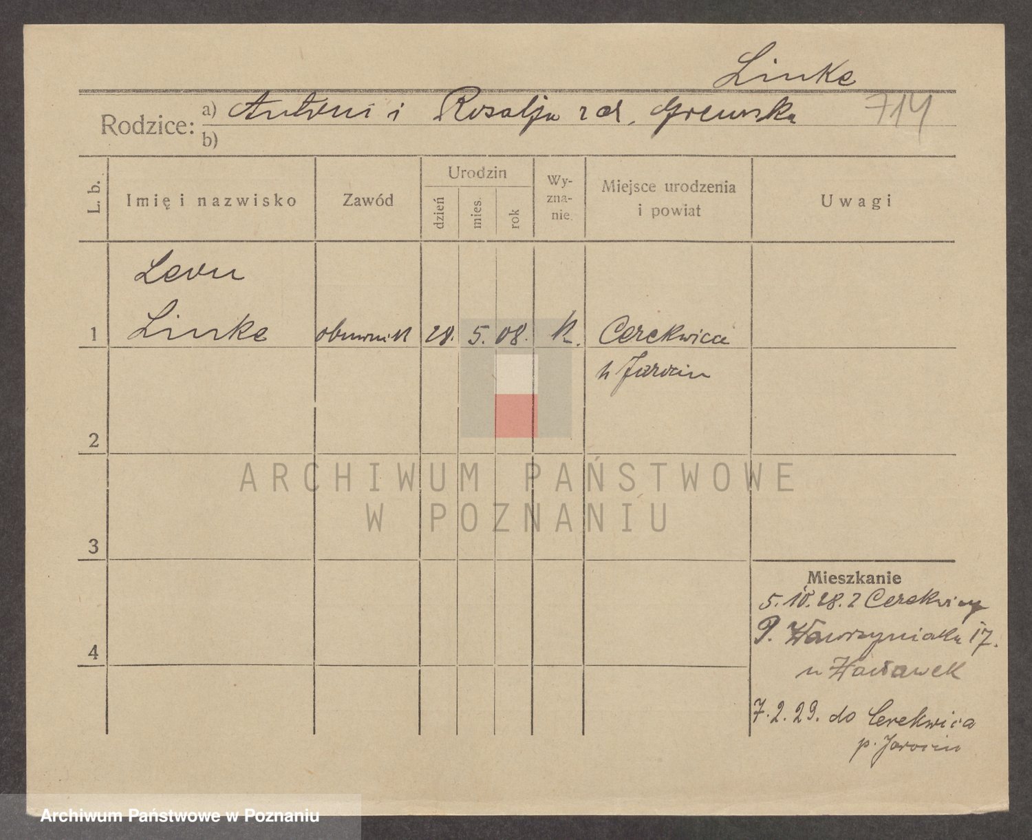 Podgląd karty osobowej dostępny jest po kliknięciu na nazwisko lub ikonkę karty. Można dokonywać powiększenia (ikony na górze) lub przechodzić między kolejnymi skanami (strzałki po bokach).
