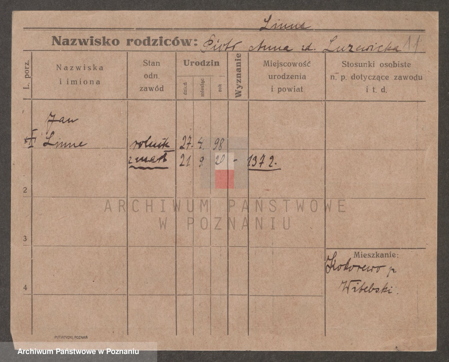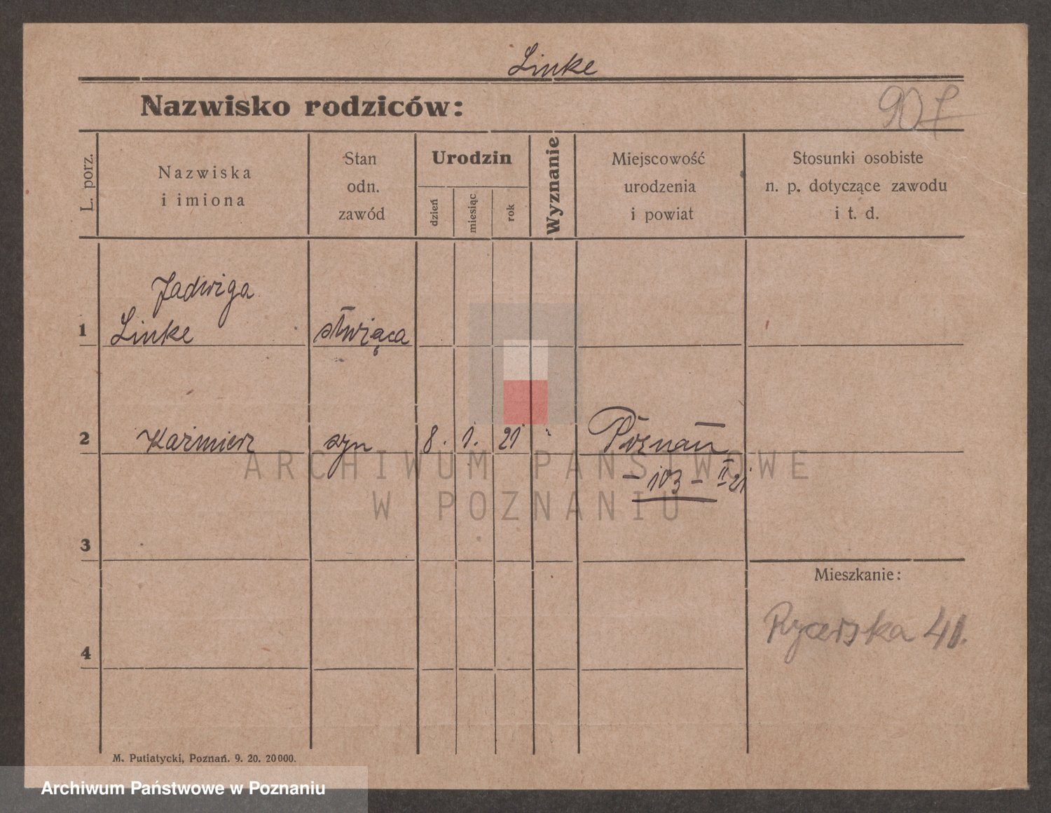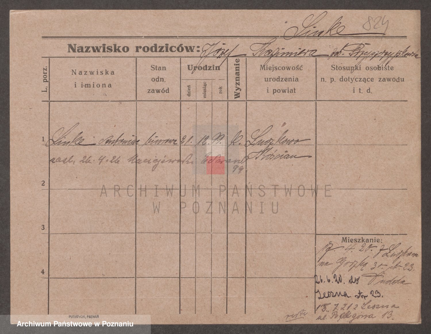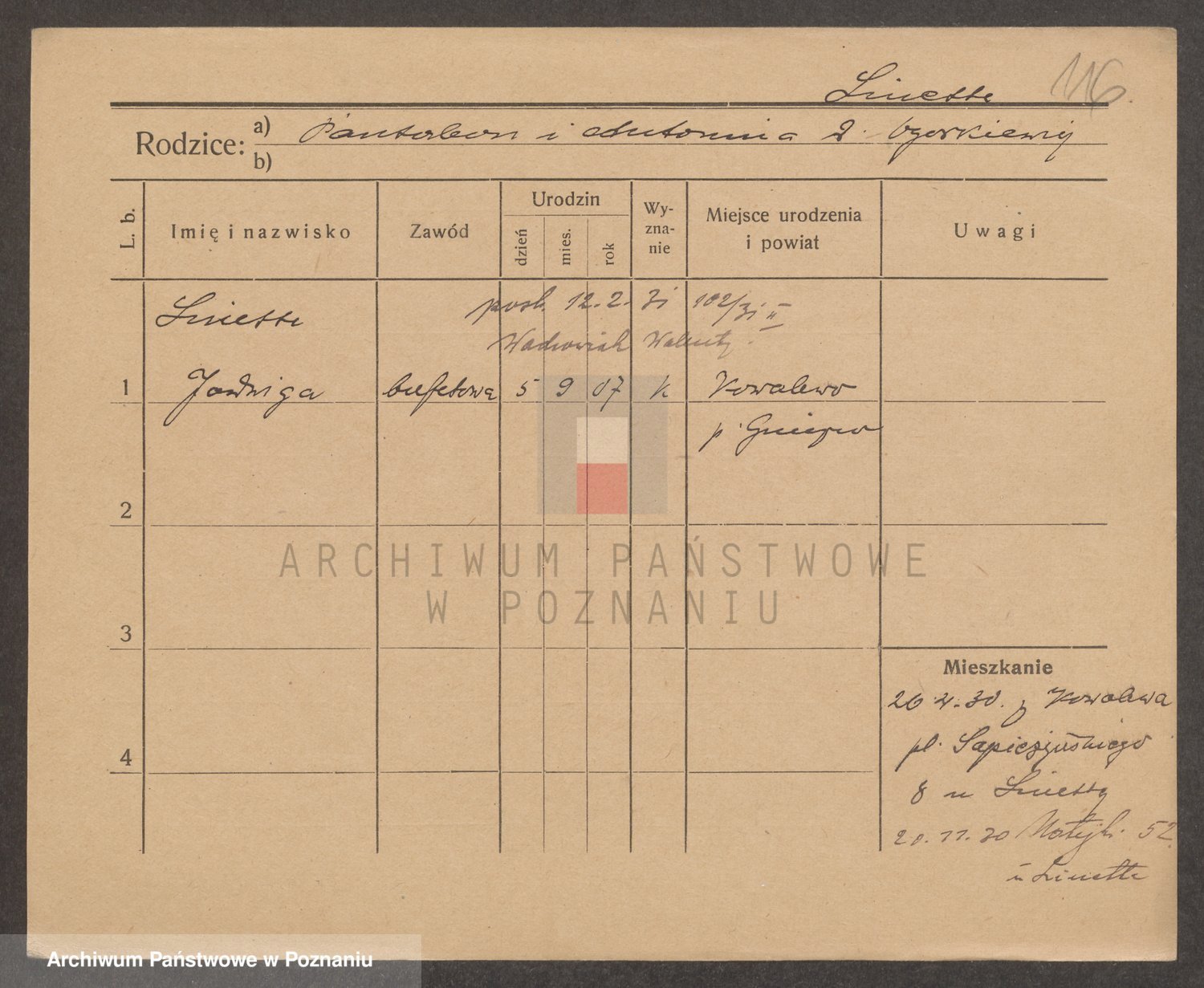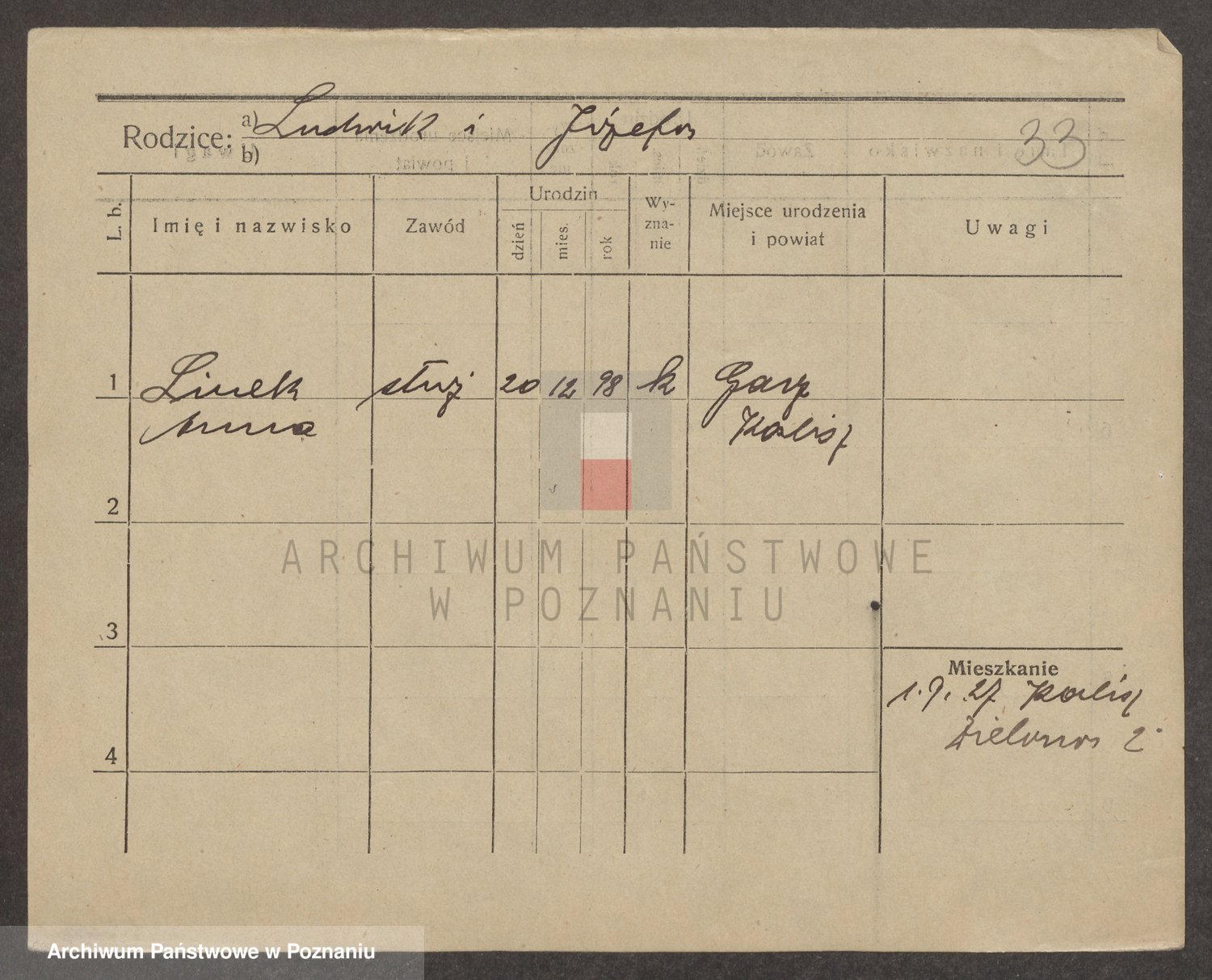 Podgląd karty osobowej dostępny jest po kliknięciu na nazwisko lub ikonkę karty. Można dokonywać powiększenia (ikony na górze) lub przechodzić między kolejnymi skanami (strzałki po bokach).