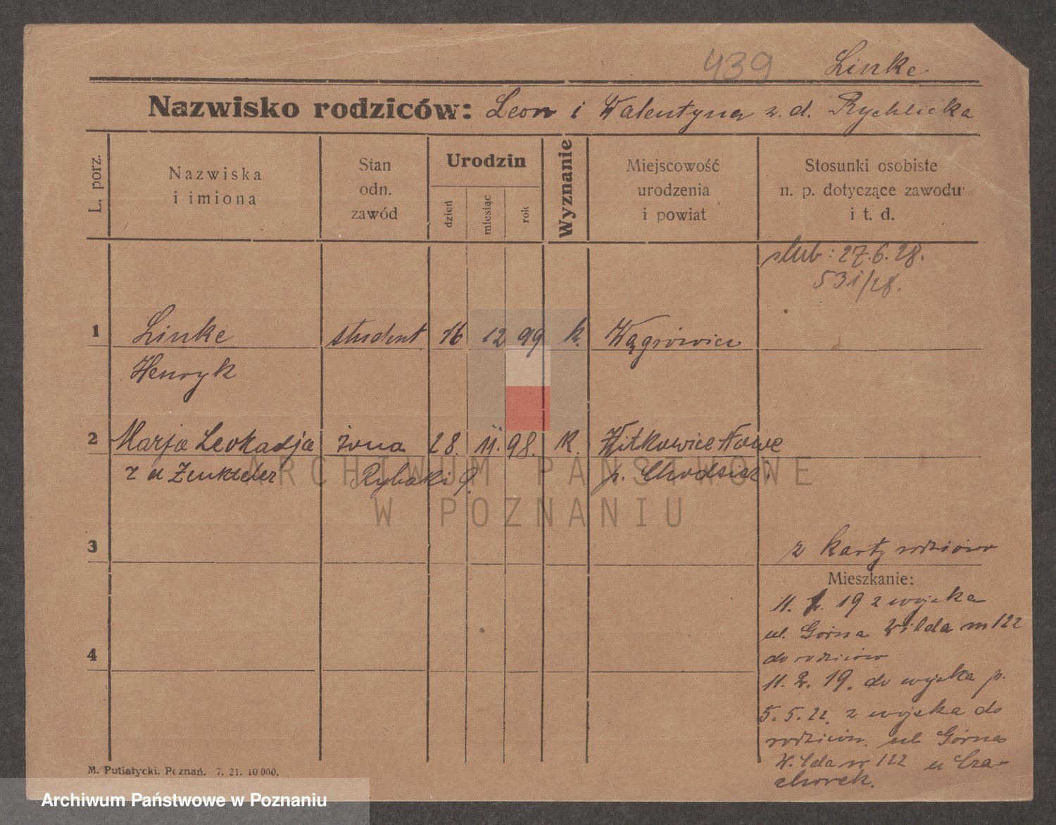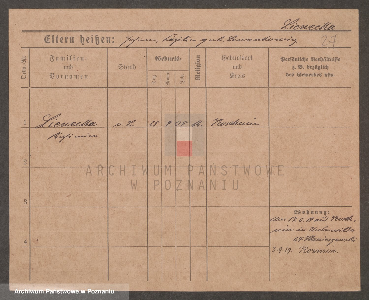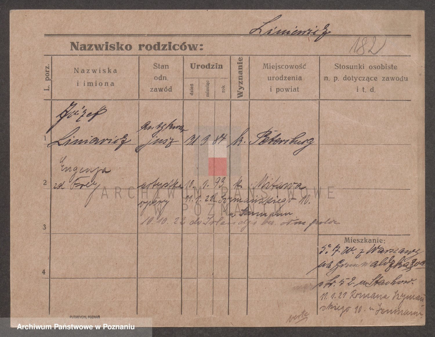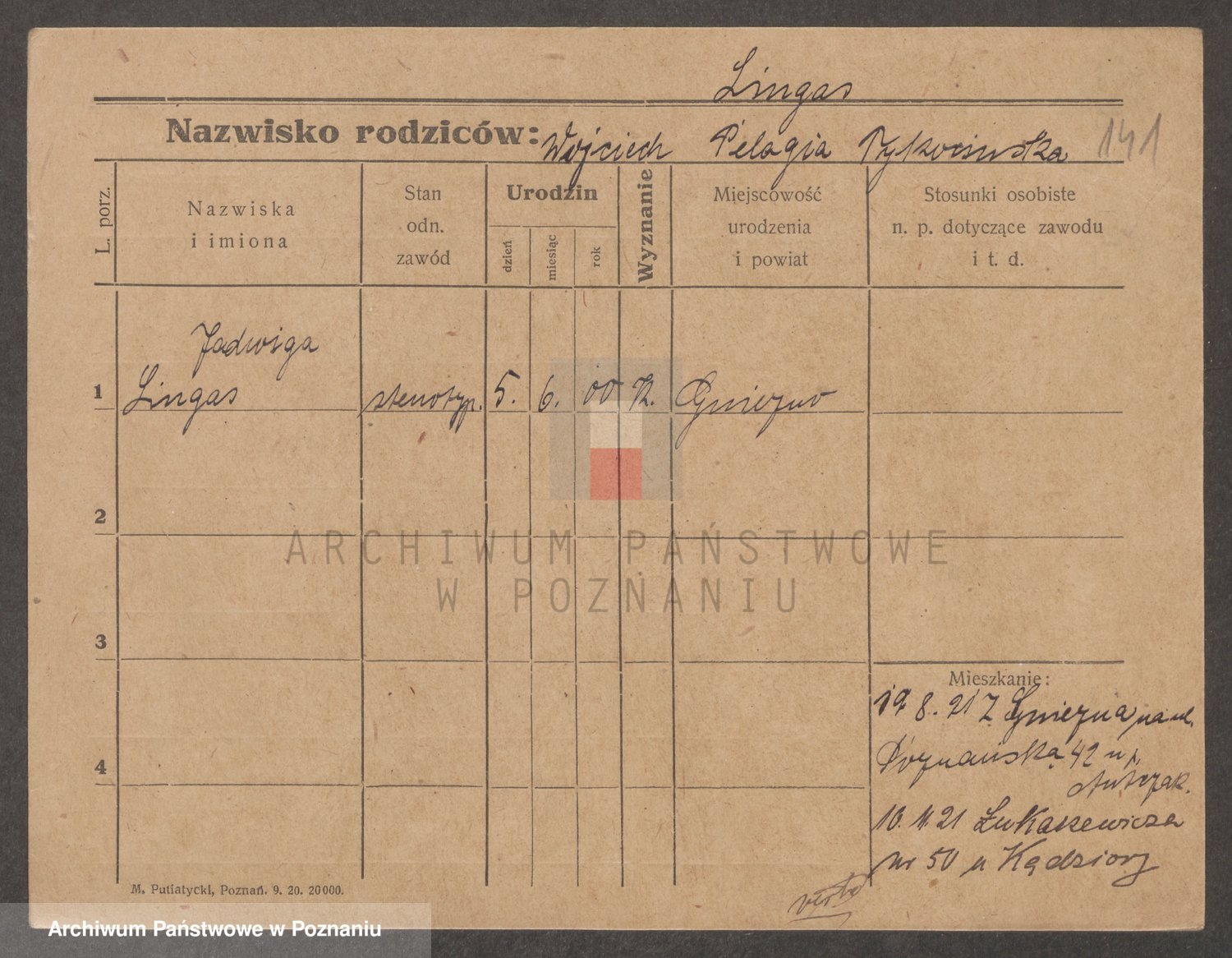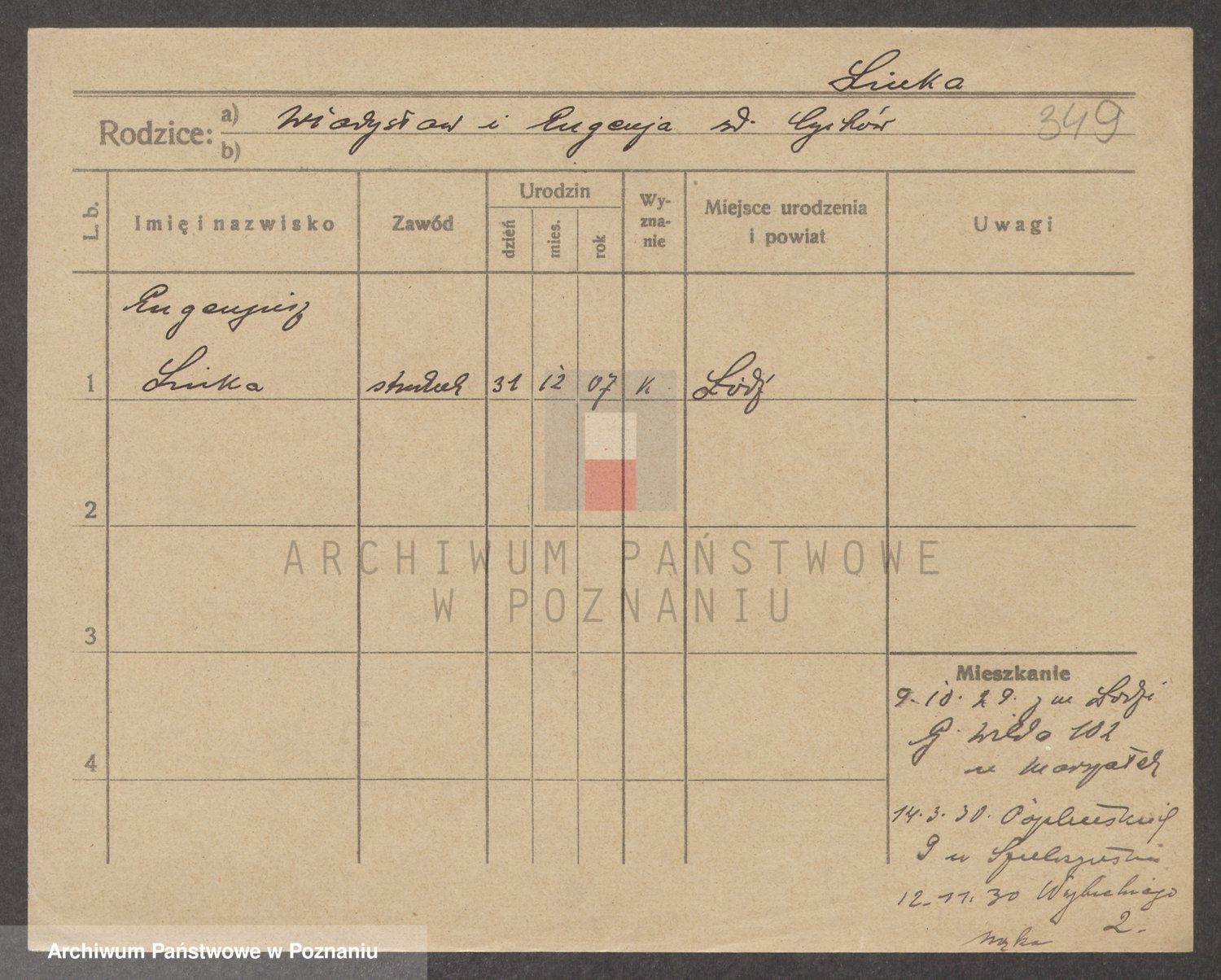 Podgląd karty osobowej dostępny jest po kliknięciu na nazwisko lub ikonkę karty. Można dokonywać powiększenia (ikony na górze) lub przechodzić między kolejnymi skanami (strzałki po bokach).
