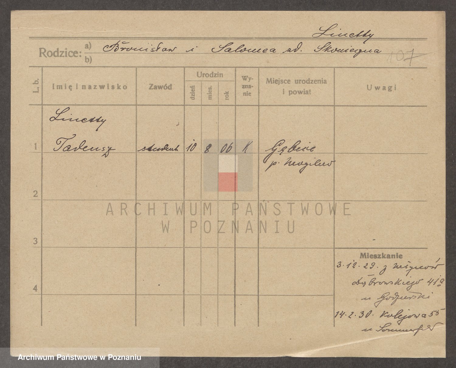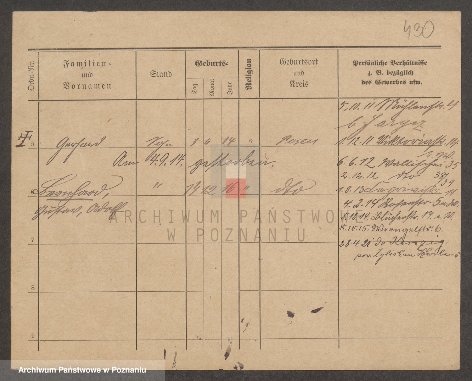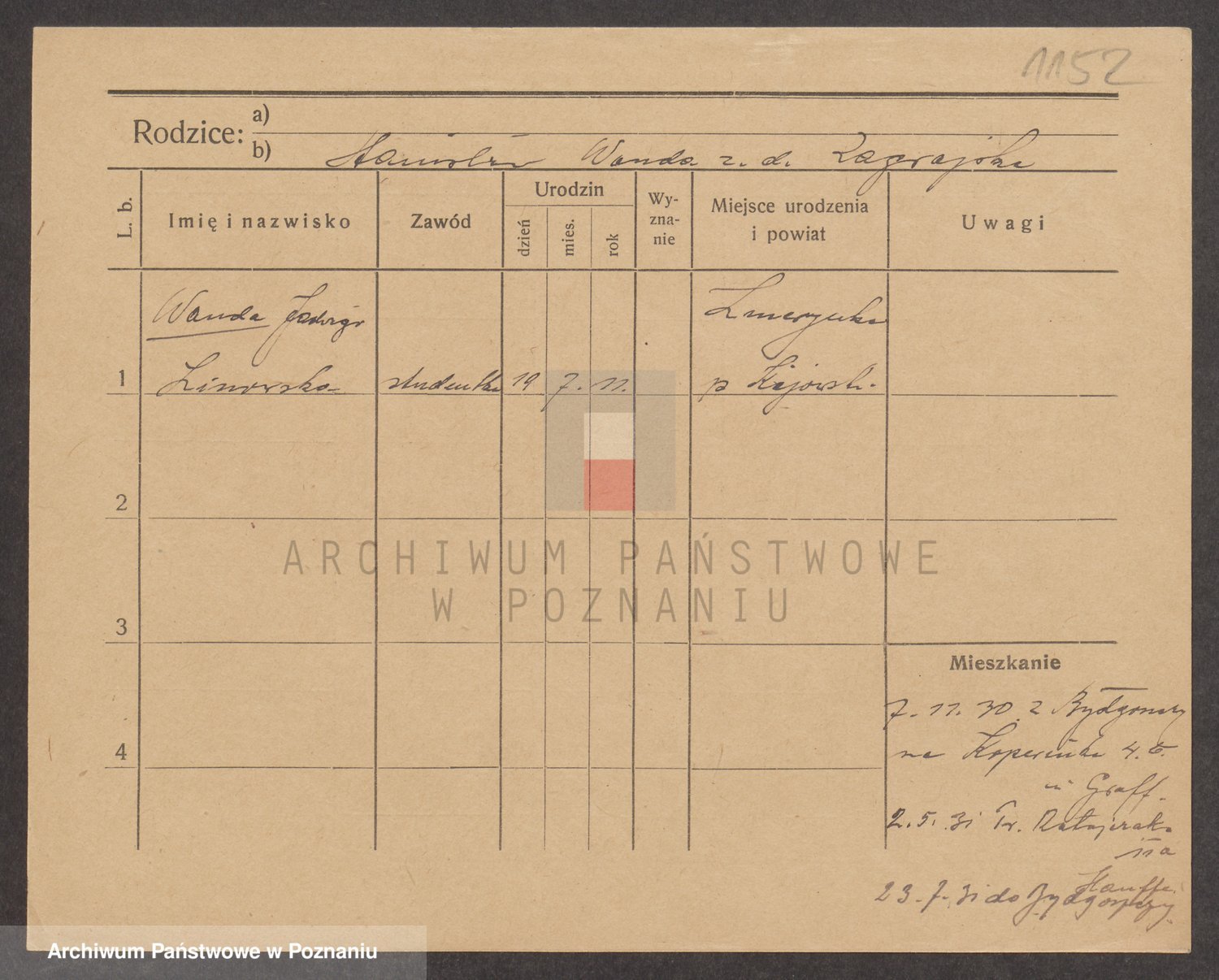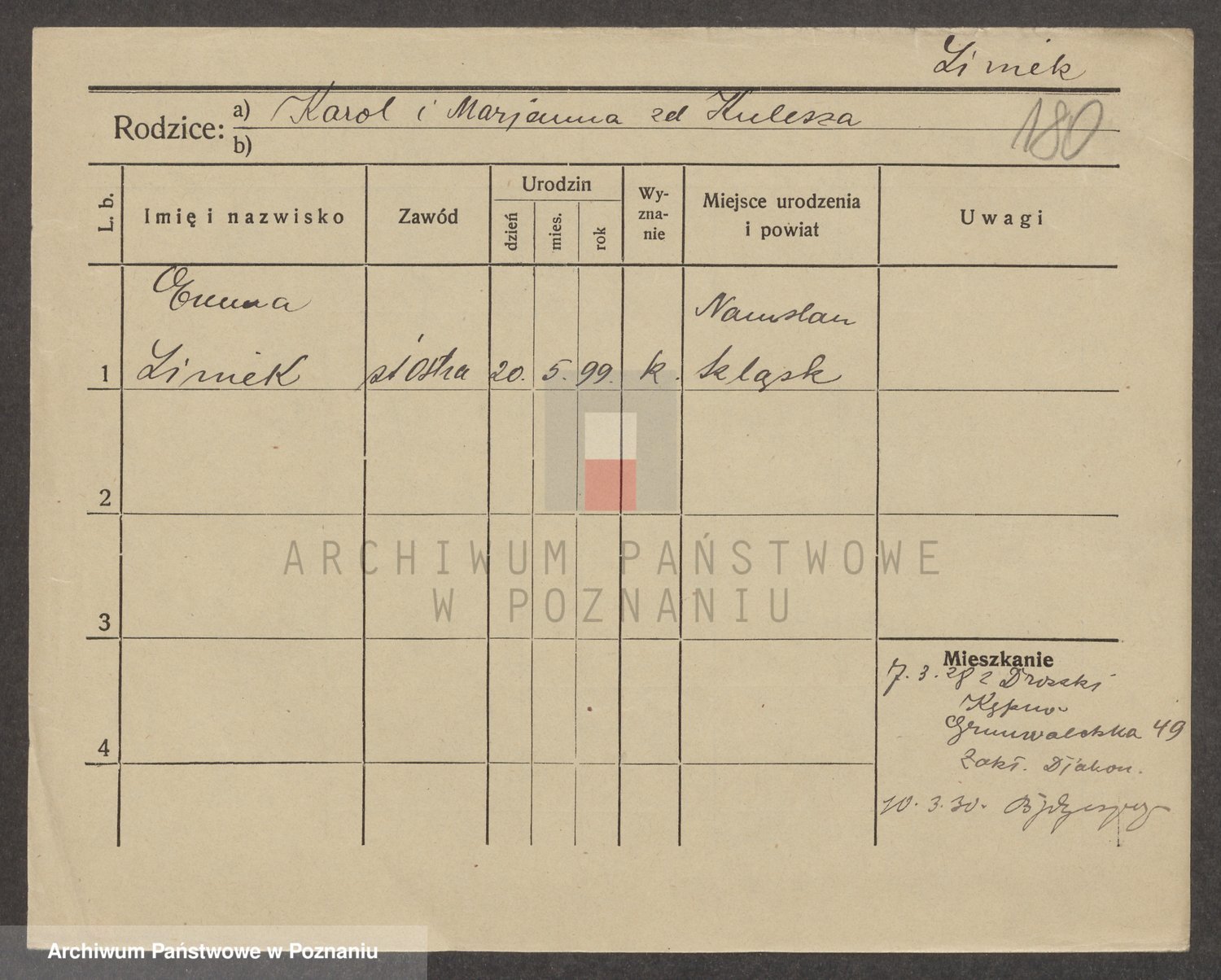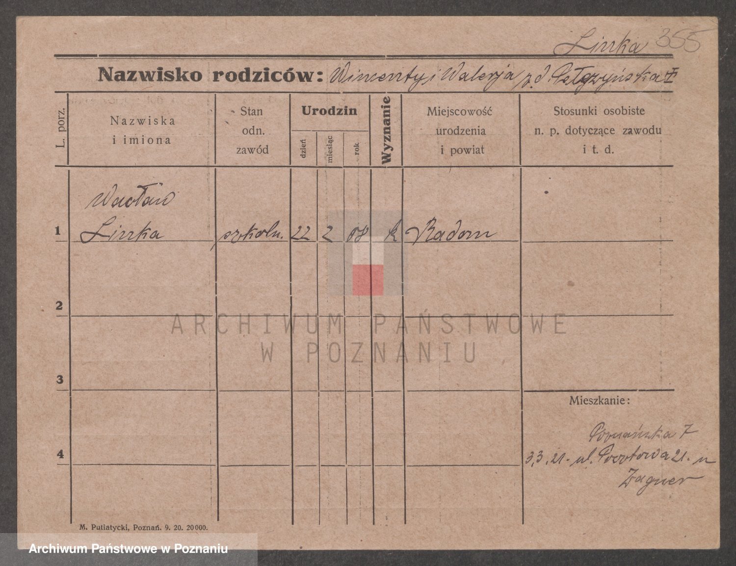 Podgląd karty osobowej dostępny jest po kliknięciu na nazwisko lub ikonkę karty. Można dokonywać powiększenia (ikony na górze) lub przechodzić między kolejnymi skanami (strzałki po bokach).