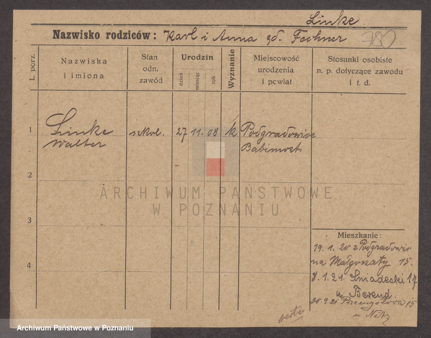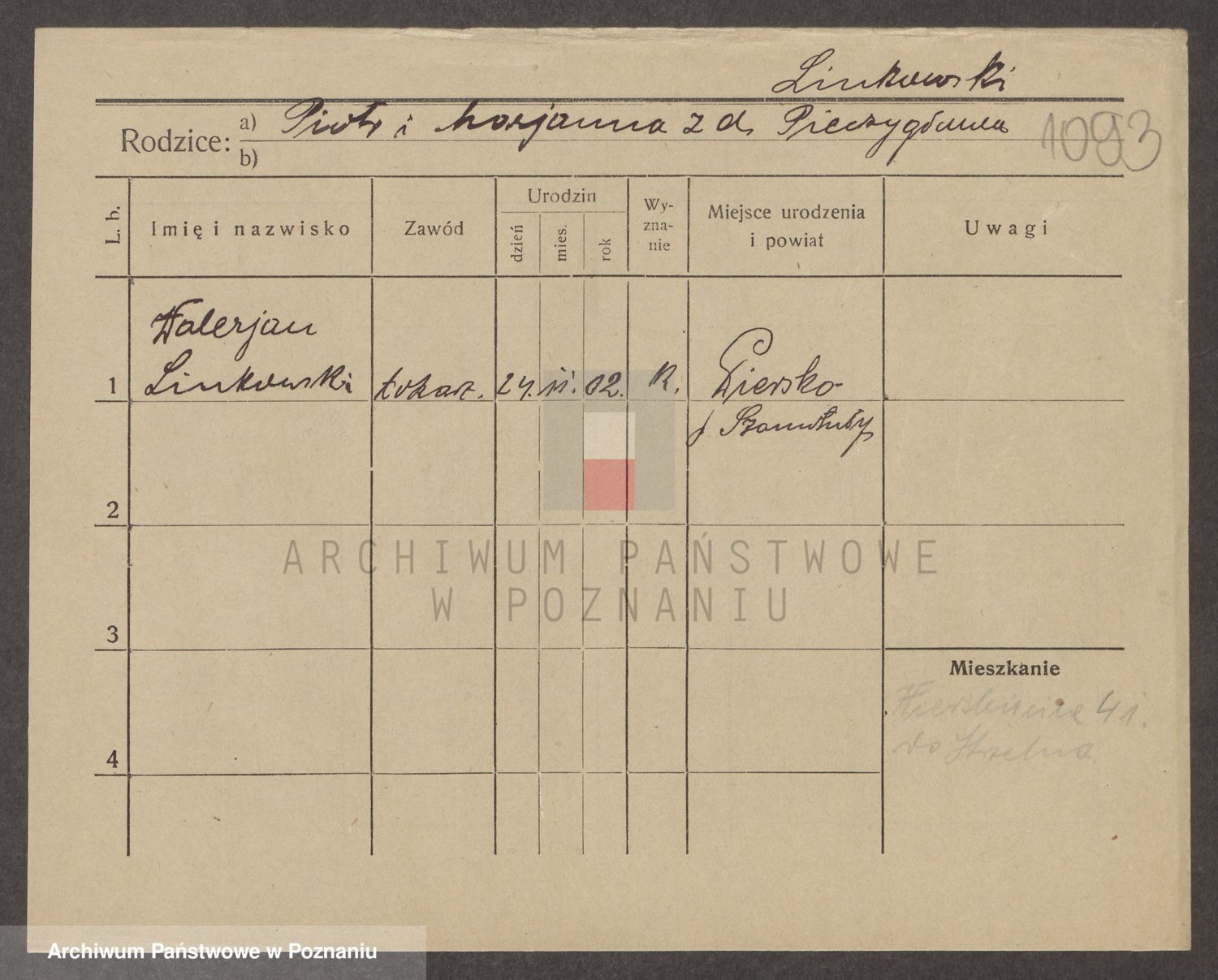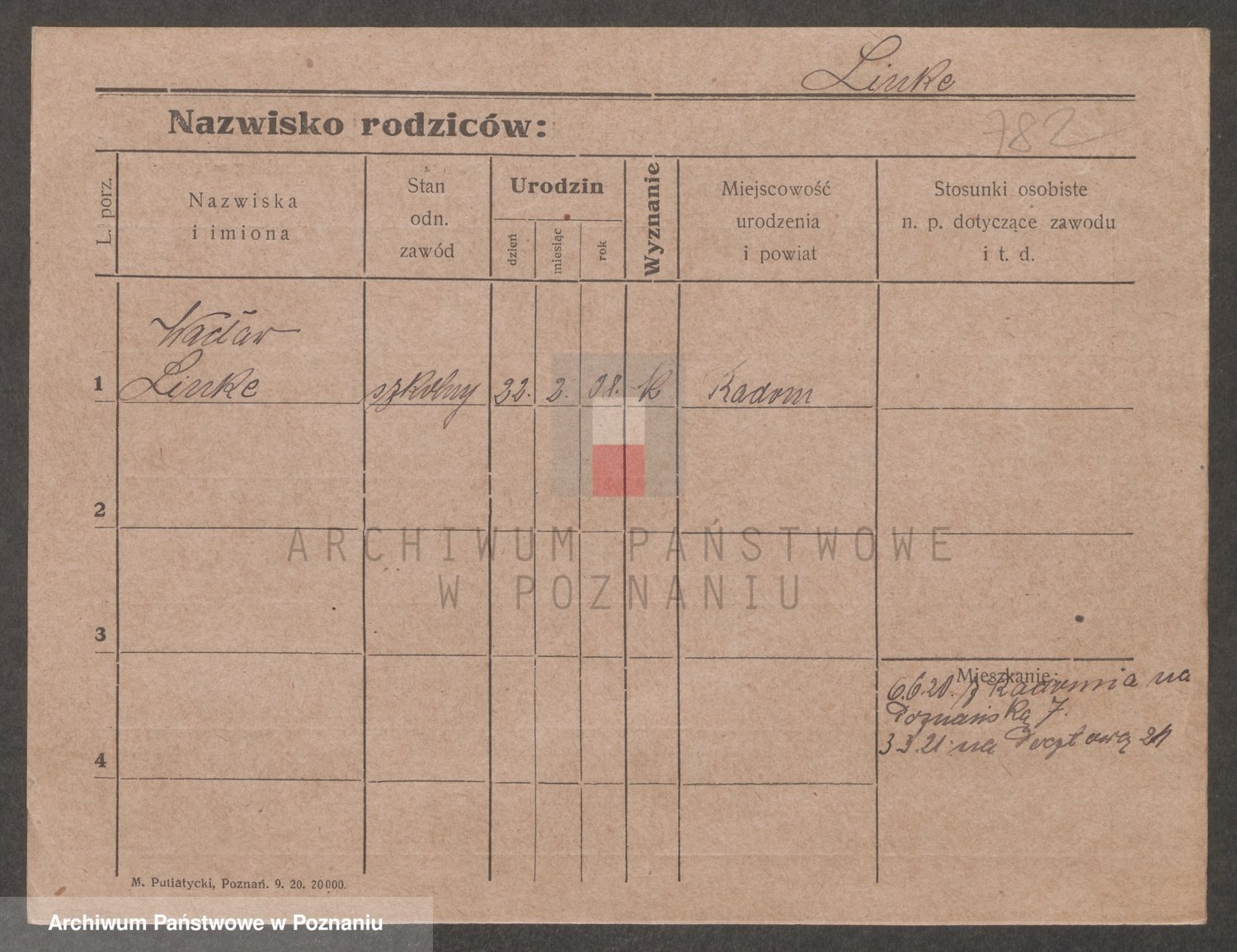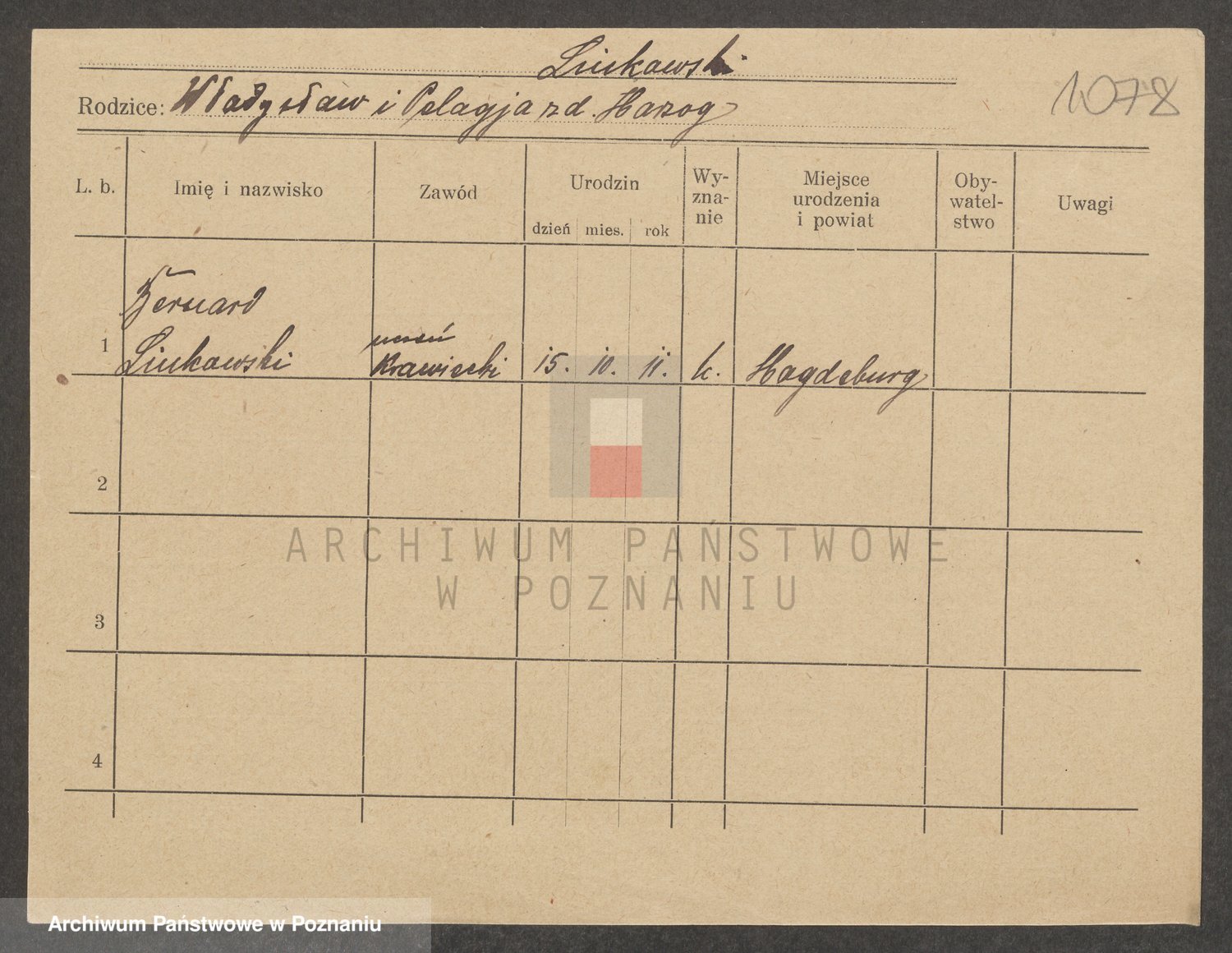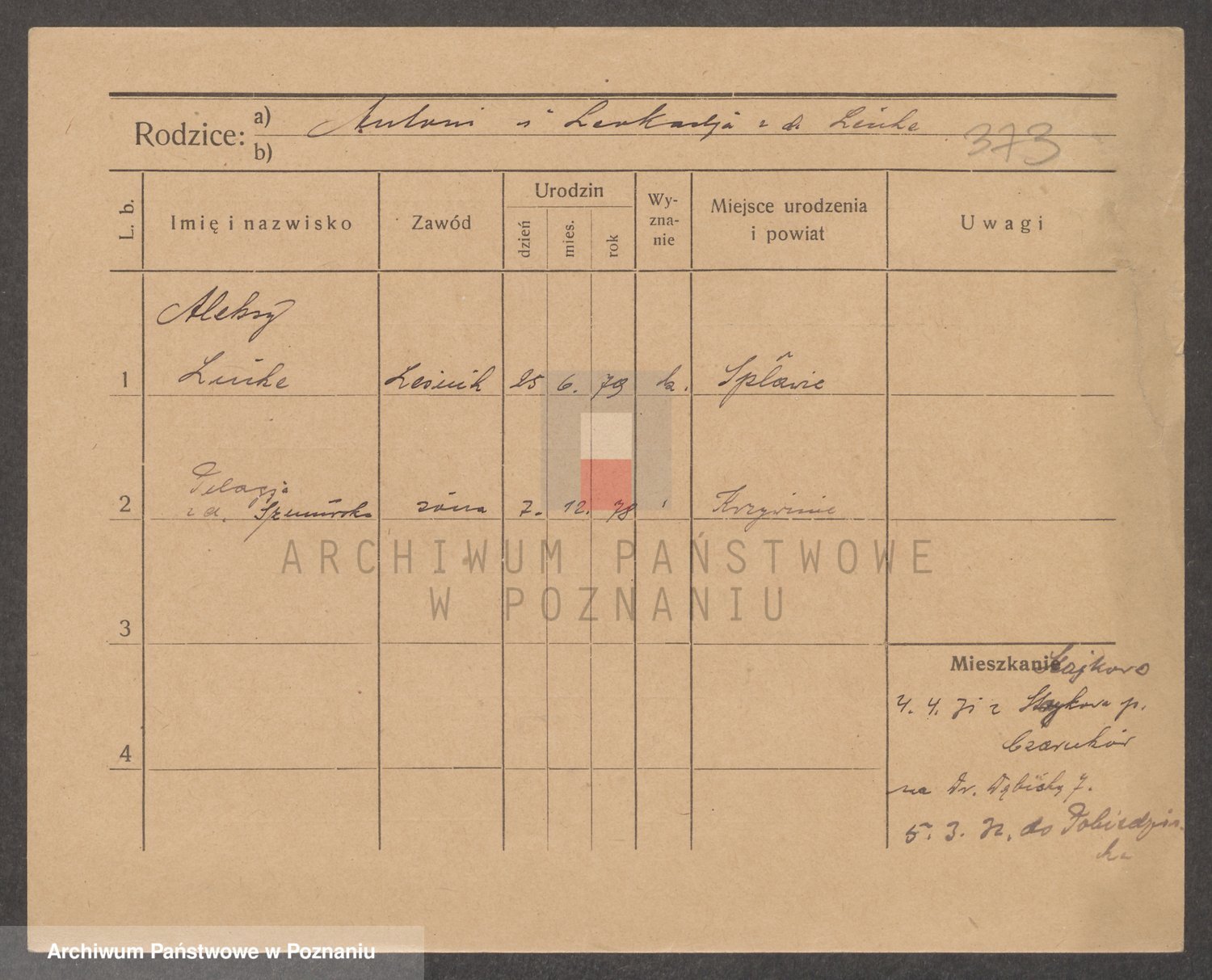 Podgląd karty osobowej dostępny jest po kliknięciu na nazwisko lub ikonkę karty. Można dokonywać powiększenia (ikony na górze) lub przechodzić między kolejnymi skanami (strzałki po bokach).