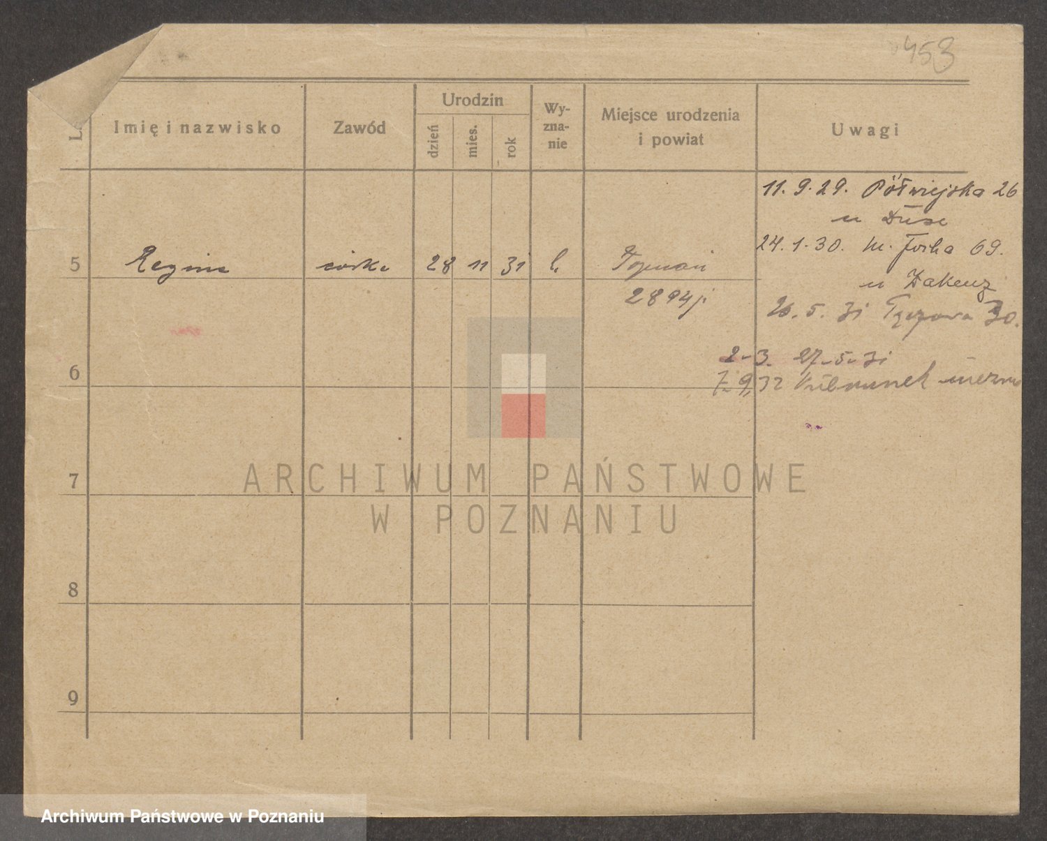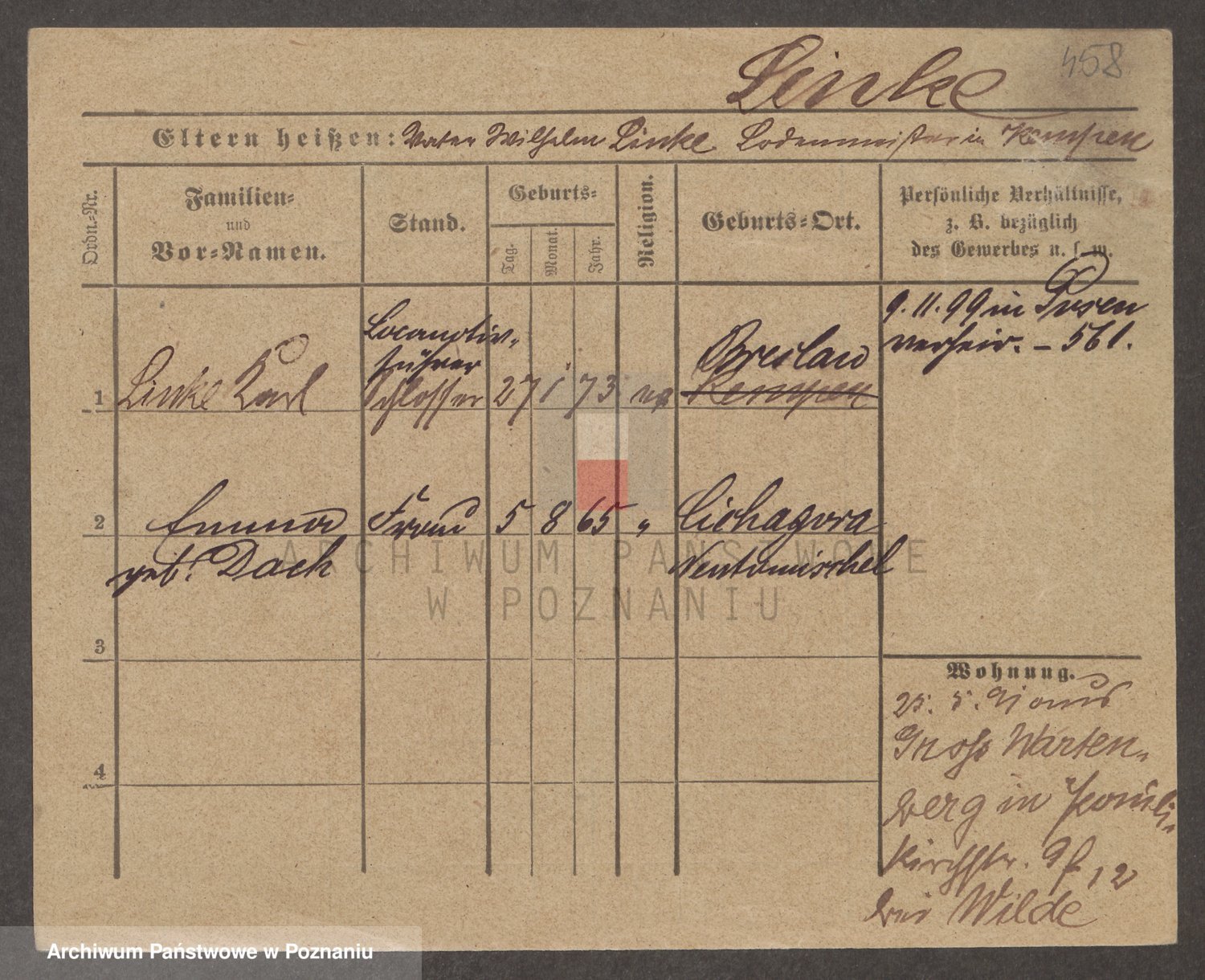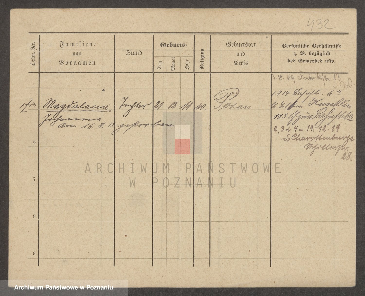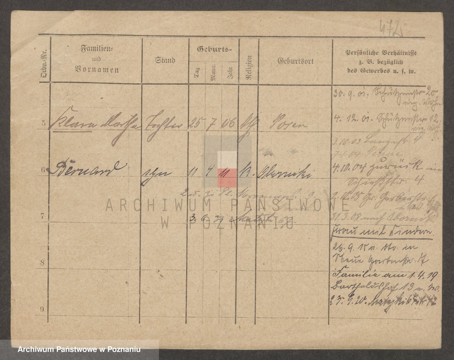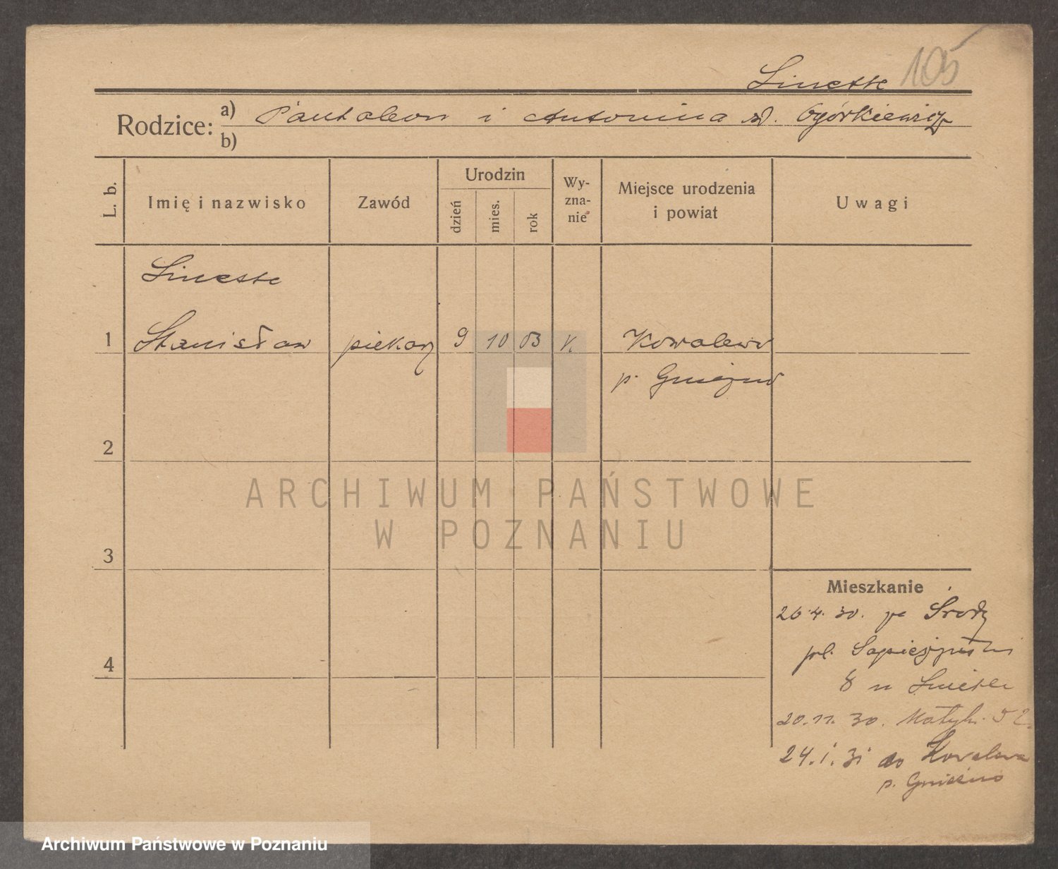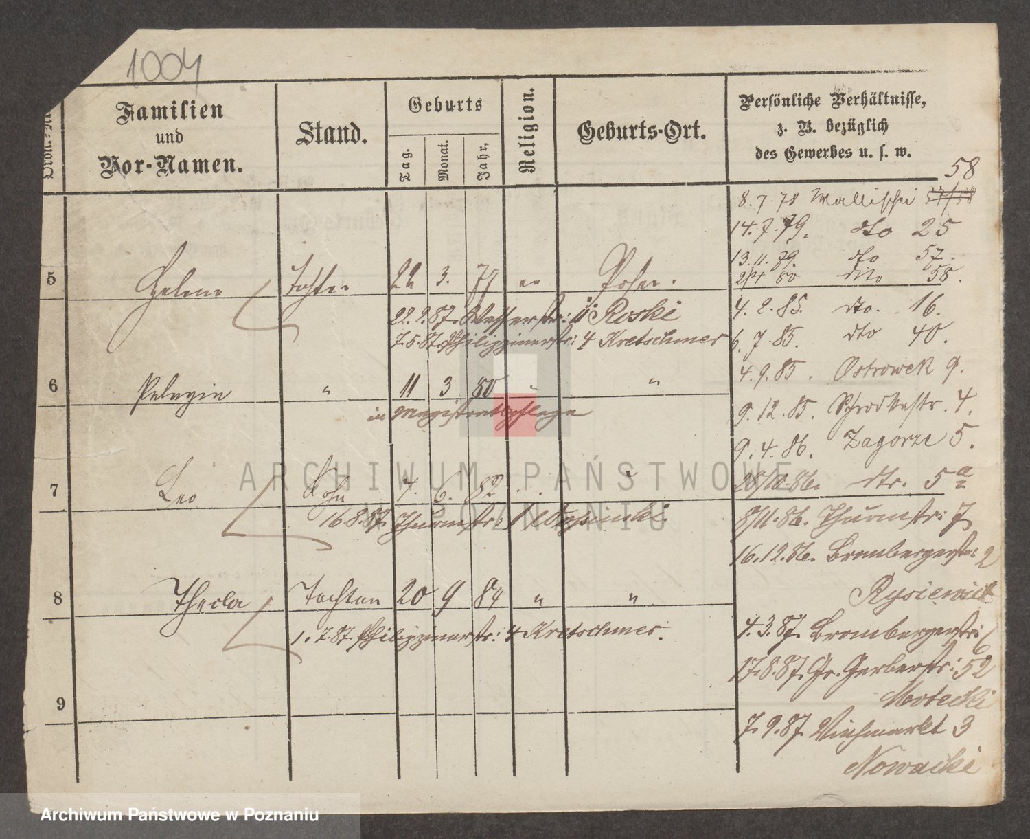 Podgląd karty osobowej dostępny jest po kliknięciu na nazwisko lub ikonkę karty. Można dokonywać powiększenia (ikony na górze) lub przechodzić między kolejnymi skanami (strzałki po bokach).