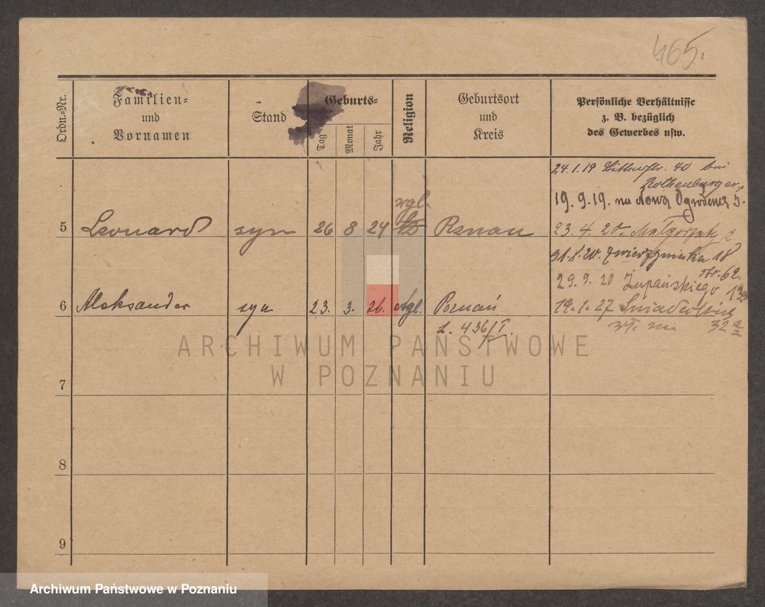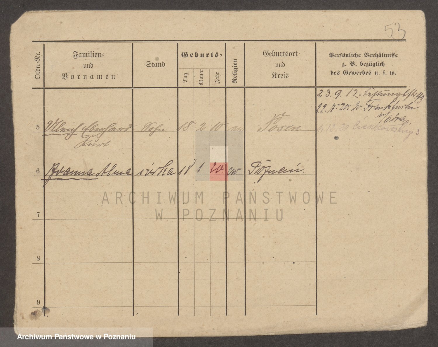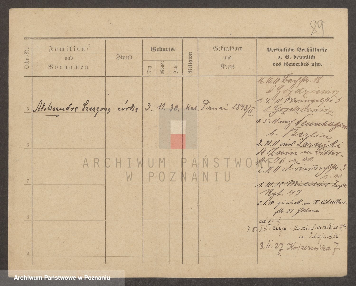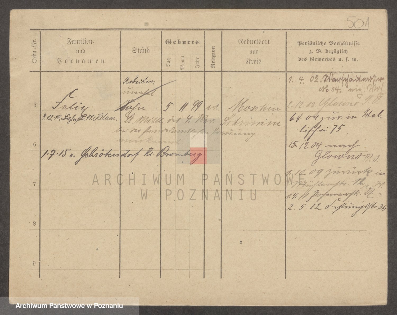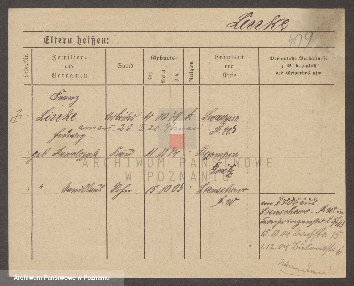 Podgląd karty osobowej dostępny jest po kliknięciu na nazwisko lub ikonkę karty. Można dokonywać powiększenia (ikony na górze) lub przechodzić między kolejnymi skanami (strzałki po bokach).
