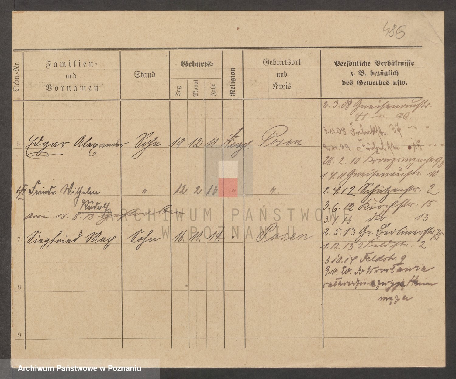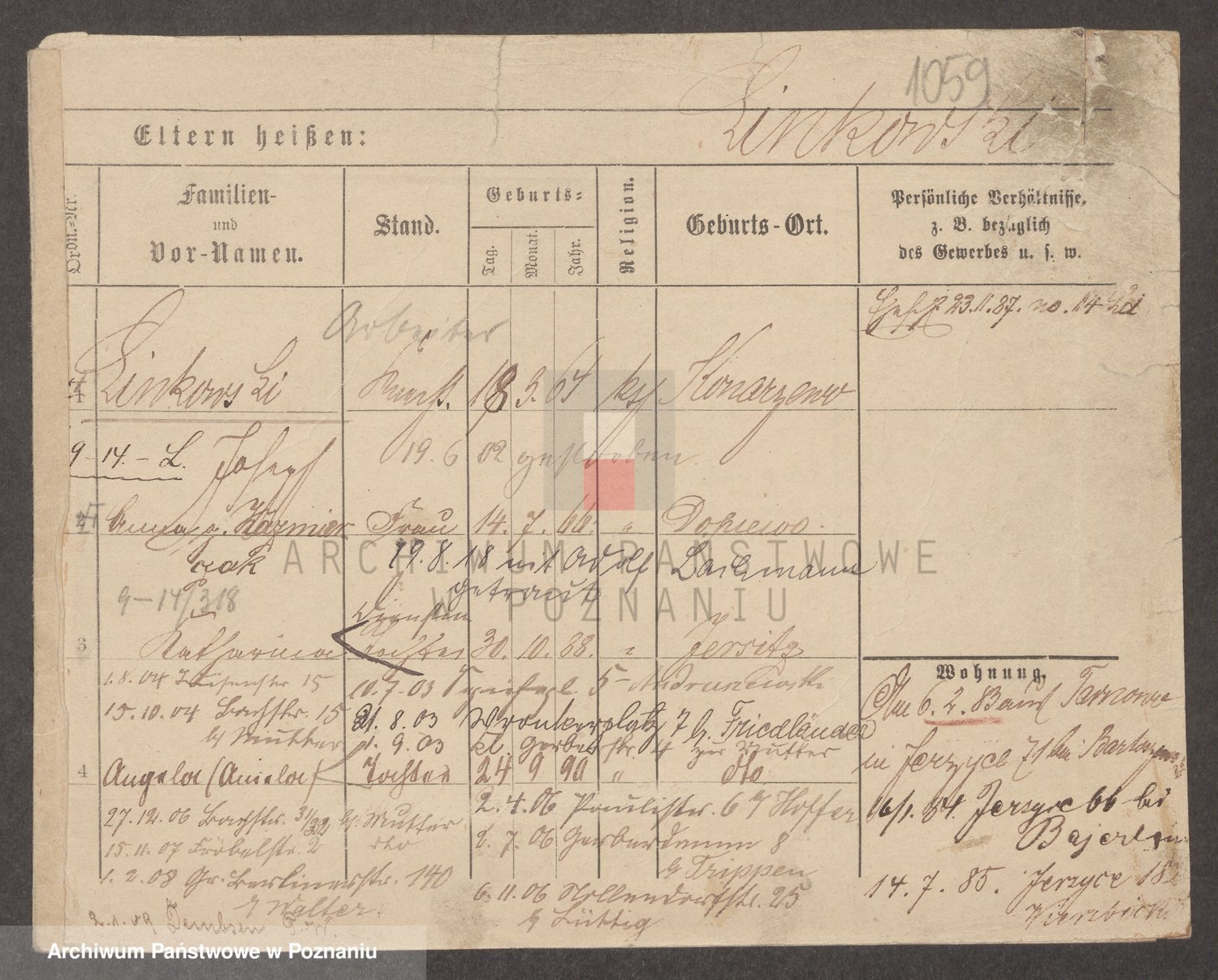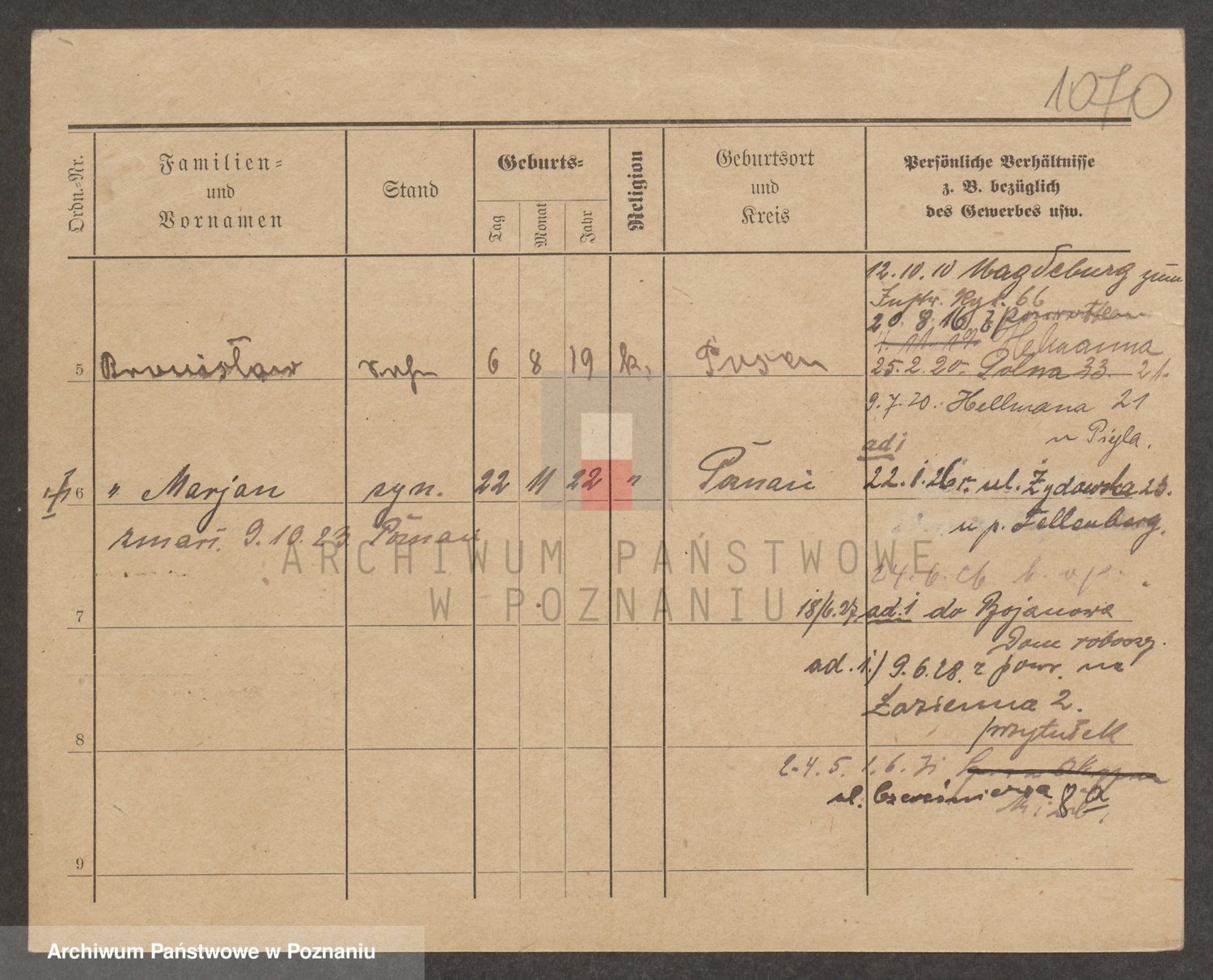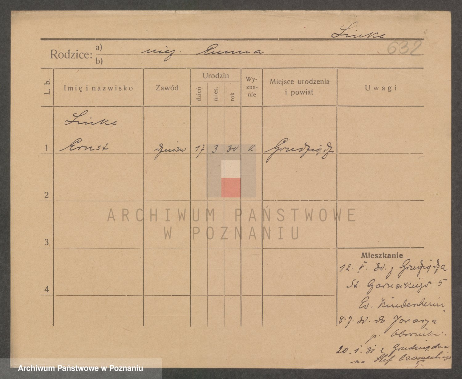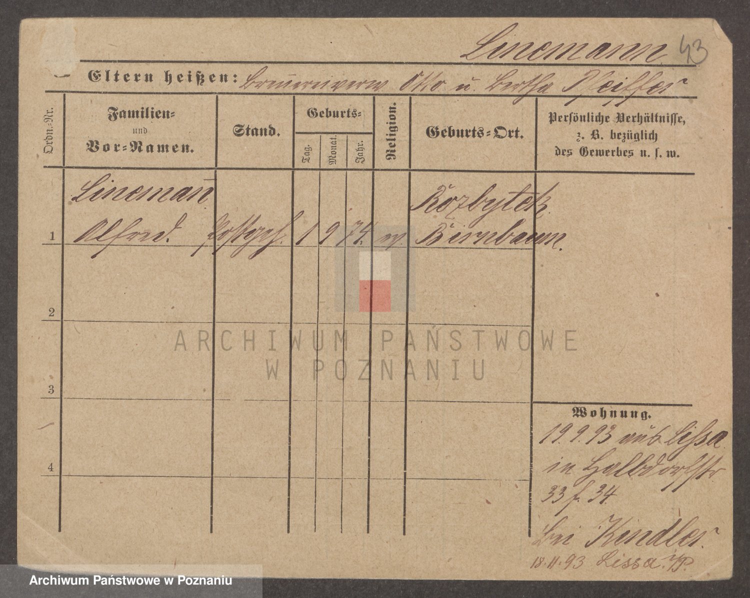 Podgląd karty osobowej dostępny jest po kliknięciu na nazwisko lub ikonkę karty. Można dokonywać powiększenia (ikony na górze) lub przechodzić między kolejnymi skanami (strzałki po bokach).