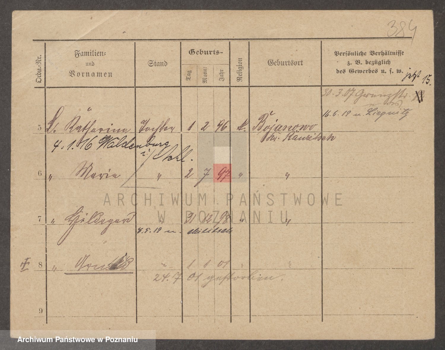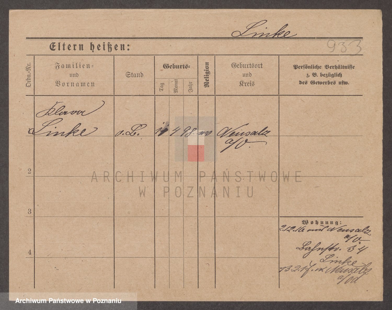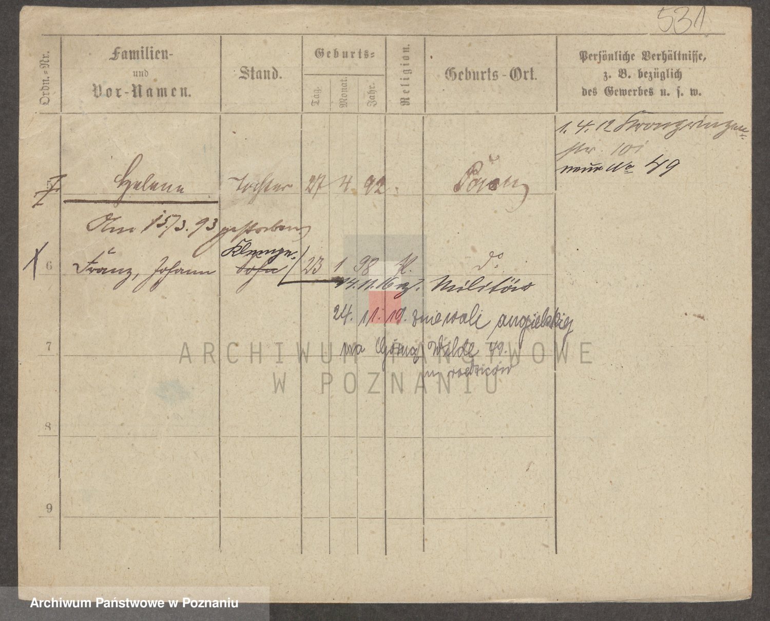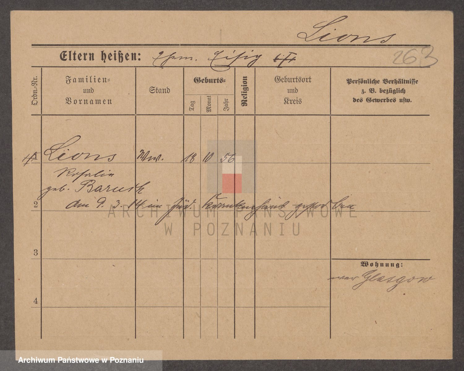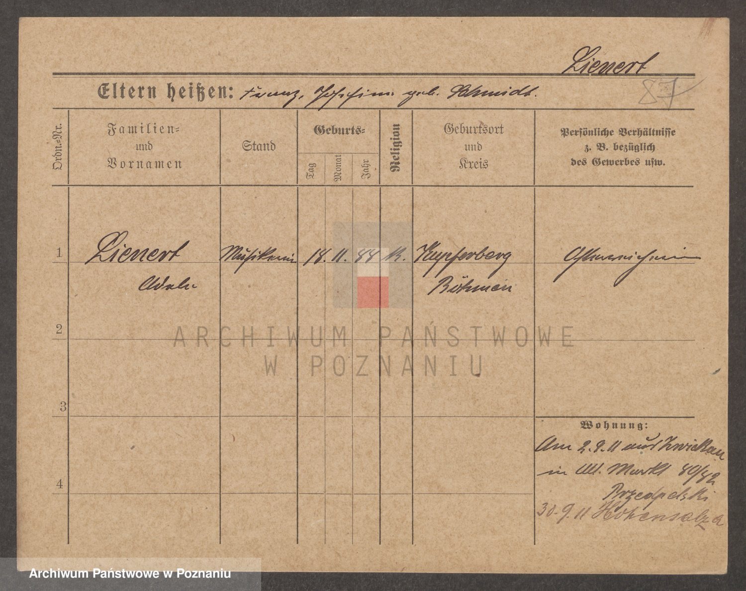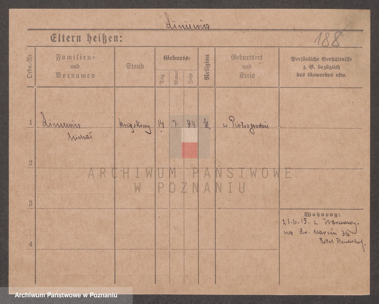 Podgląd karty osobowej dostępny jest po kliknięciu na nazwisko lub ikonkę karty. Można dokonywać powiększenia (ikony na górze) lub przechodzić między kolejnymi skanami (strzałki po bokach).
