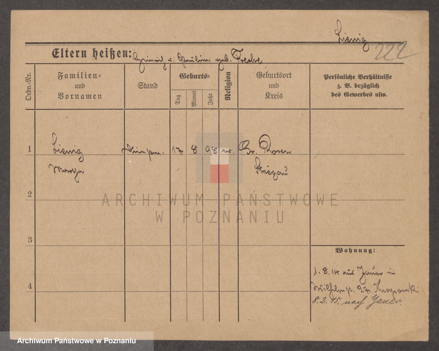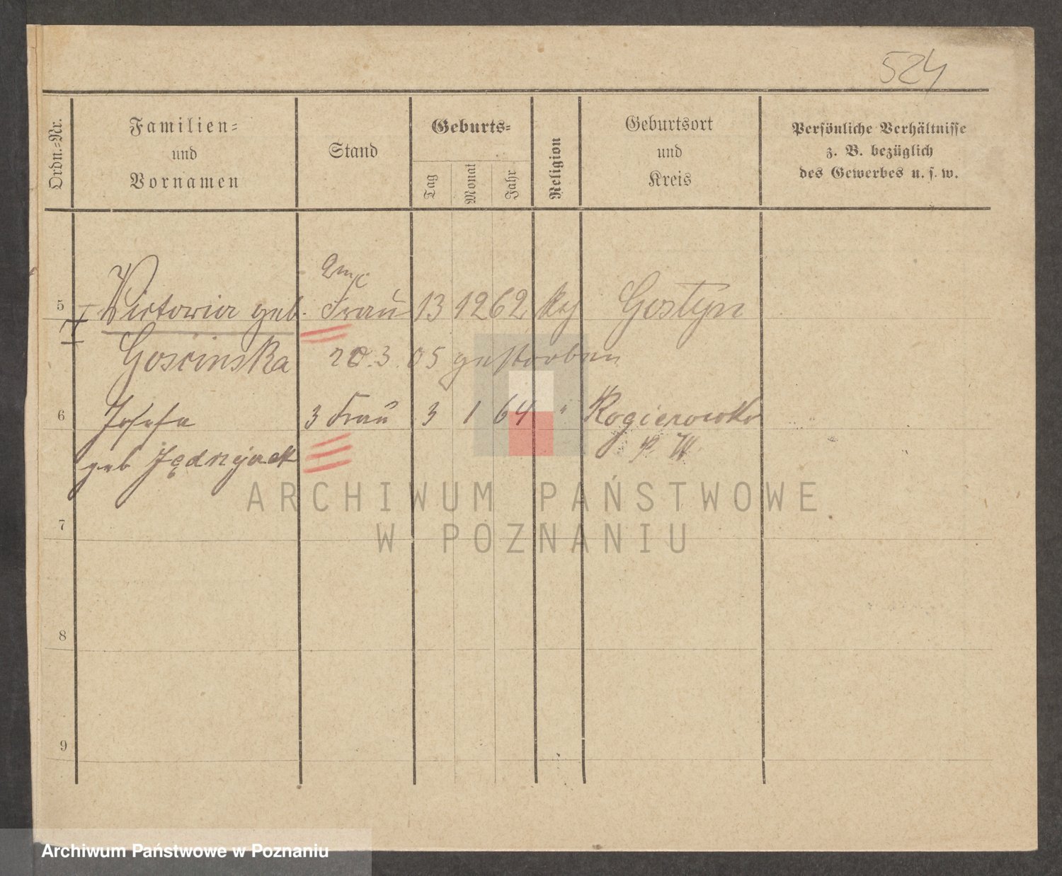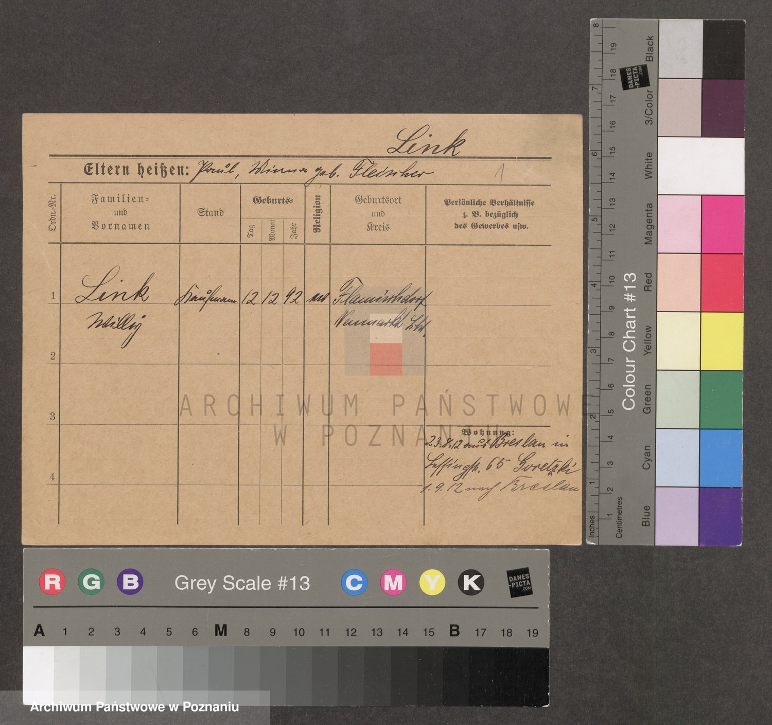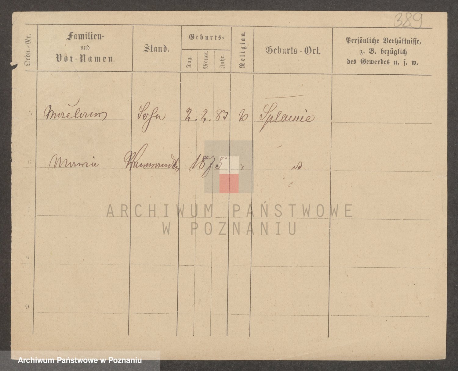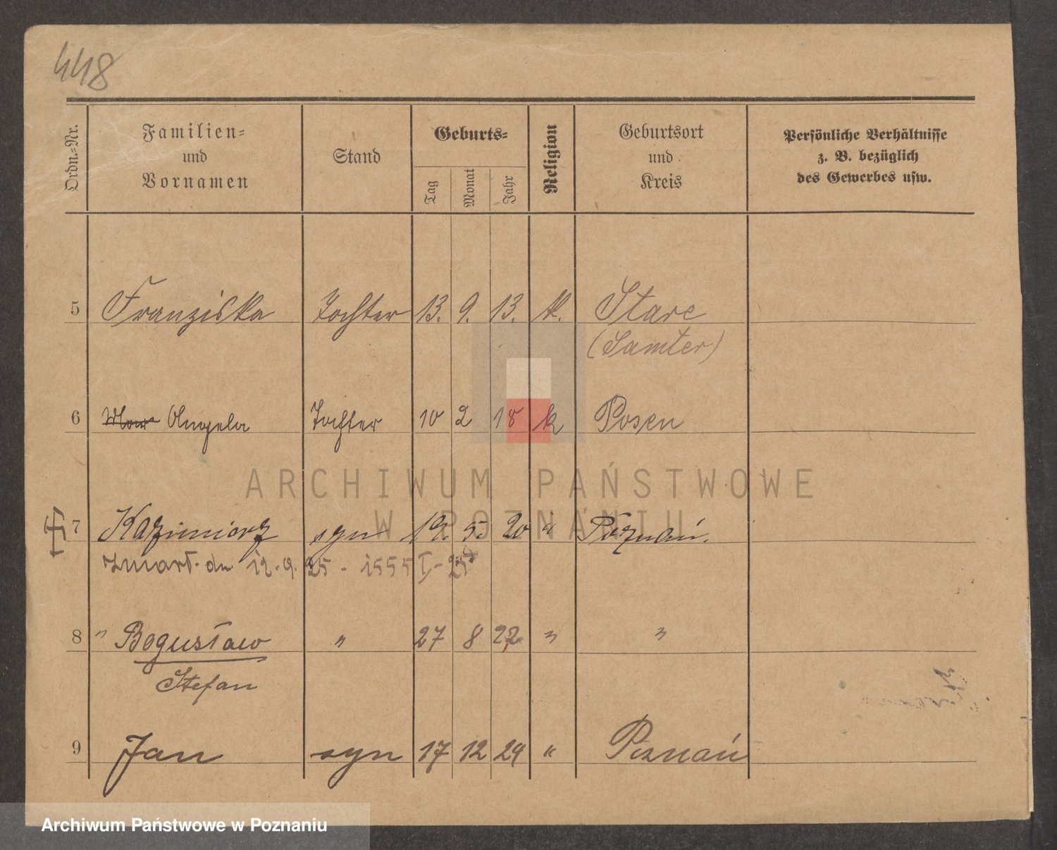 Podgląd karty osobowej dostępny jest po kliknięciu na nazwisko lub ikonkę karty. Można dokonywać powiększenia (ikony na górze) lub przechodzić między kolejnymi skanami (strzałki po bokach).