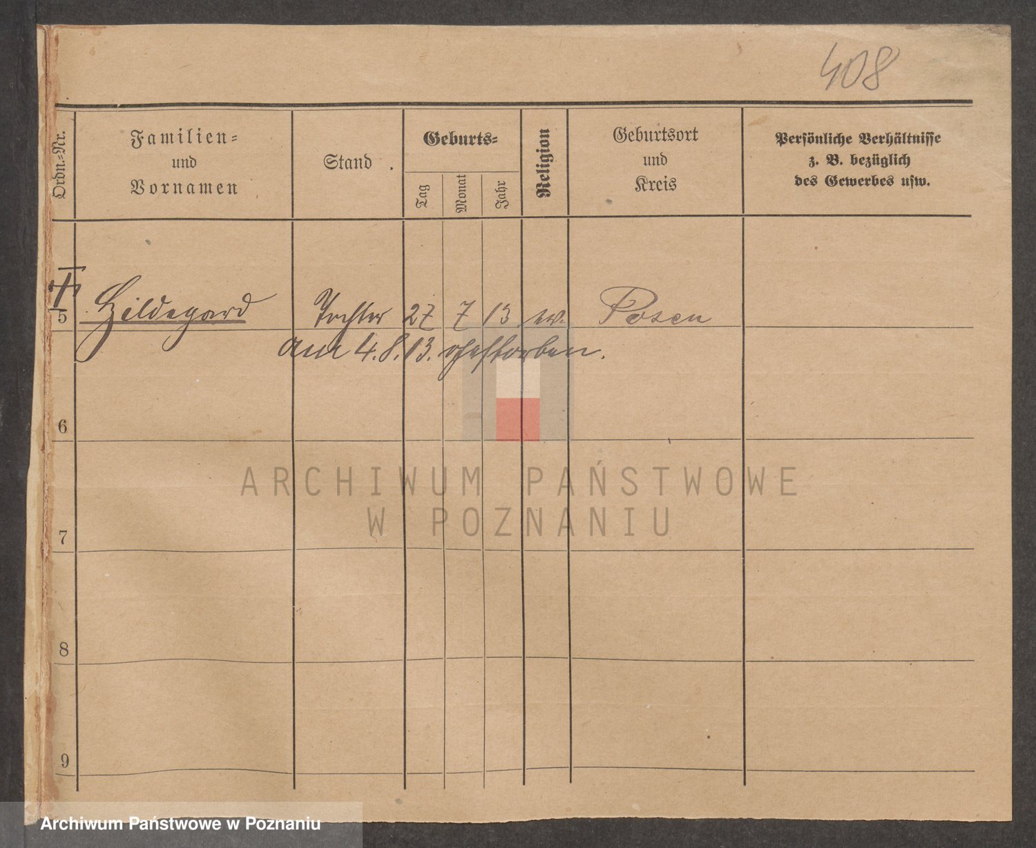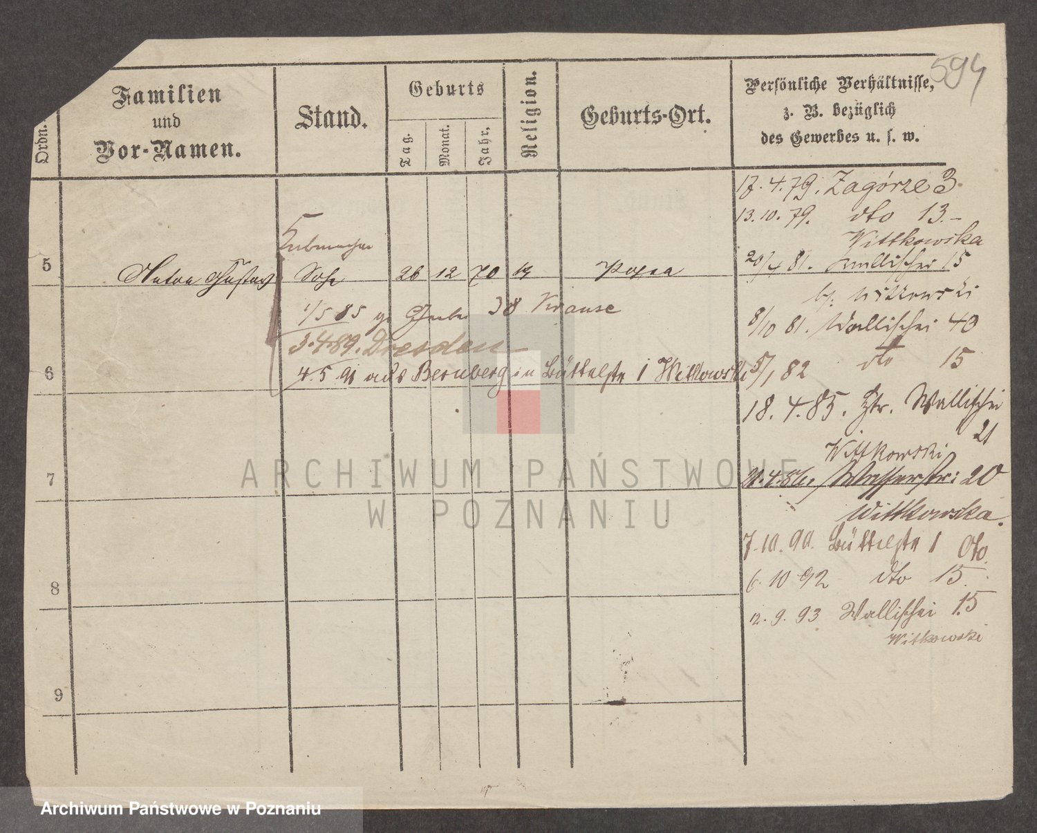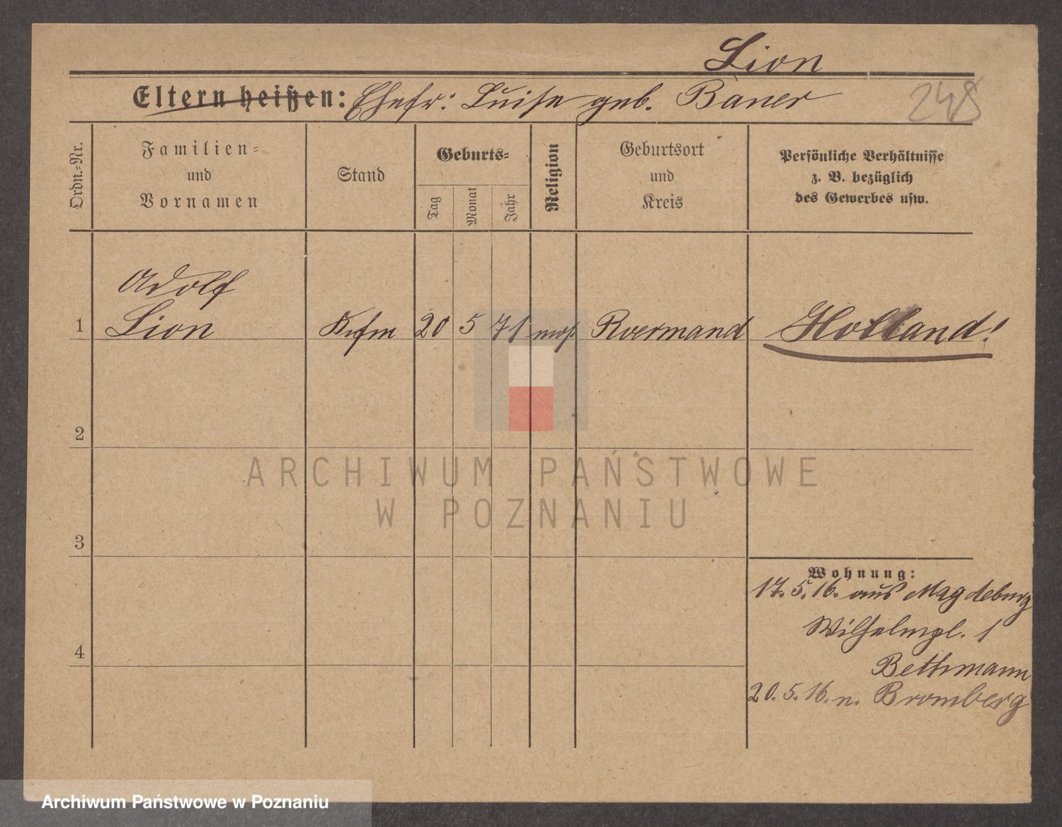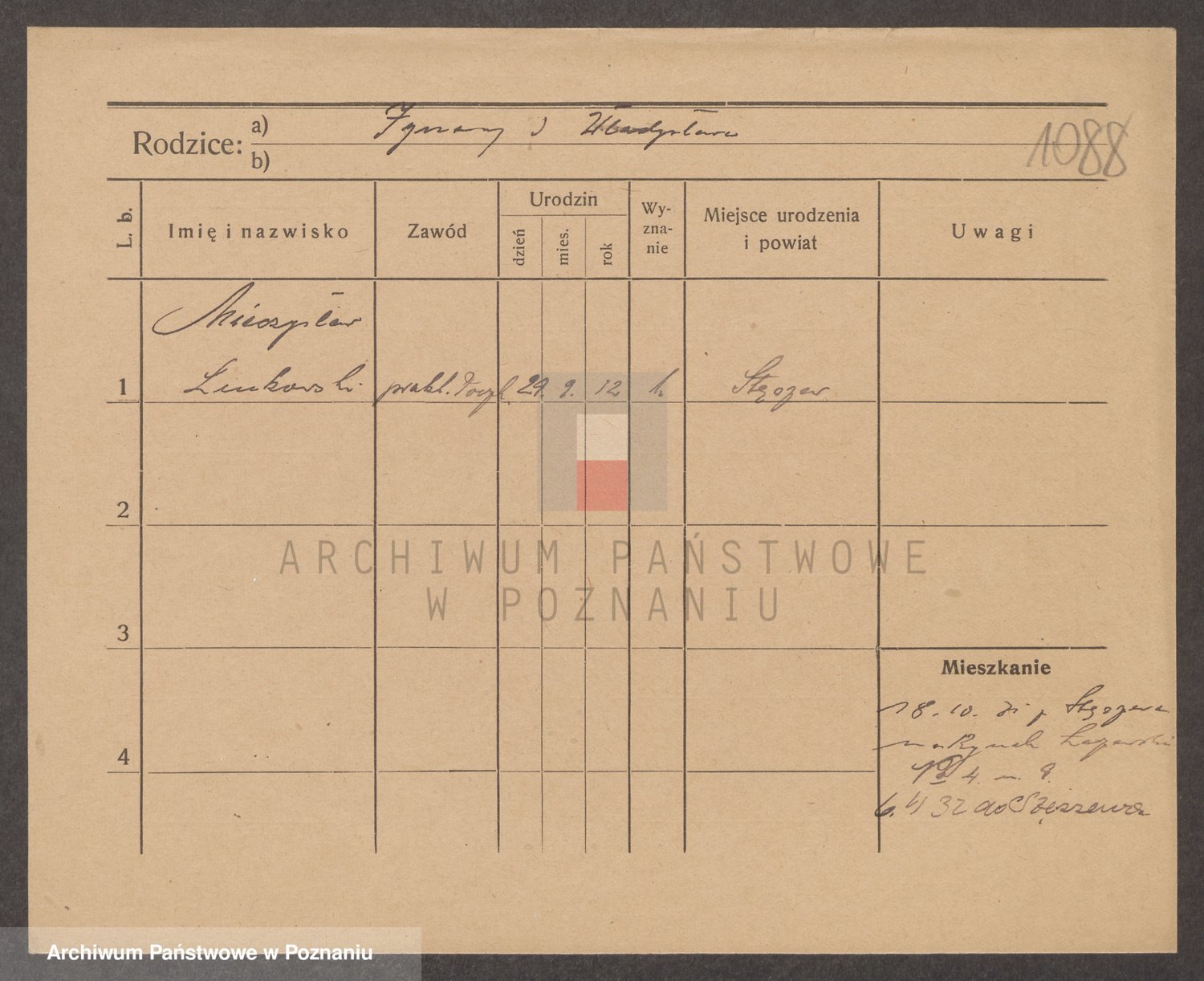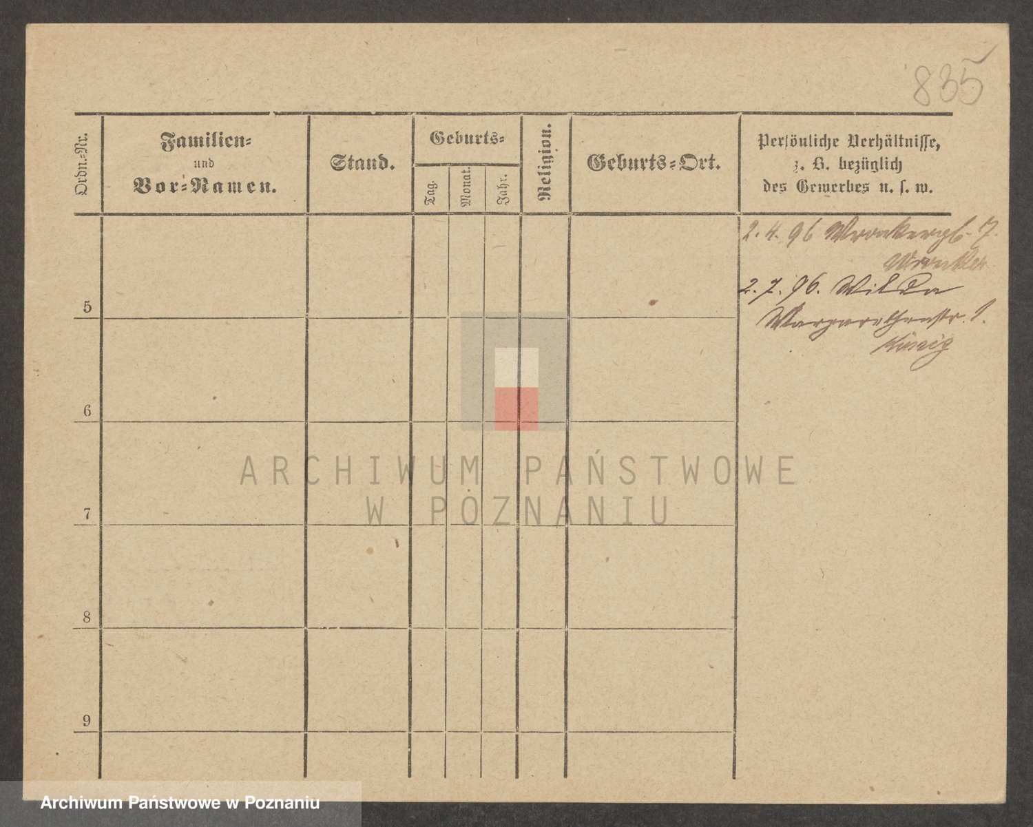 Podgląd karty osobowej dostępny jest po kliknięciu na nazwisko lub ikonkę karty. Można dokonywać powiększenia (ikony na górze) lub przechodzić między kolejnymi skanami (strzałki po bokach).