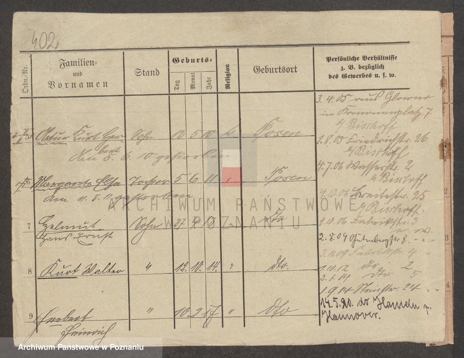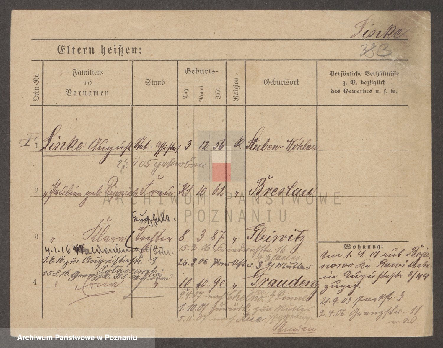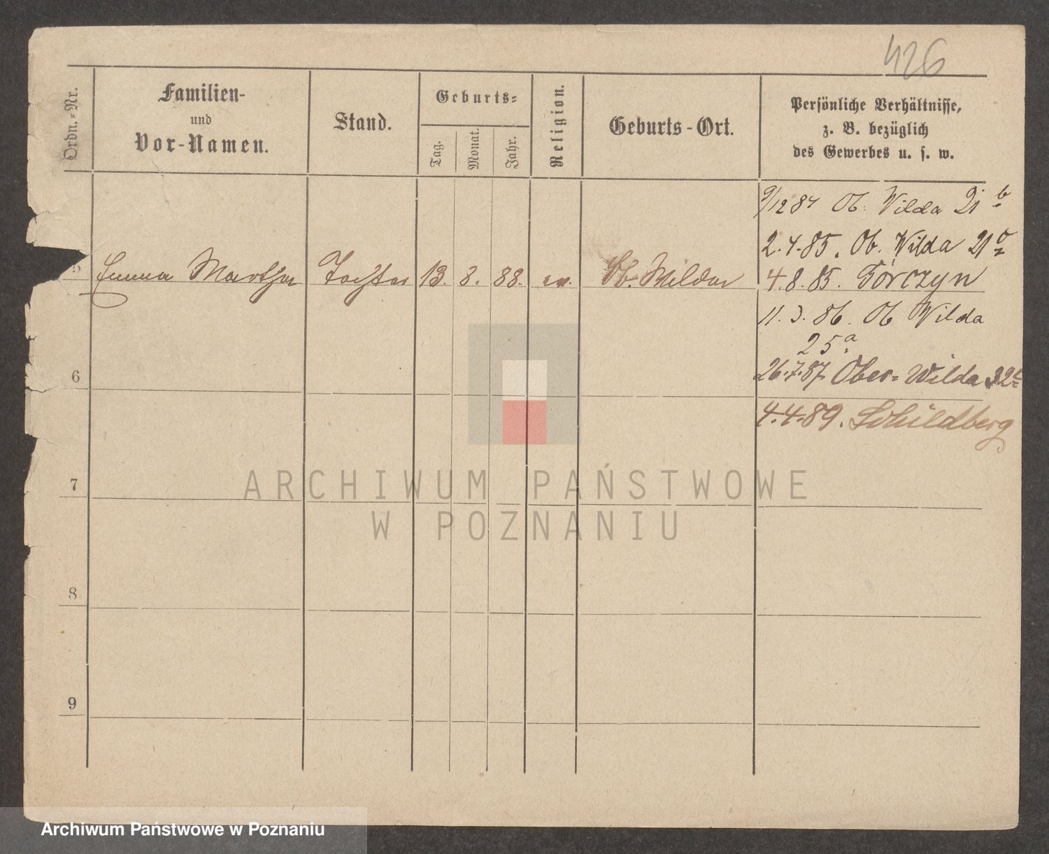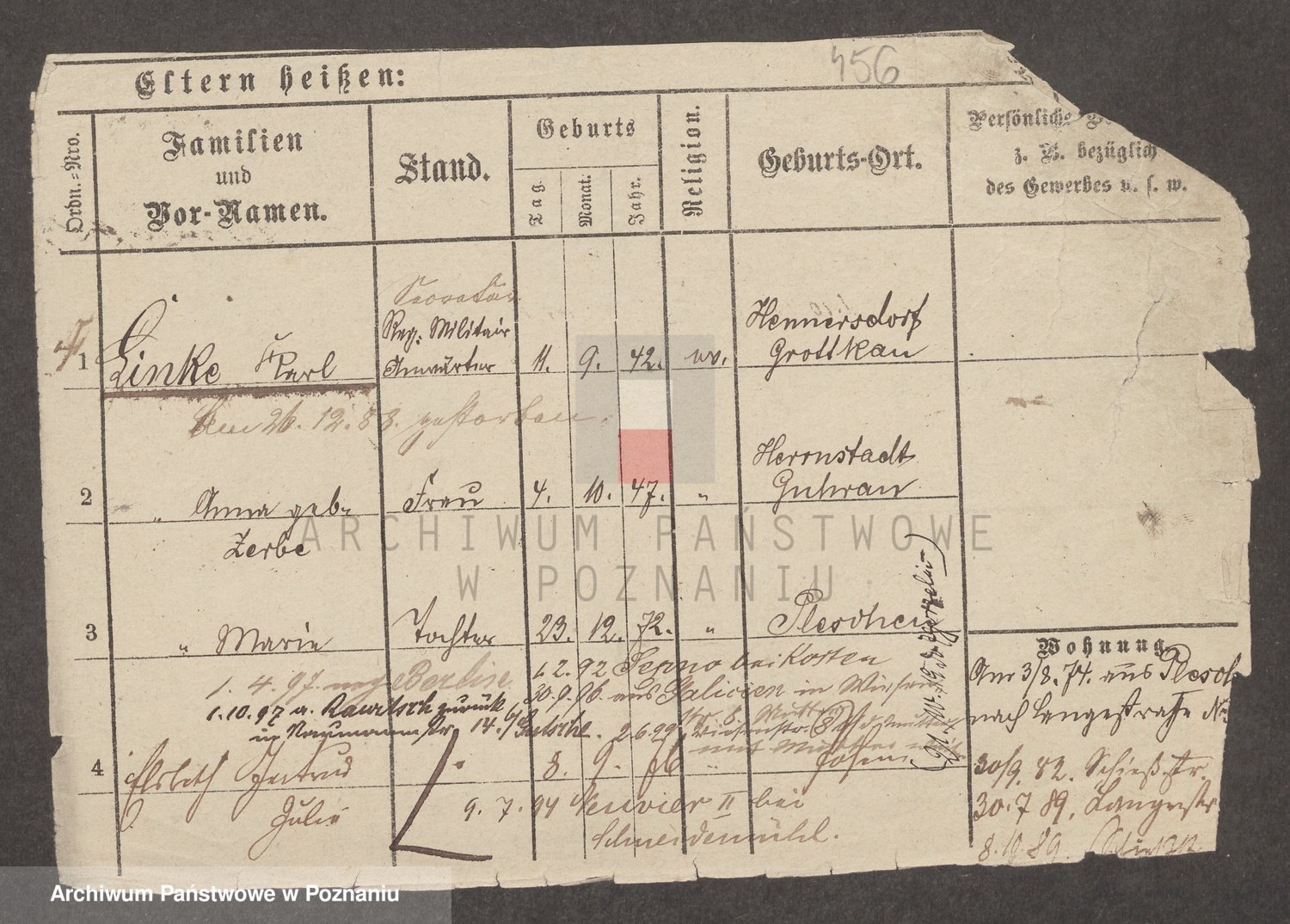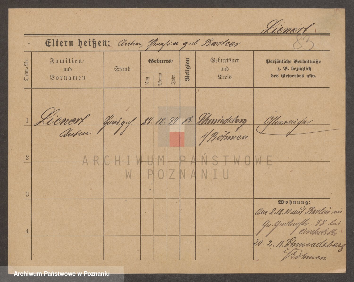 Podgląd karty osobowej dostępny jest po kliknięciu na nazwisko lub ikonkę karty. Można dokonywać powiększenia (ikony na górze) lub przechodzić między kolejnymi skanami (strzałki po bokach).