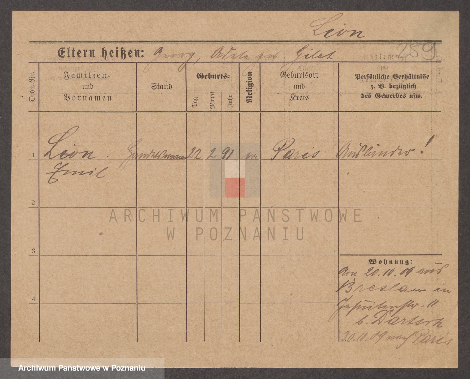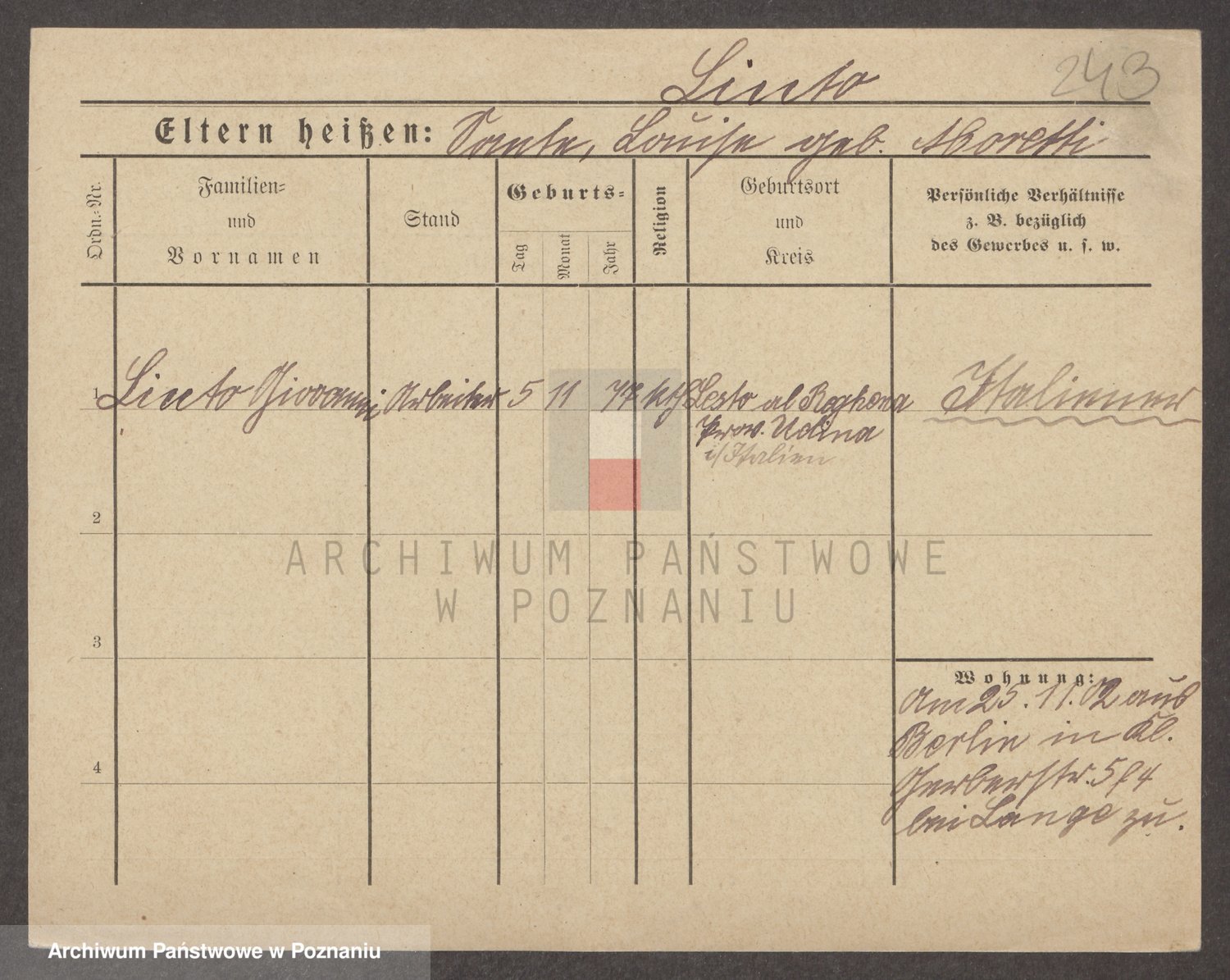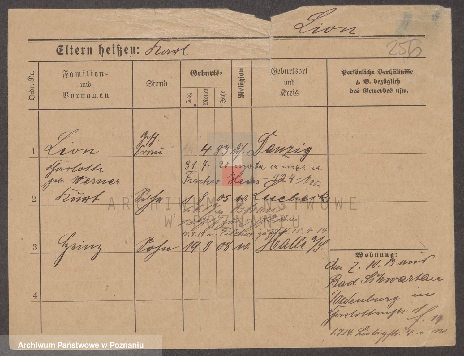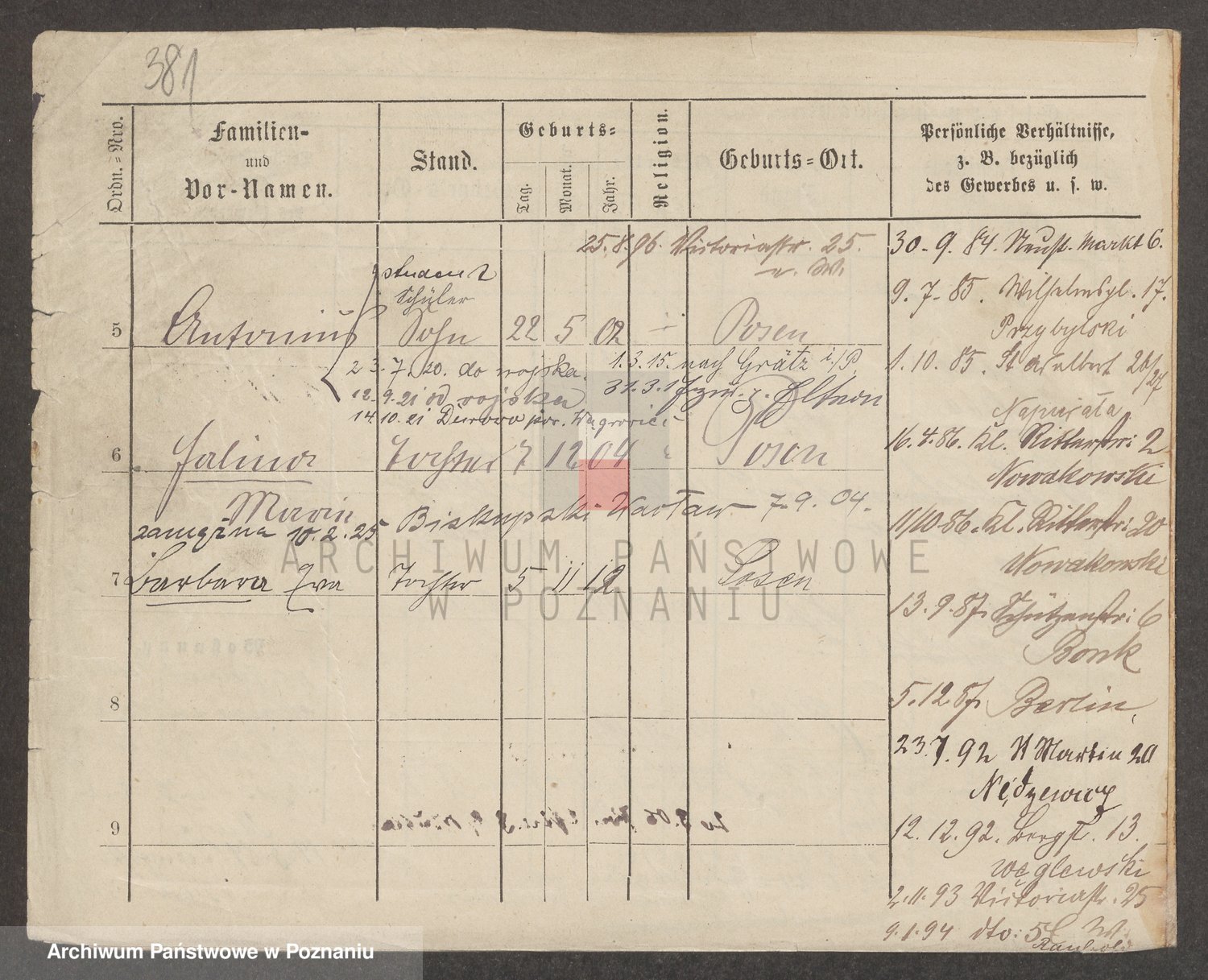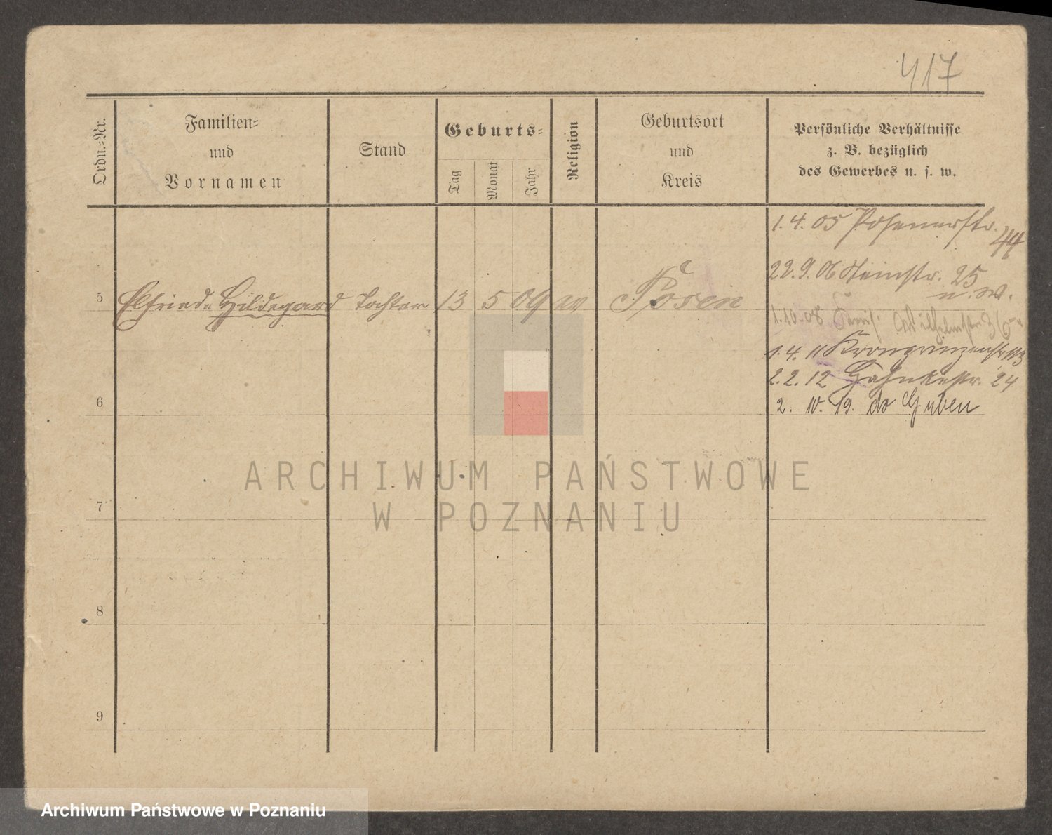 Podgląd karty osobowej dostępny jest po kliknięciu na nazwisko lub ikonkę karty. Można dokonywać powiększenia (ikony na górze) lub przechodzić między kolejnymi skanami (strzałki po bokach).