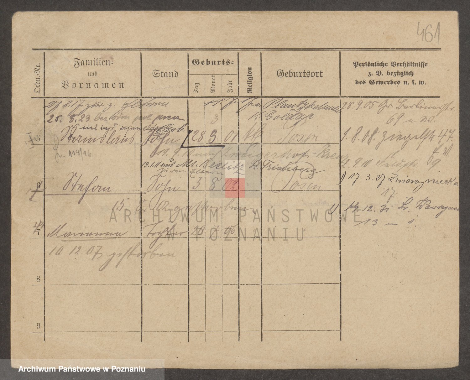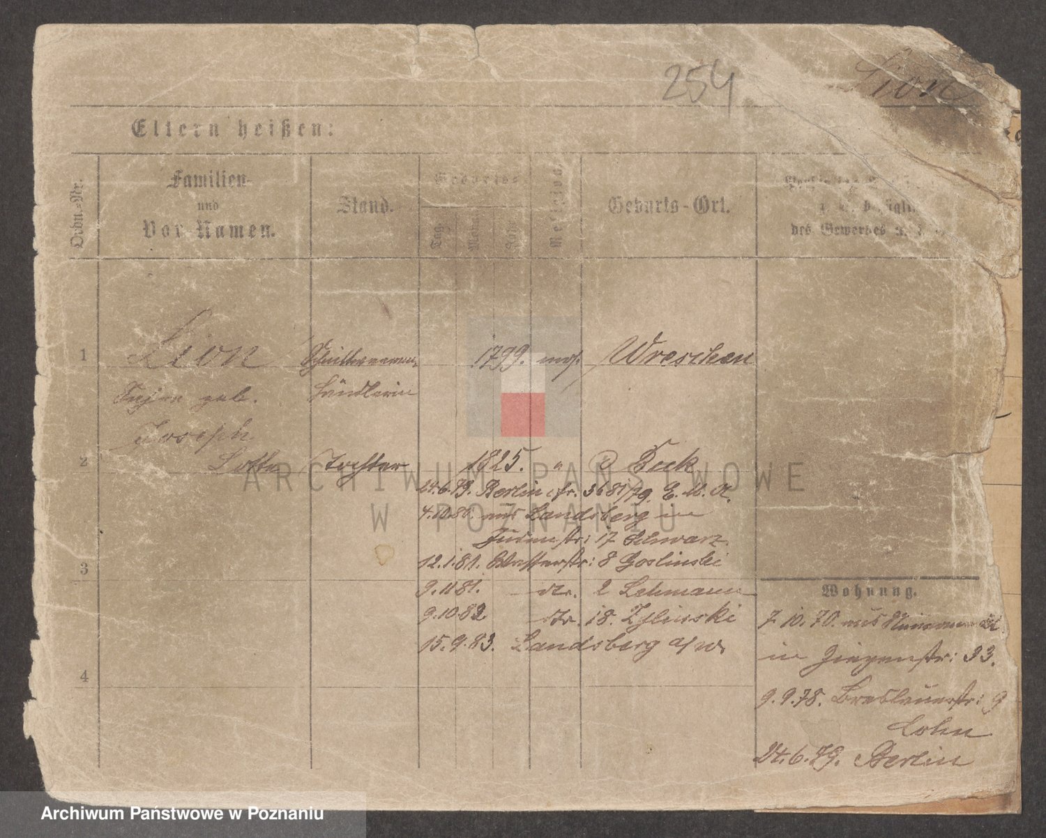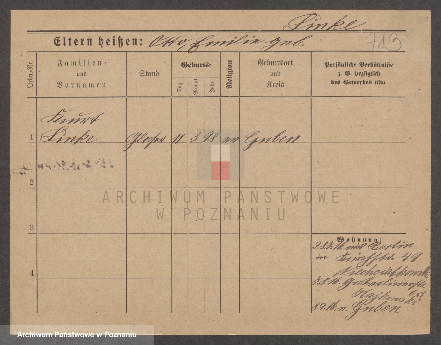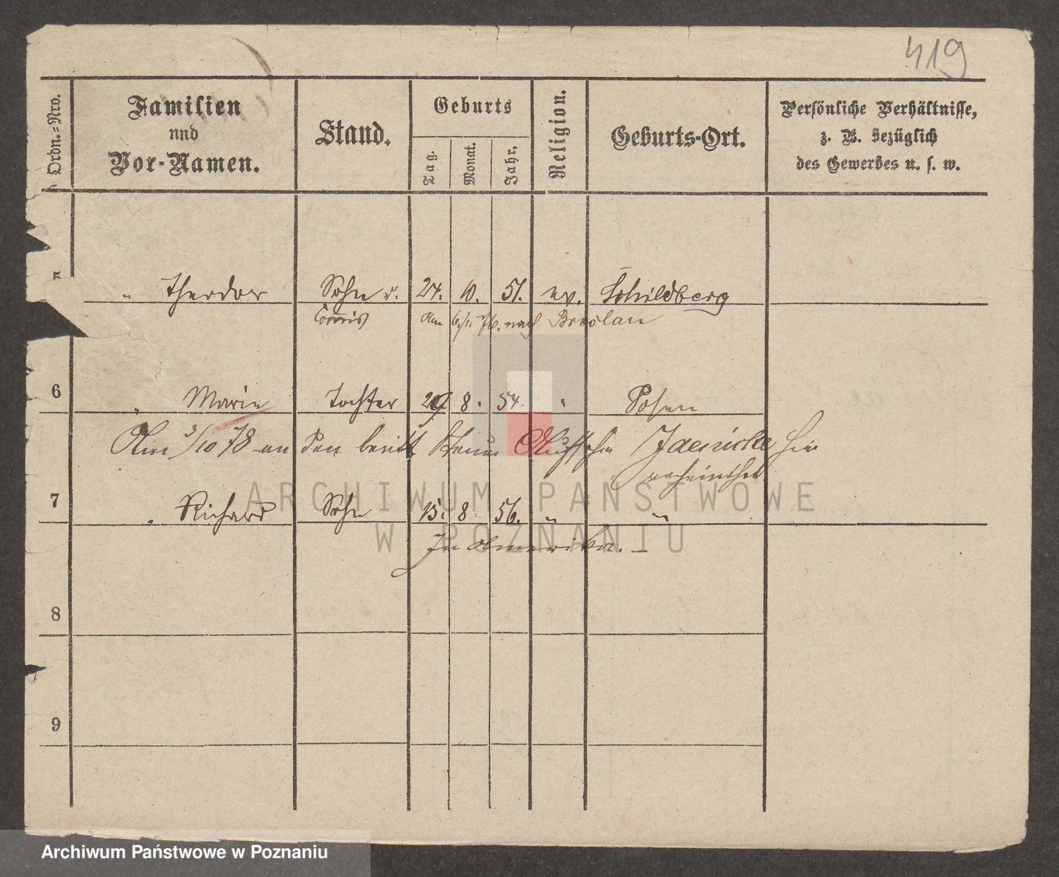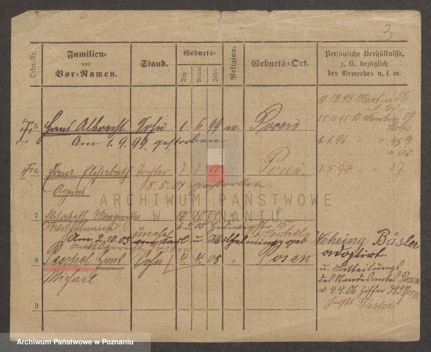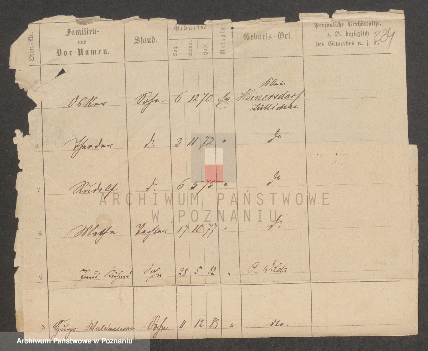 Podgląd karty osobowej dostępny jest po kliknięciu na nazwisko lub ikonkę karty. Można dokonywać powiększenia (ikony na górze) lub przechodzić między kolejnymi skanami (strzałki po bokach).