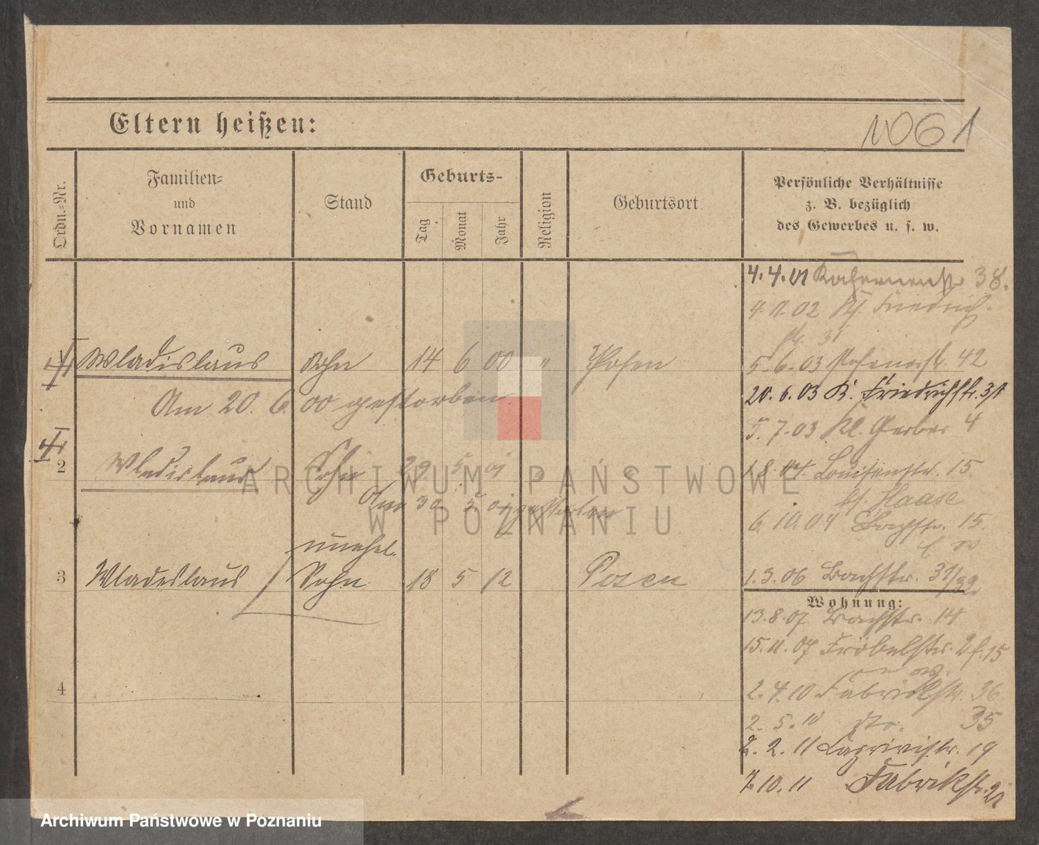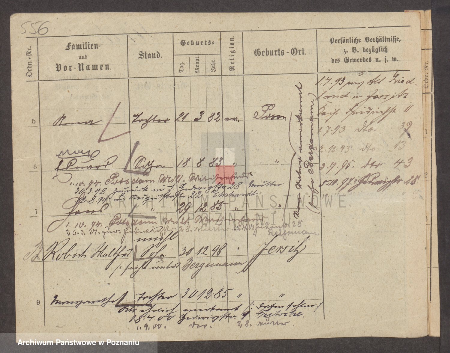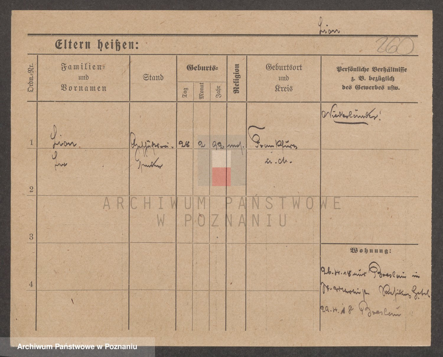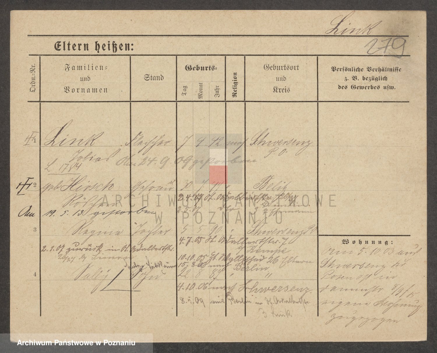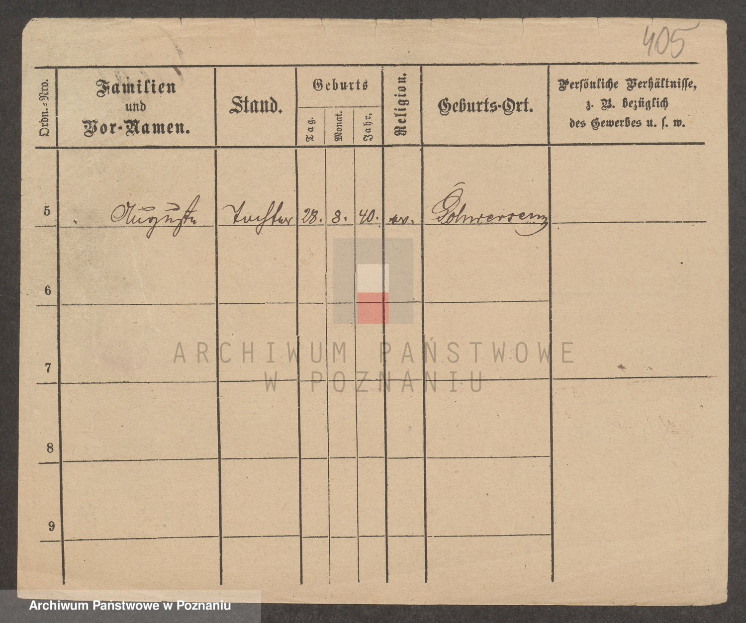 Podgląd karty osobowej dostępny jest po kliknięciu na nazwisko lub ikonkę karty. Można dokonywać powiększenia (ikony na górze) lub przechodzić między kolejnymi skanami (strzałki po bokach).