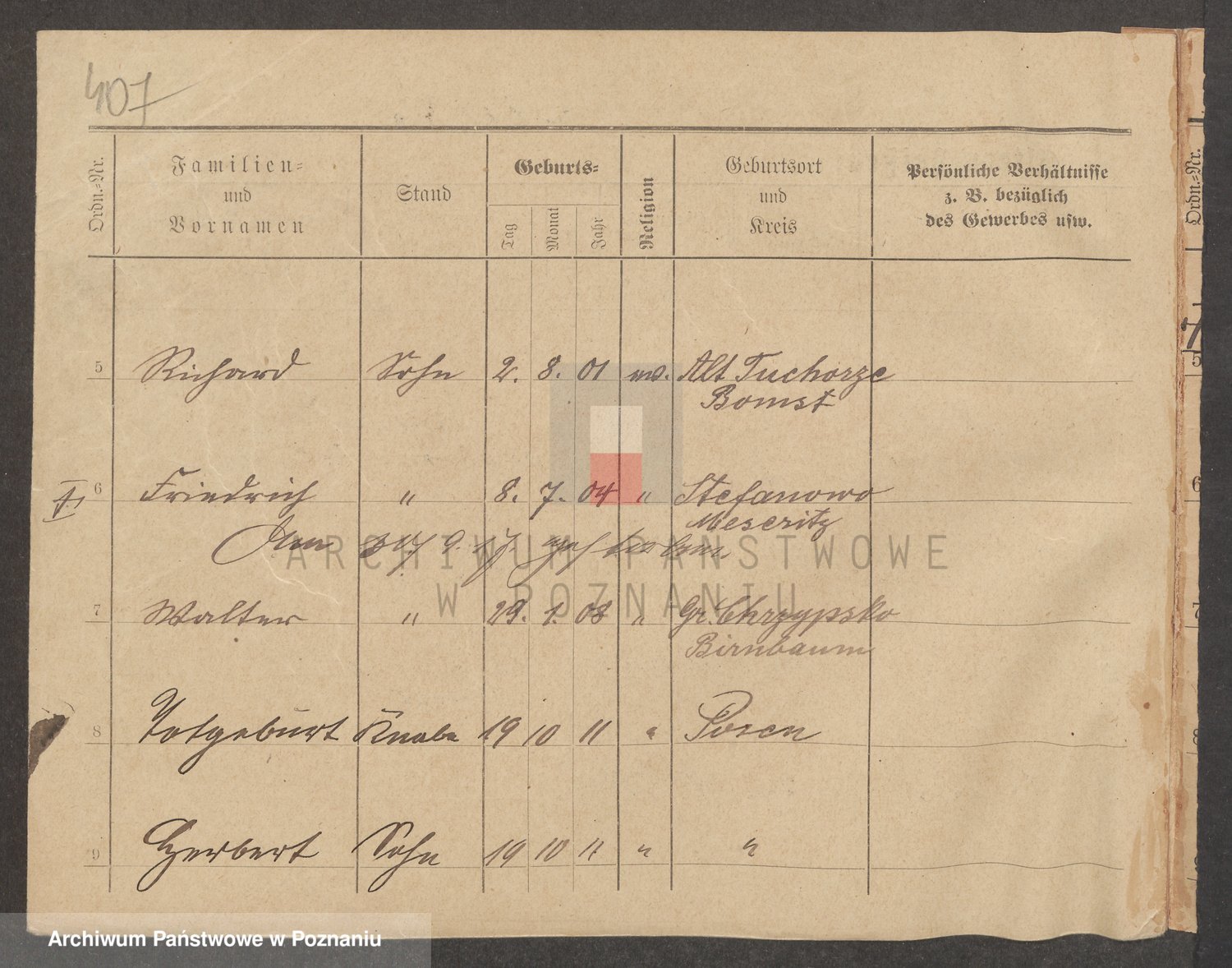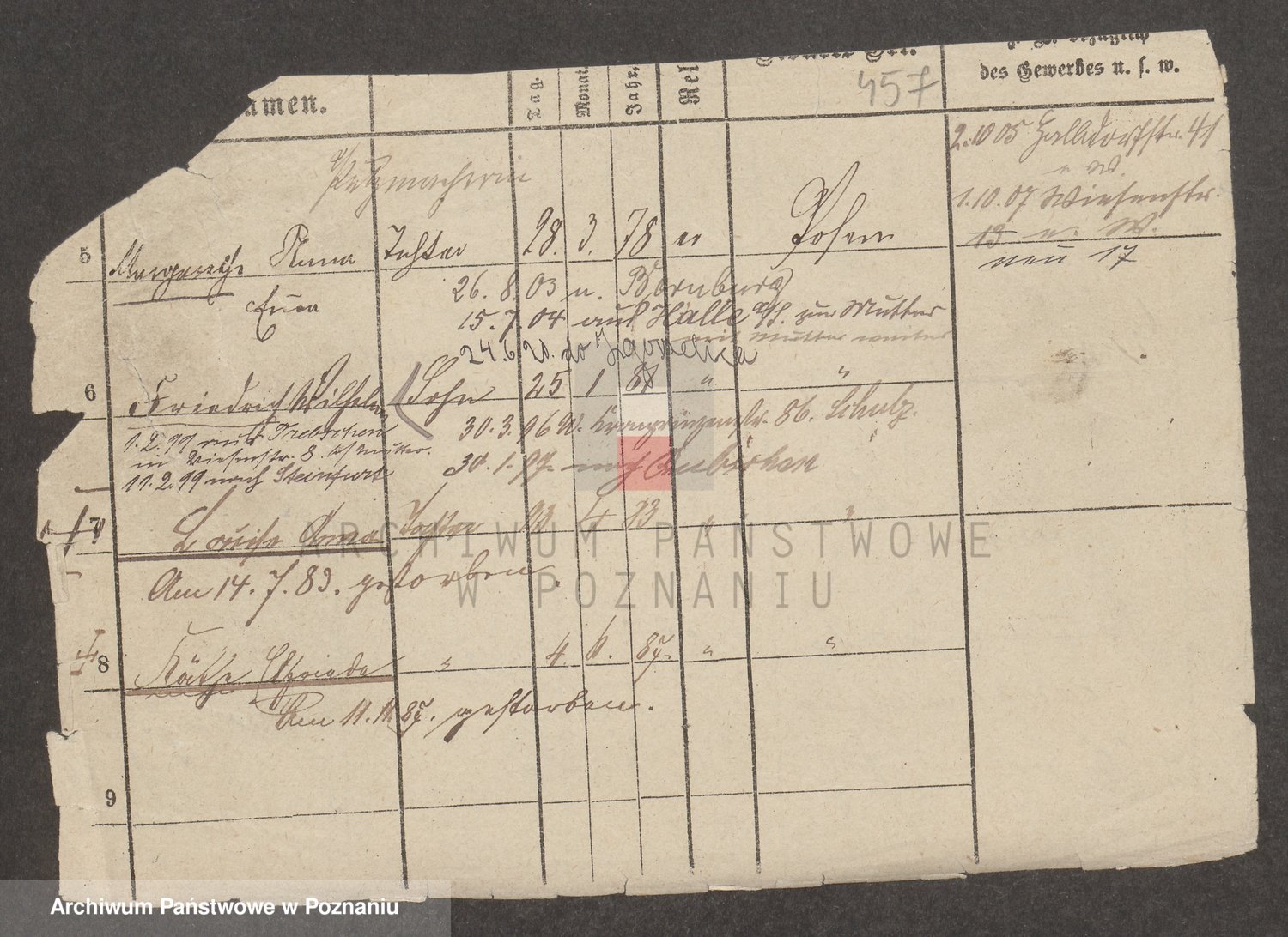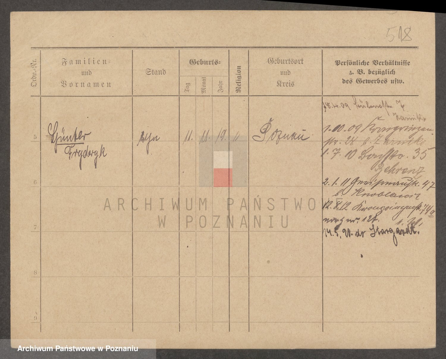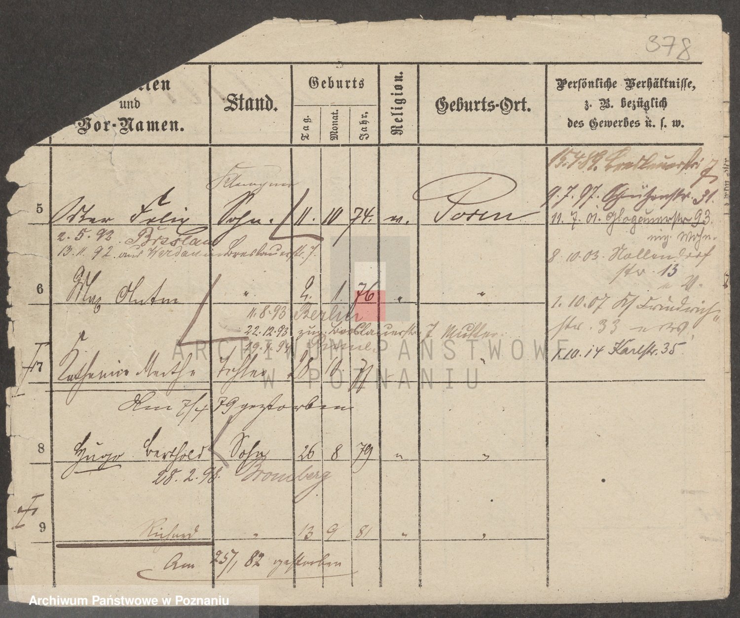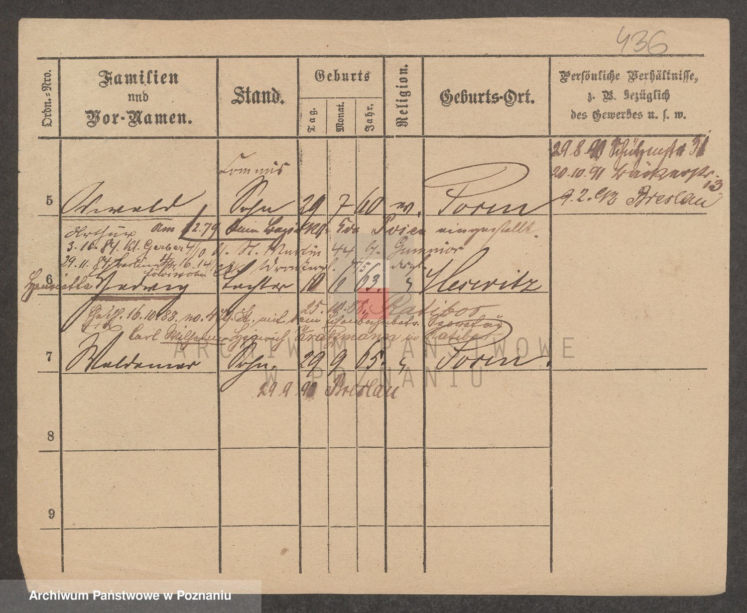 Podgląd karty osobowej dostępny jest po kliknięciu na nazwisko lub ikonkę karty. Można dokonywać powiększenia (ikony na górze) lub przechodzić między kolejnymi skanami (strzałki po bokach).