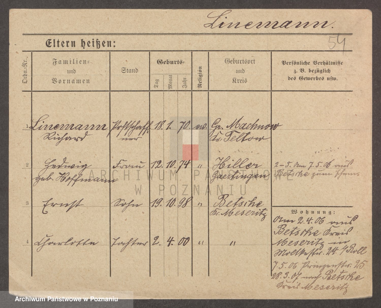 Linnebach z.d. Rieselmann, Marie Sophie