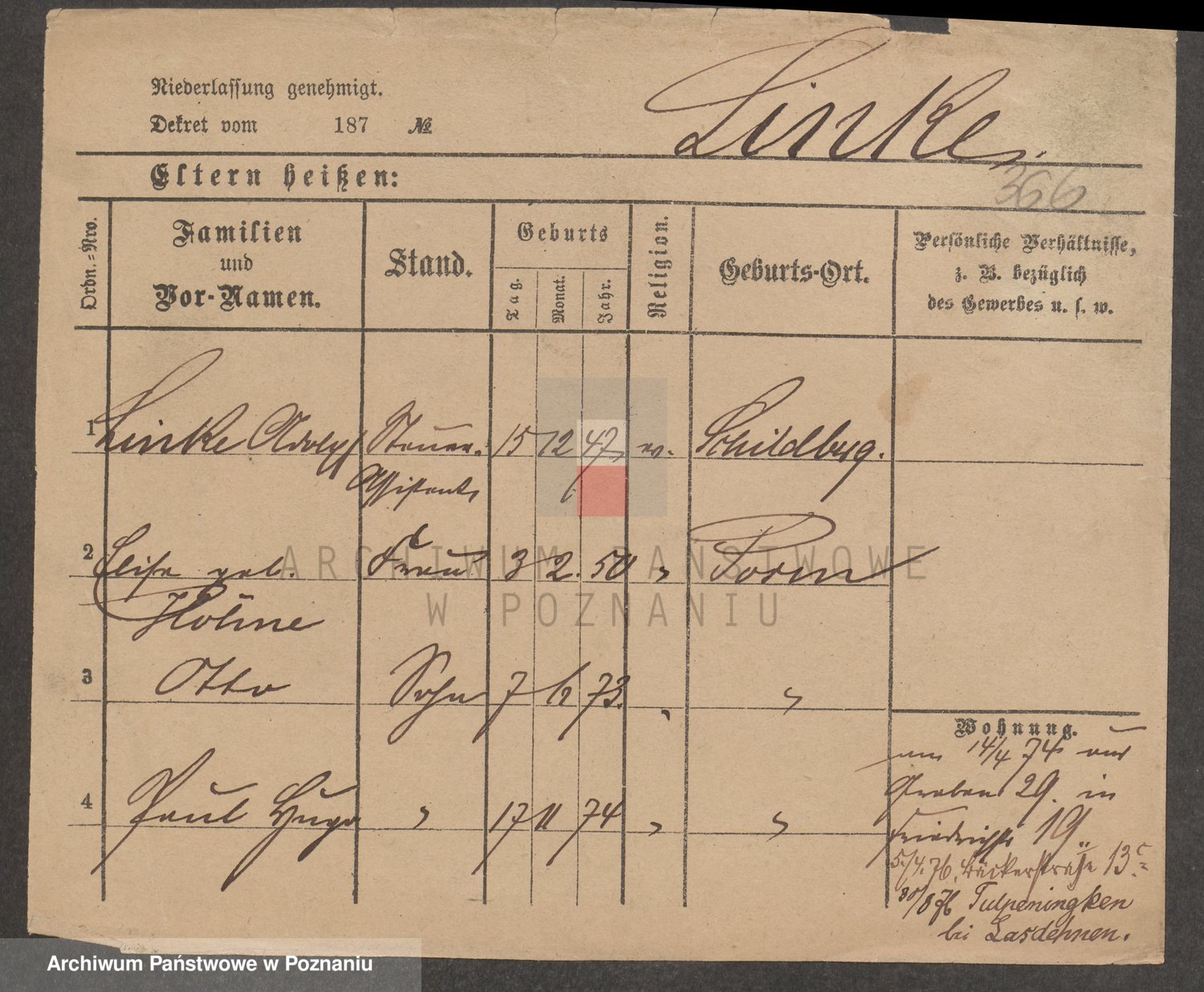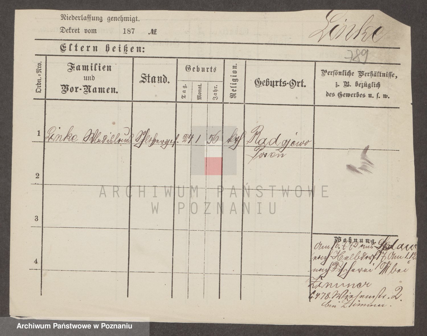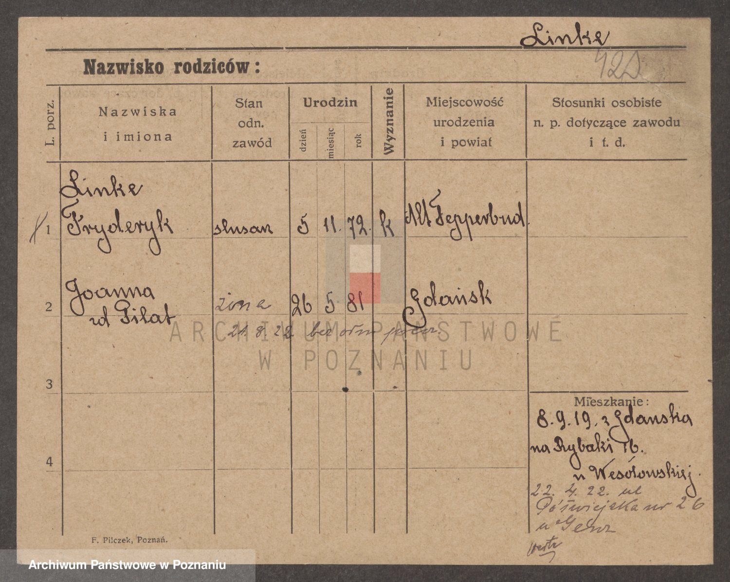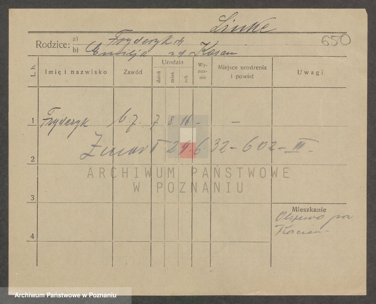 Linnemann z.d. Rocancka, Fridderika