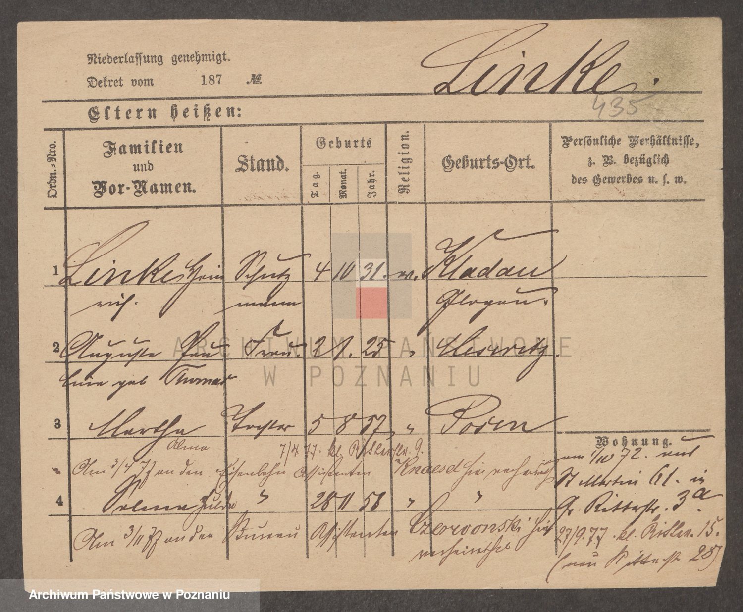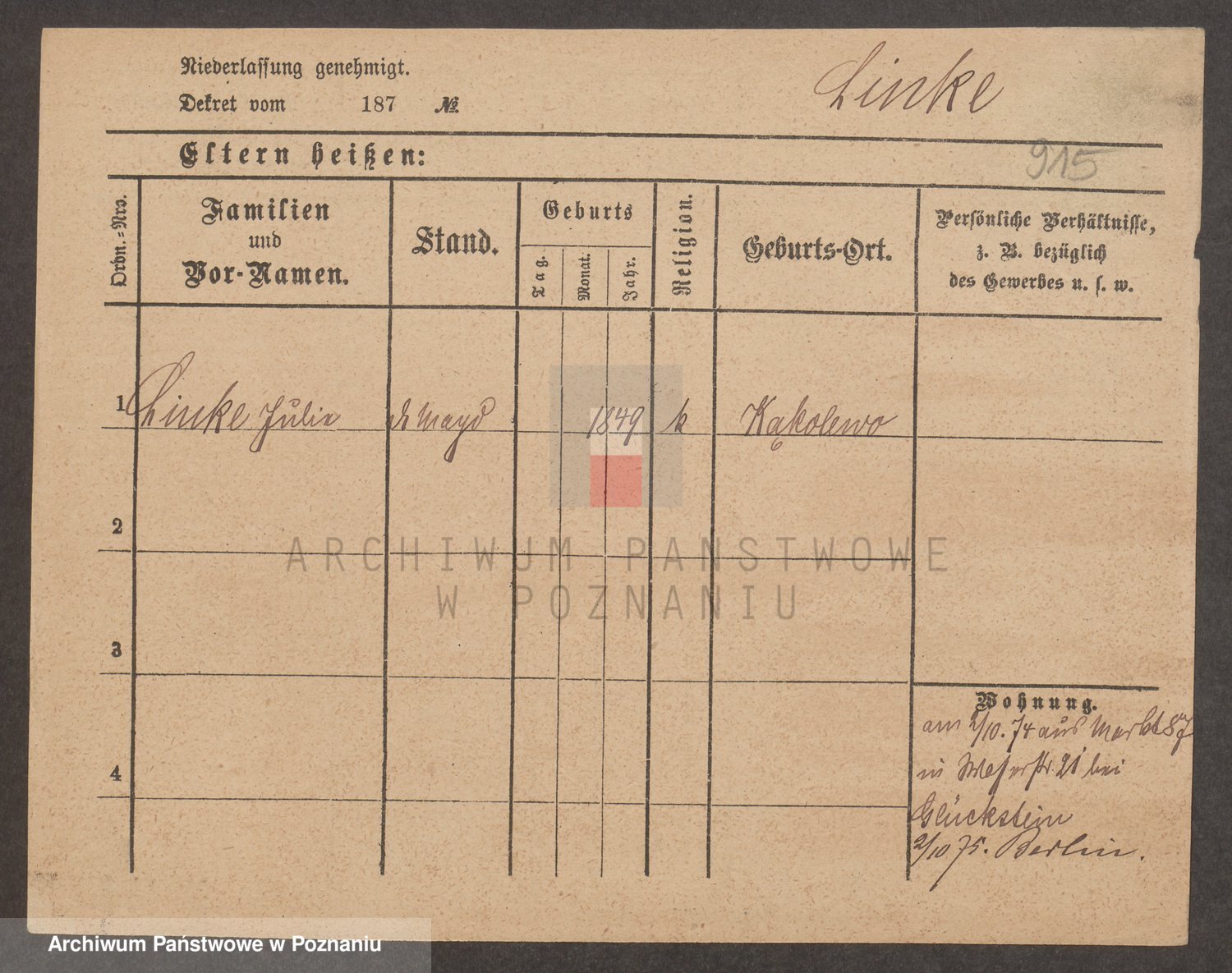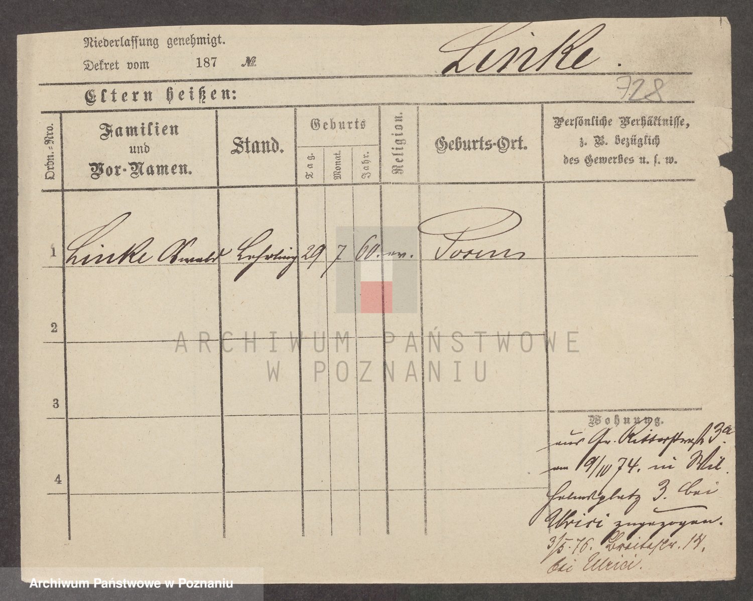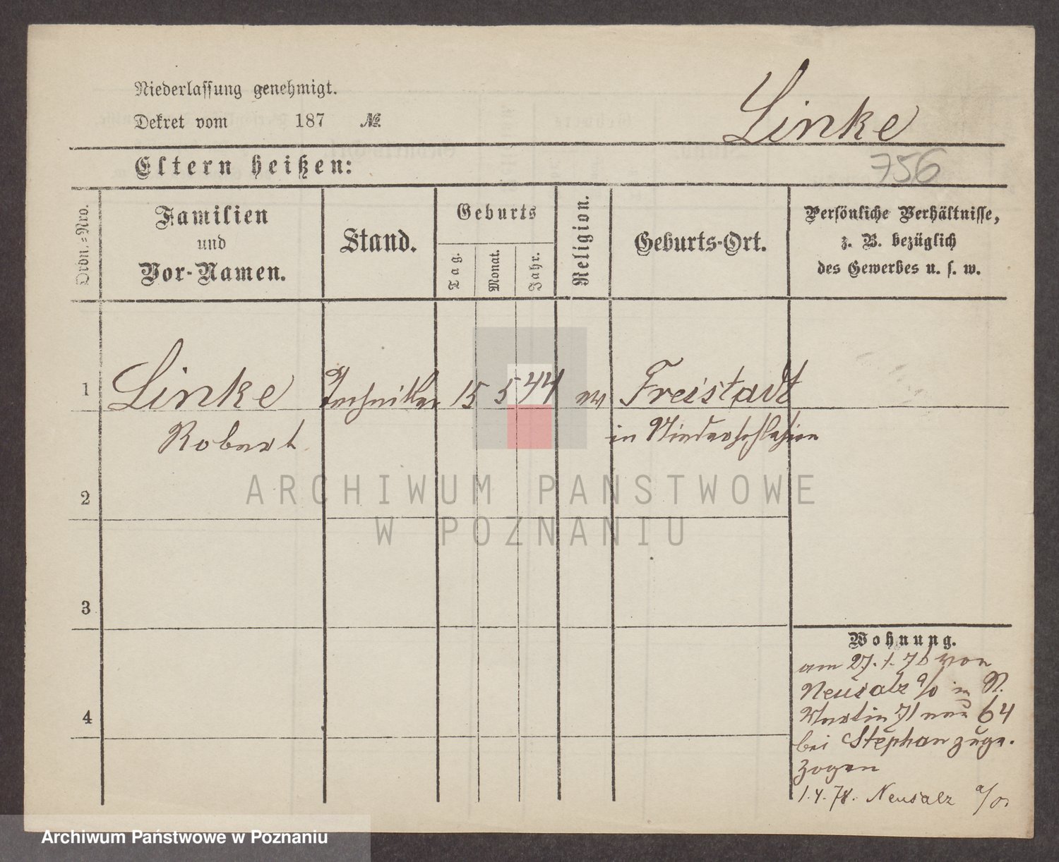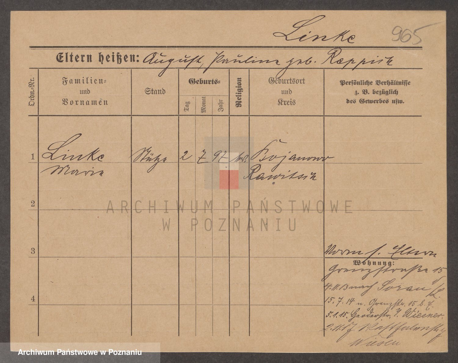 Linnemann z.d. Rocancka, Fridderika