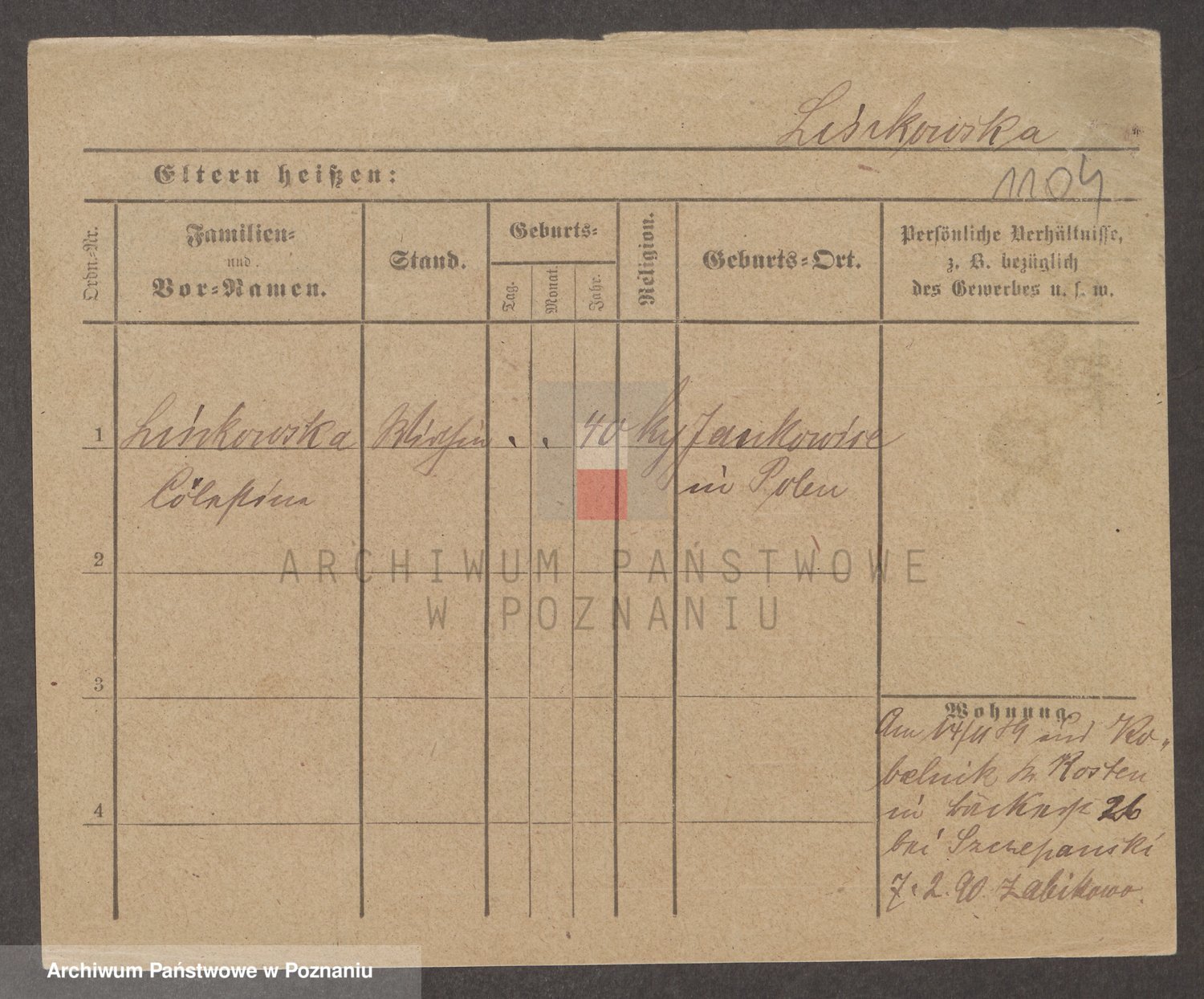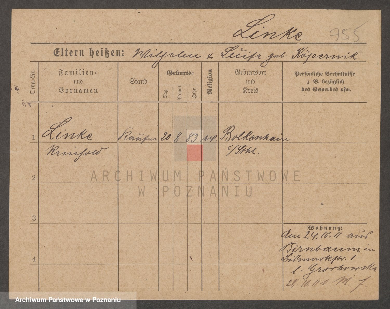 Linkowska, Cölestina