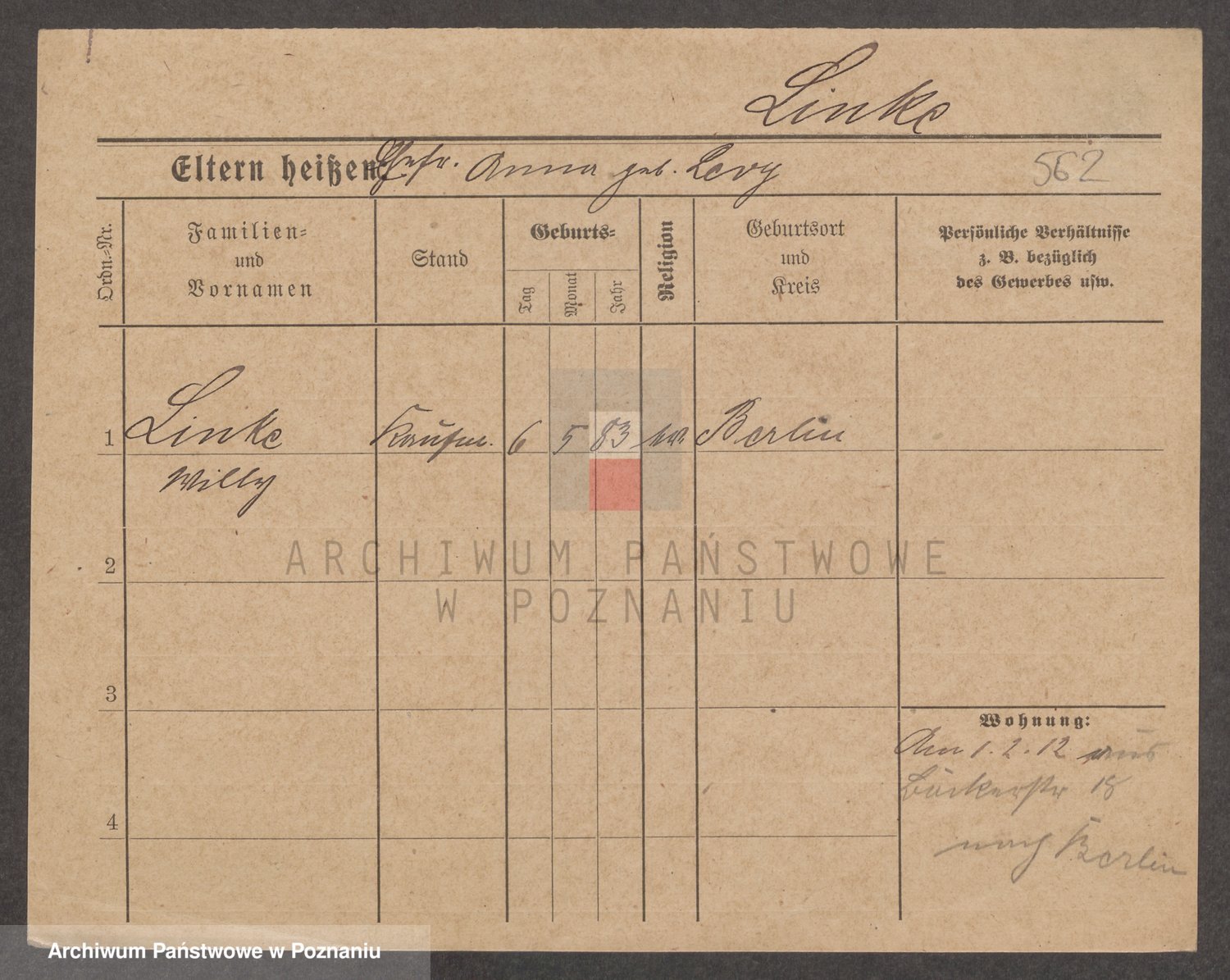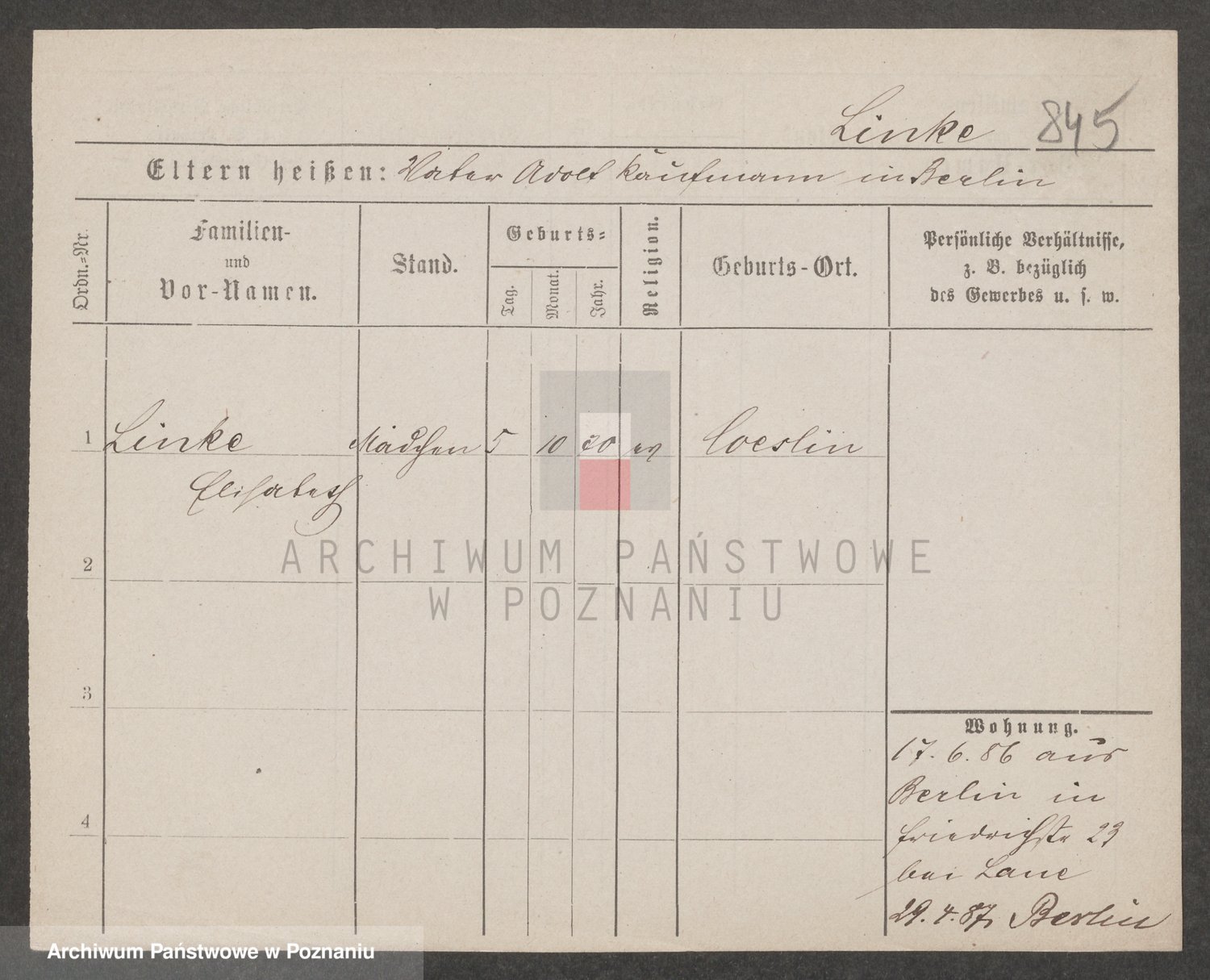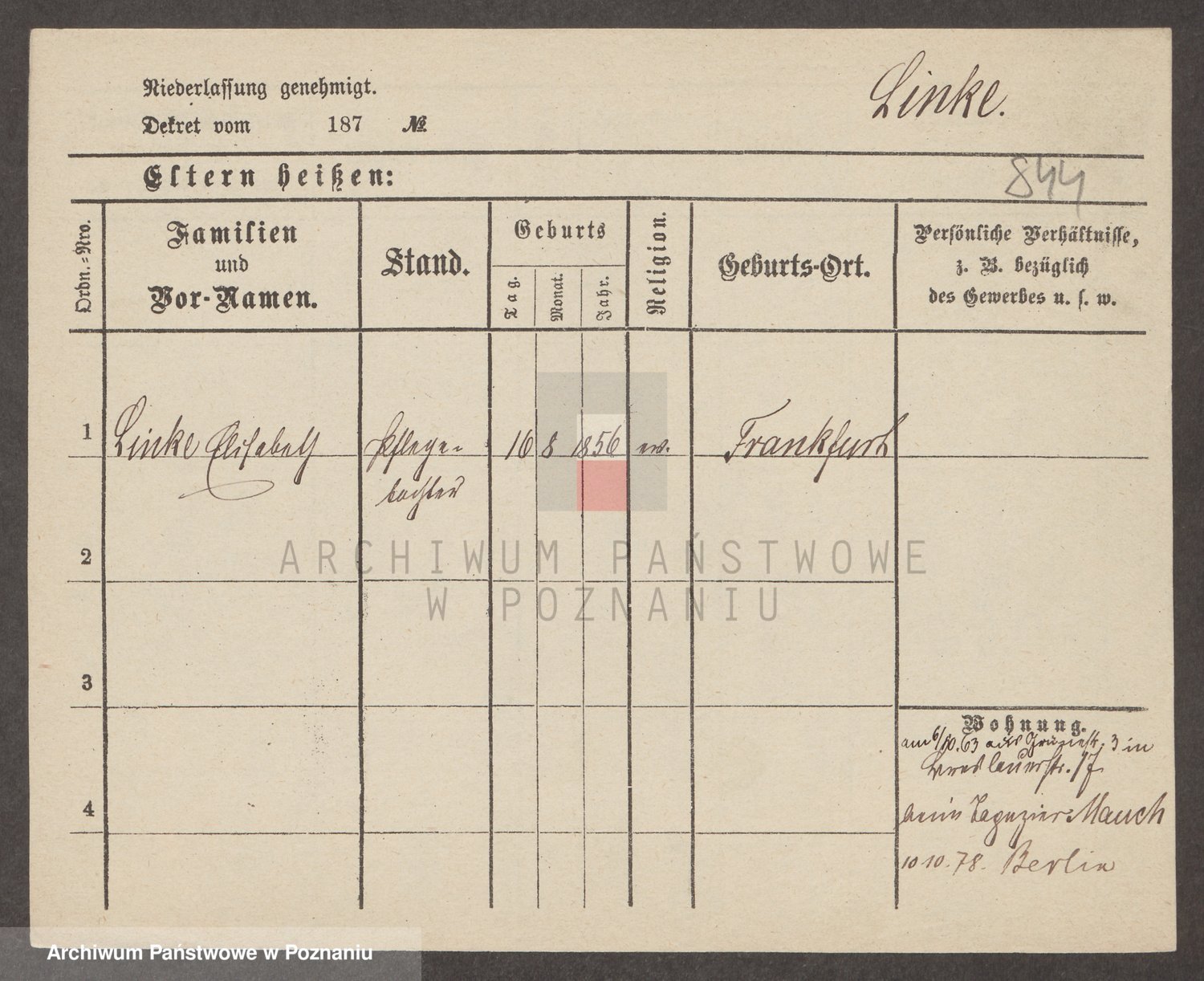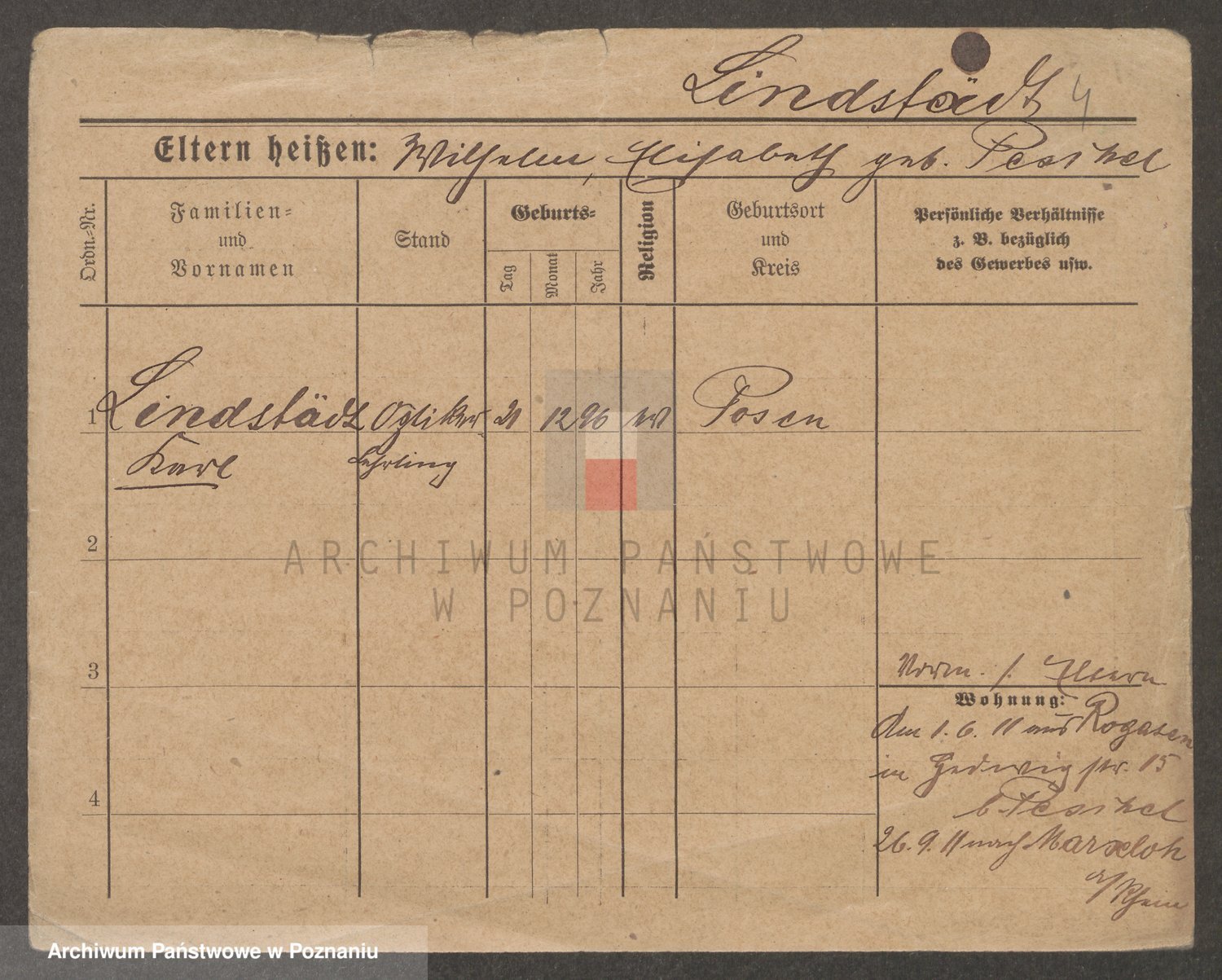 Lindstädt, Elisabeth Margarethe Wilhelmine