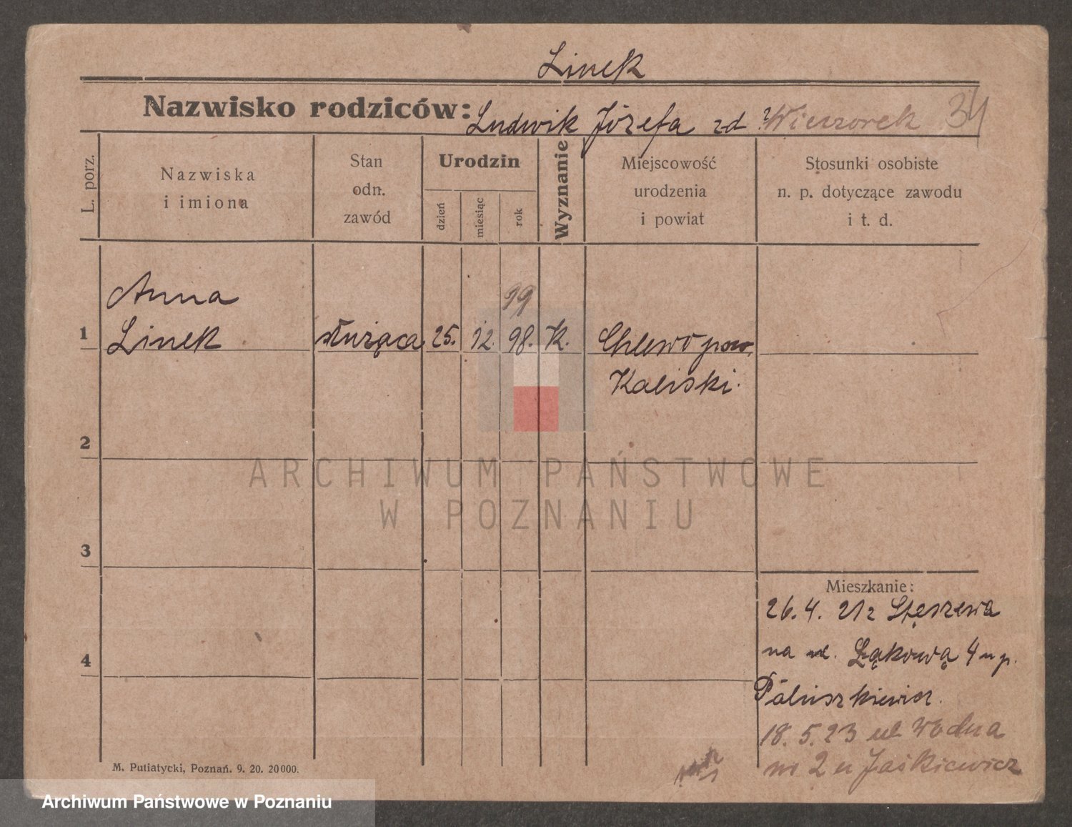 Linek z.d. Stanisławska, Józefa