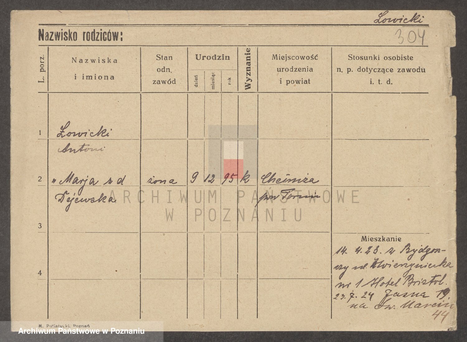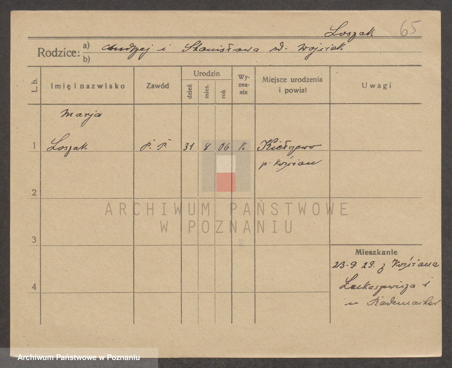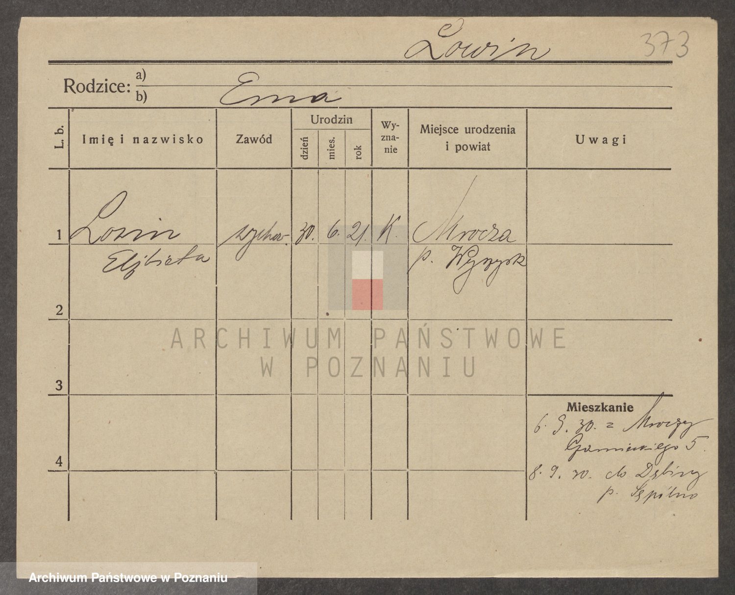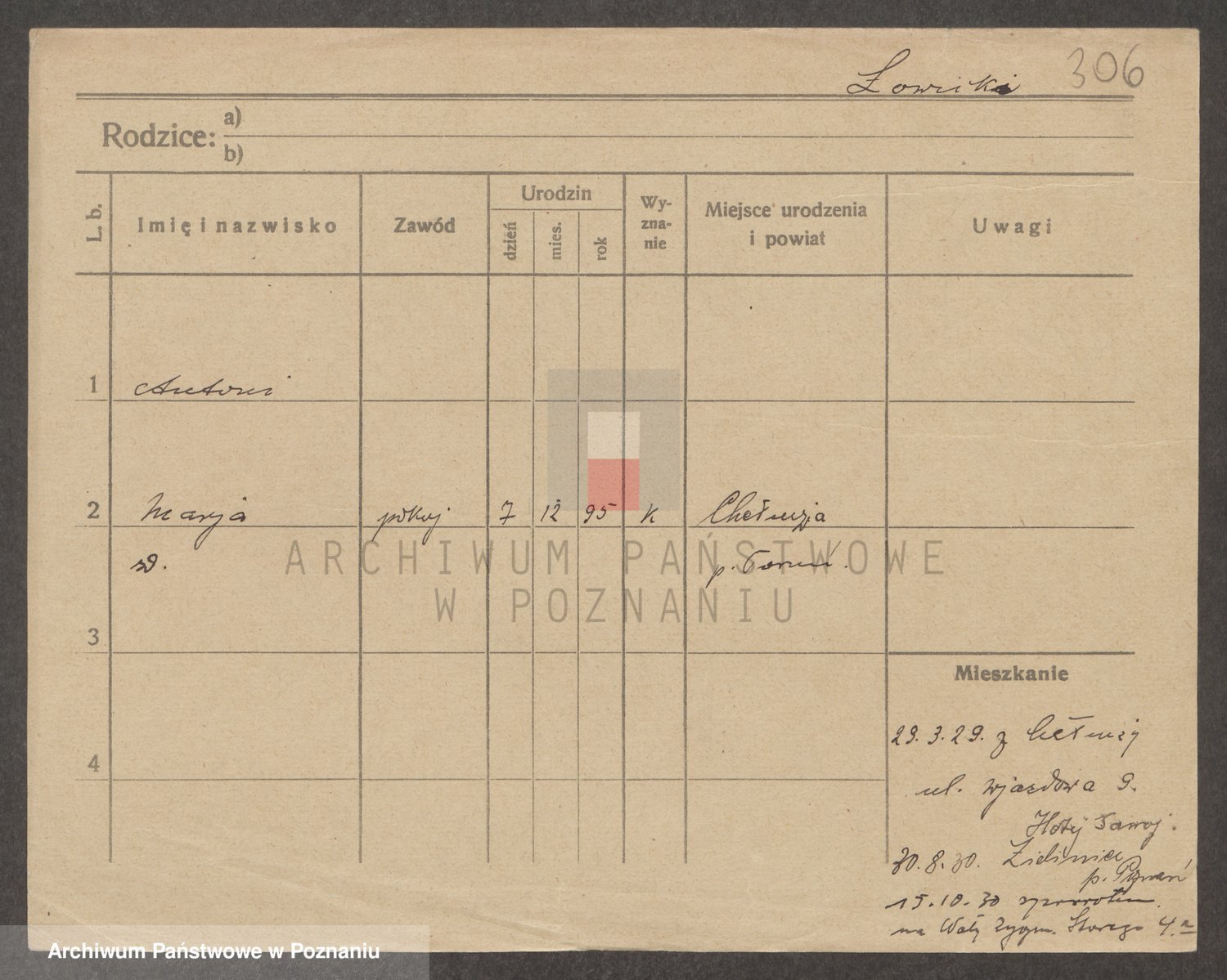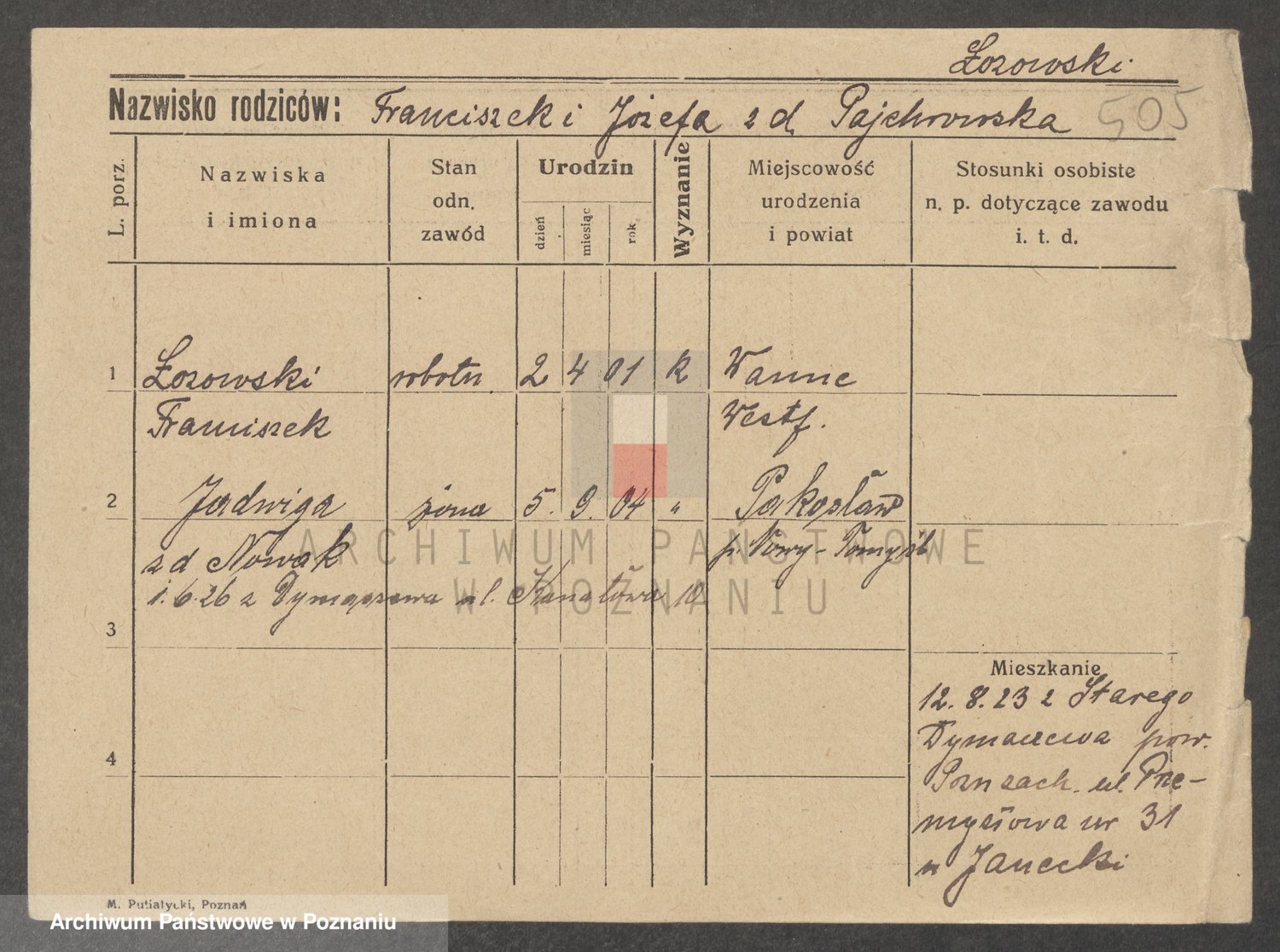 Podgląd karty osobowej dostępny jest po kliknięciu na nazwisko lub ikonkę karty. Można dokonywać powiększenia (ikony na górze) lub przechodzić między kolejnymi skanami (strzałki po bokach).