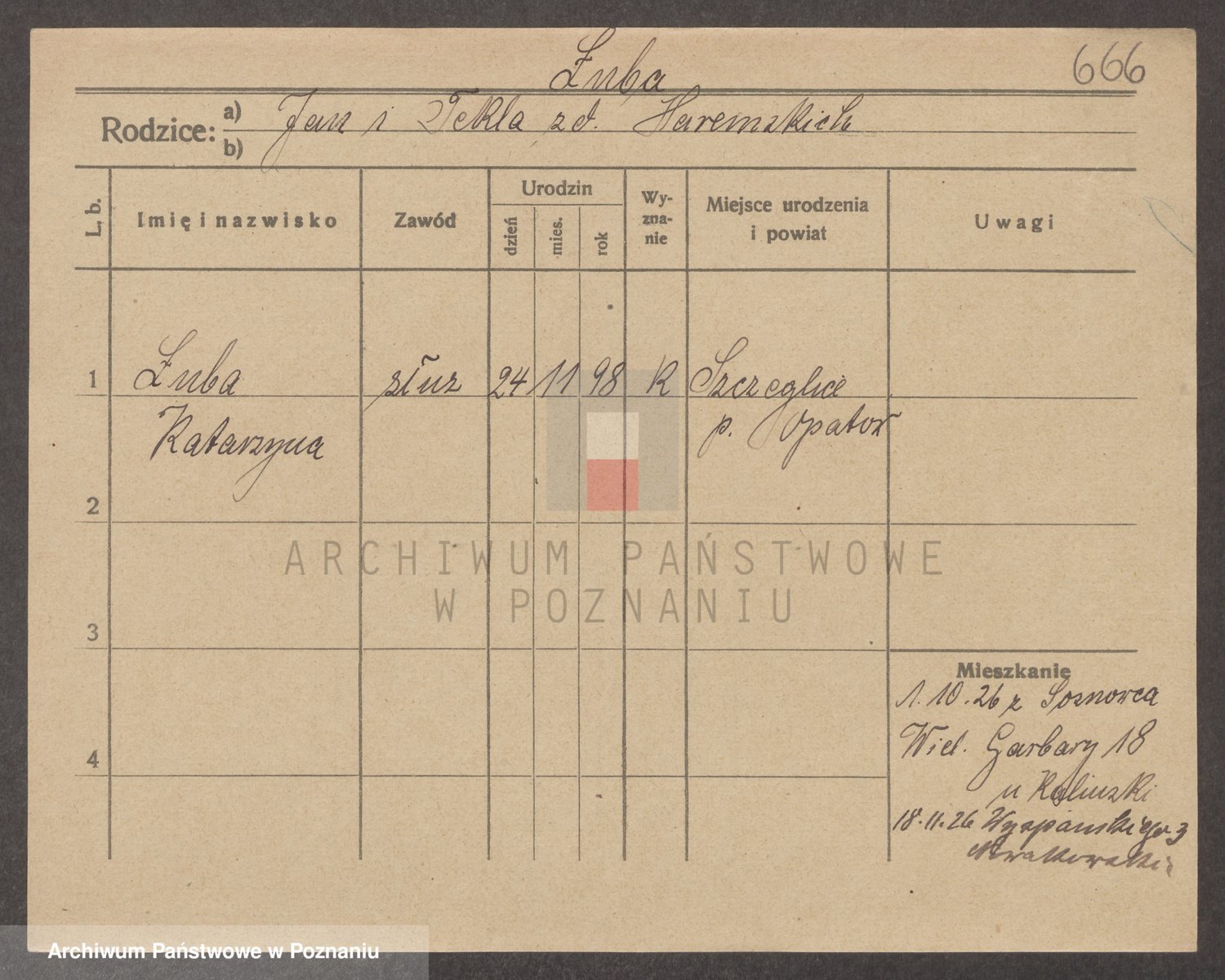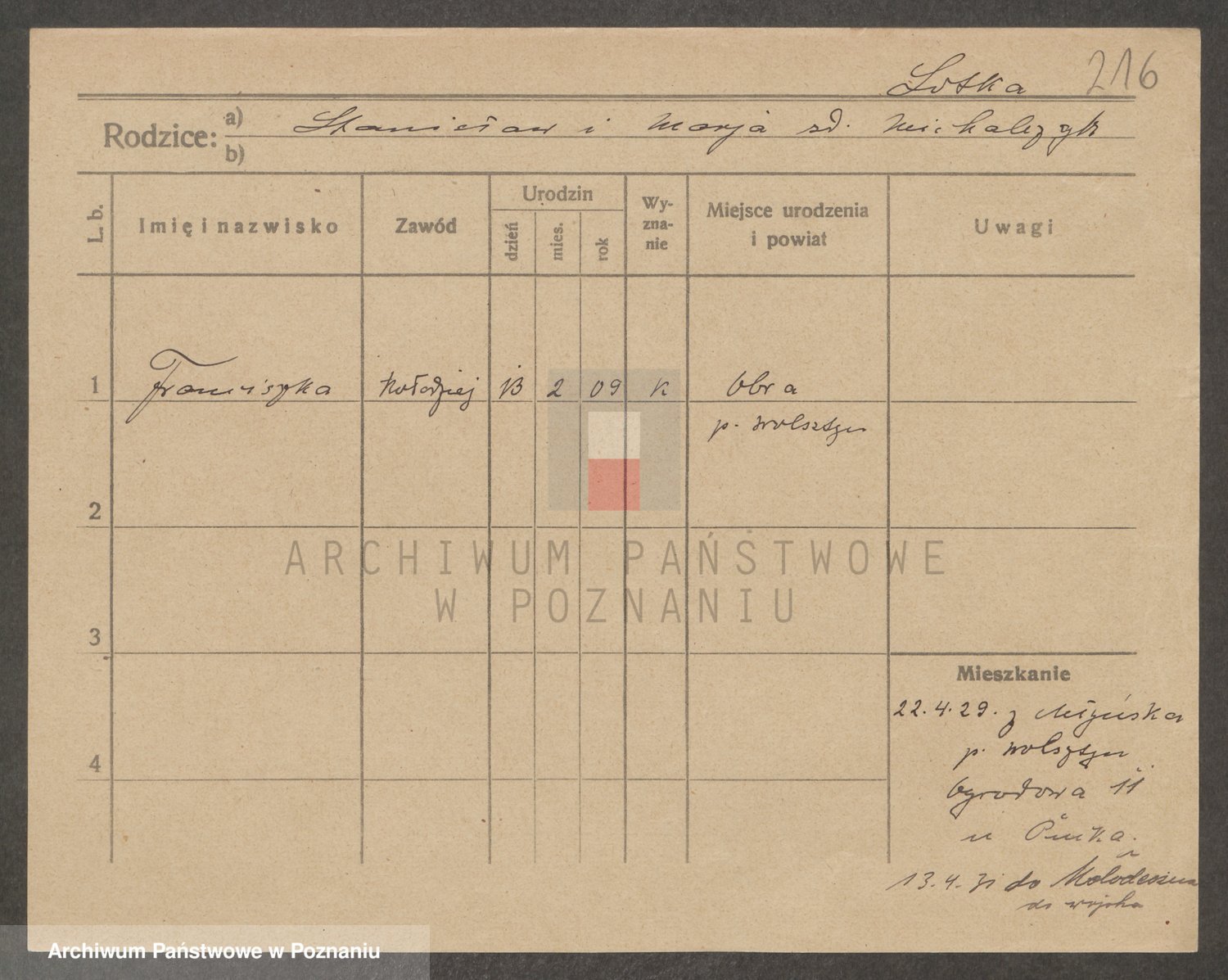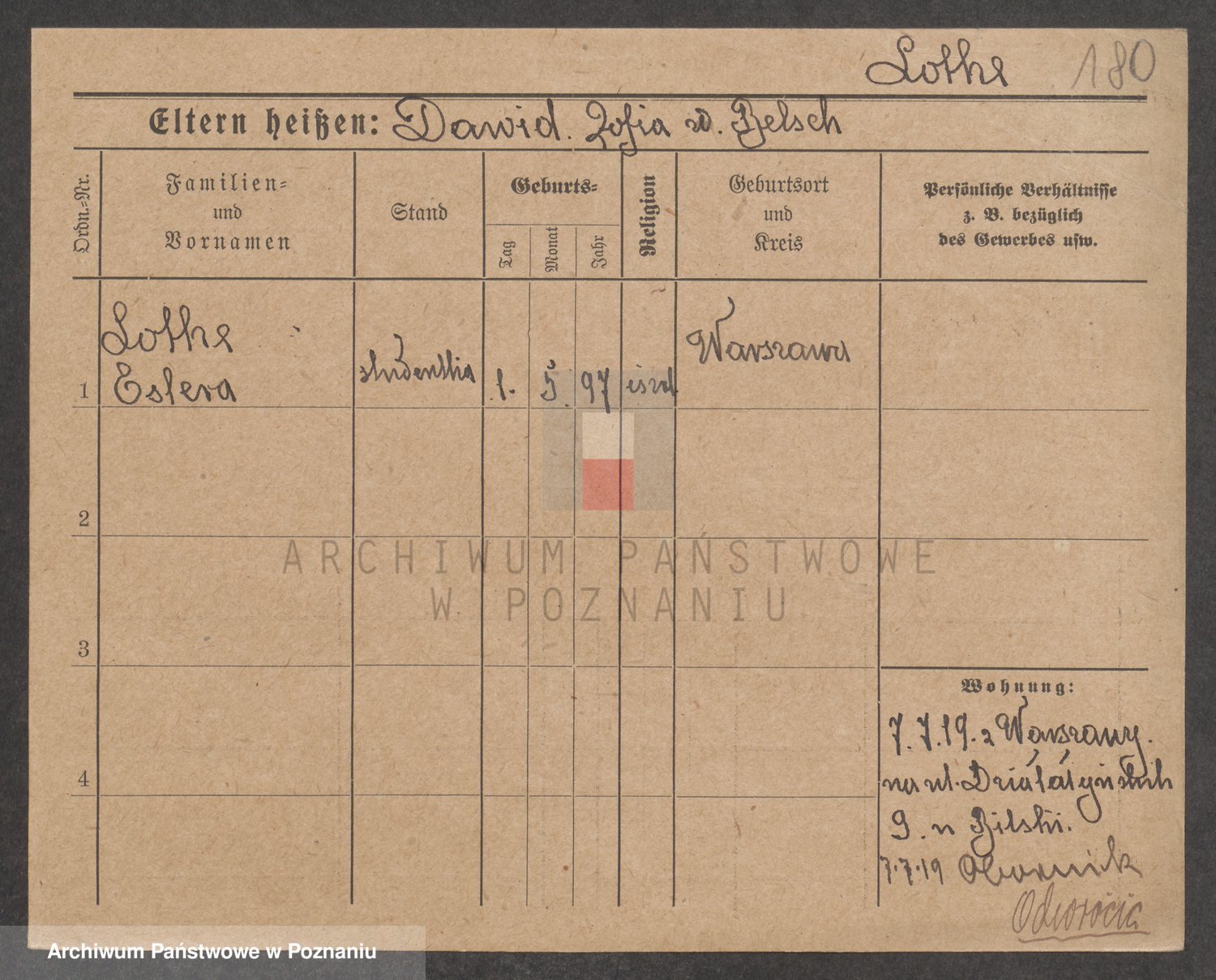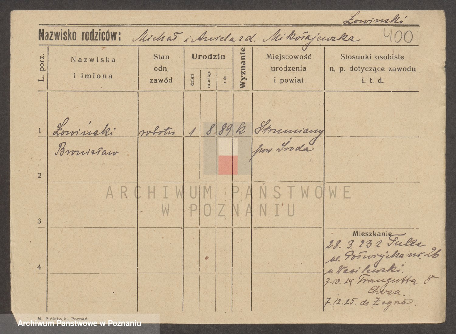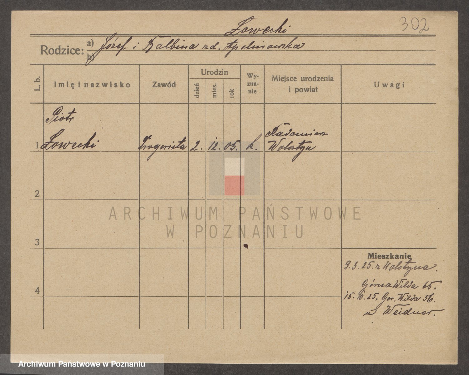 Podgląd karty osobowej dostępny jest po kliknięciu na nazwisko lub ikonkę karty. Można dokonywać powiększenia (ikony na górze) lub przechodzić między kolejnymi skanami (strzałki po bokach).