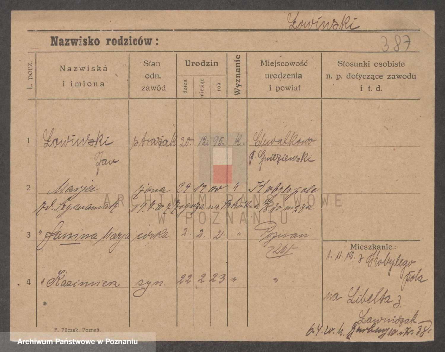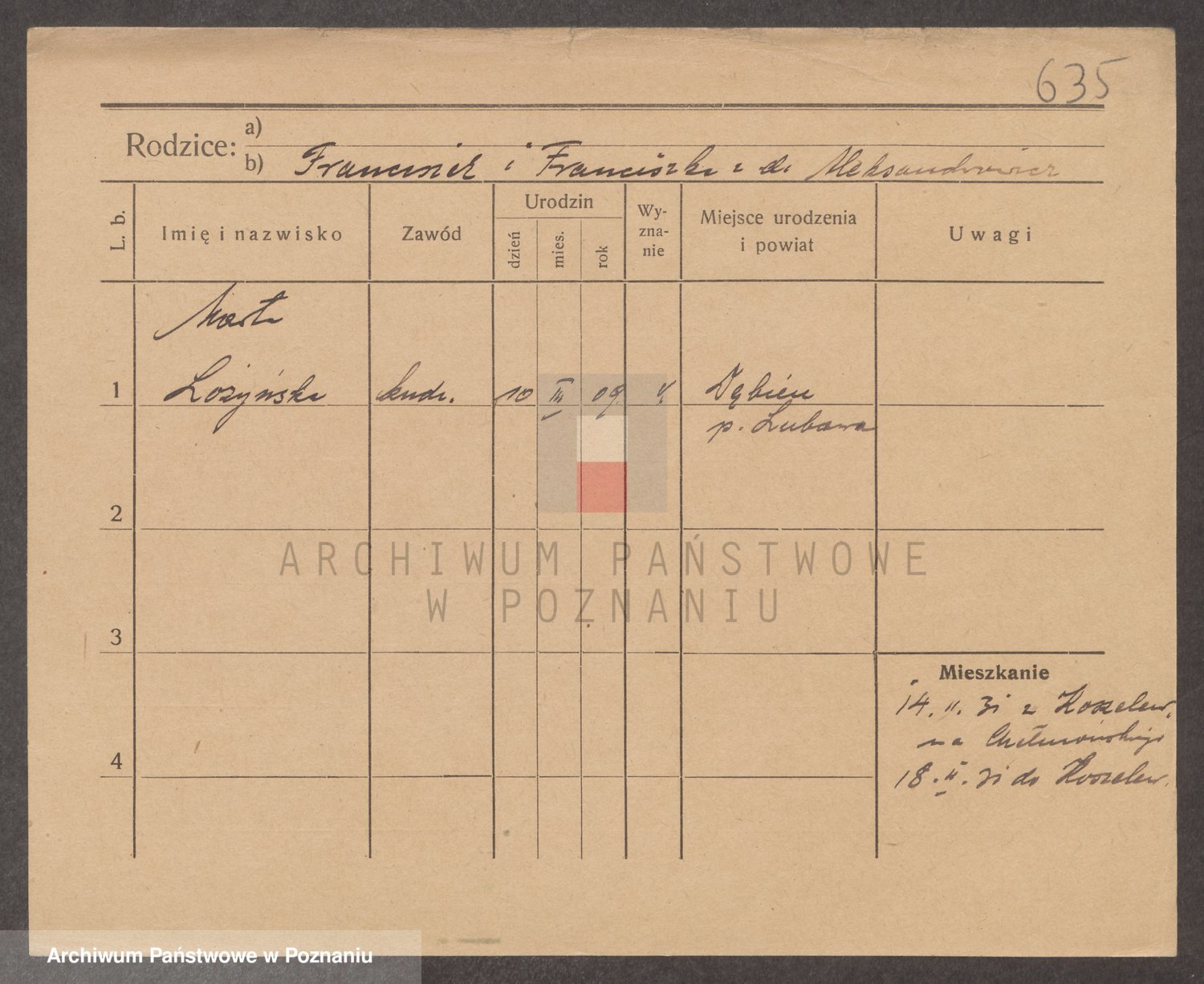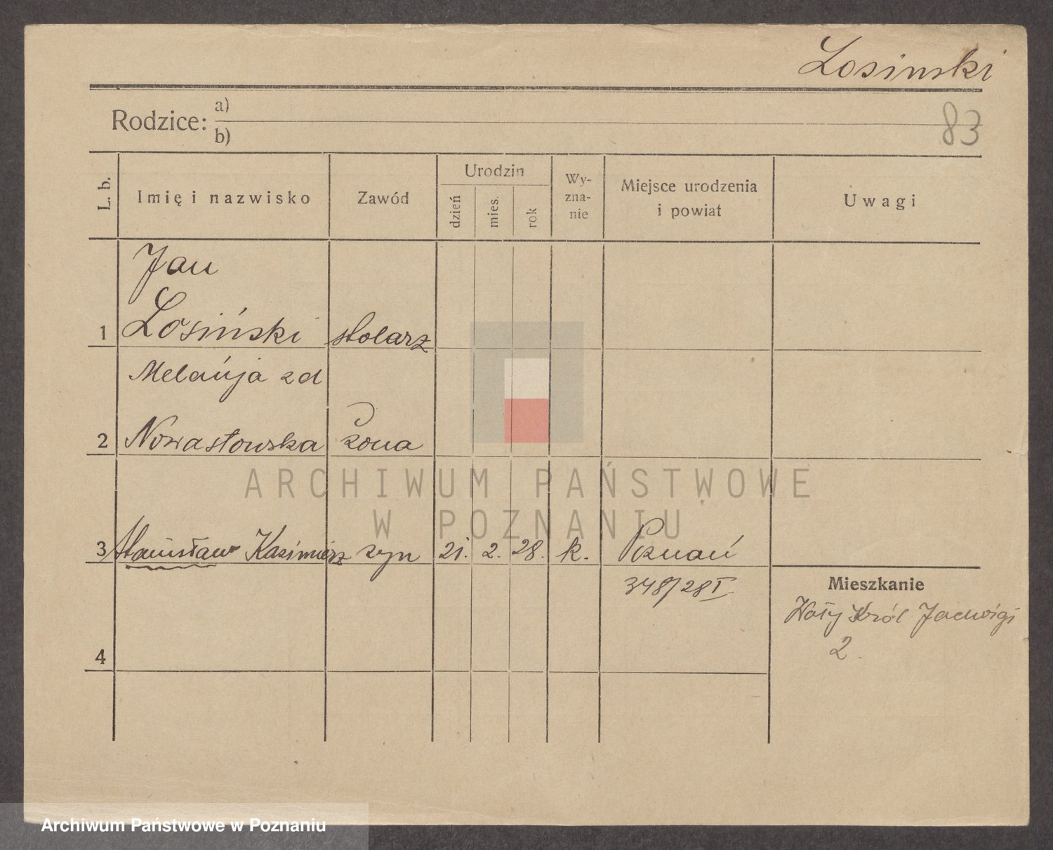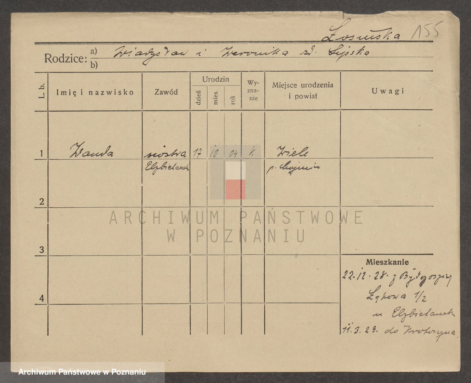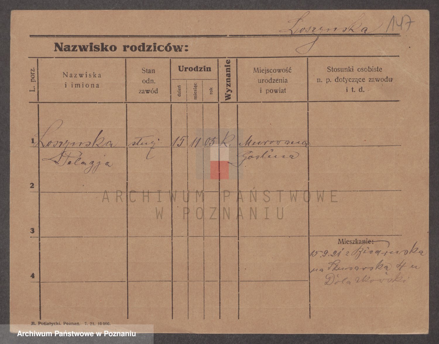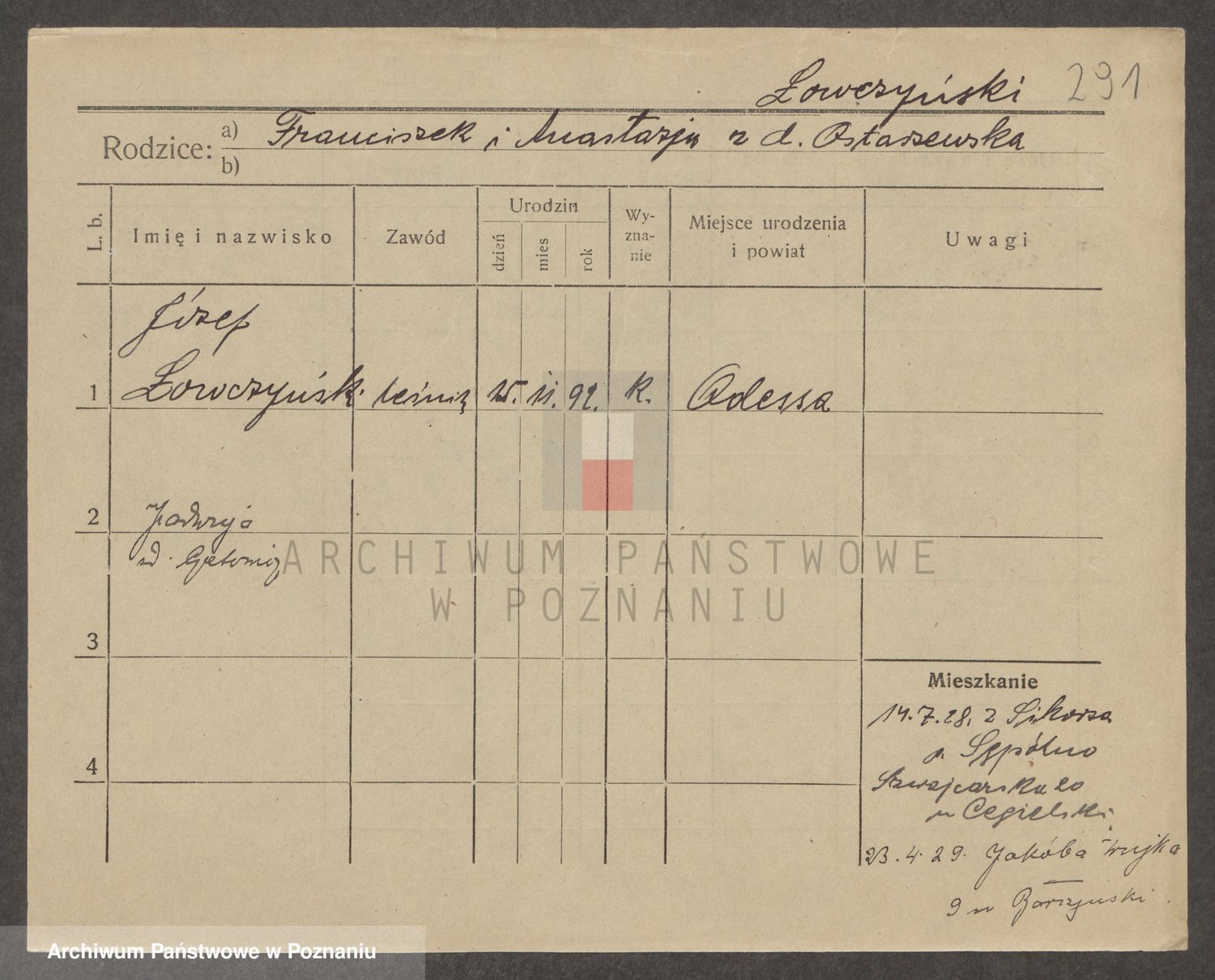 Podgląd karty osobowej dostępny jest po kliknięciu na nazwisko lub ikonkę karty. Można dokonywać powiększenia (ikony na górze) lub przechodzić między kolejnymi skanami (strzałki po bokach).