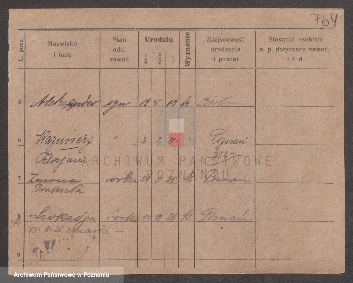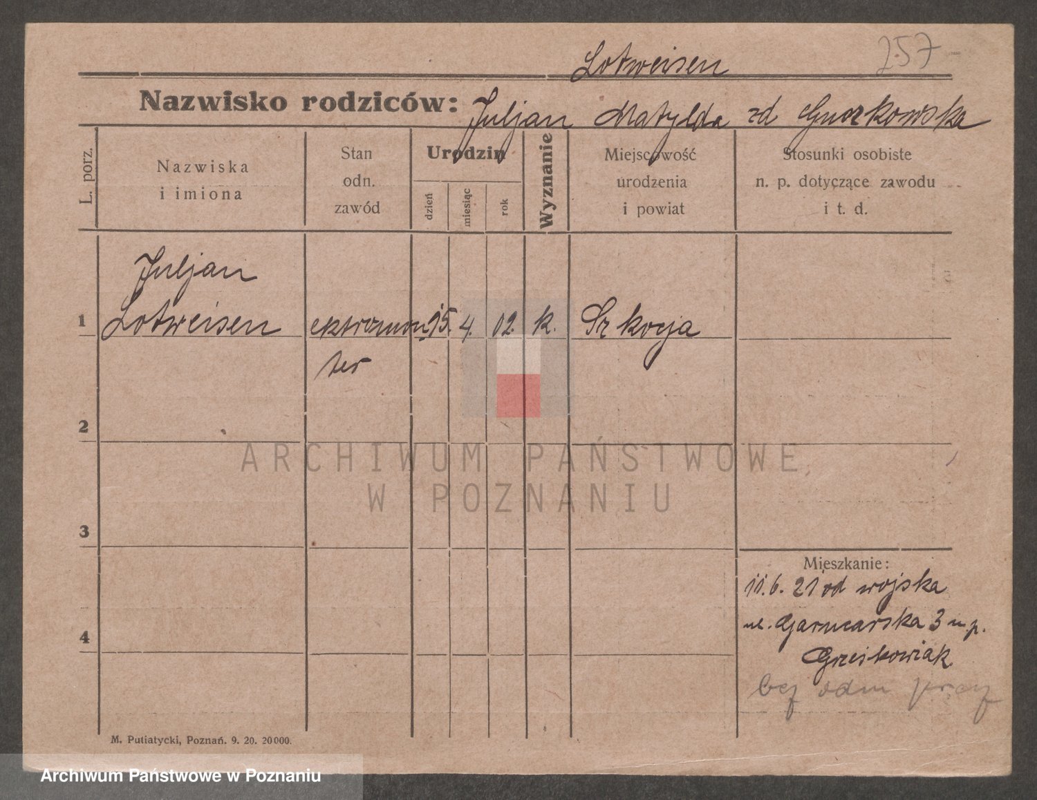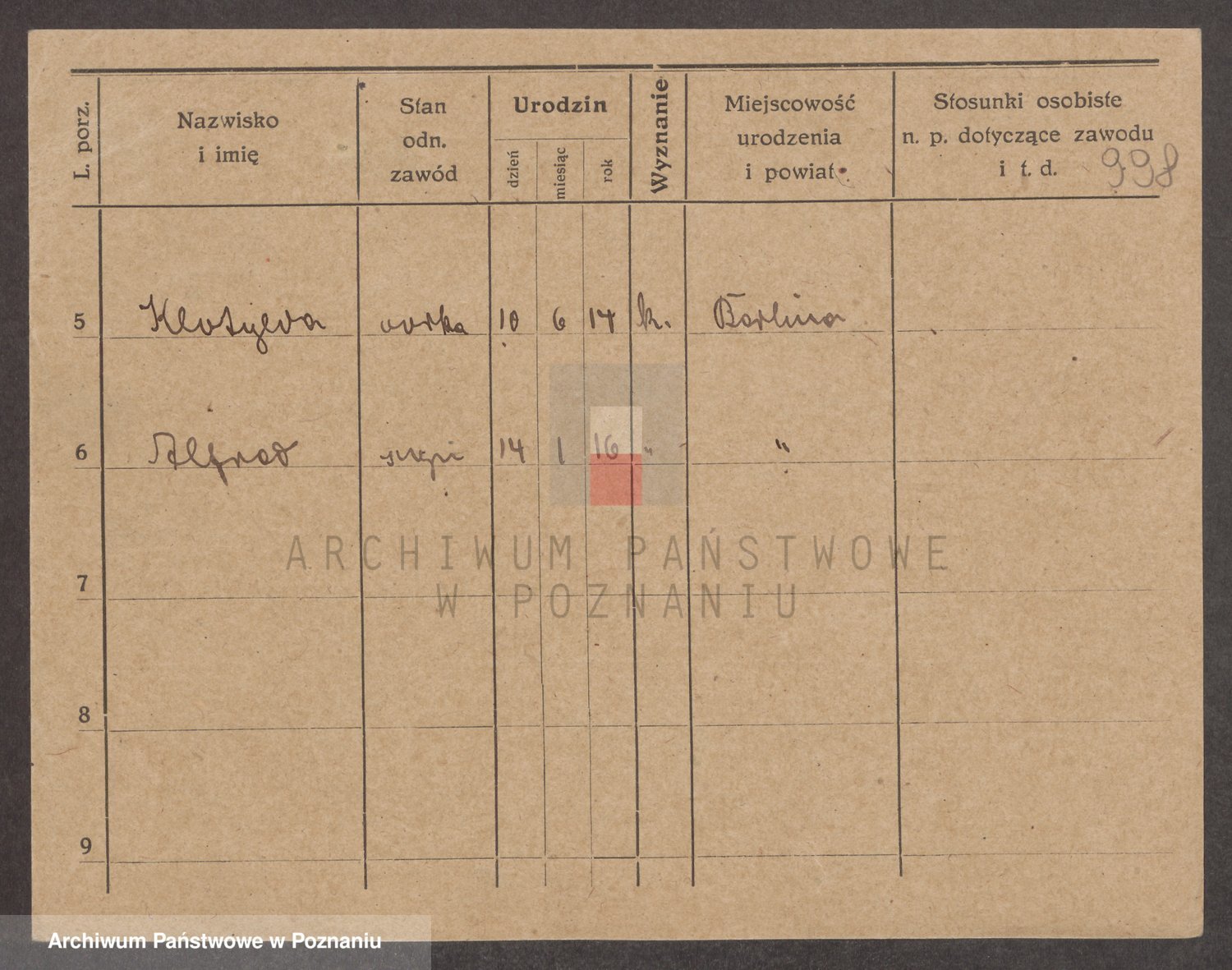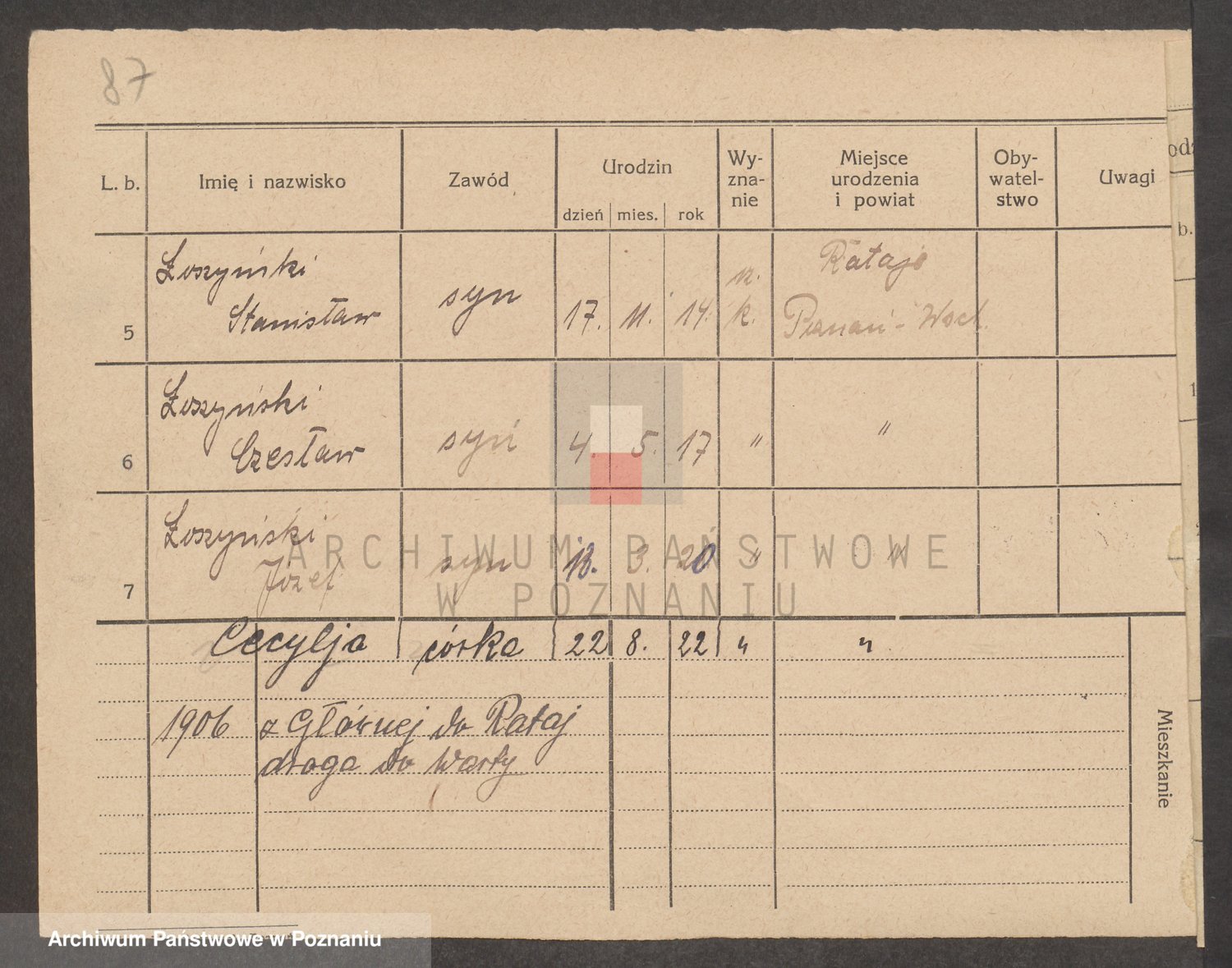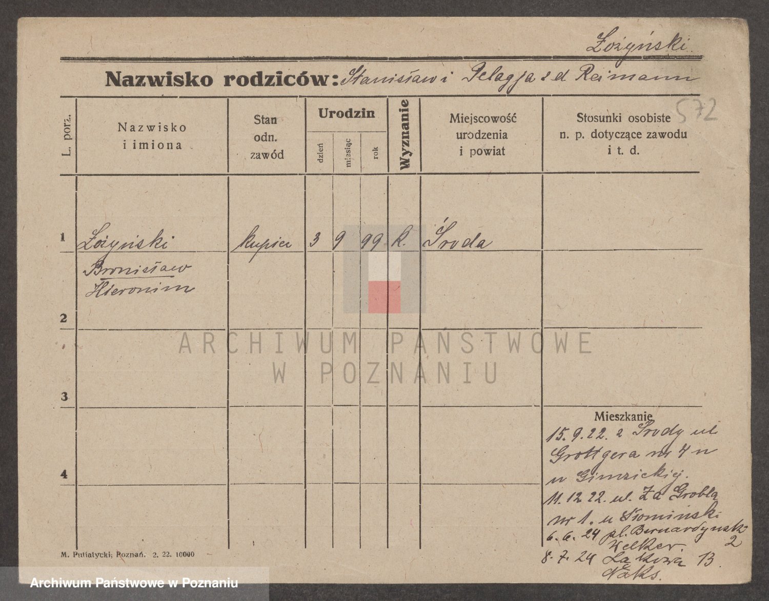Podgląd karty osobowej dostępny jest po kliknięciu na nazwisko lub ikonkę karty. Można dokonywać powiększenia (ikony na górze) lub przechodzić między kolejnymi skanami (strzałki po bokach).