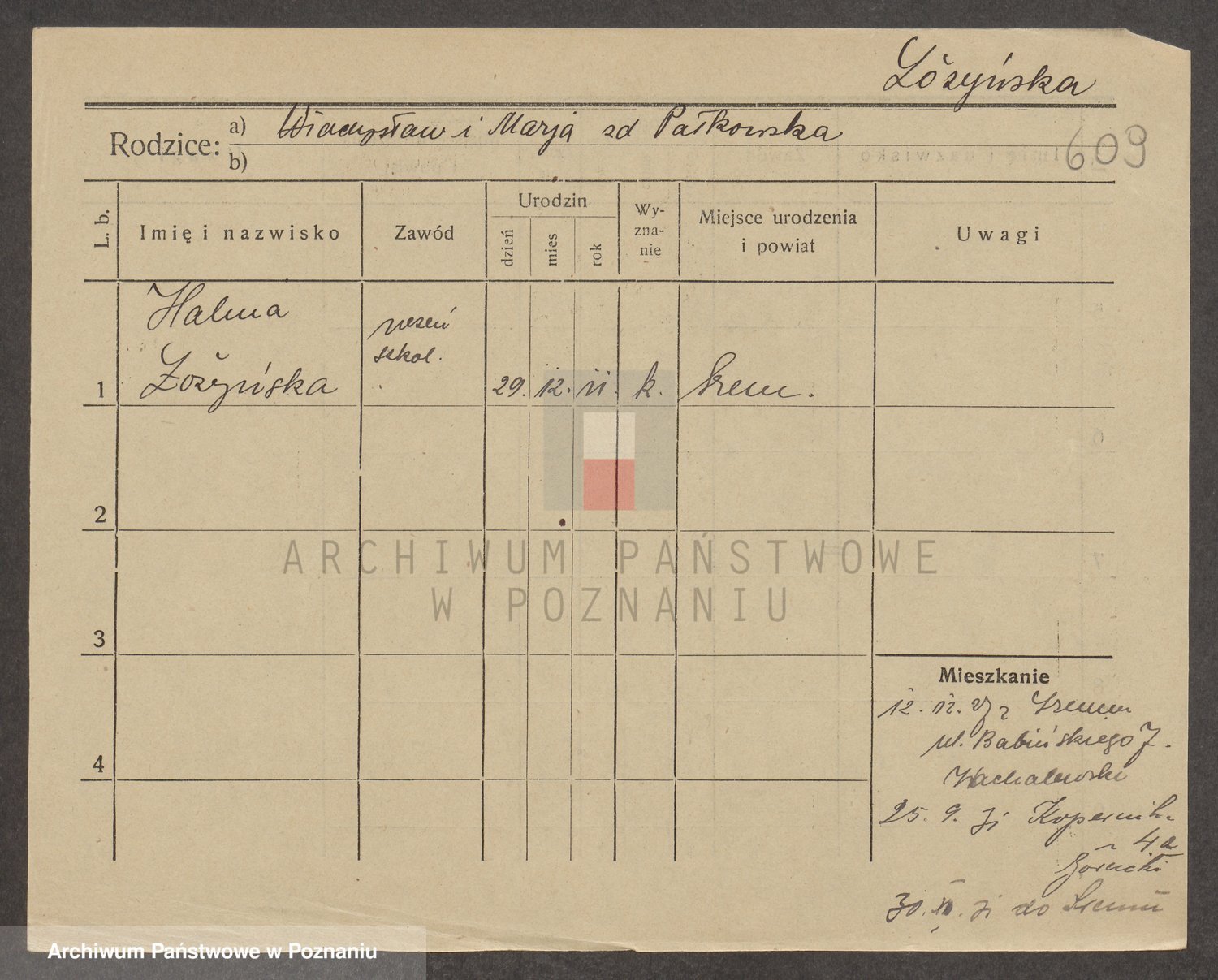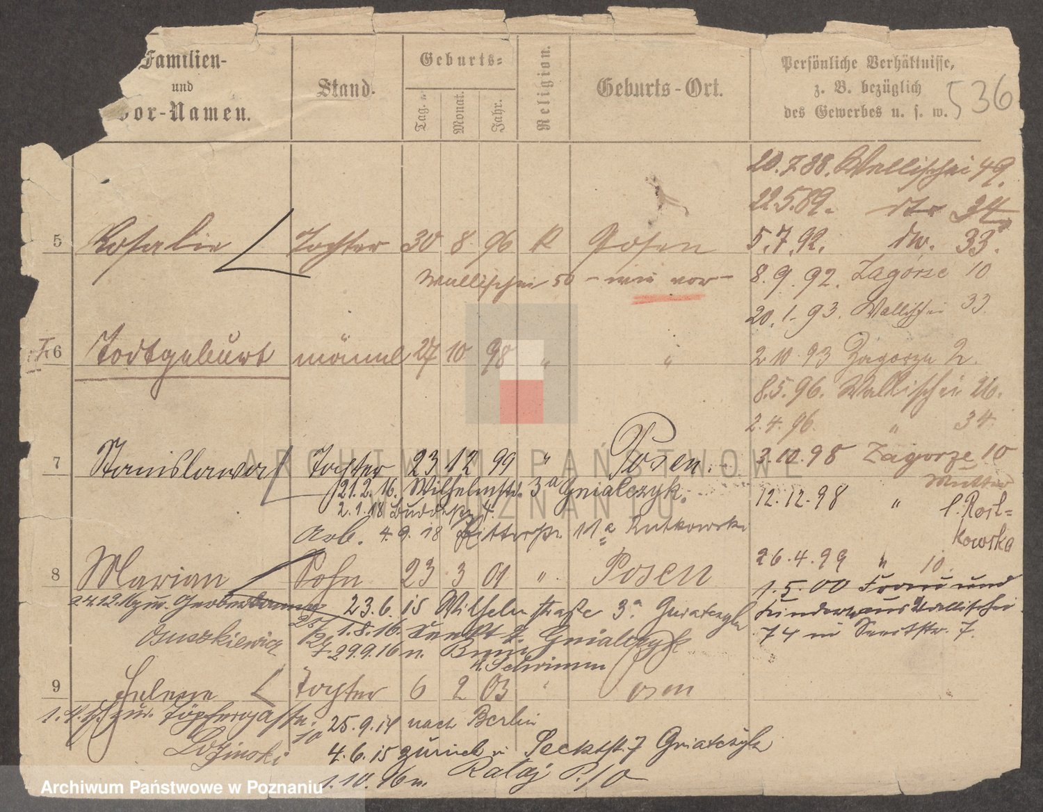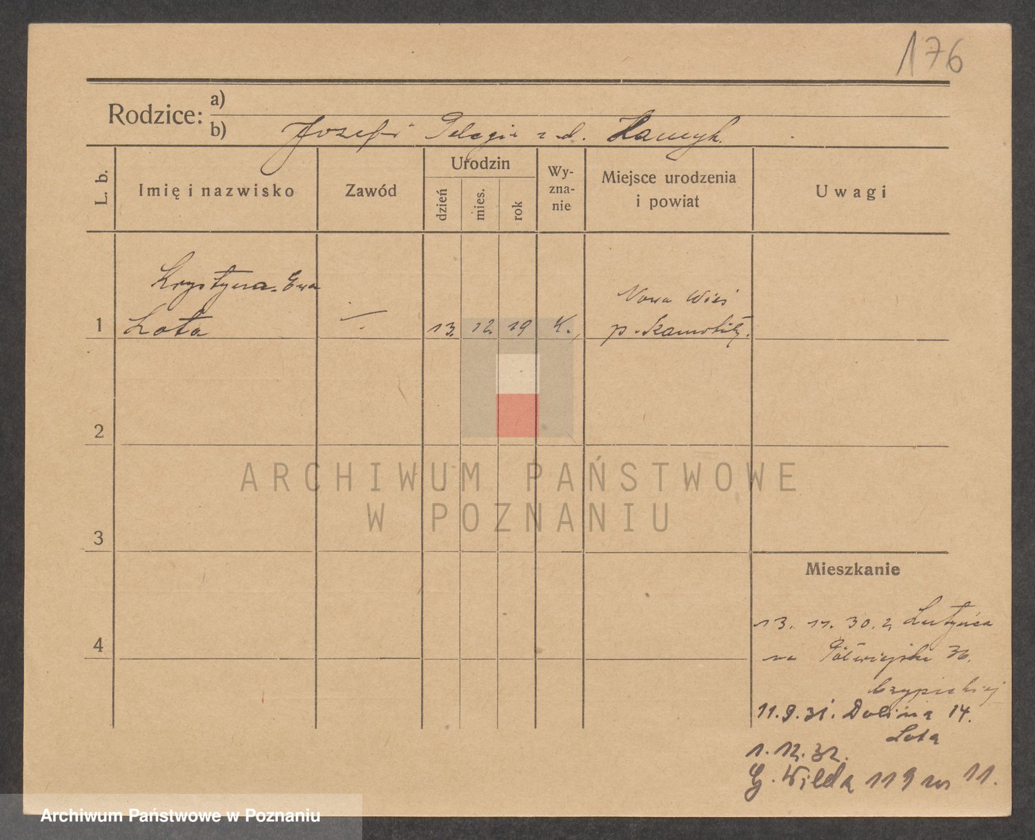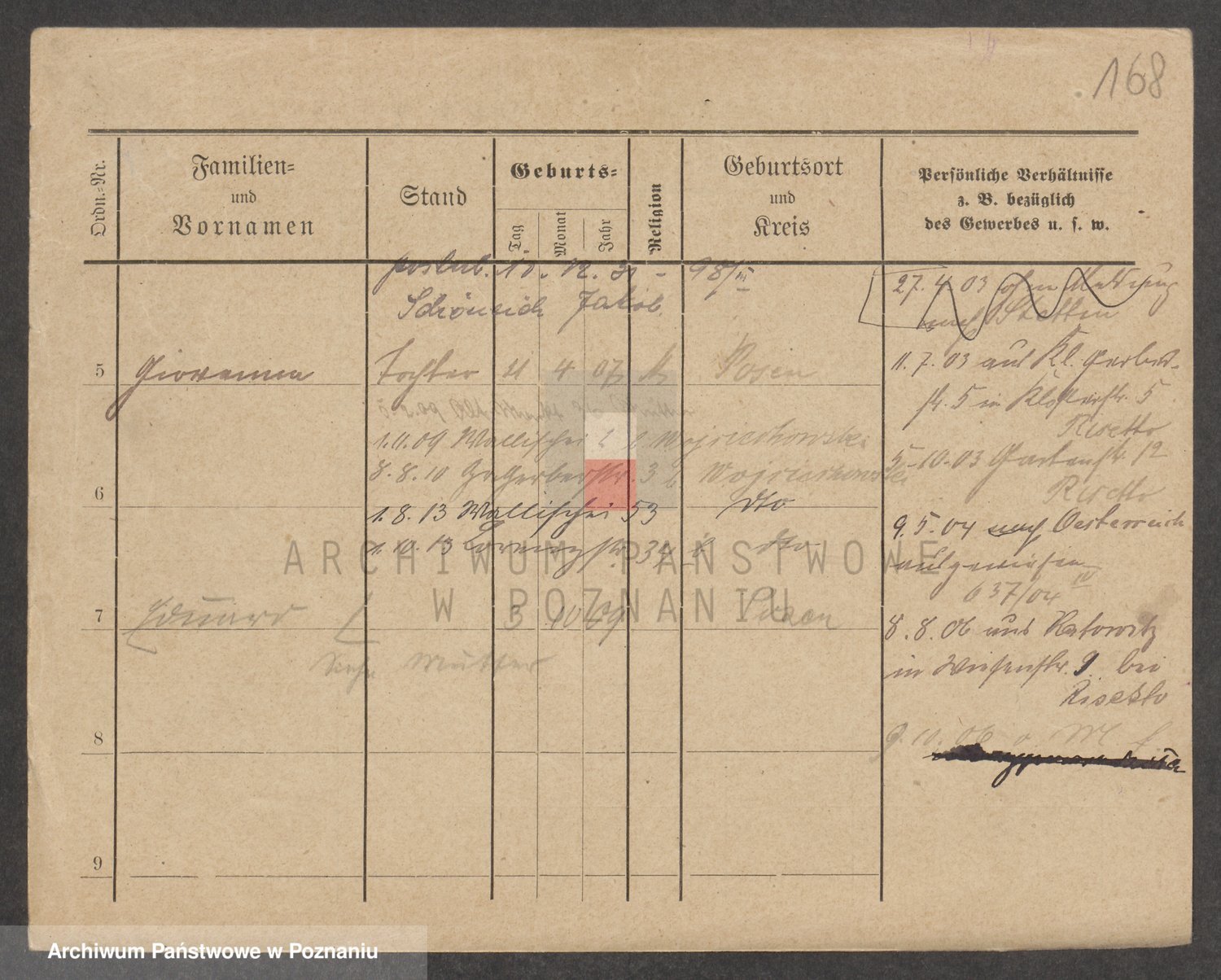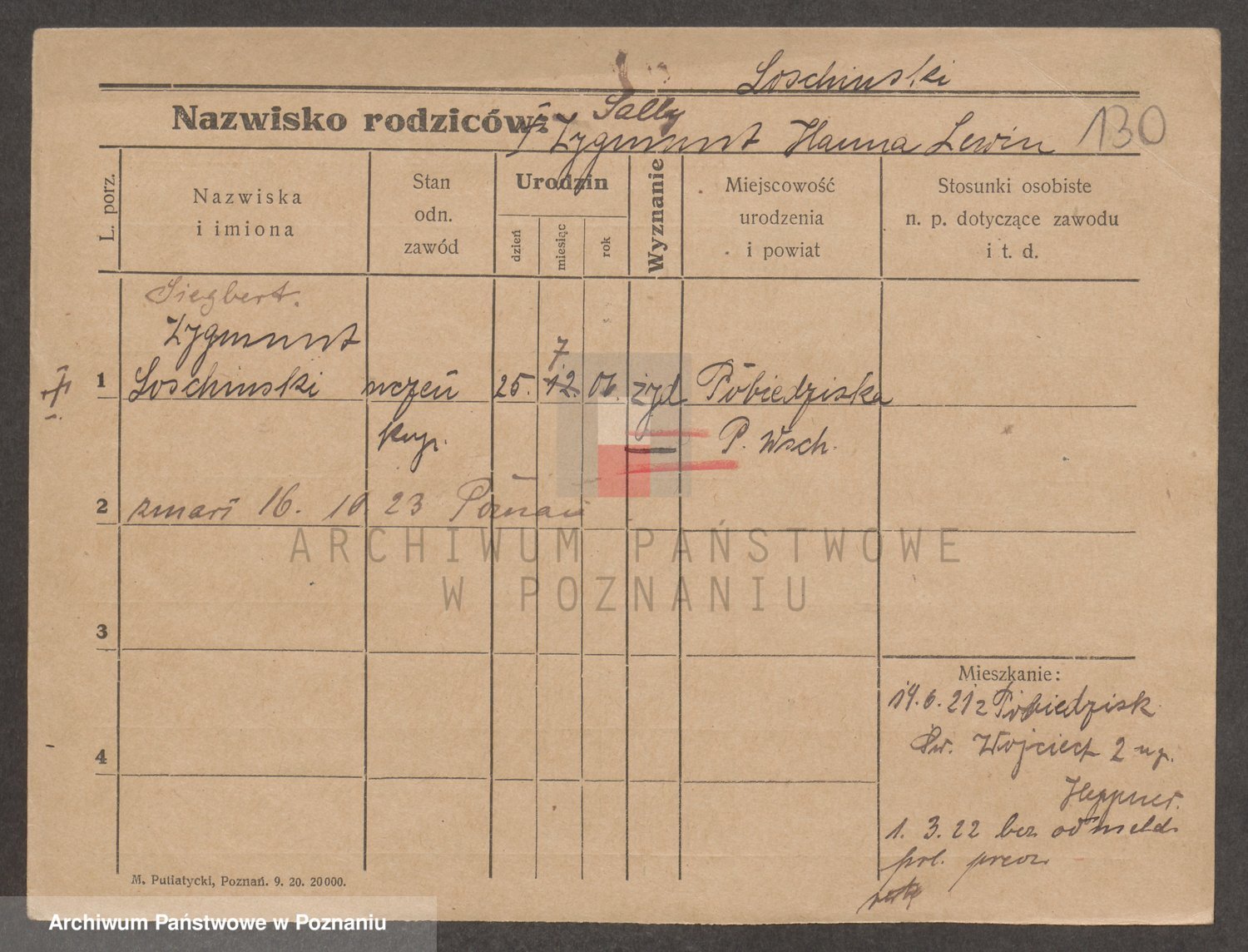 Podgląd karty osobowej dostępny jest po kliknięciu na nazwisko lub ikonkę karty. Można dokonywać powiększenia (ikony na górze) lub przechodzić między kolejnymi skanami (strzałki po bokach).