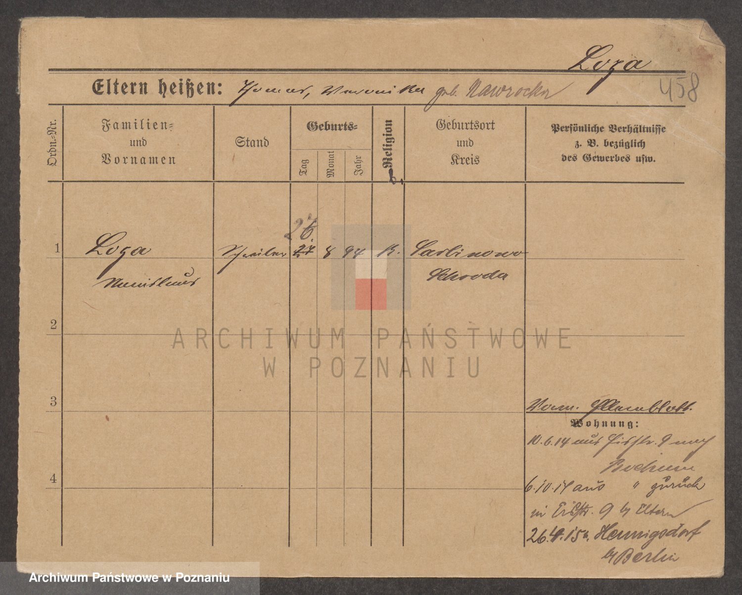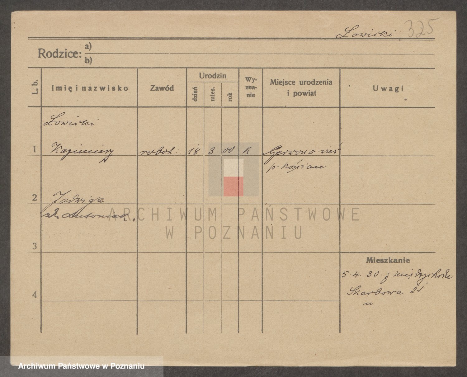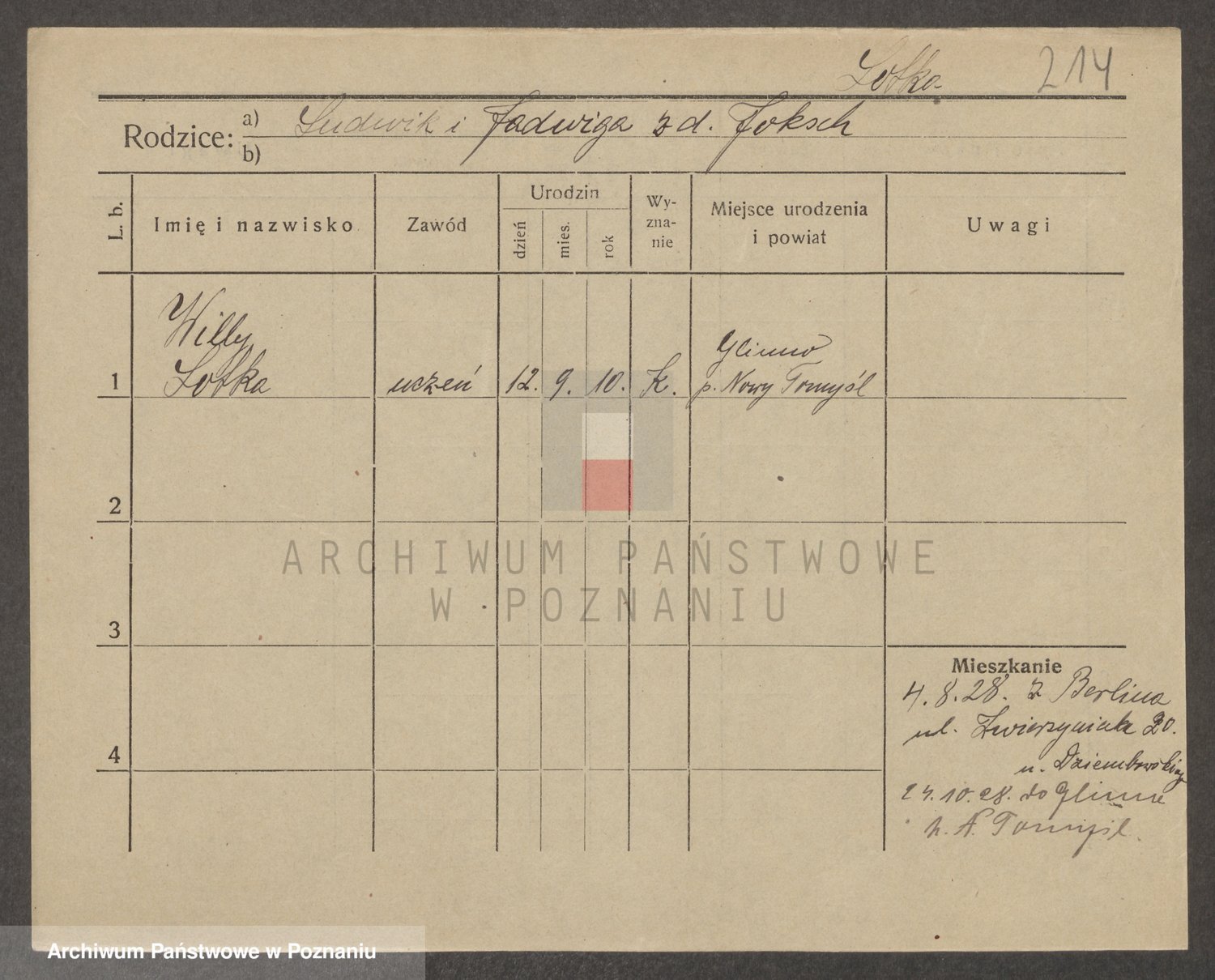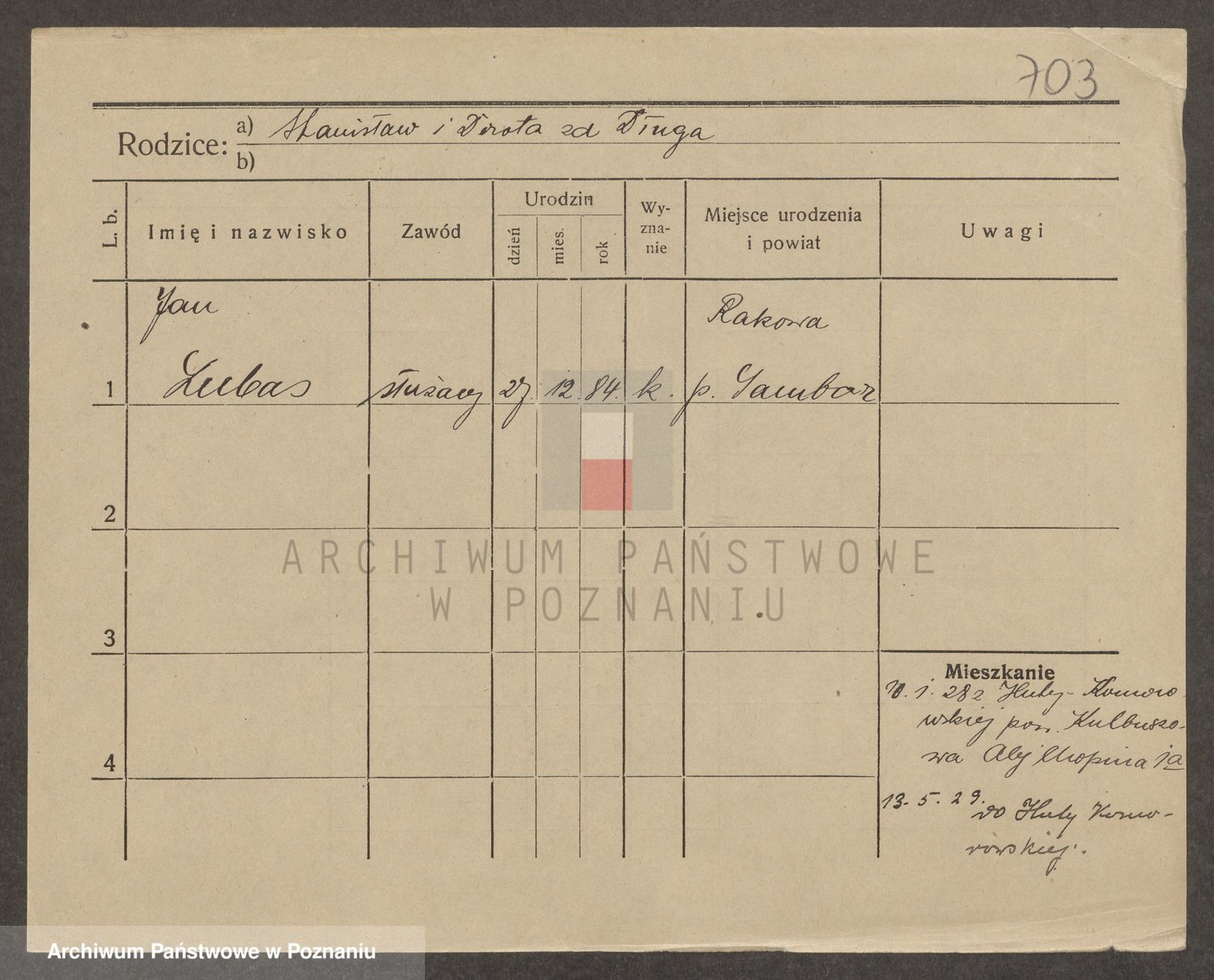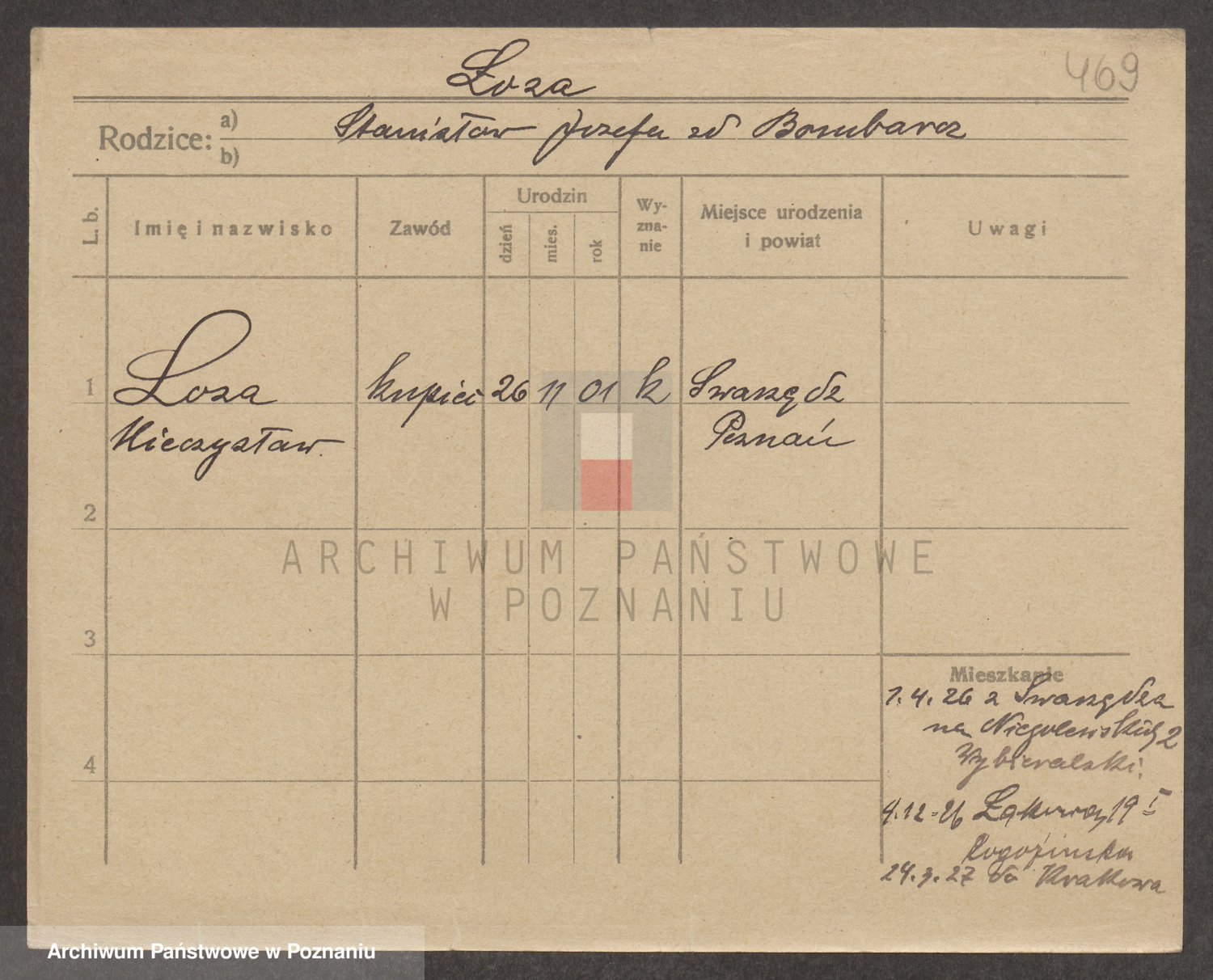 Podgląd karty osobowej dostępny jest po kliknięciu na nazwisko lub ikonkę karty. Można dokonywać powiększenia (ikony na górze) lub przechodzić między kolejnymi skanami (strzałki po bokach).