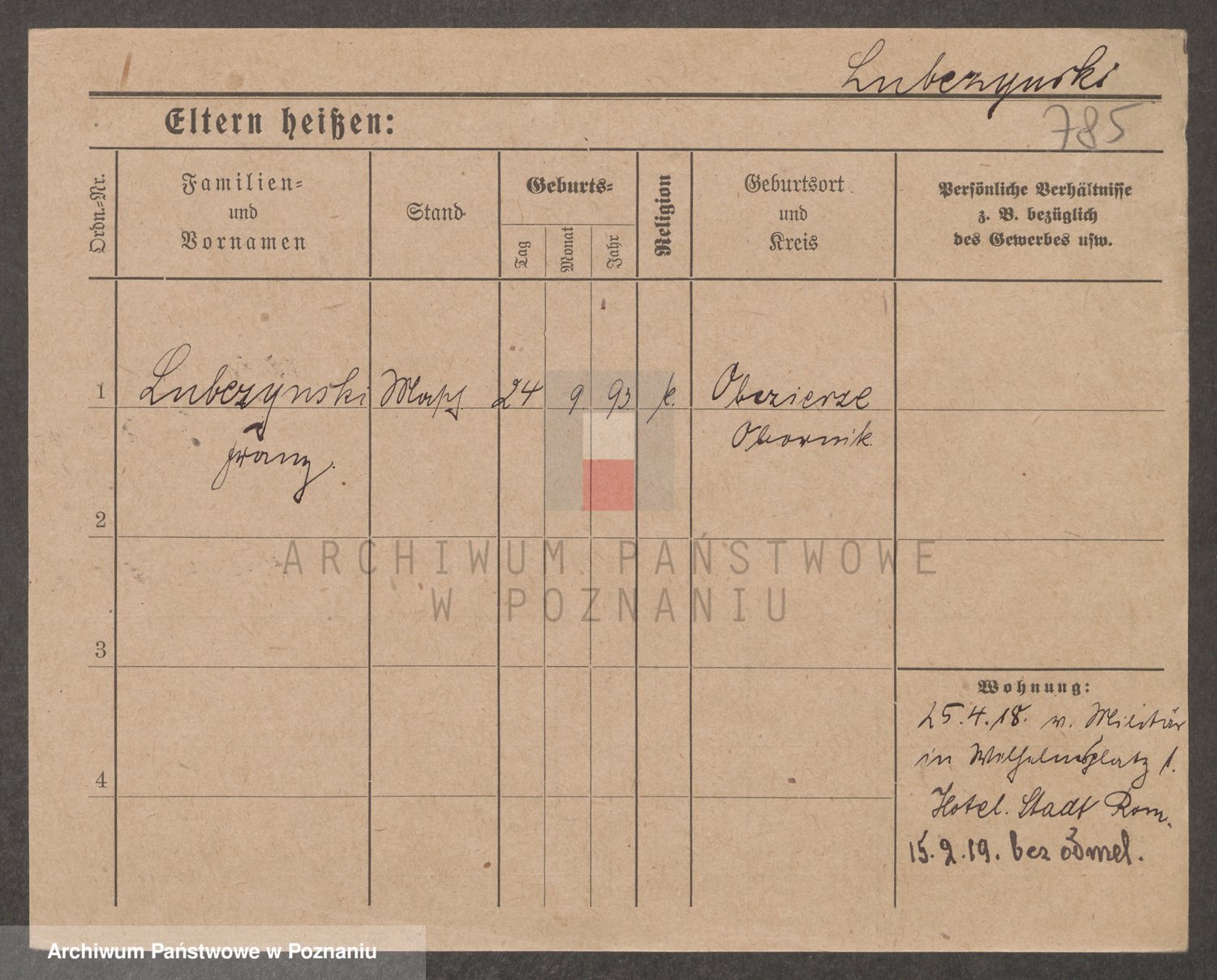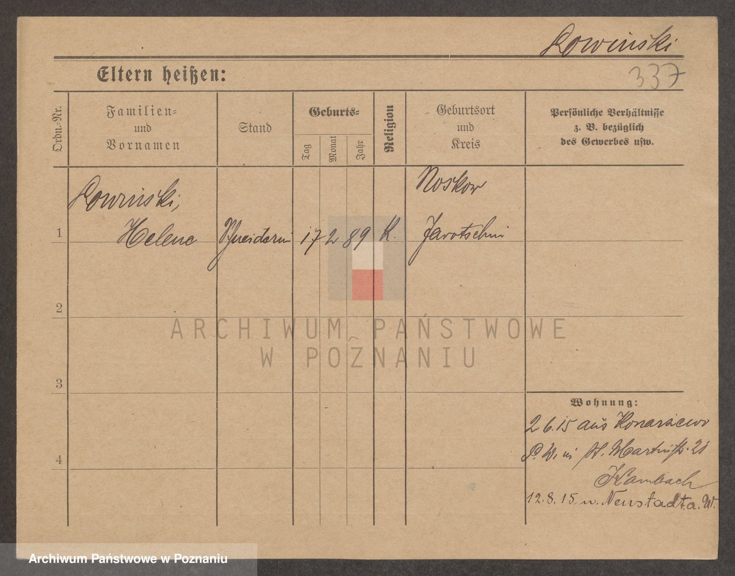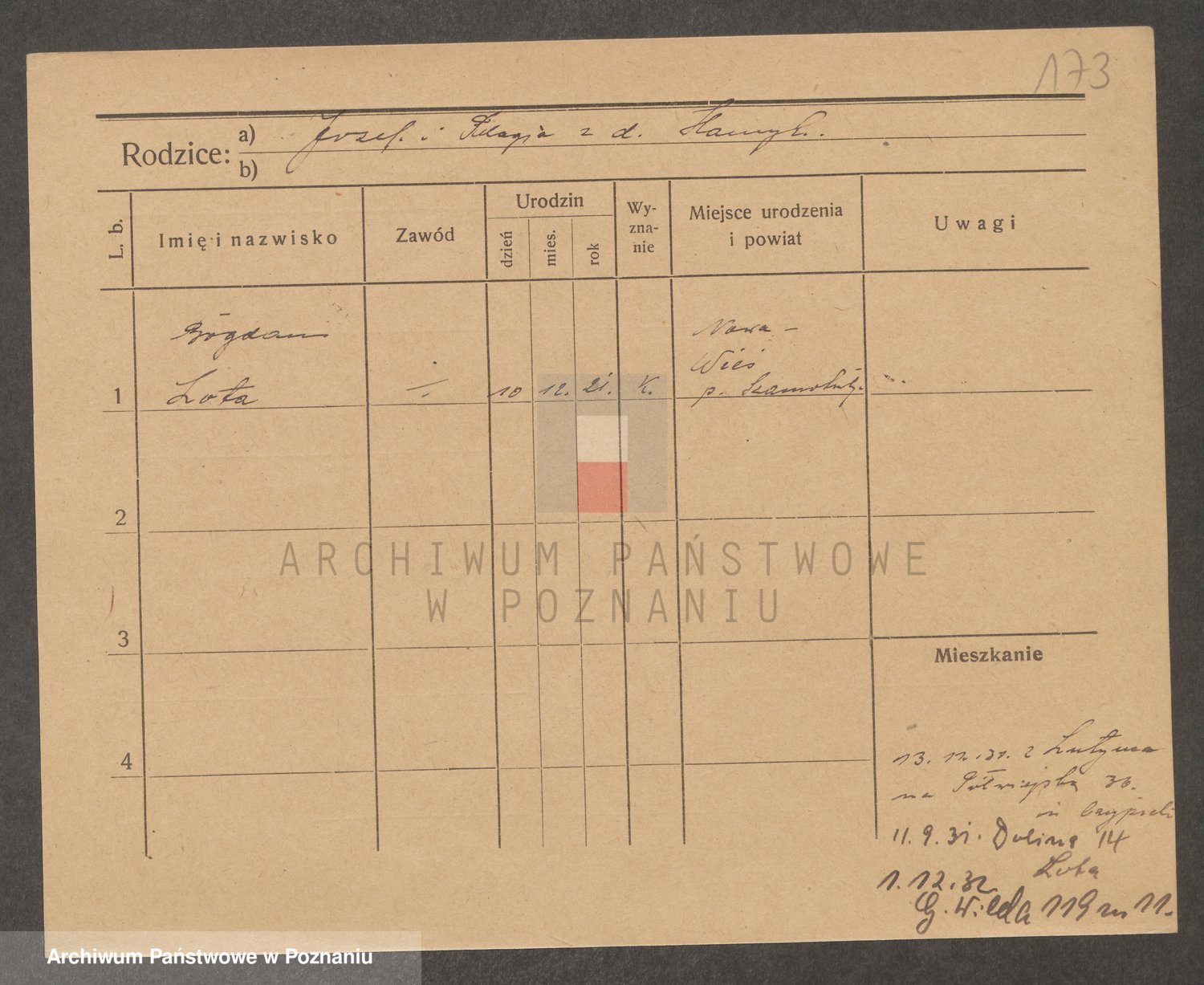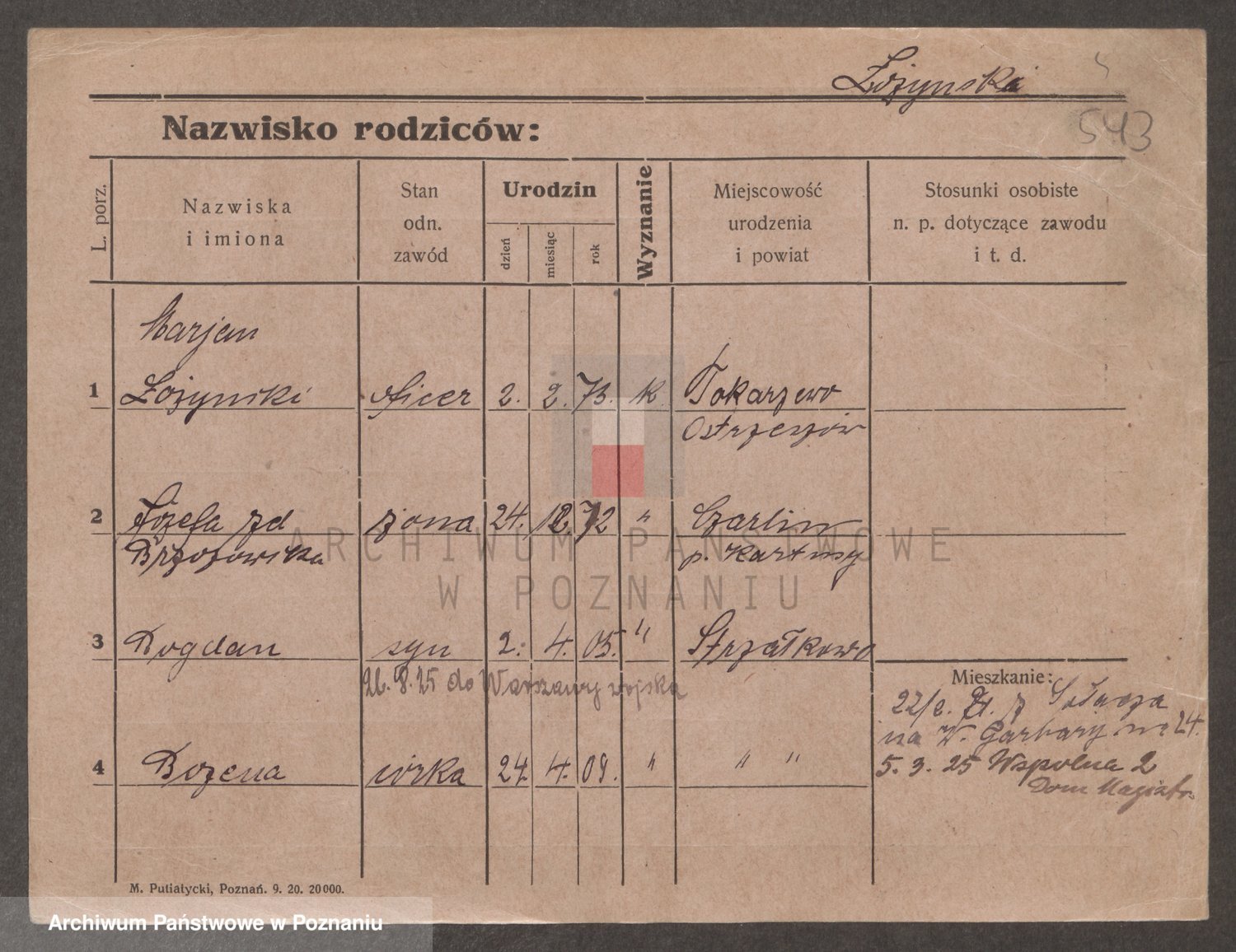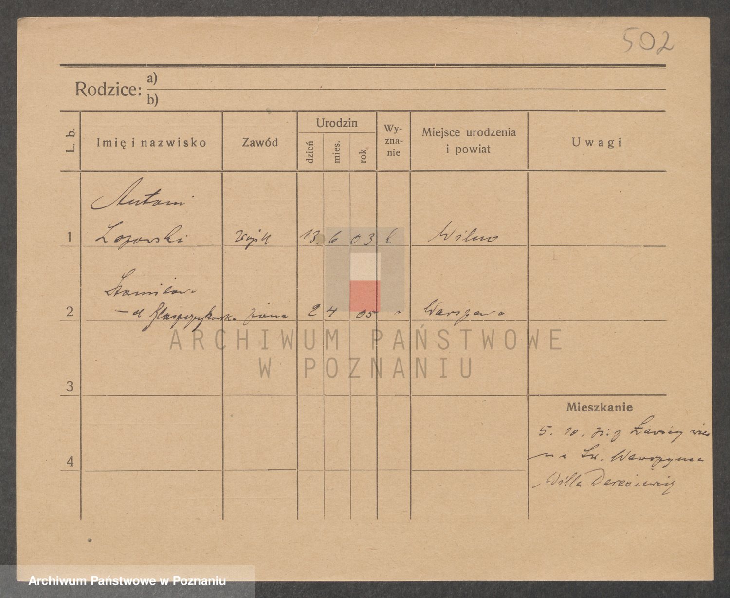 Podgląd karty osobowej dostępny jest po kliknięciu na nazwisko lub ikonkę karty. Można dokonywać powiększenia (ikony na górze) lub przechodzić między kolejnymi skanami (strzałki po bokach).