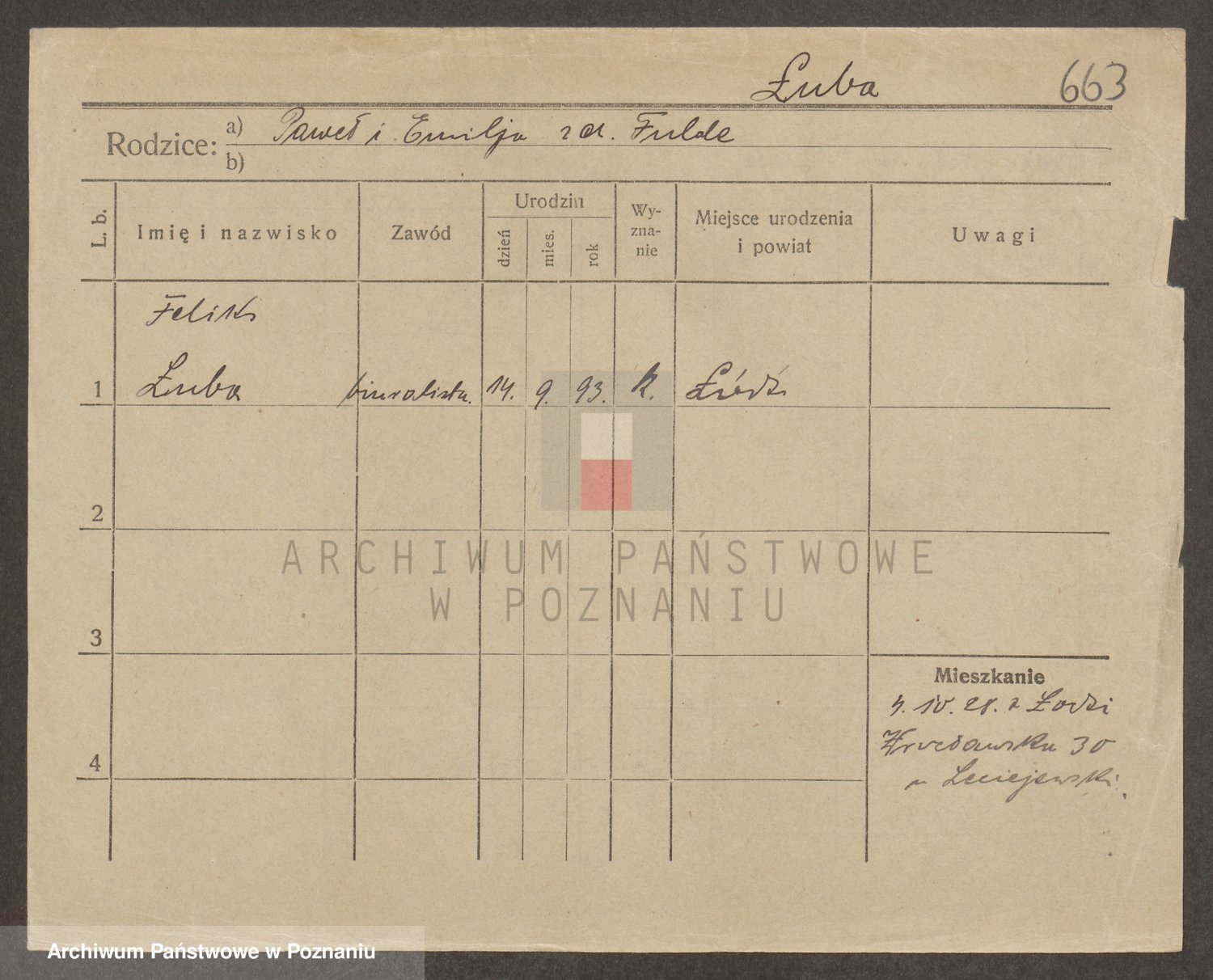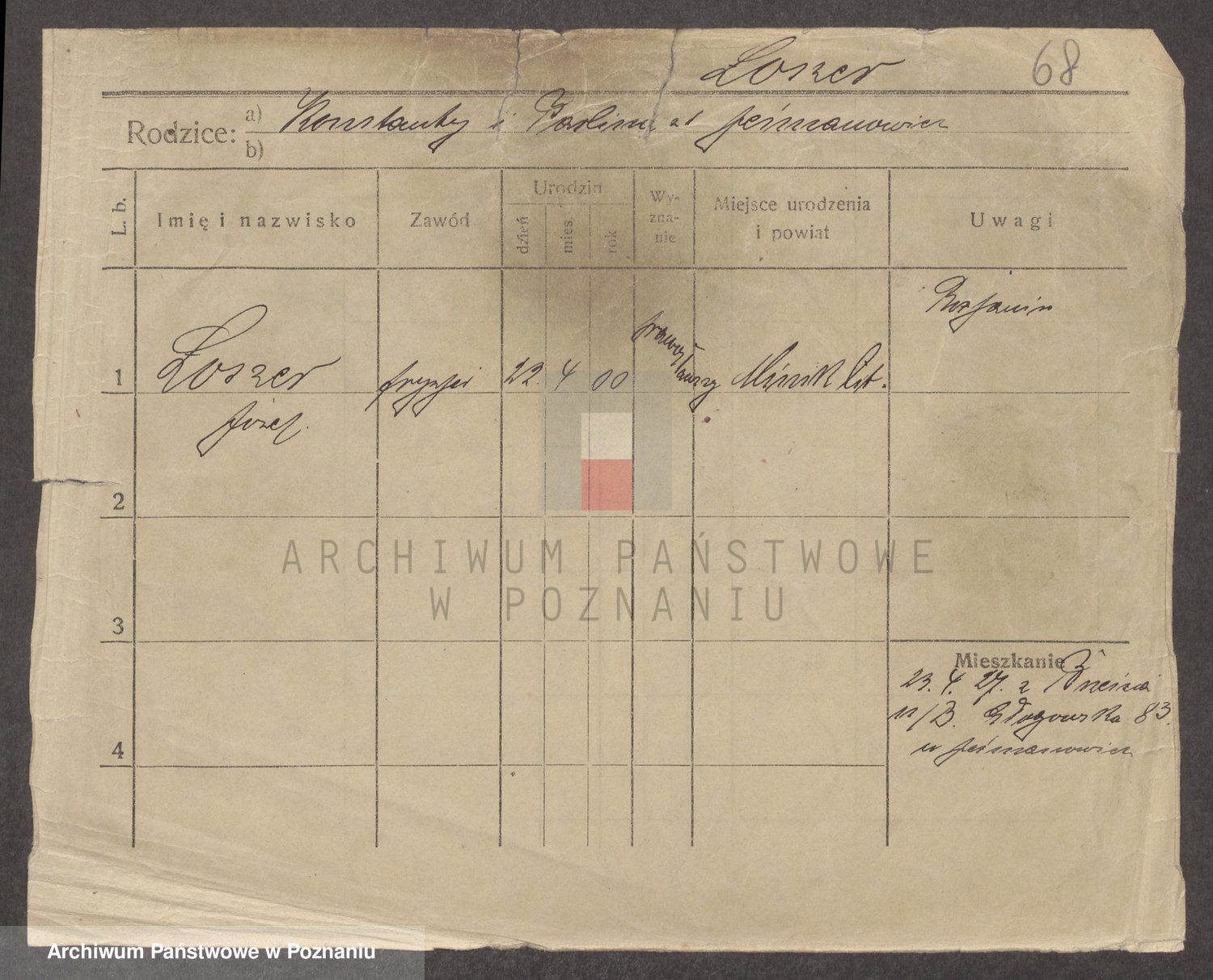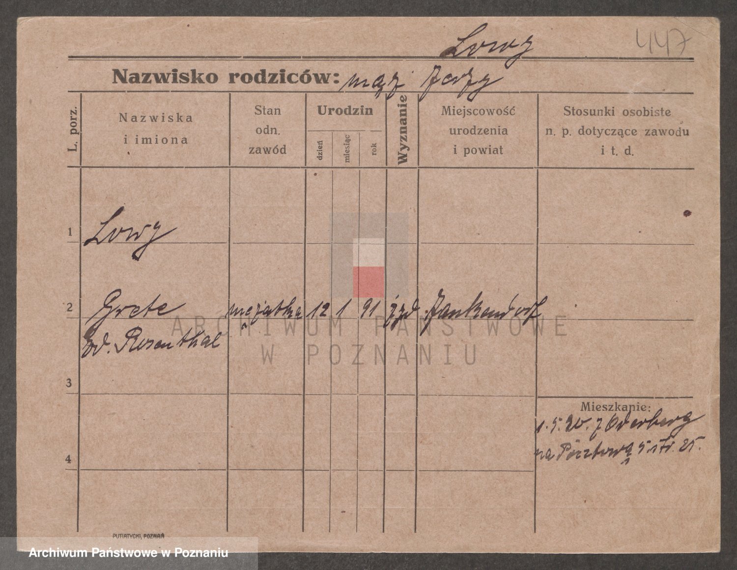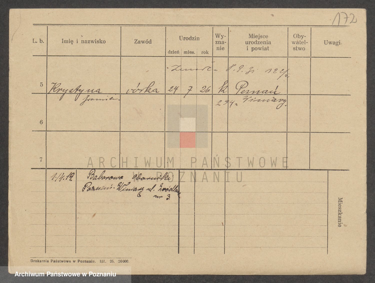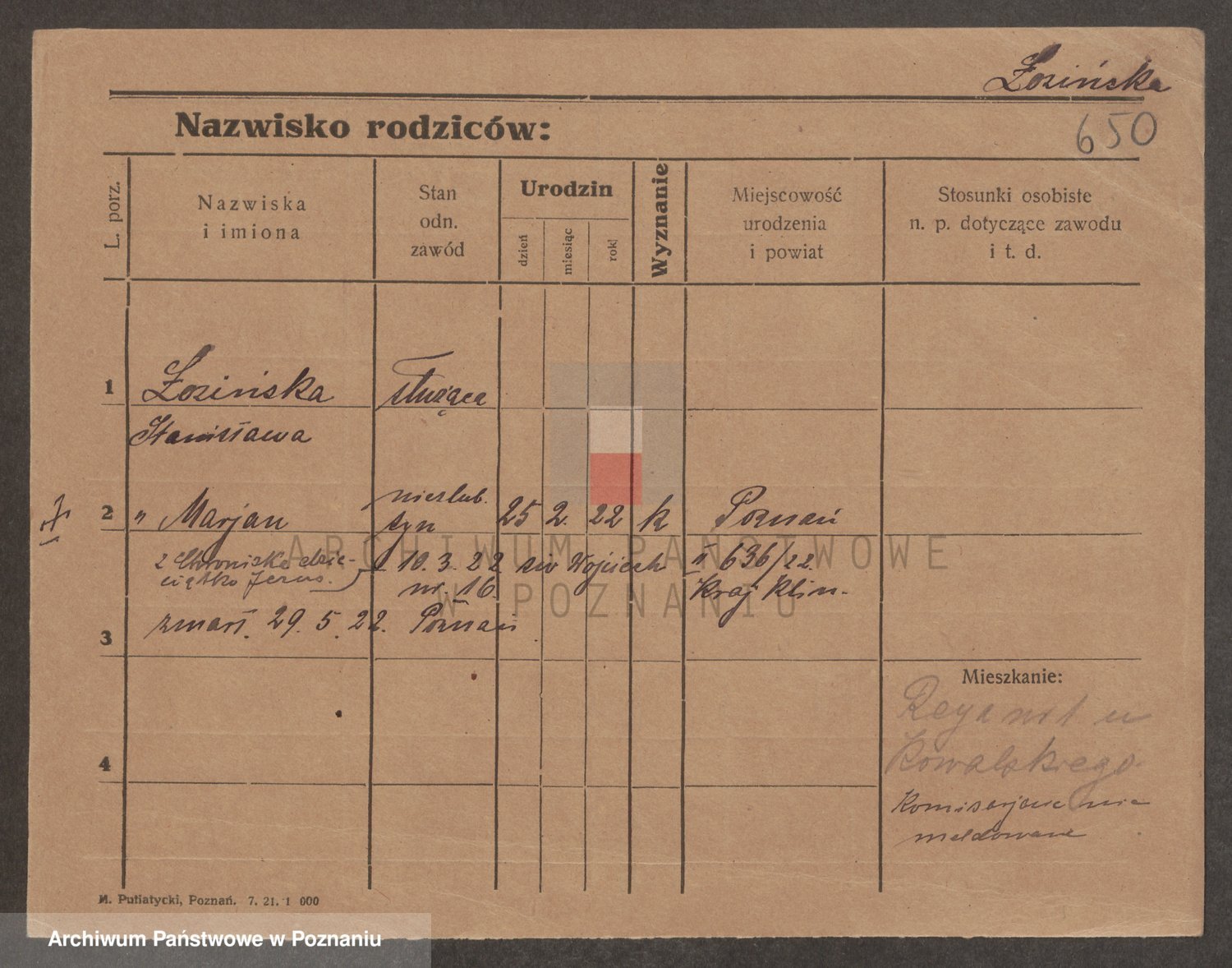 Podgląd karty osobowej dostępny jest po kliknięciu na nazwisko lub ikonkę karty. Można dokonywać powiększenia (ikony na górze) lub przechodzić między kolejnymi skanami (strzałki po bokach).