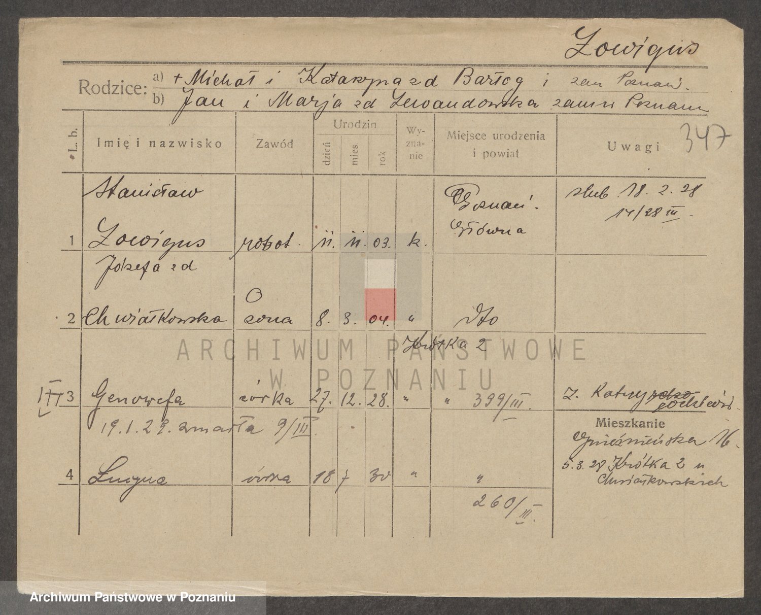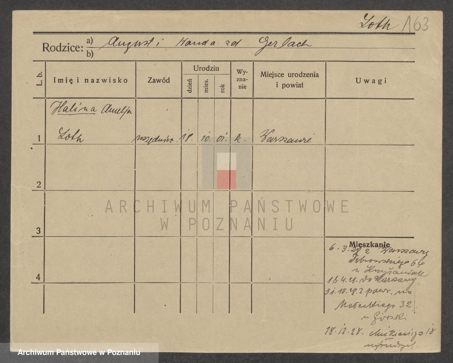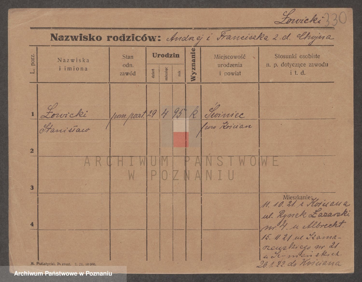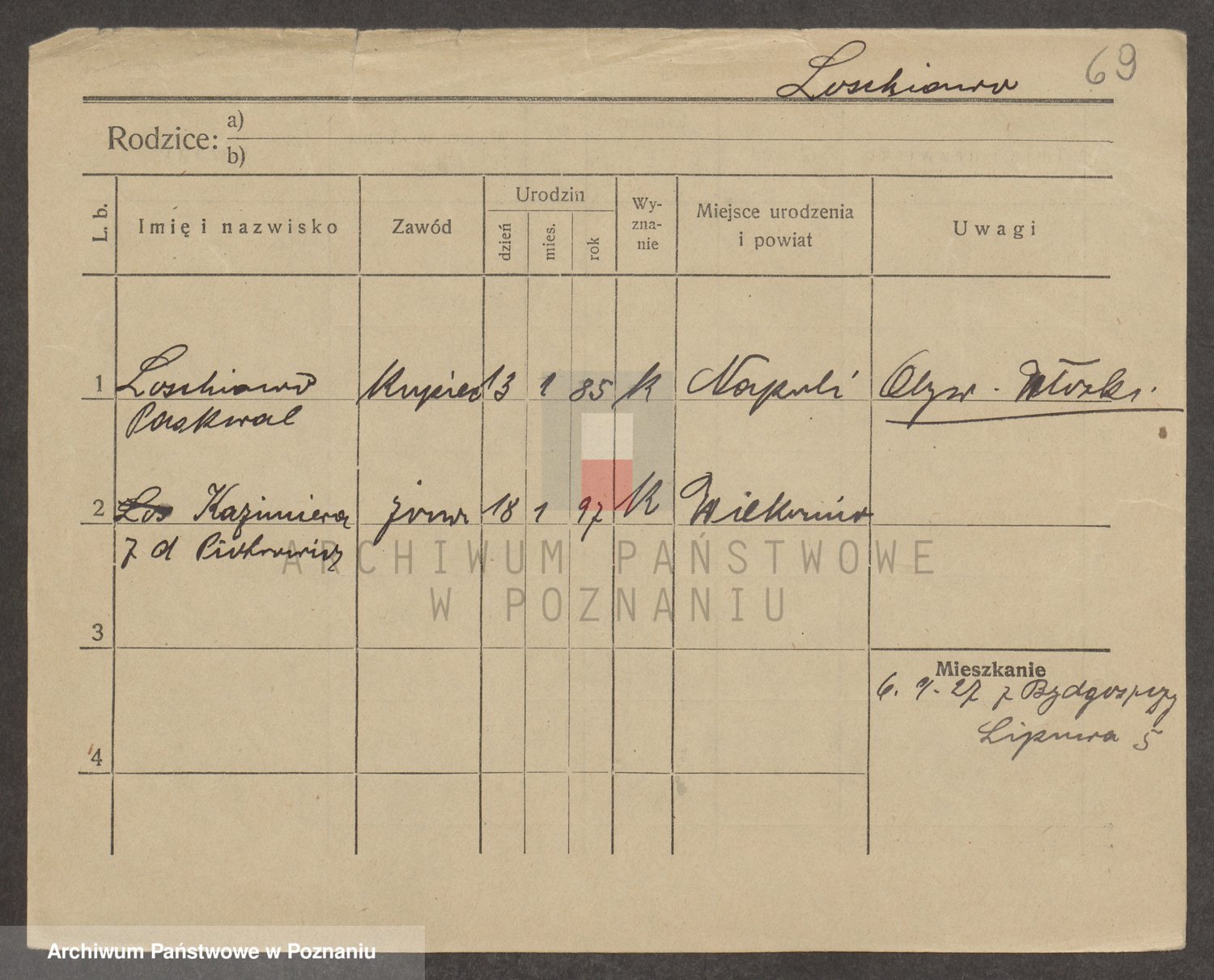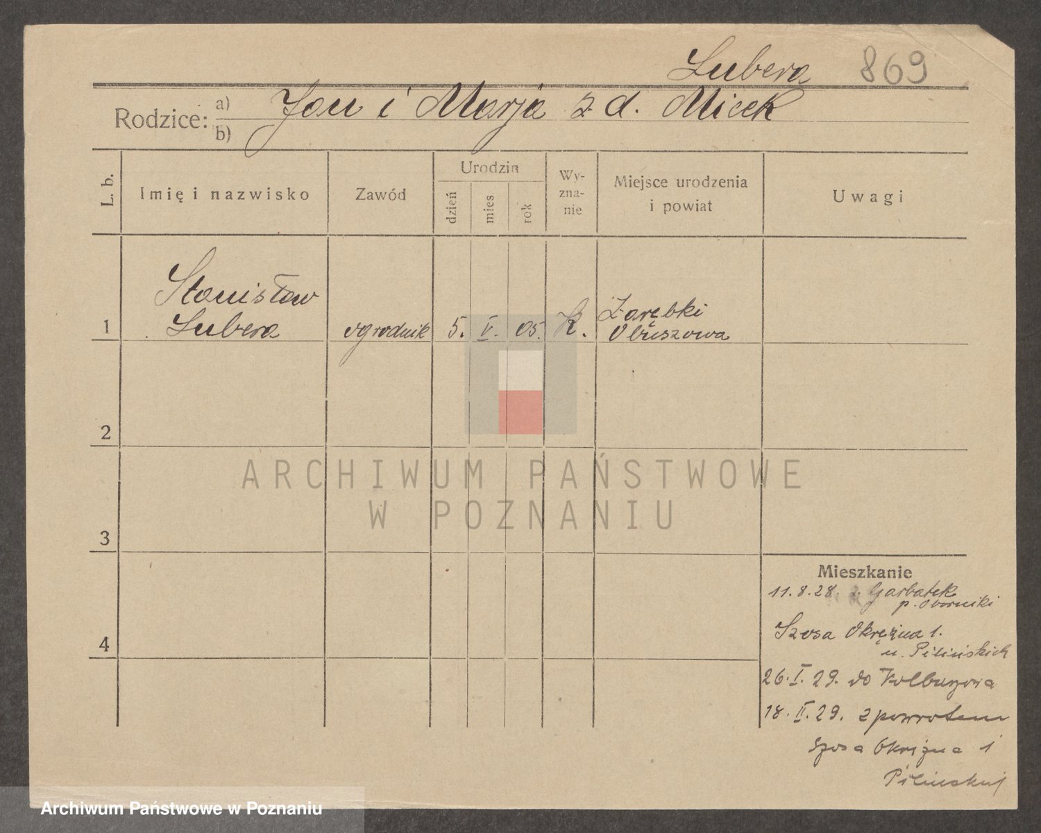 Podgląd karty osobowej dostępny jest po kliknięciu na nazwisko lub ikonkę karty. Można dokonywać powiększenia (ikony na górze) lub przechodzić między kolejnymi skanami (strzałki po bokach).