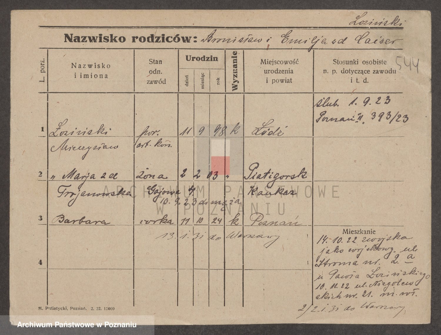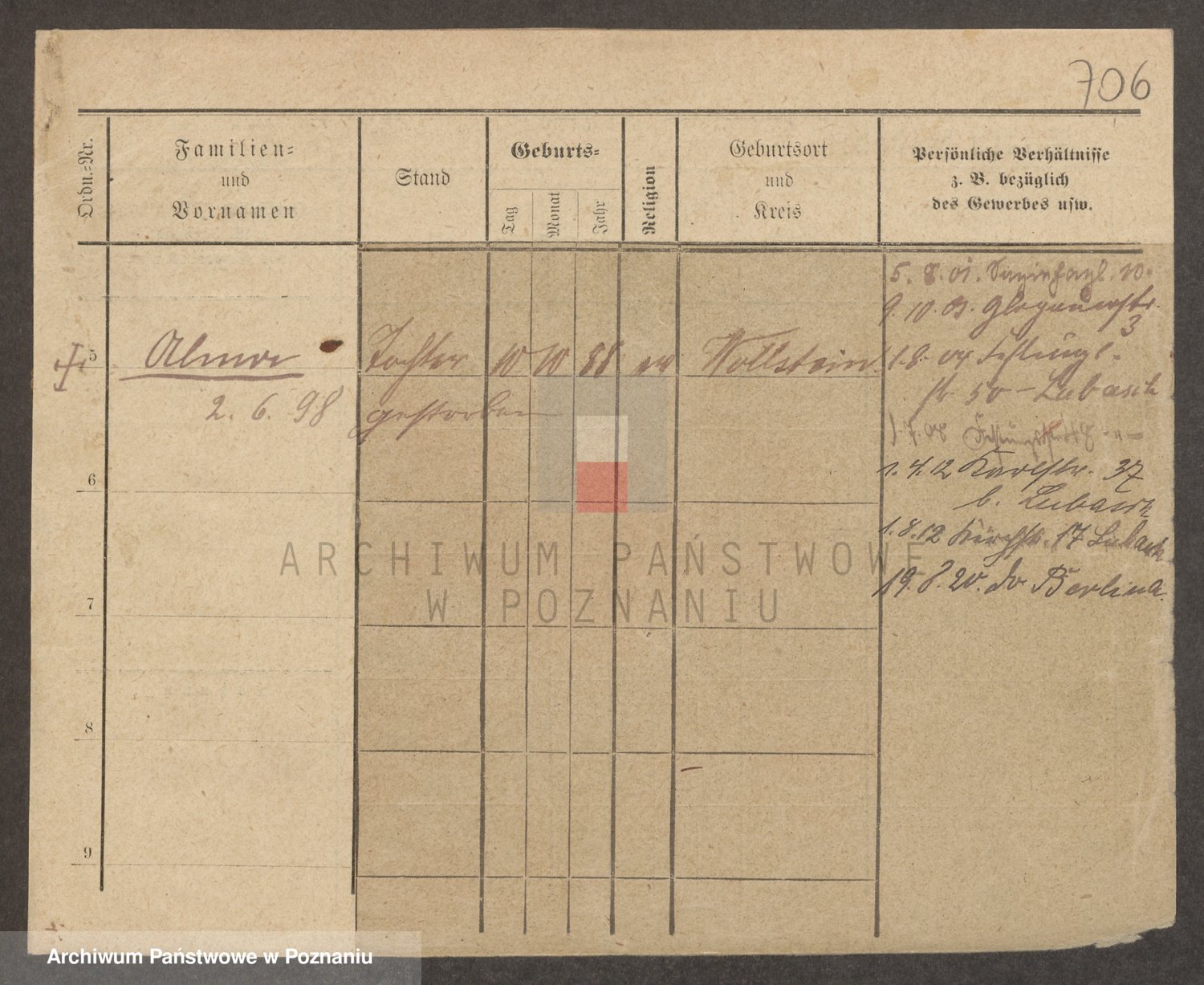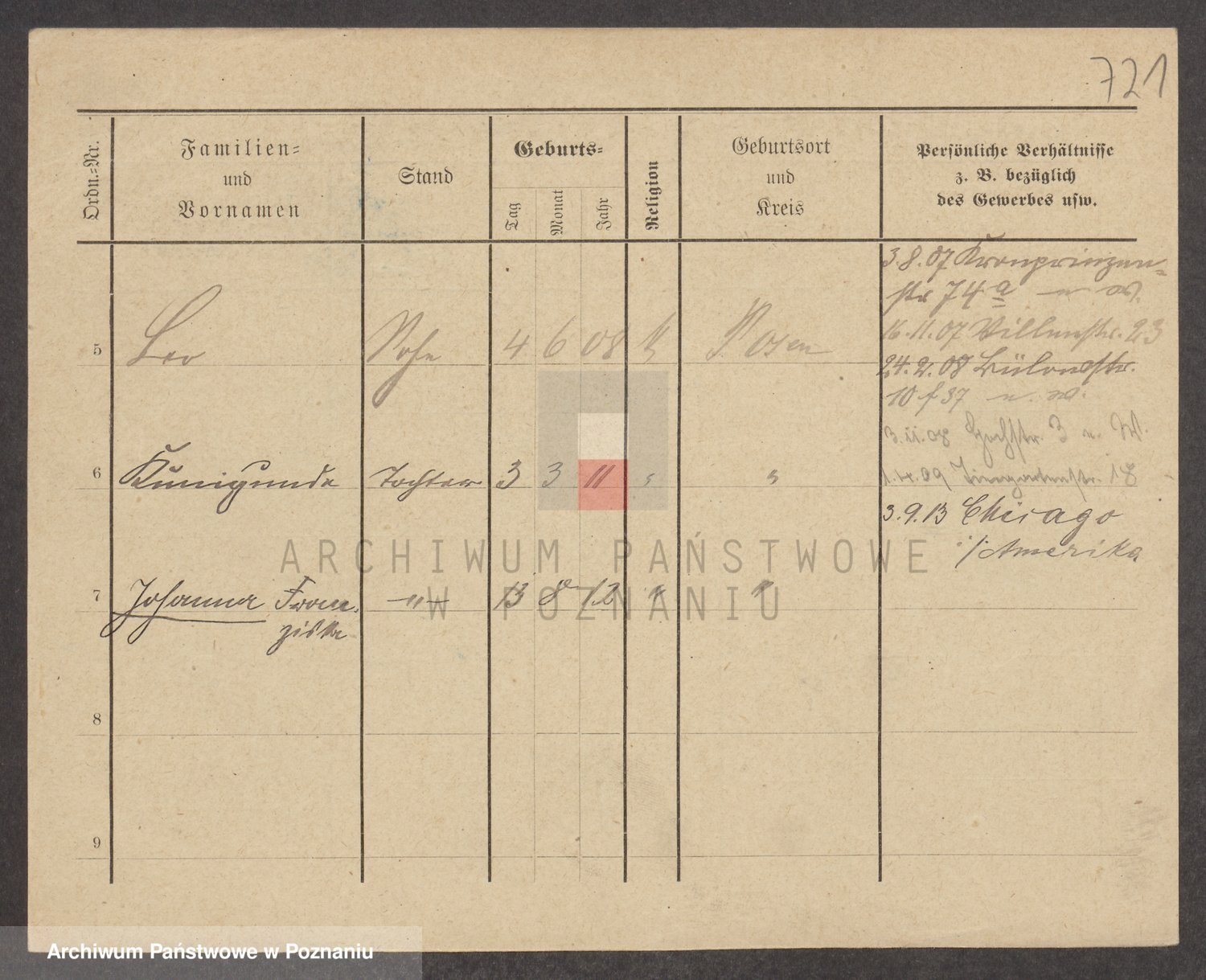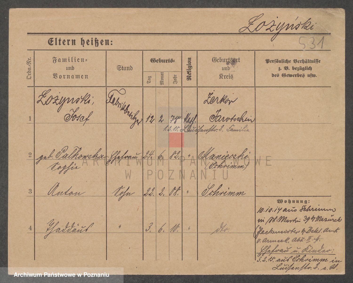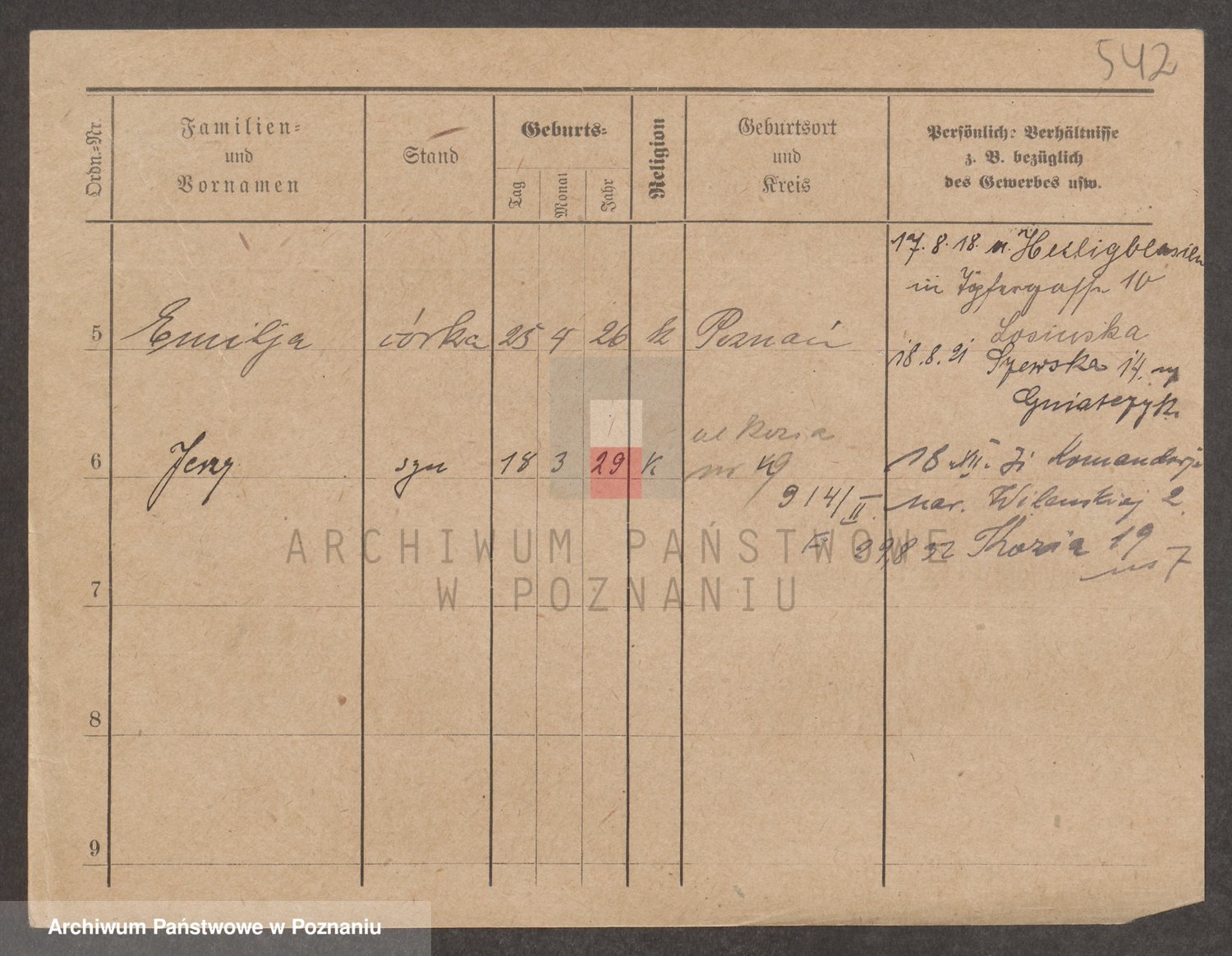 Podgląd karty osobowej dostępny jest po kliknięciu na nazwisko lub ikonkę karty. Można dokonywać powiększenia (ikony na górze) lub przechodzić między kolejnymi skanami (strzałki po bokach).