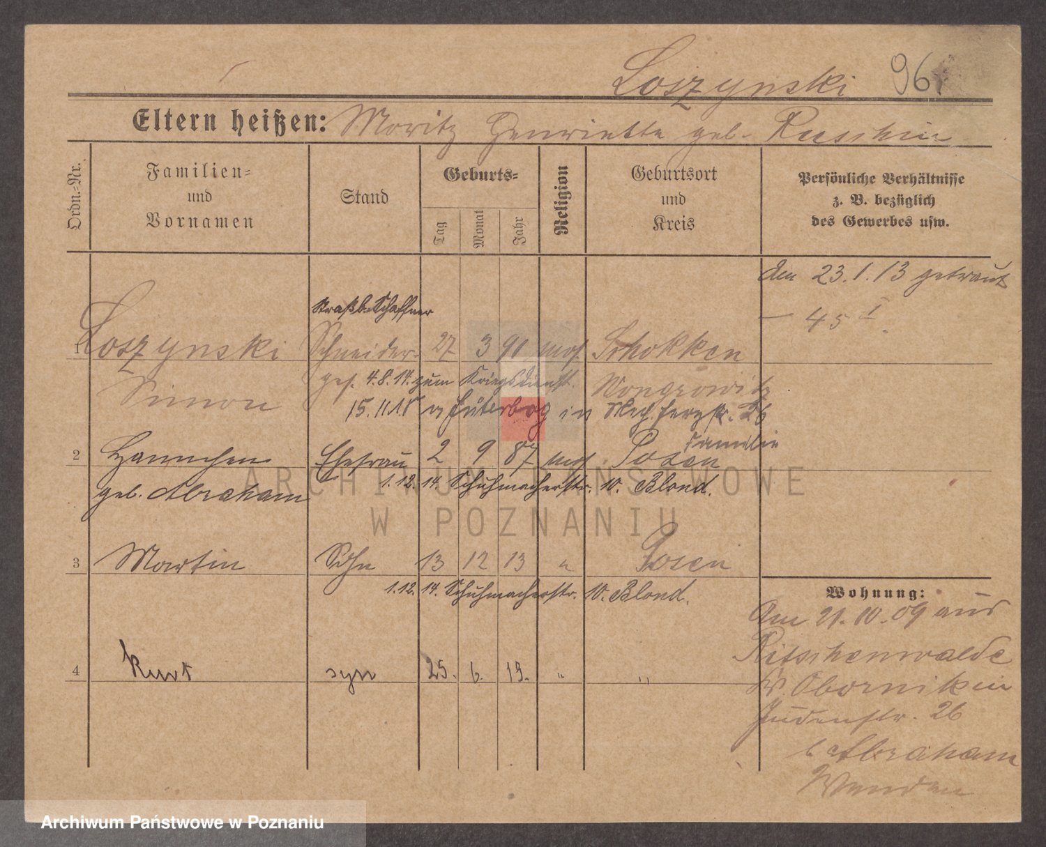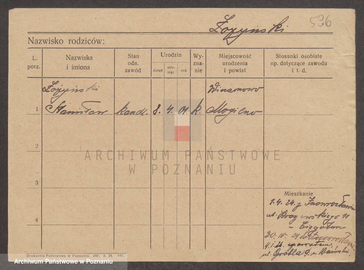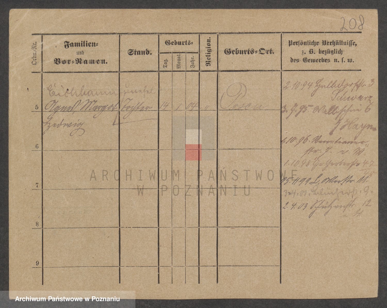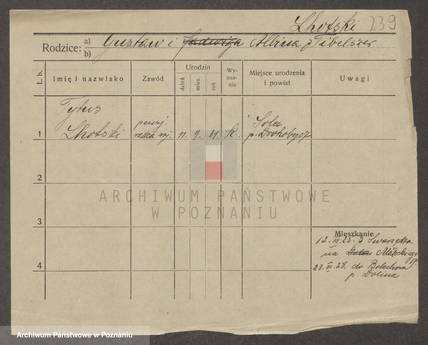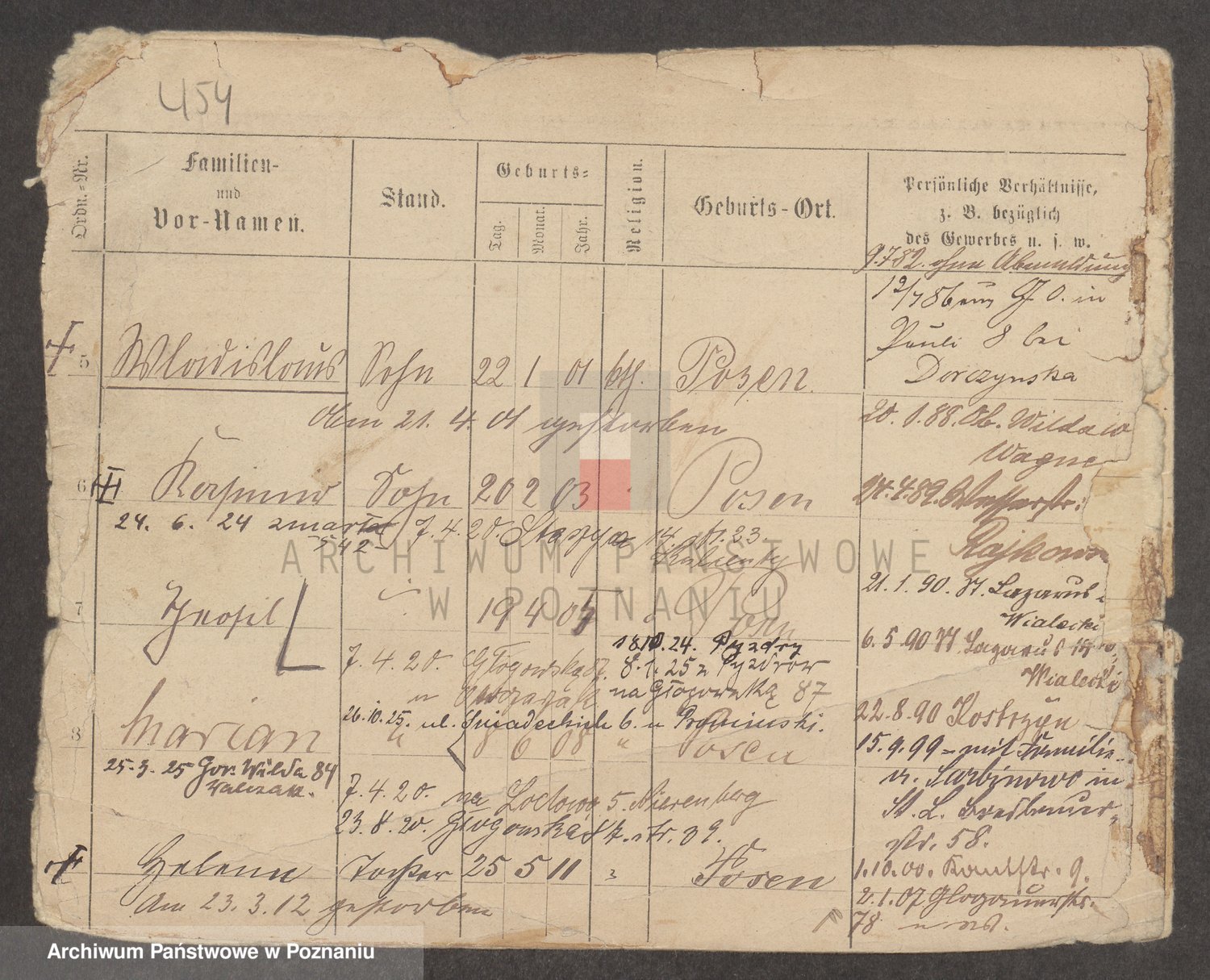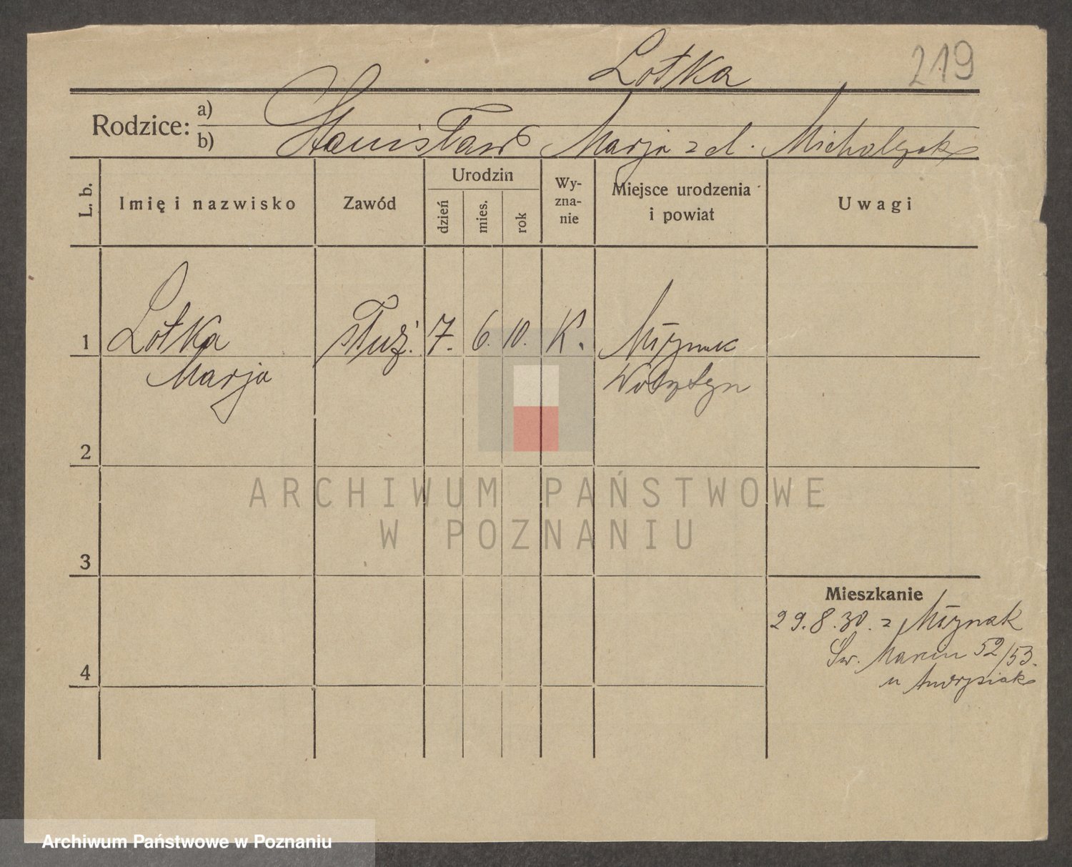 Podgląd karty osobowej dostępny jest po kliknięciu na nazwisko lub ikonkę karty. Można dokonywać powiększenia (ikony na górze) lub przechodzić między kolejnymi skanami (strzałki po bokach).