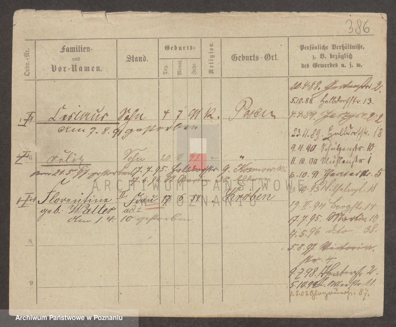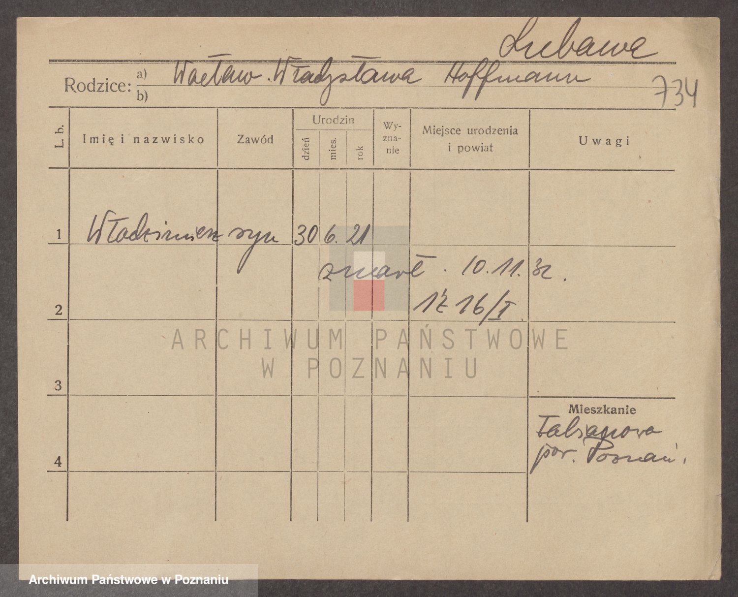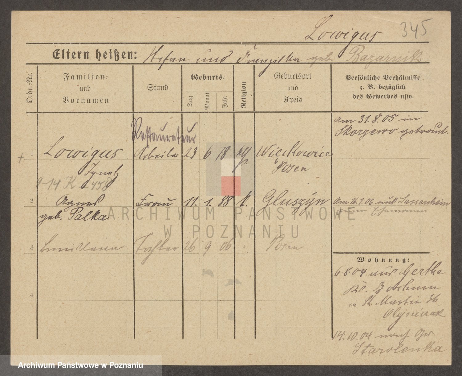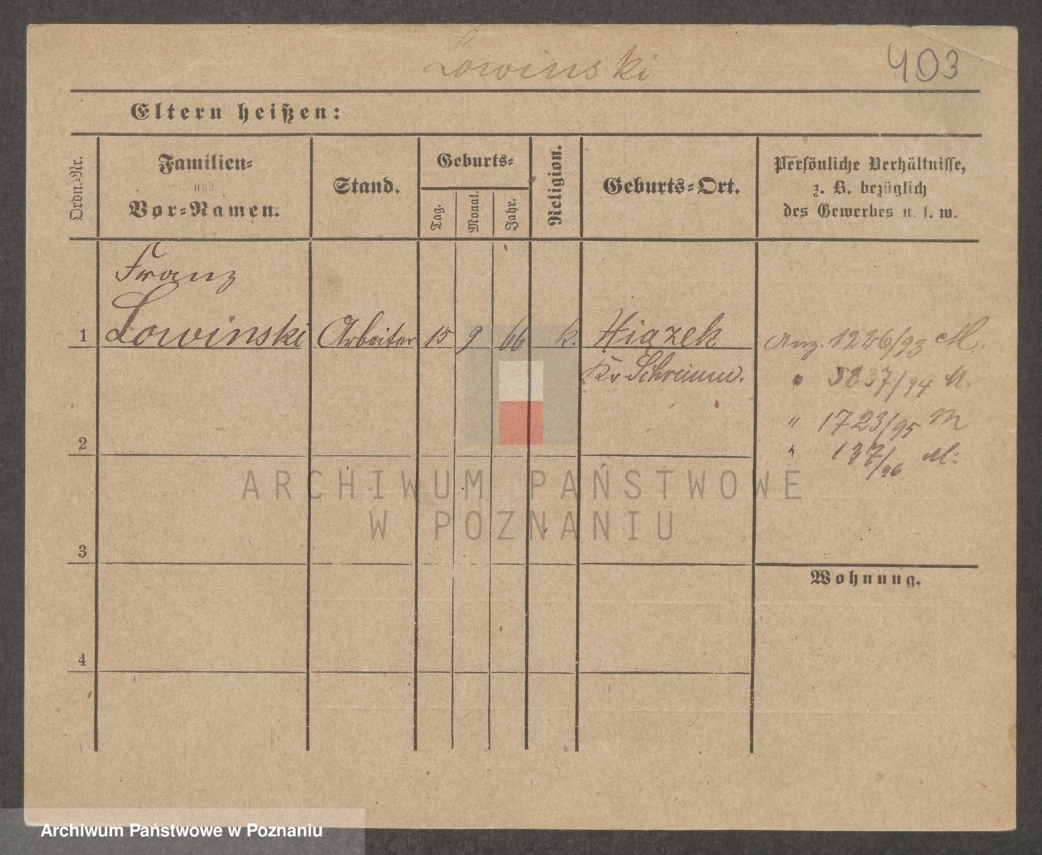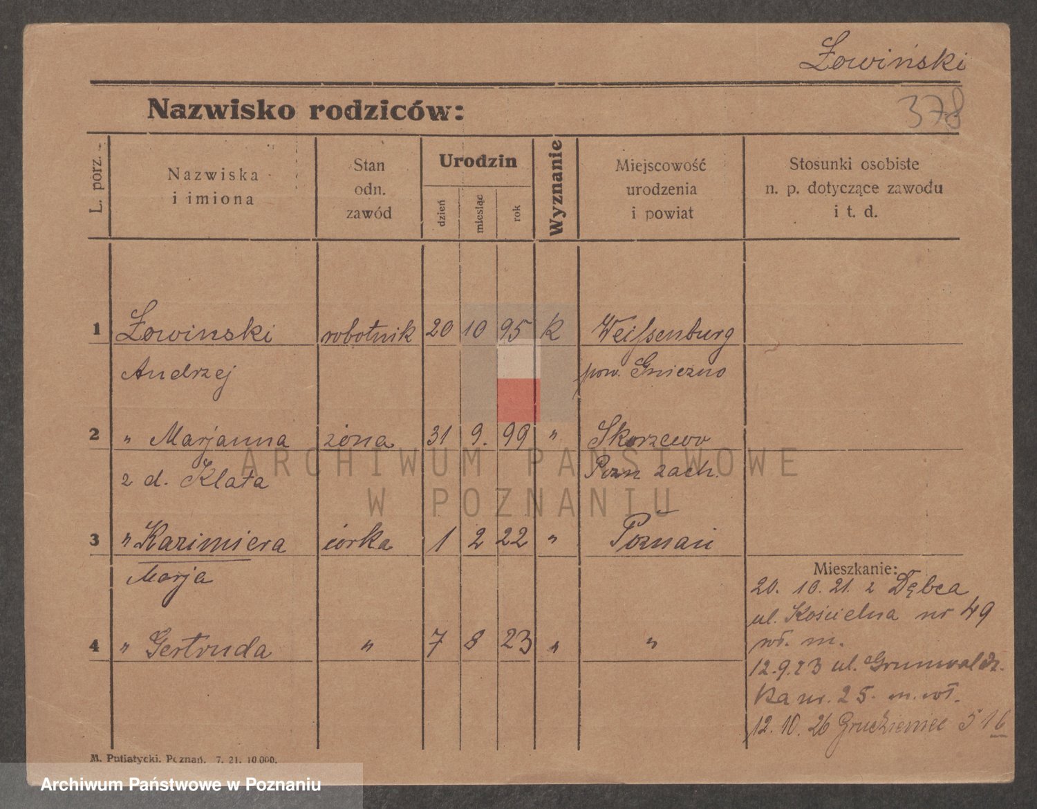 Podgląd karty osobowej dostępny jest po kliknięciu na nazwisko lub ikonkę karty. Można dokonywać powiększenia (ikony na górze) lub przechodzić między kolejnymi skanami (strzałki po bokach).