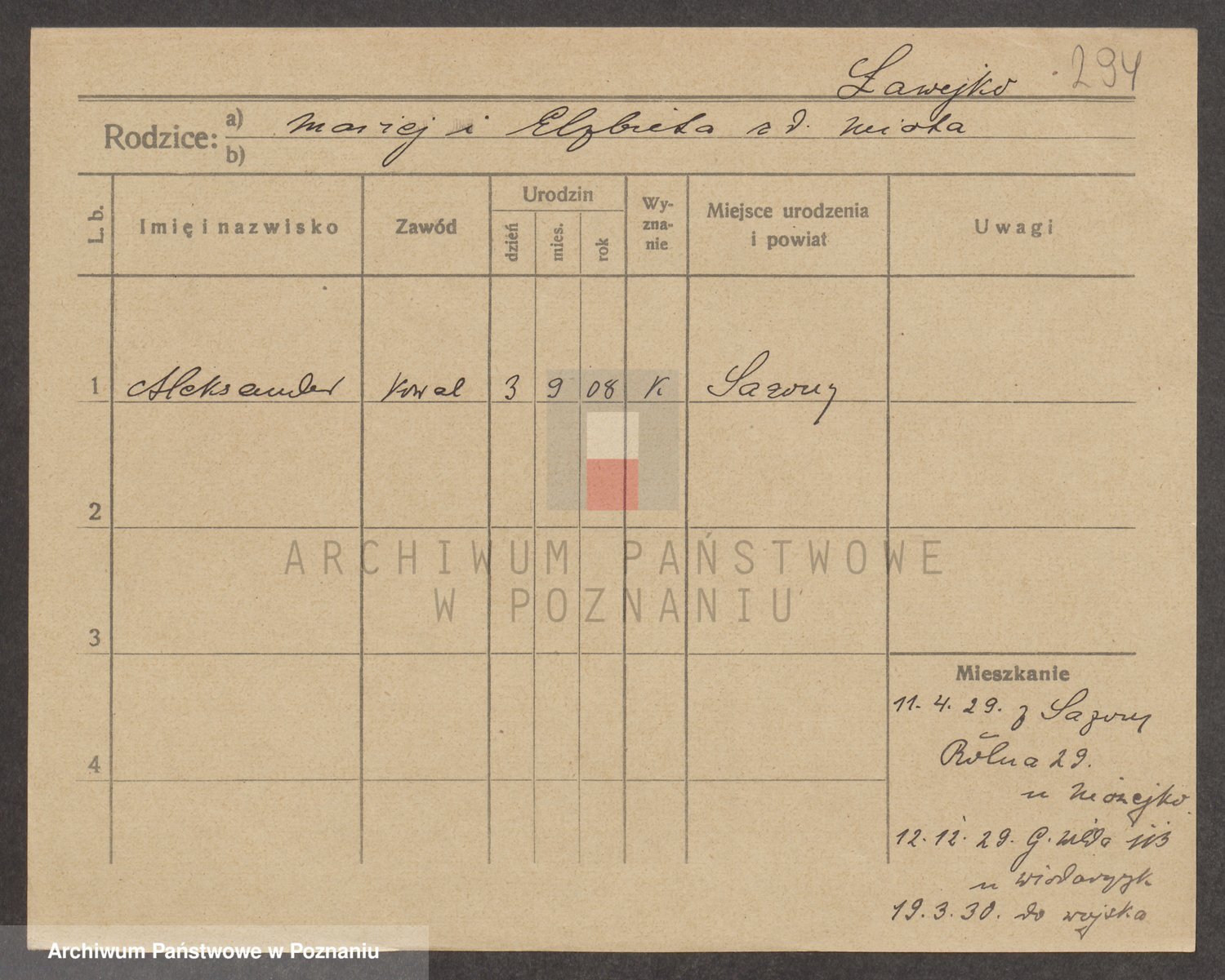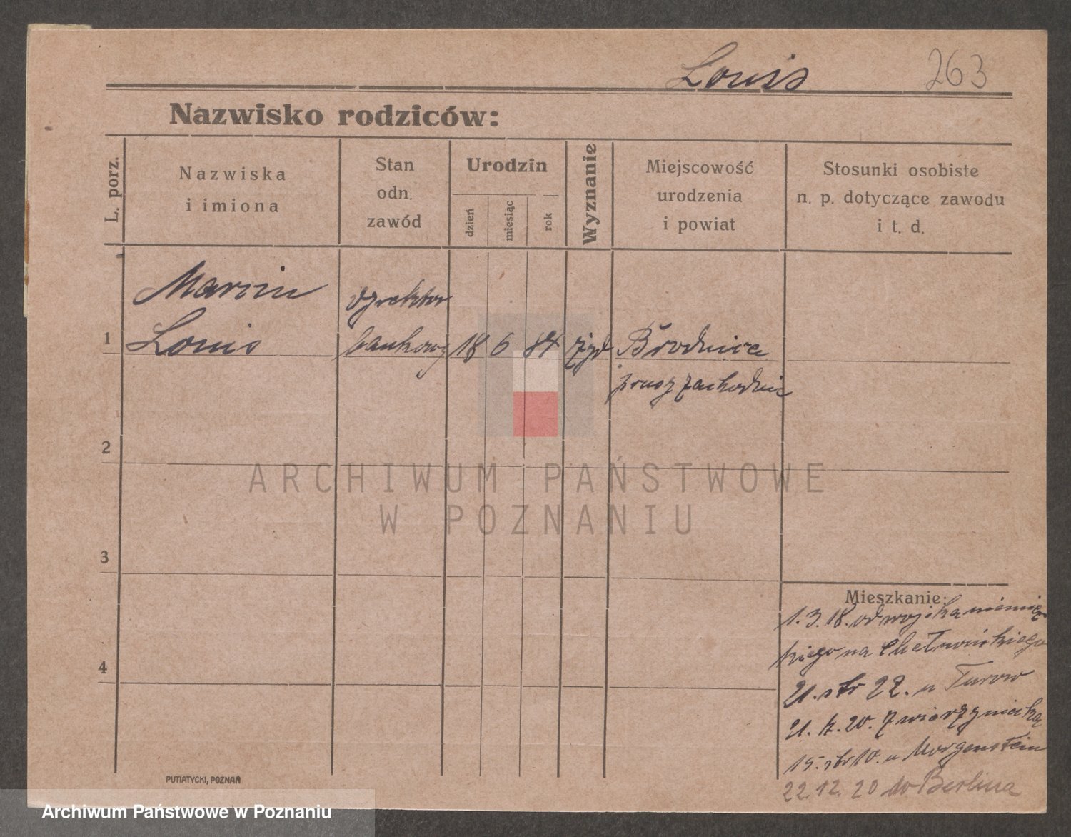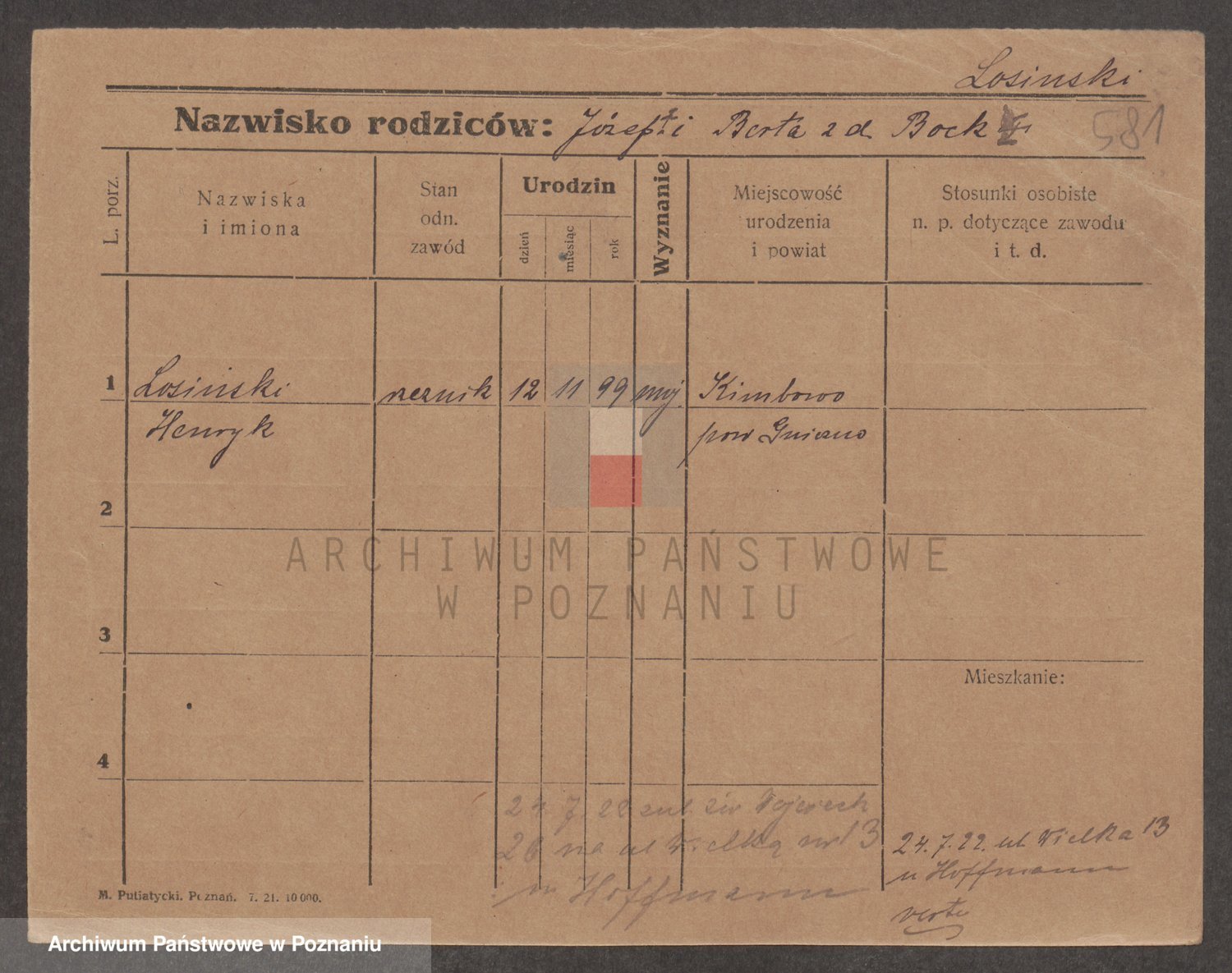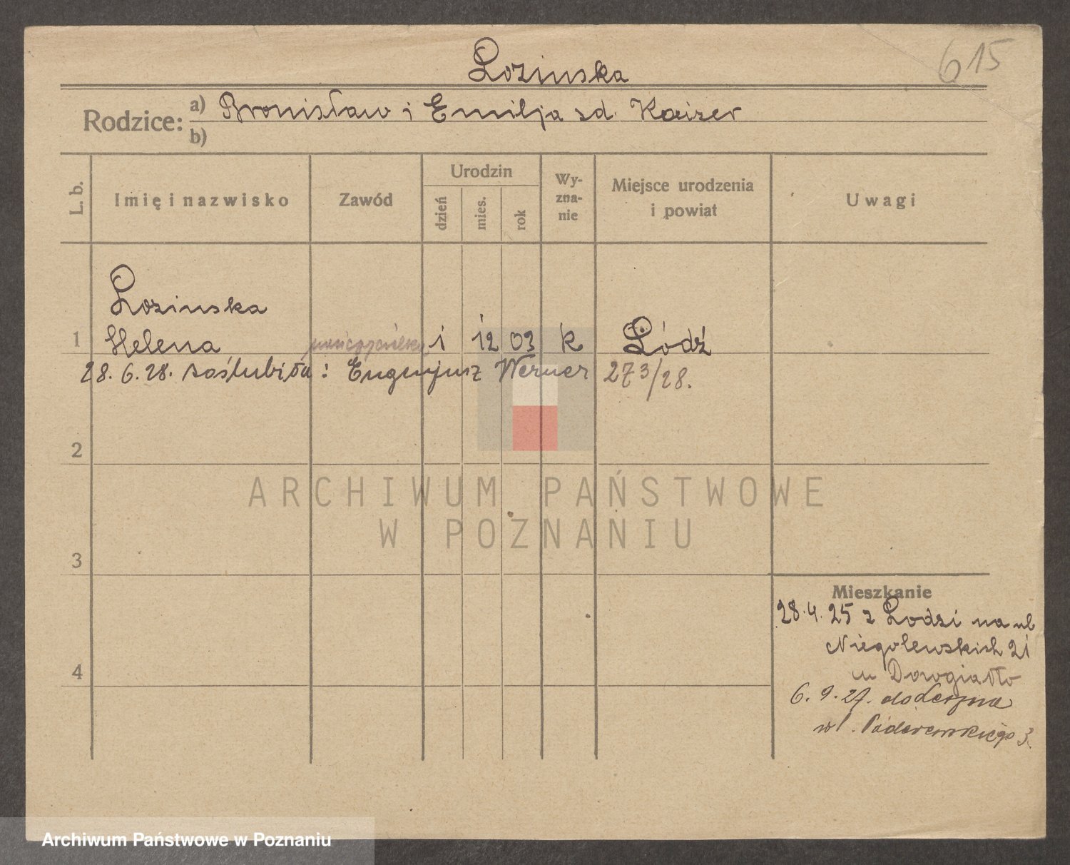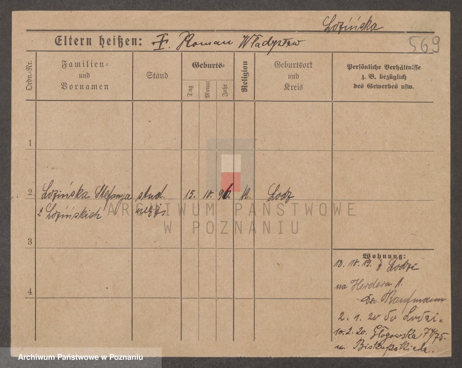 Podgląd karty osobowej dostępny jest po kliknięciu na nazwisko lub ikonkę karty. Można dokonywać powiększenia (ikony na górze) lub przechodzić między kolejnymi skanami (strzałki po bokach).