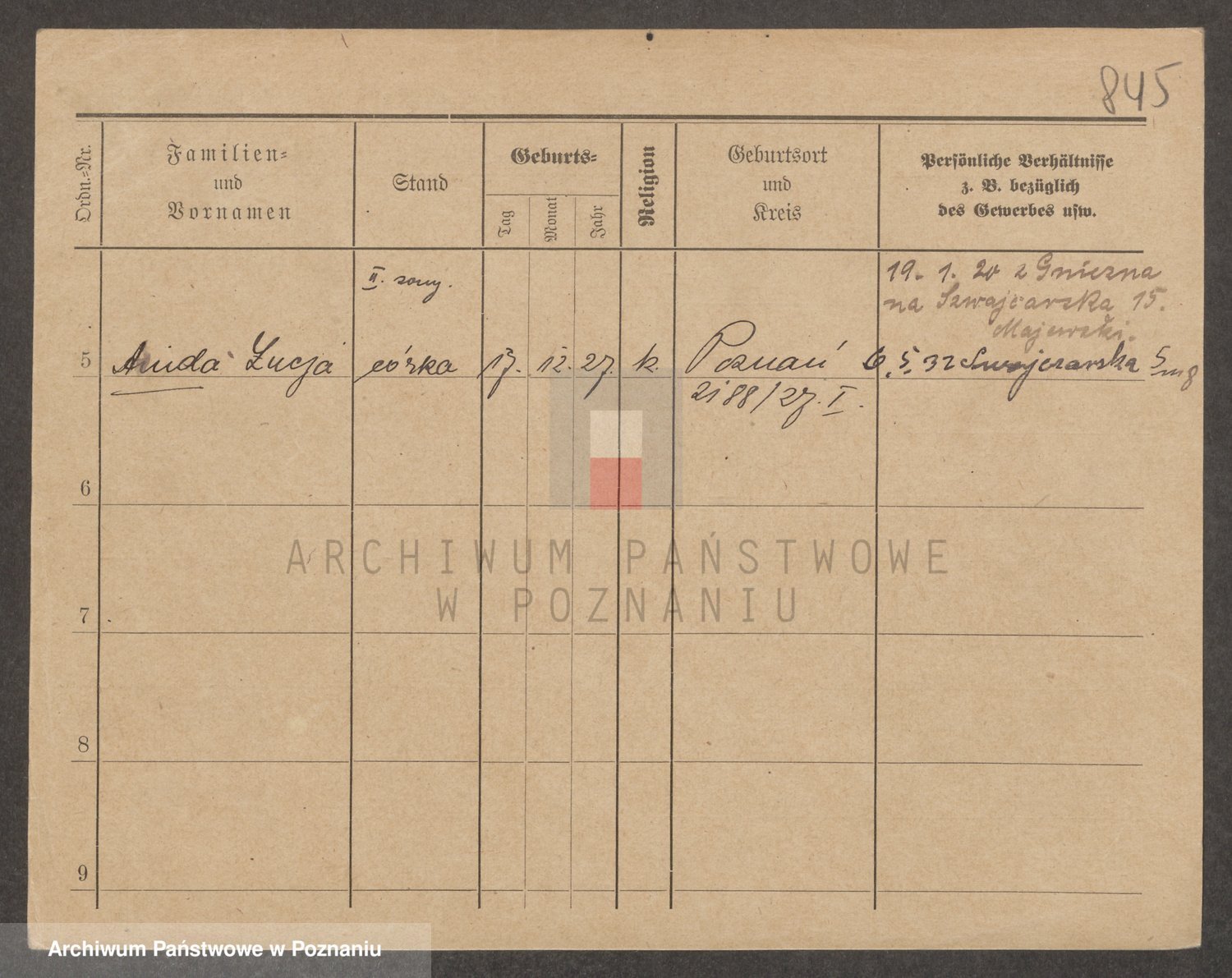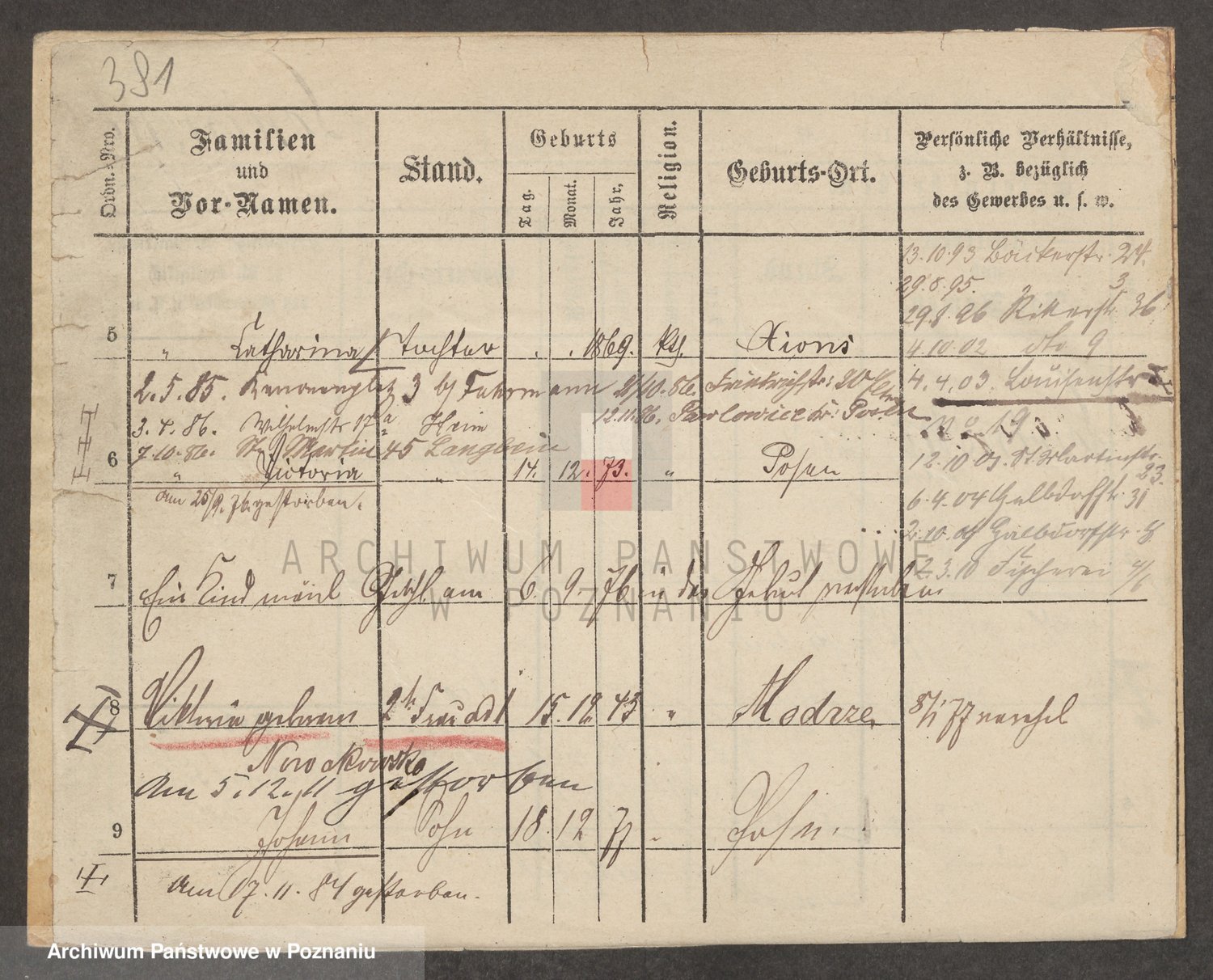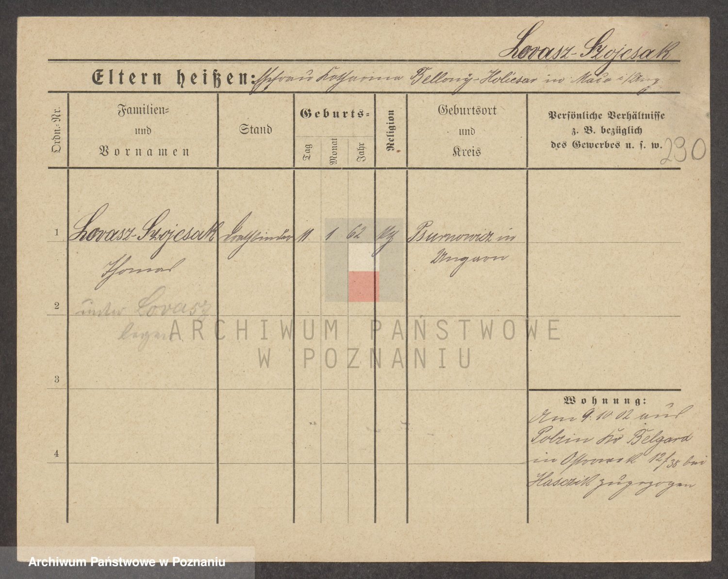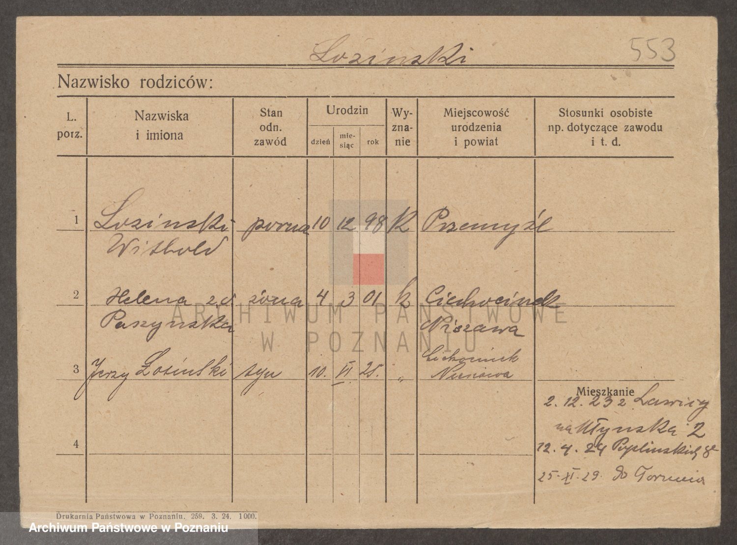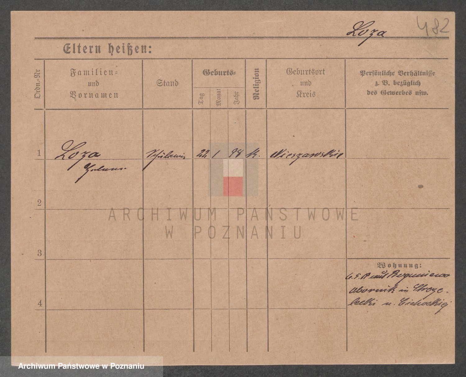 Podgląd karty osobowej dostępny jest po kliknięciu na nazwisko lub ikonkę karty. Można dokonywać powiększenia (ikony na górze) lub przechodzić między kolejnymi skanami (strzałki po bokach).