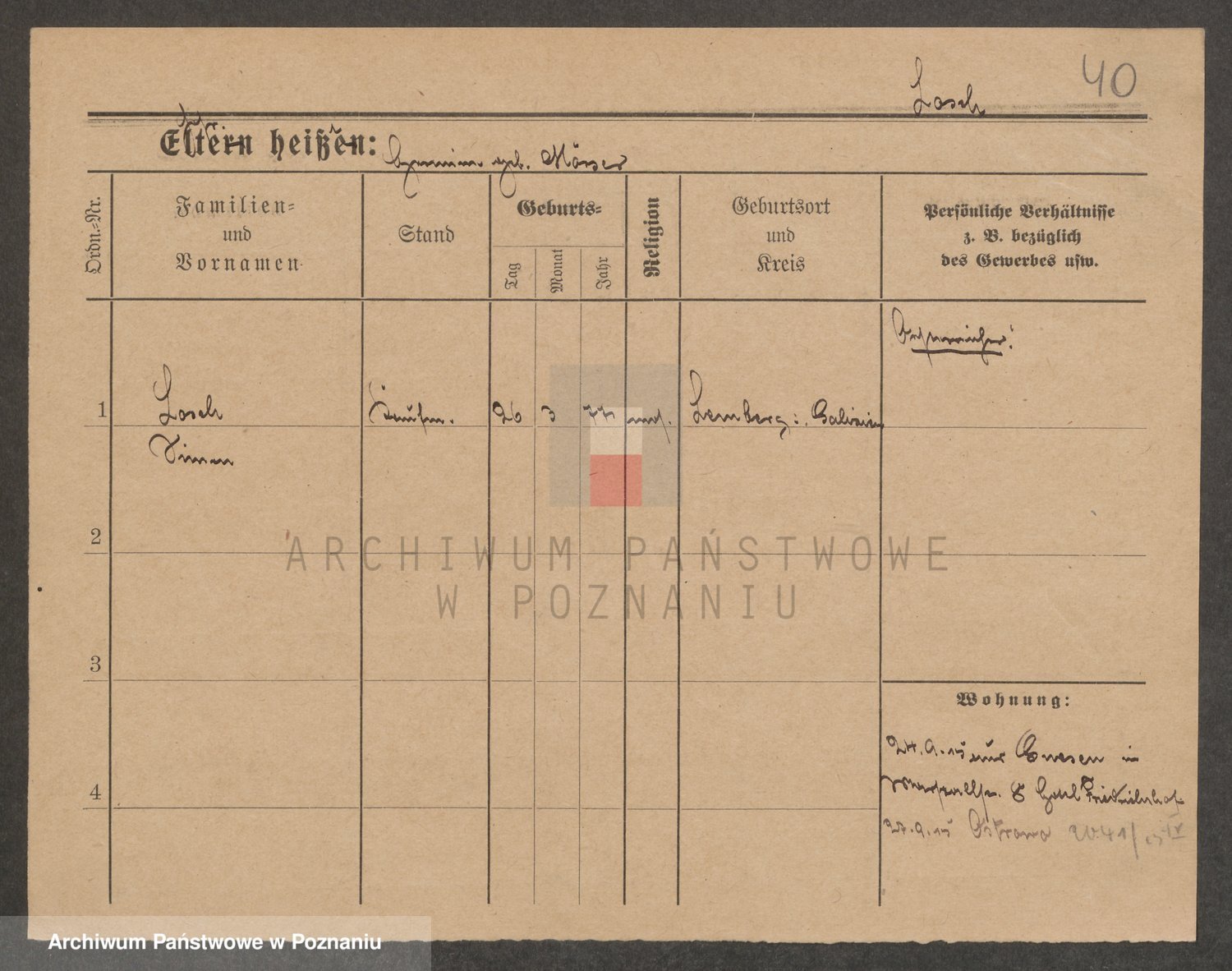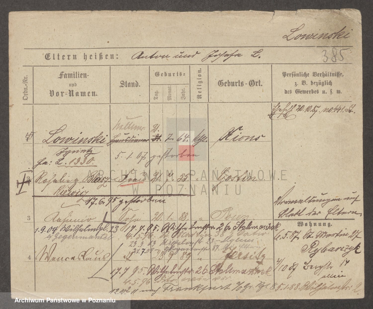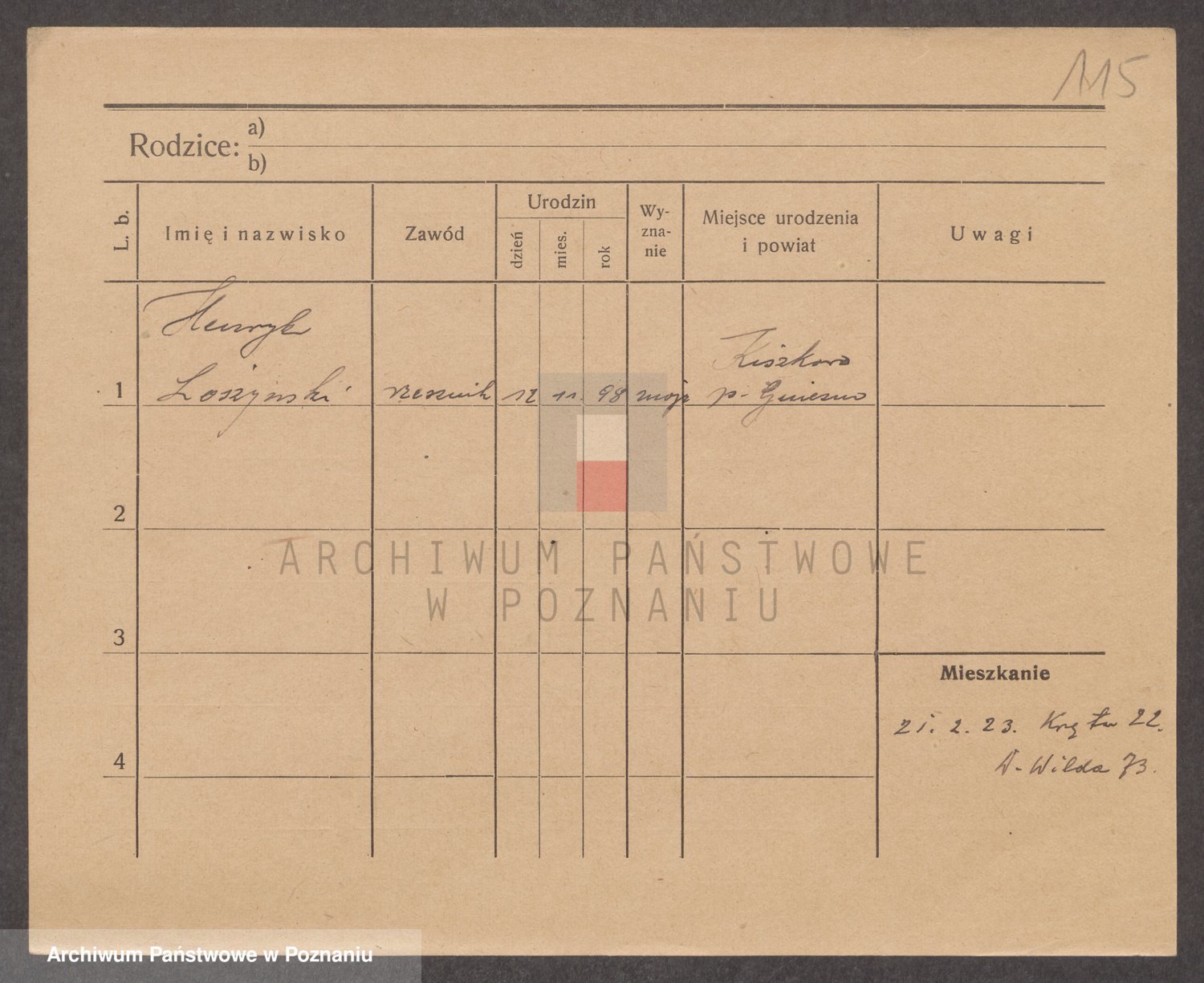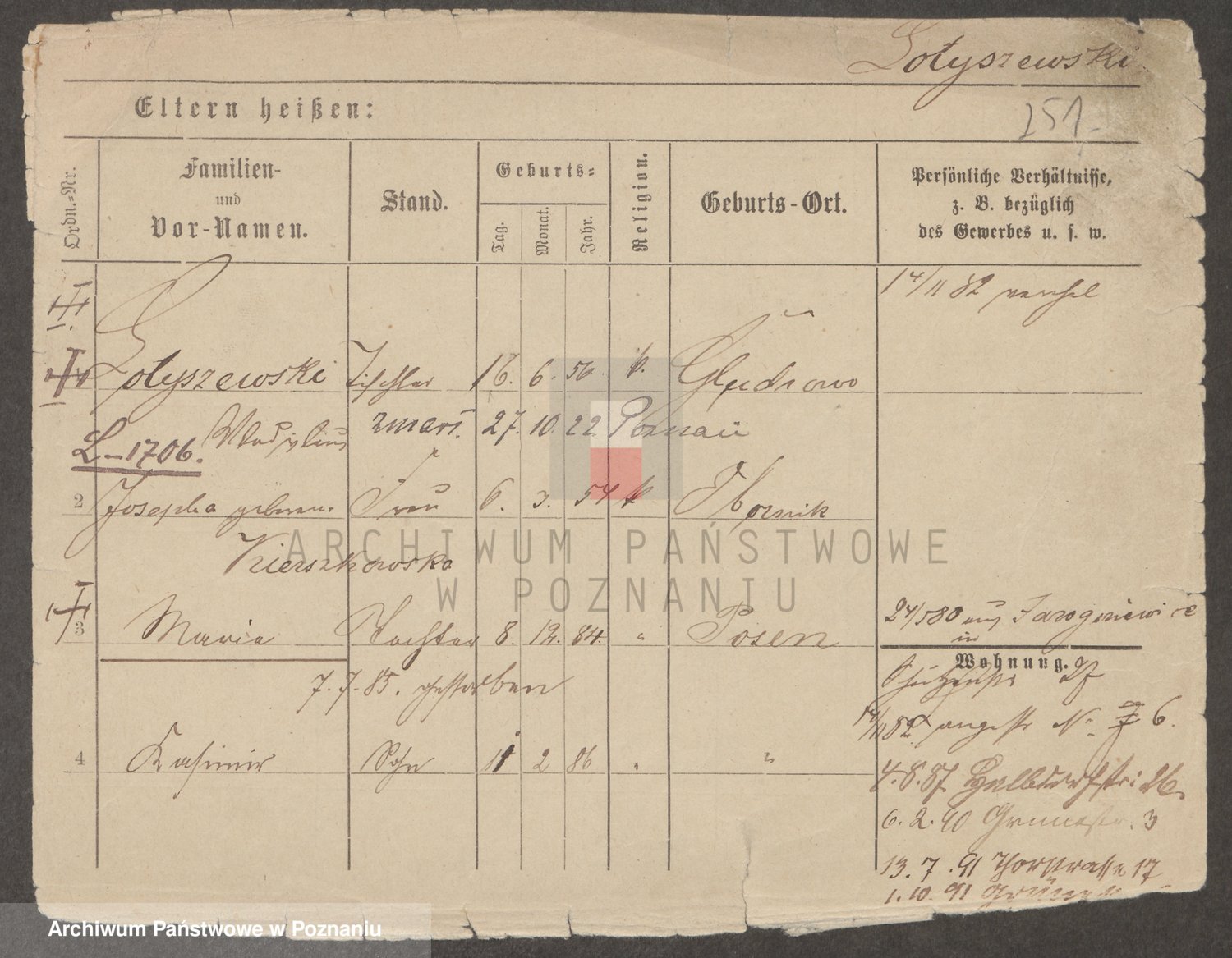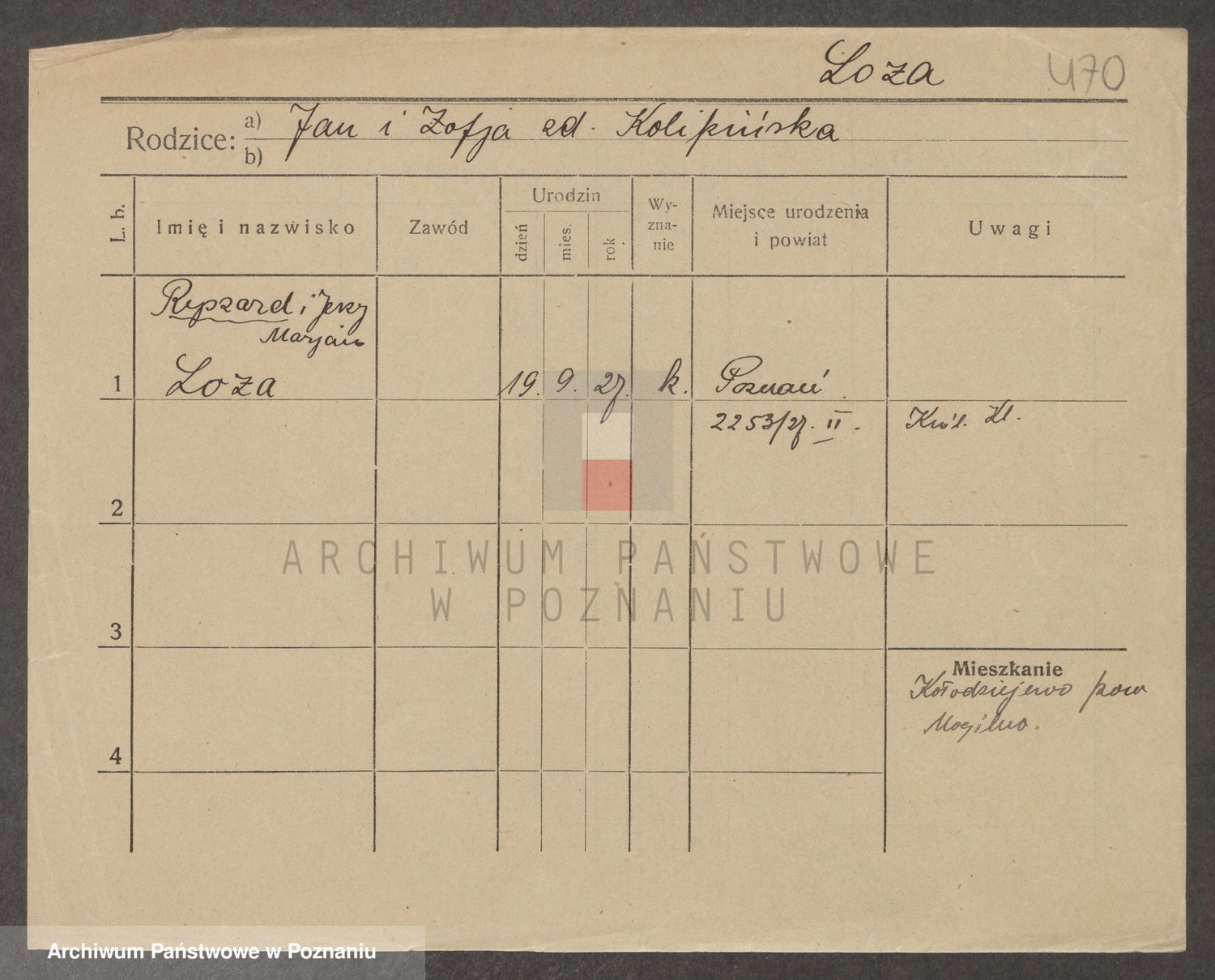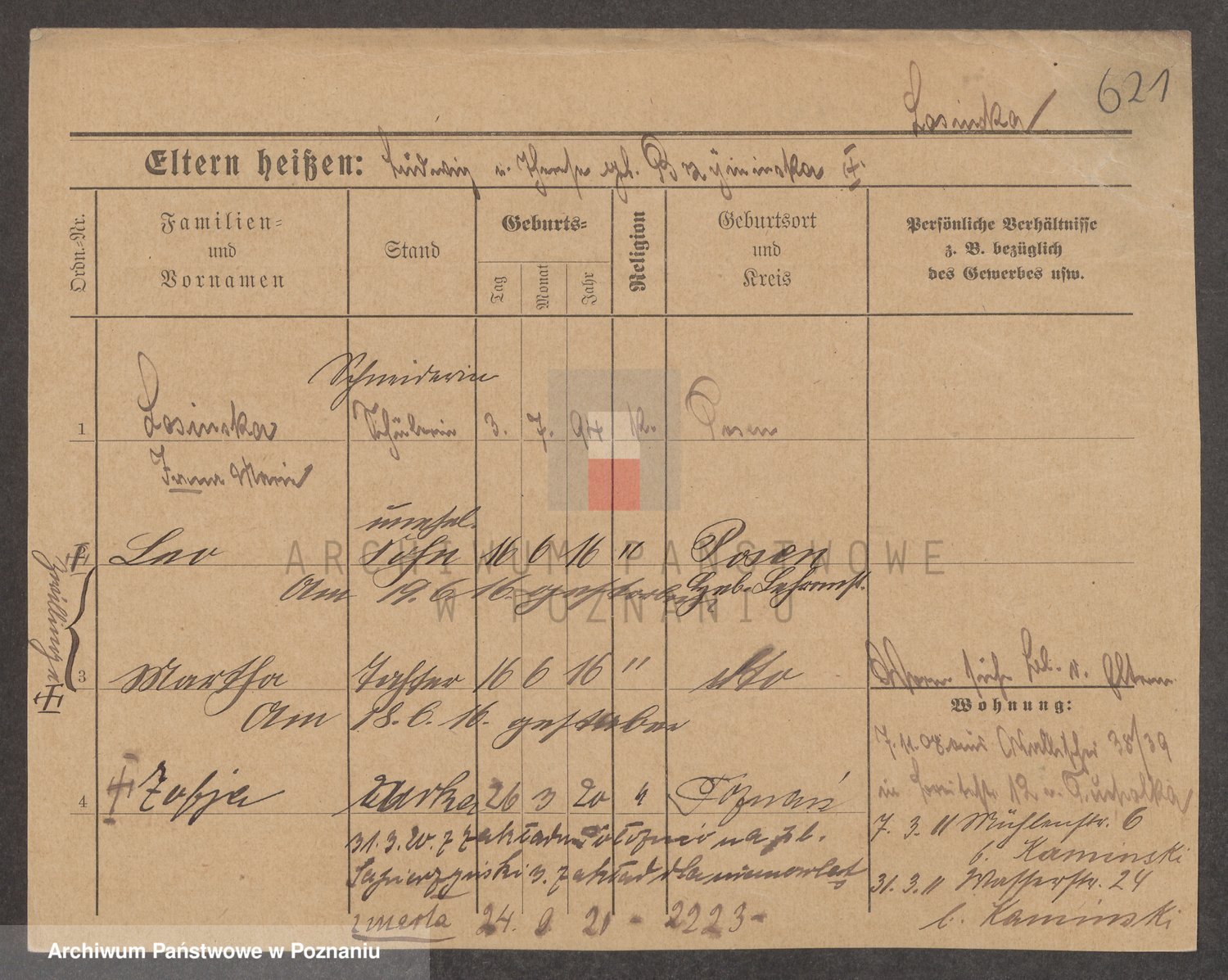 Podgląd karty osobowej dostępny jest po kliknięciu na nazwisko lub ikonkę karty. Można dokonywać powiększenia (ikony na górze) lub przechodzić między kolejnymi skanami (strzałki po bokach).