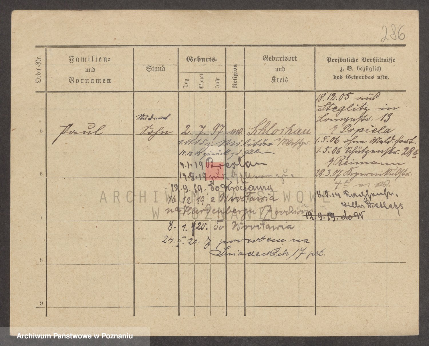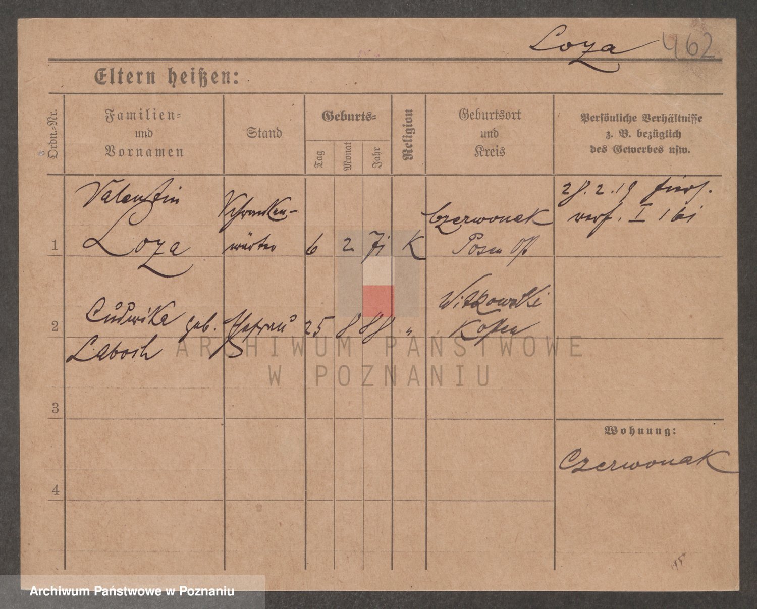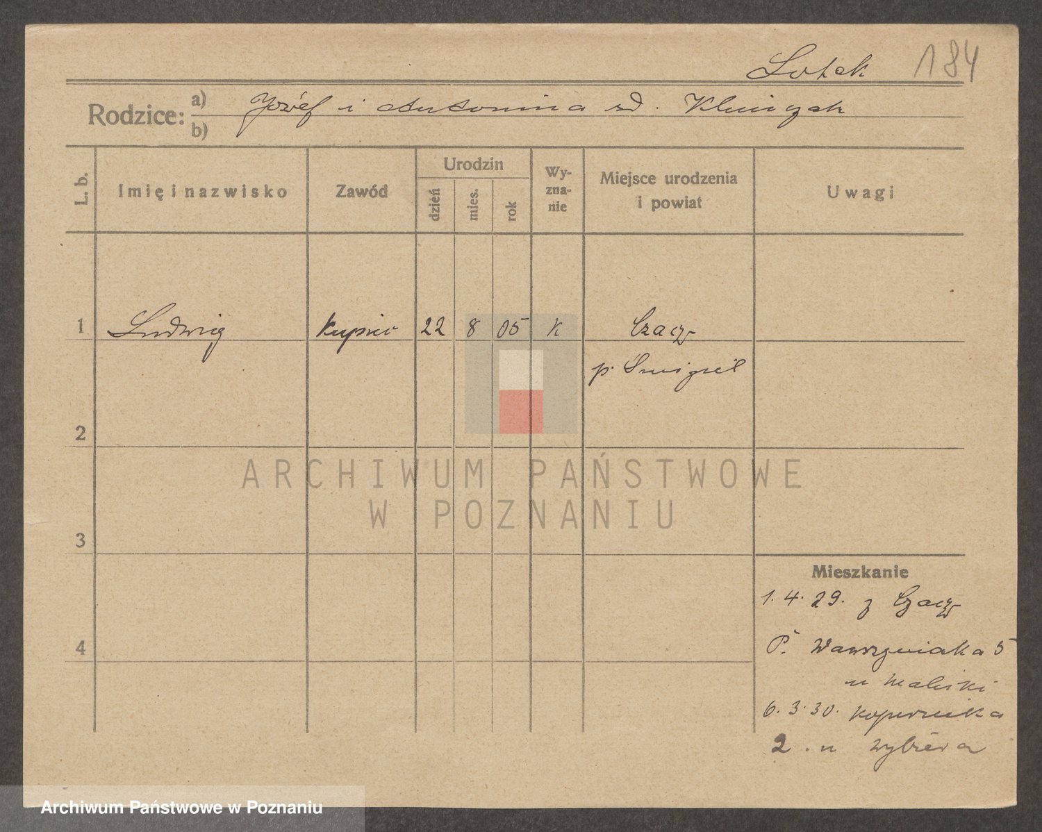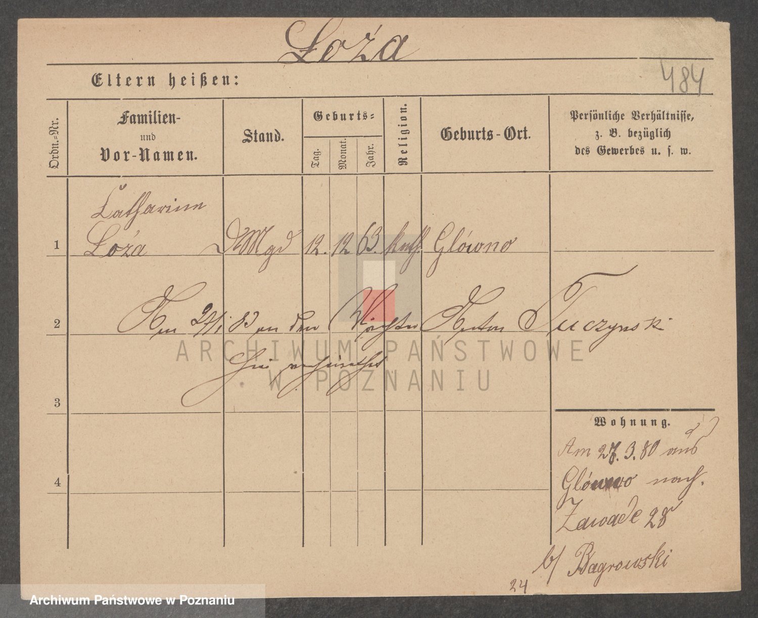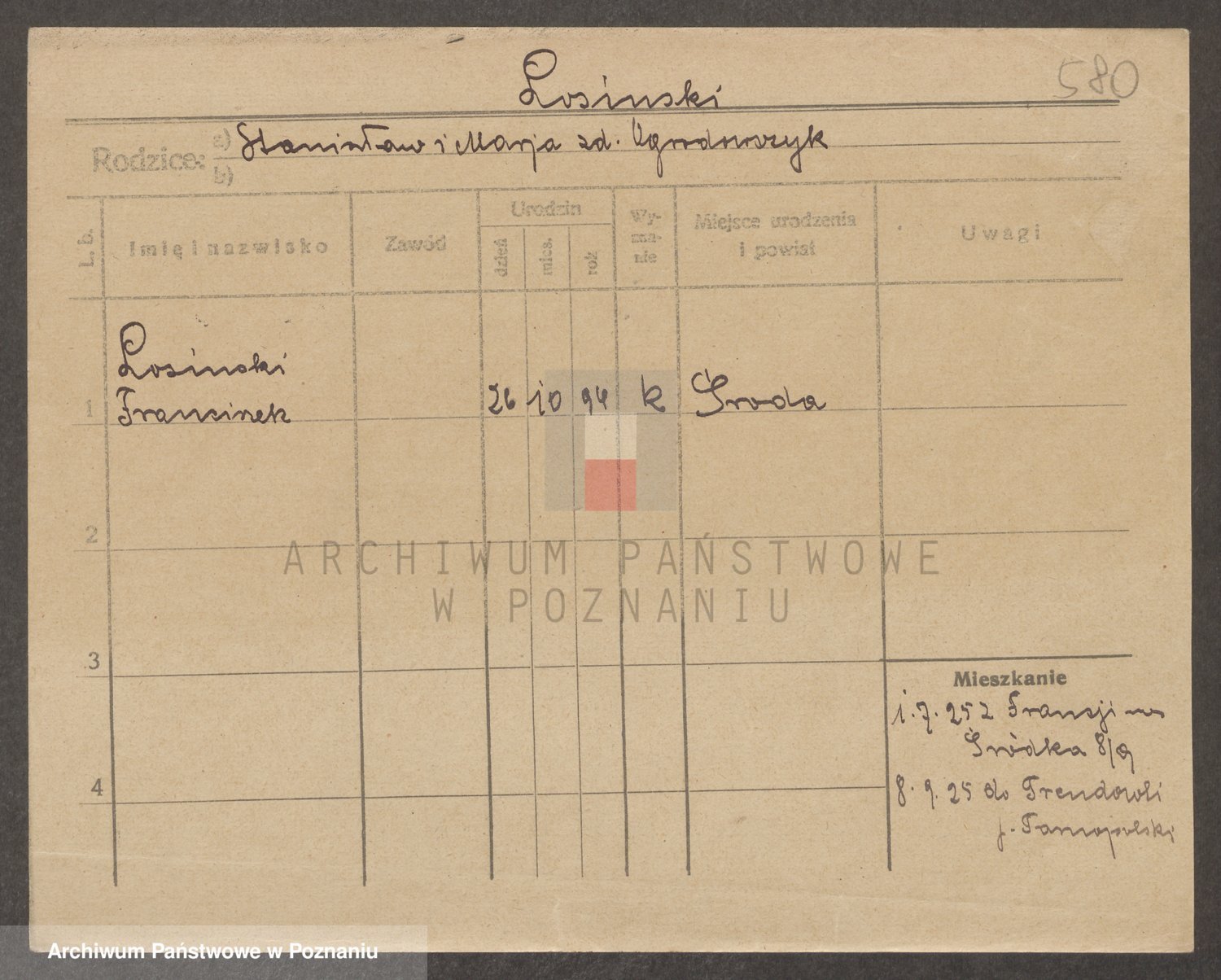 Podgląd karty osobowej dostępny jest po kliknięciu na nazwisko lub ikonkę karty. Można dokonywać powiększenia (ikony na górze) lub przechodzić między kolejnymi skanami (strzałki po bokach).