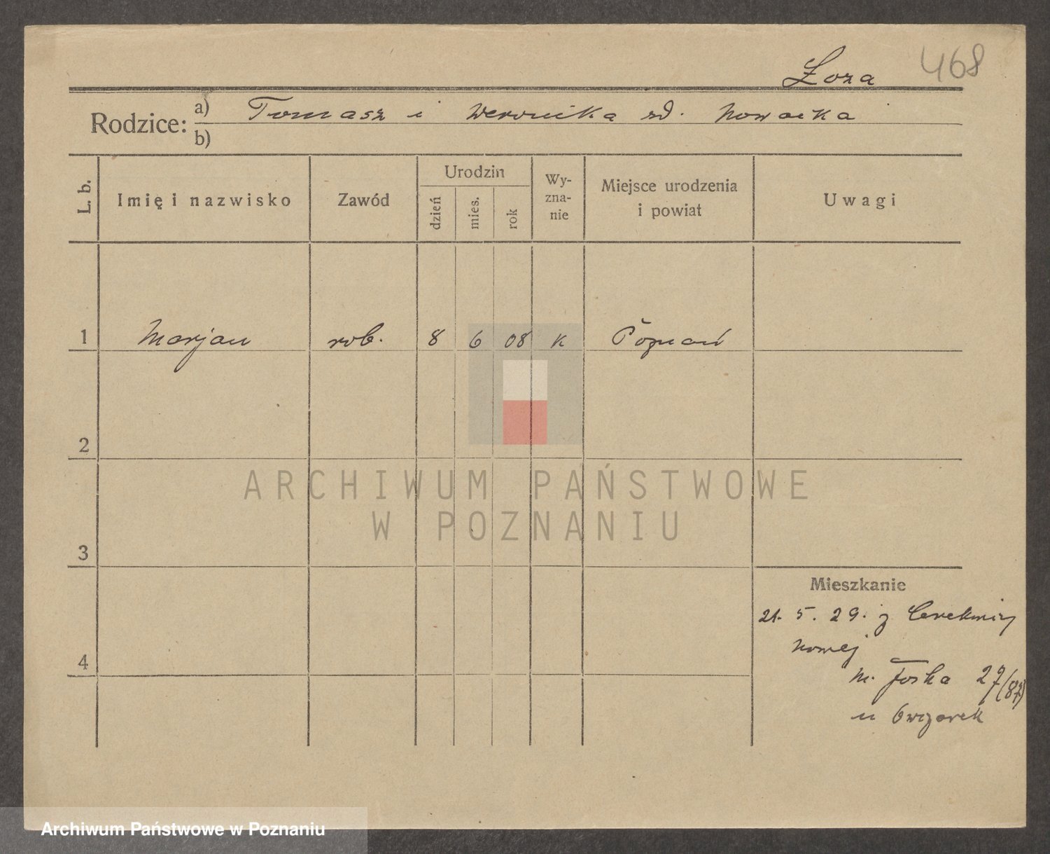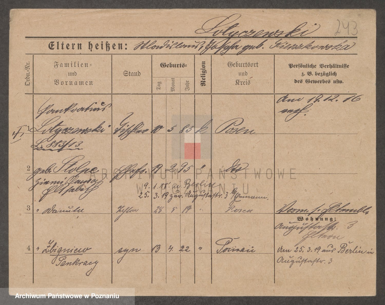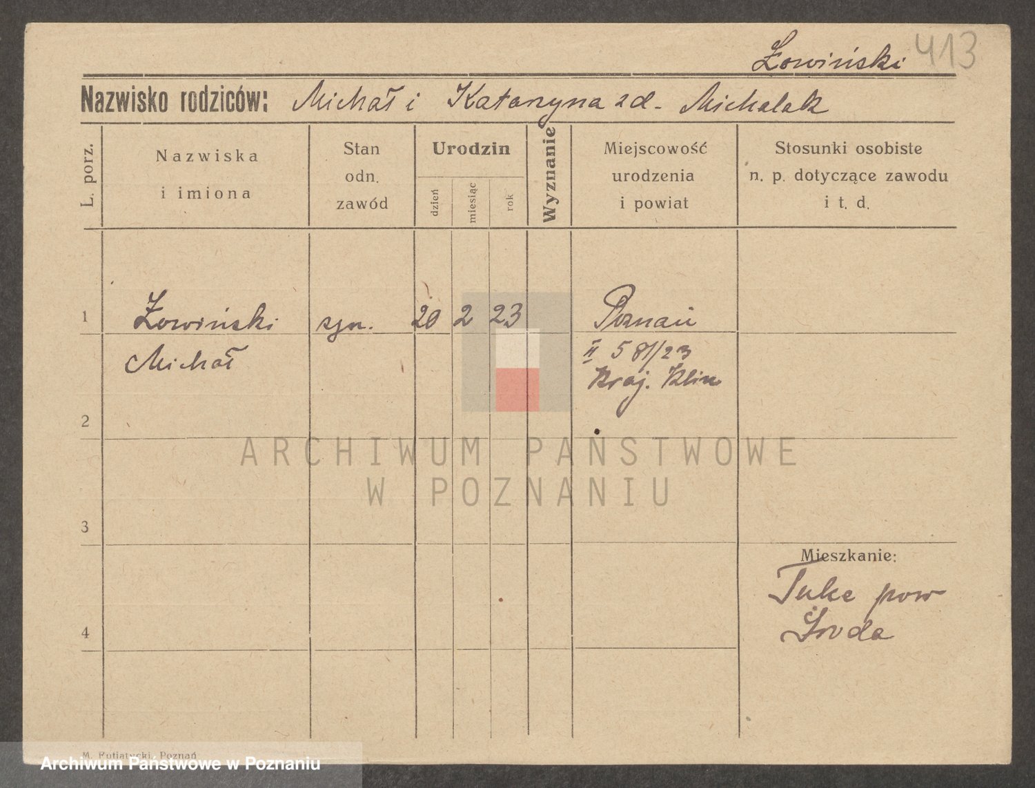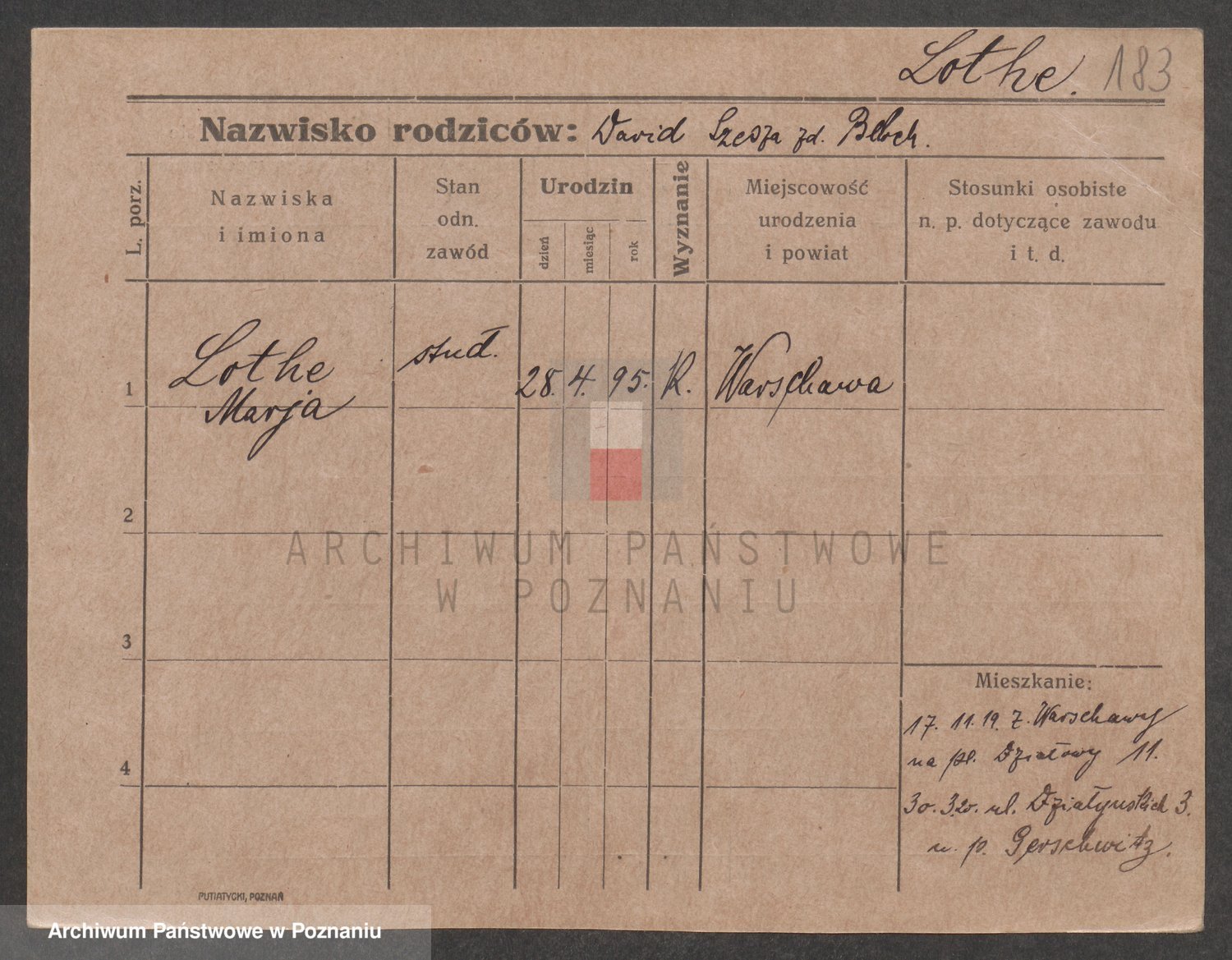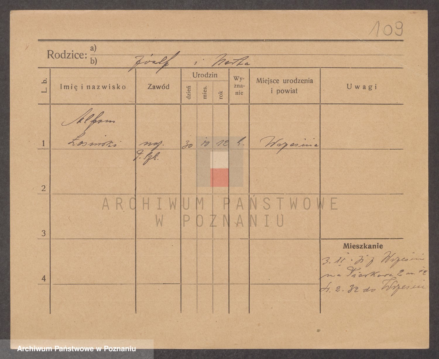 Podgląd karty osobowej dostępny jest po kliknięciu na nazwisko lub ikonkę karty. Można dokonywać powiększenia (ikony na górze) lub przechodzić między kolejnymi skanami (strzałki po bokach).