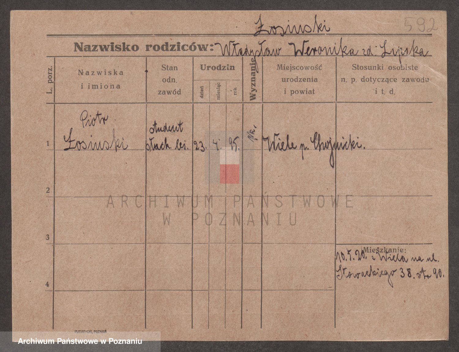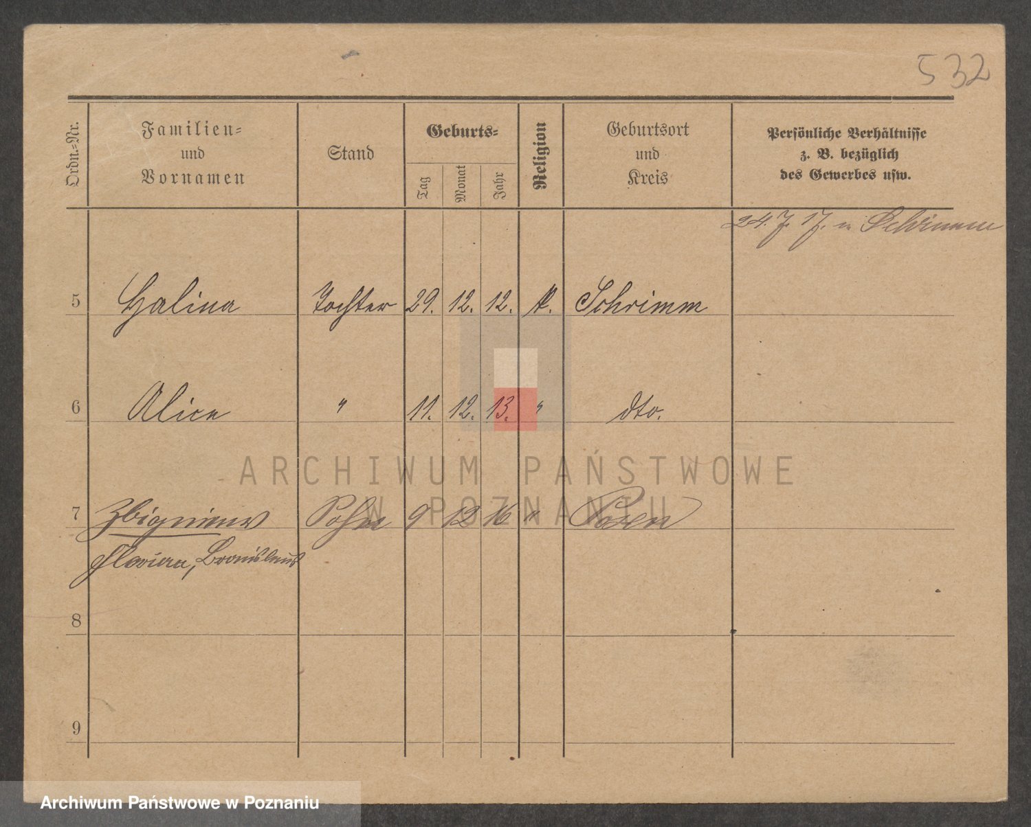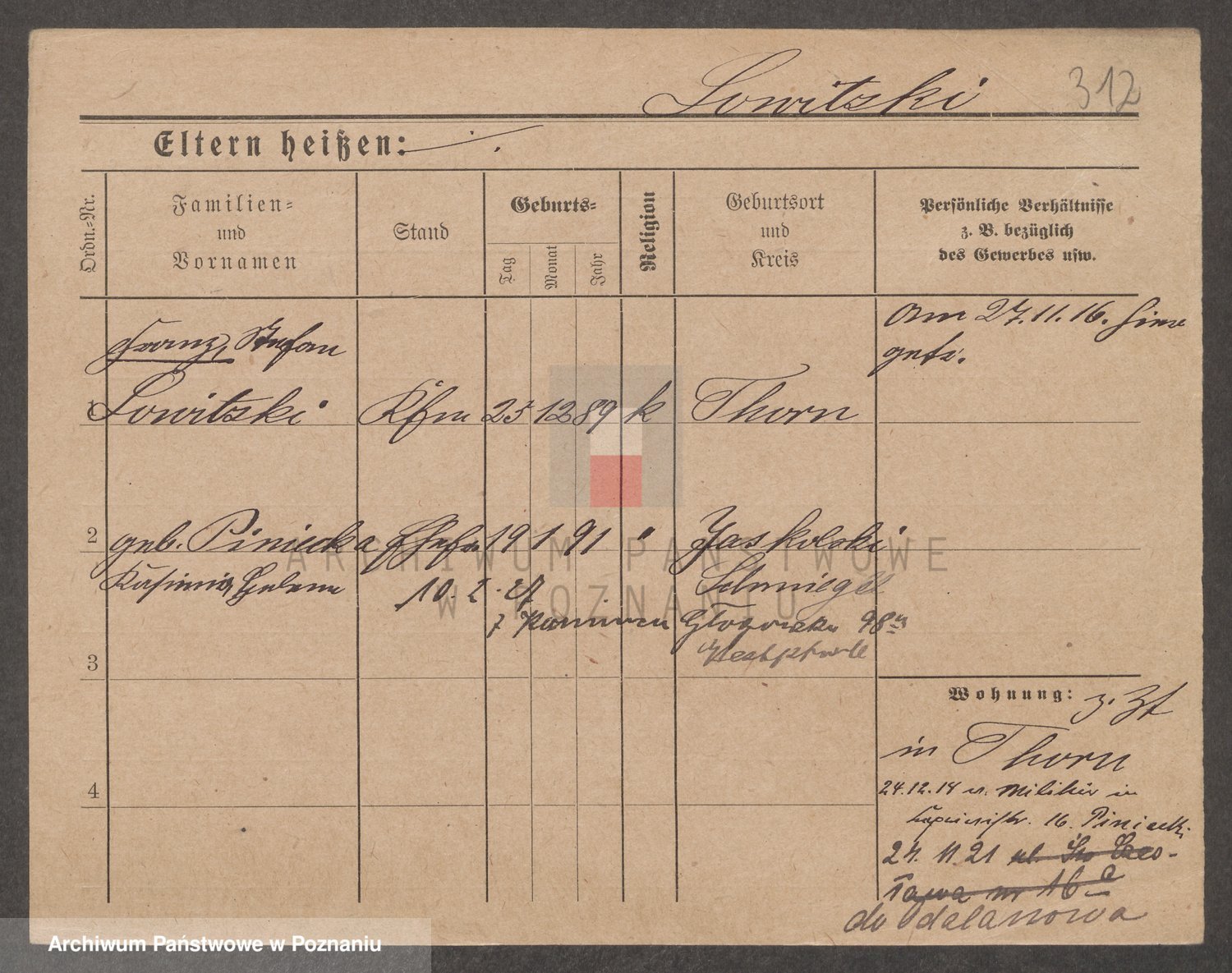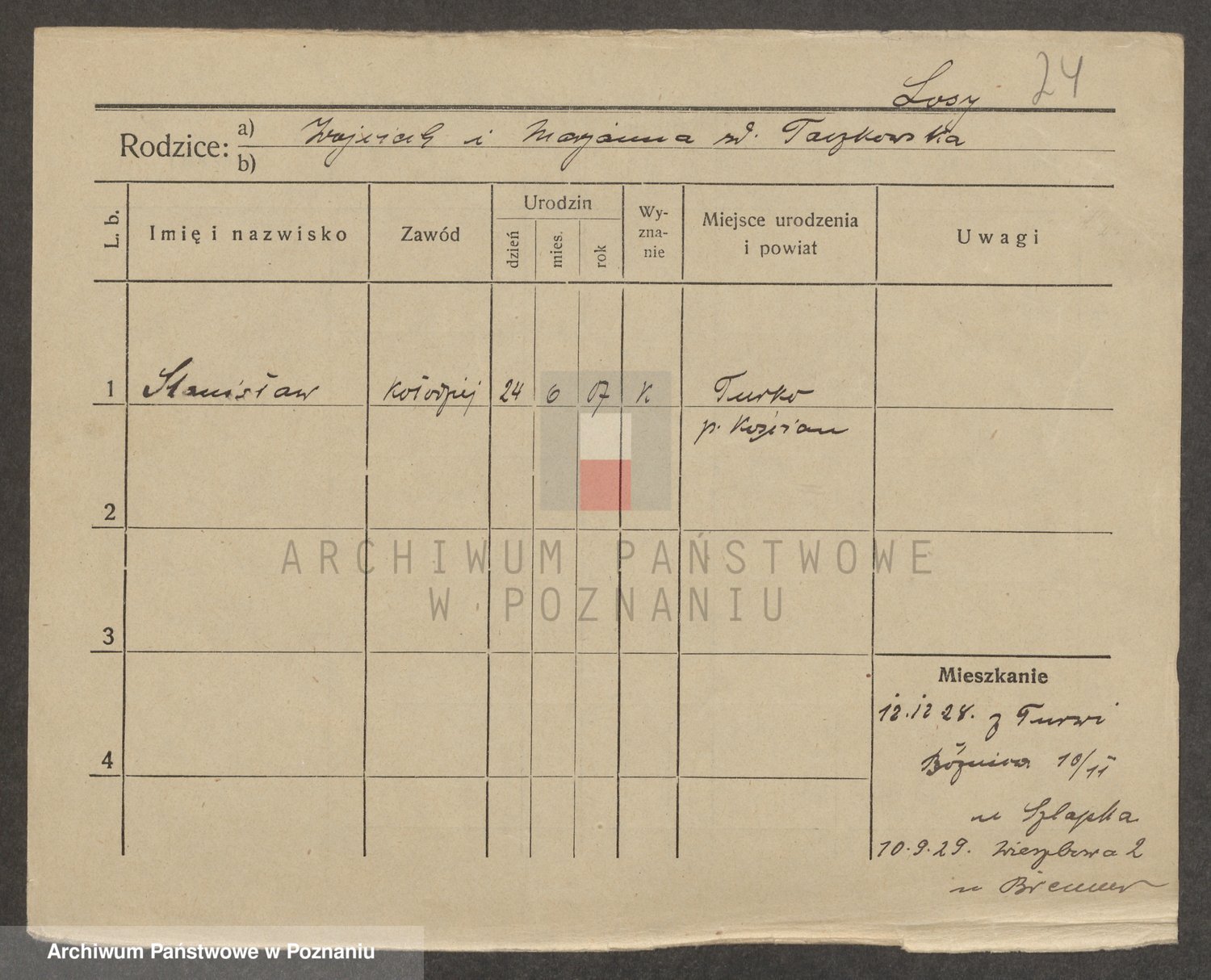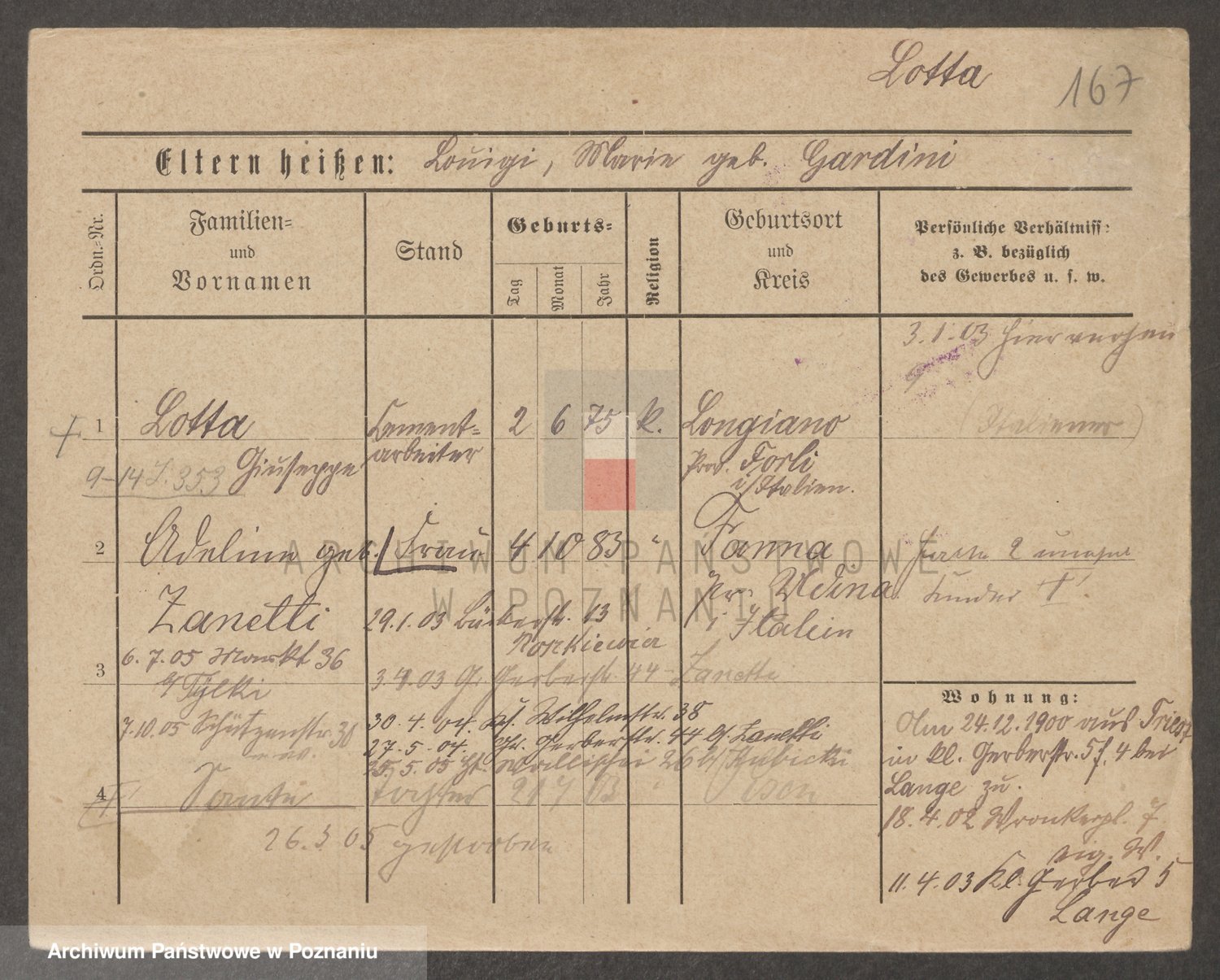 Podgląd karty osobowej dostępny jest po kliknięciu na nazwisko lub ikonkę karty. Można dokonywać powiększenia (ikony na górze) lub przechodzić między kolejnymi skanami (strzałki po bokach).