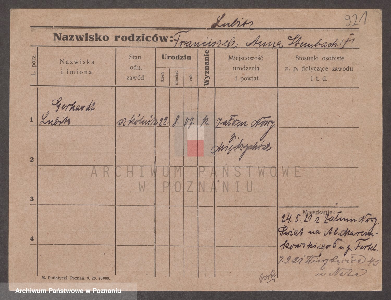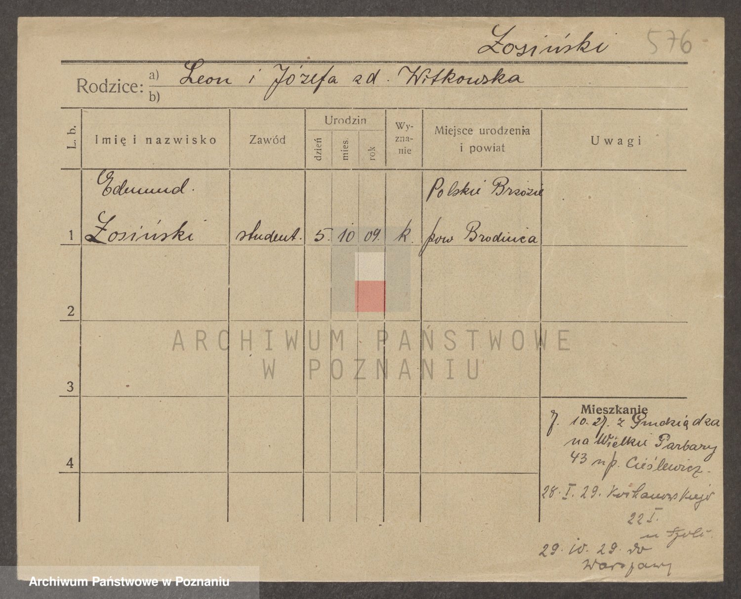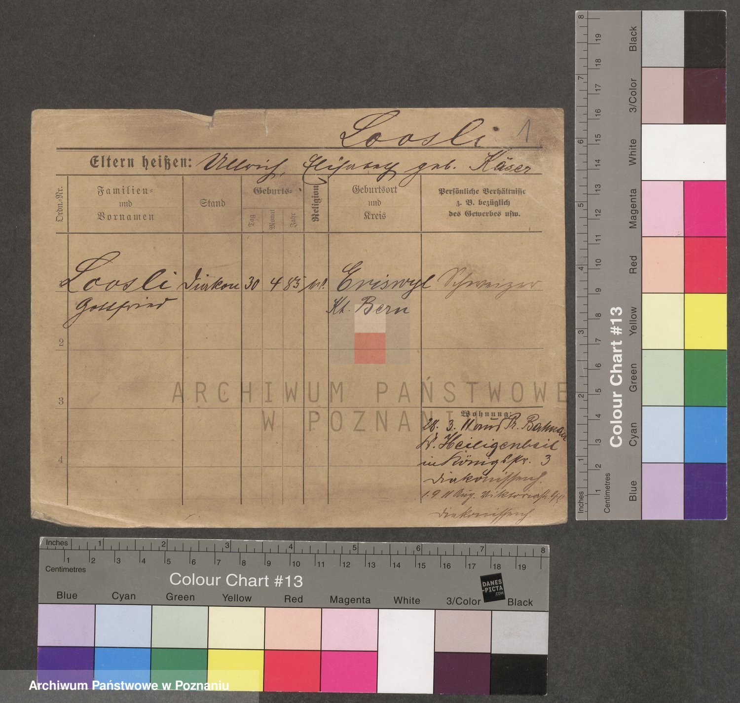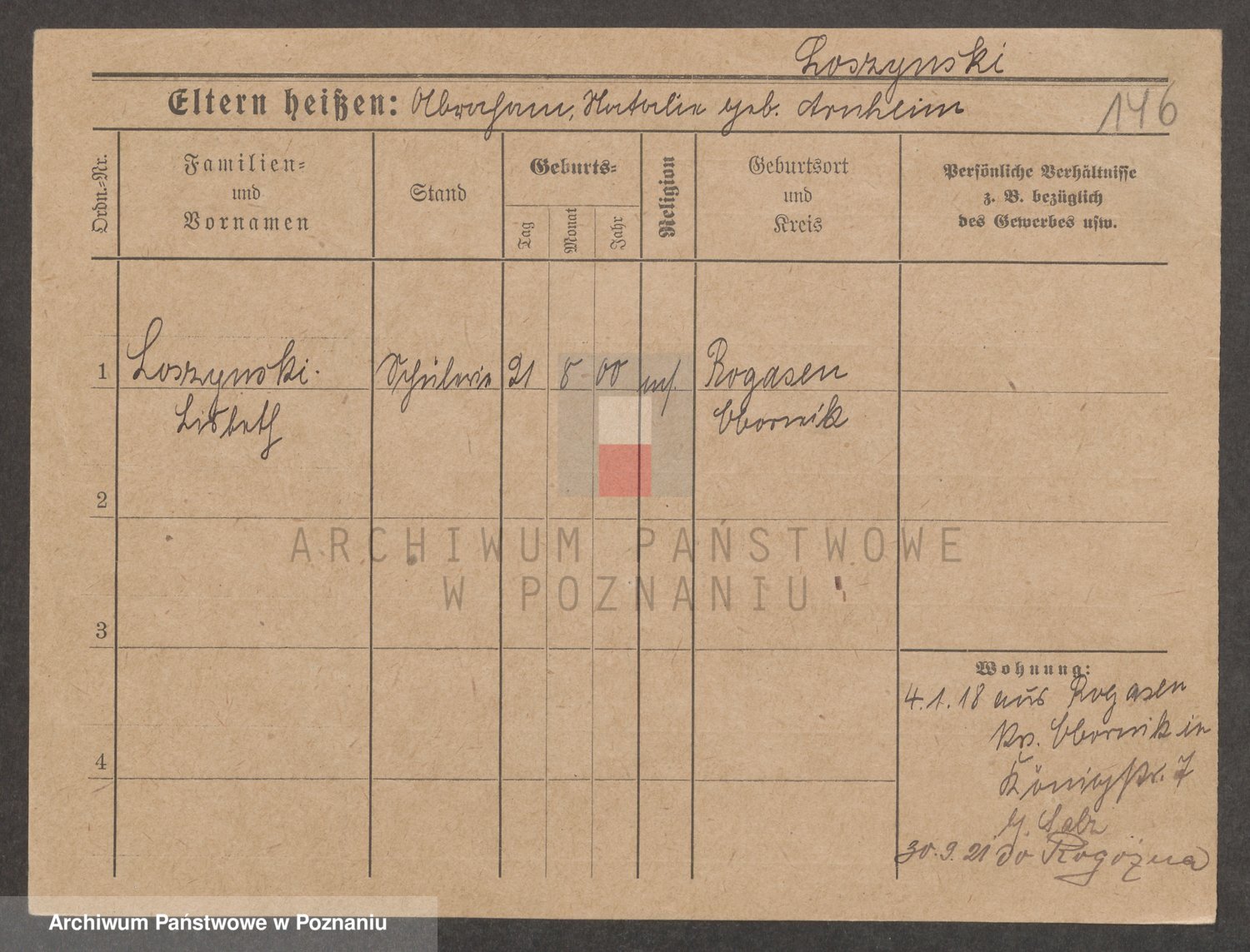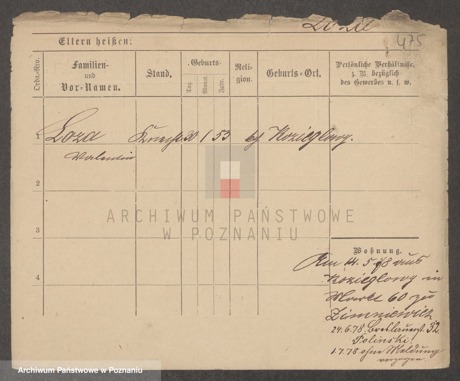 Podgląd karty osobowej dostępny jest po kliknięciu na nazwisko lub ikonkę karty. Można dokonywać powiększenia (ikony na górze) lub przechodzić między kolejnymi skanami (strzałki po bokach).