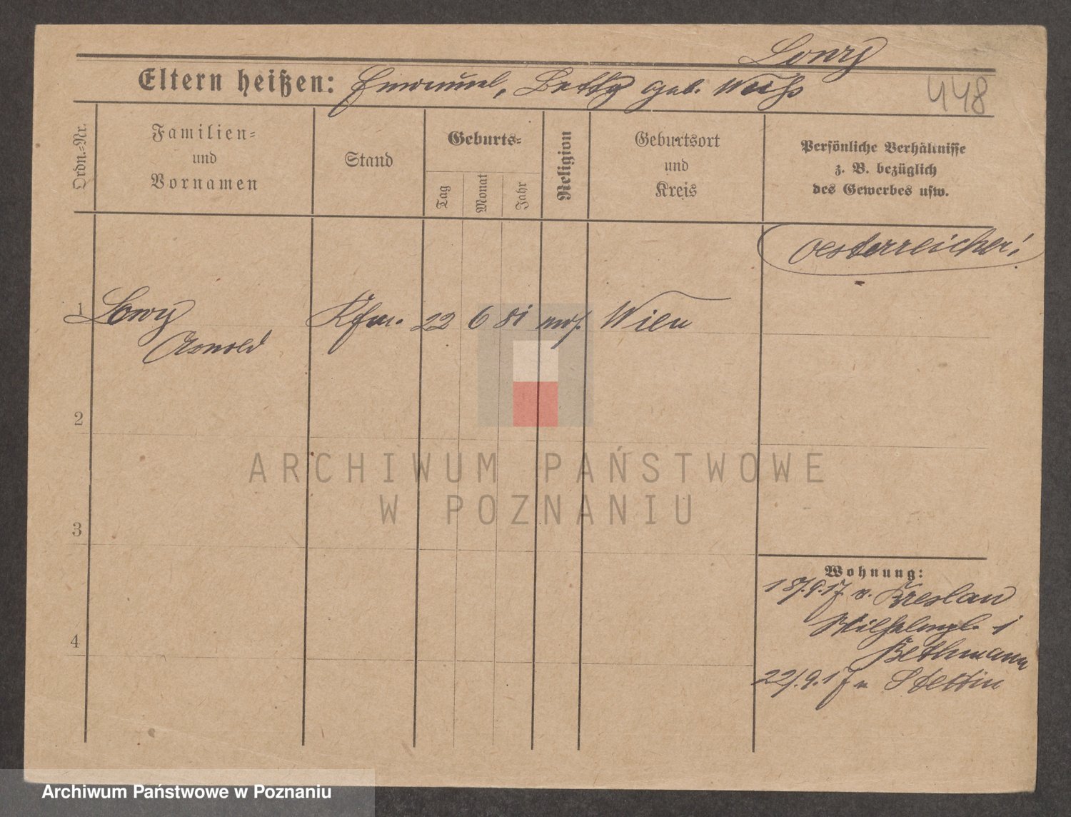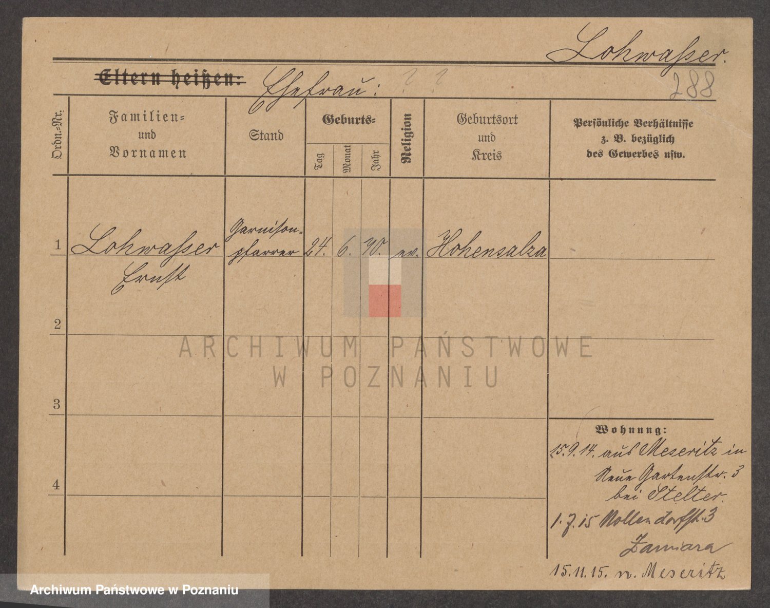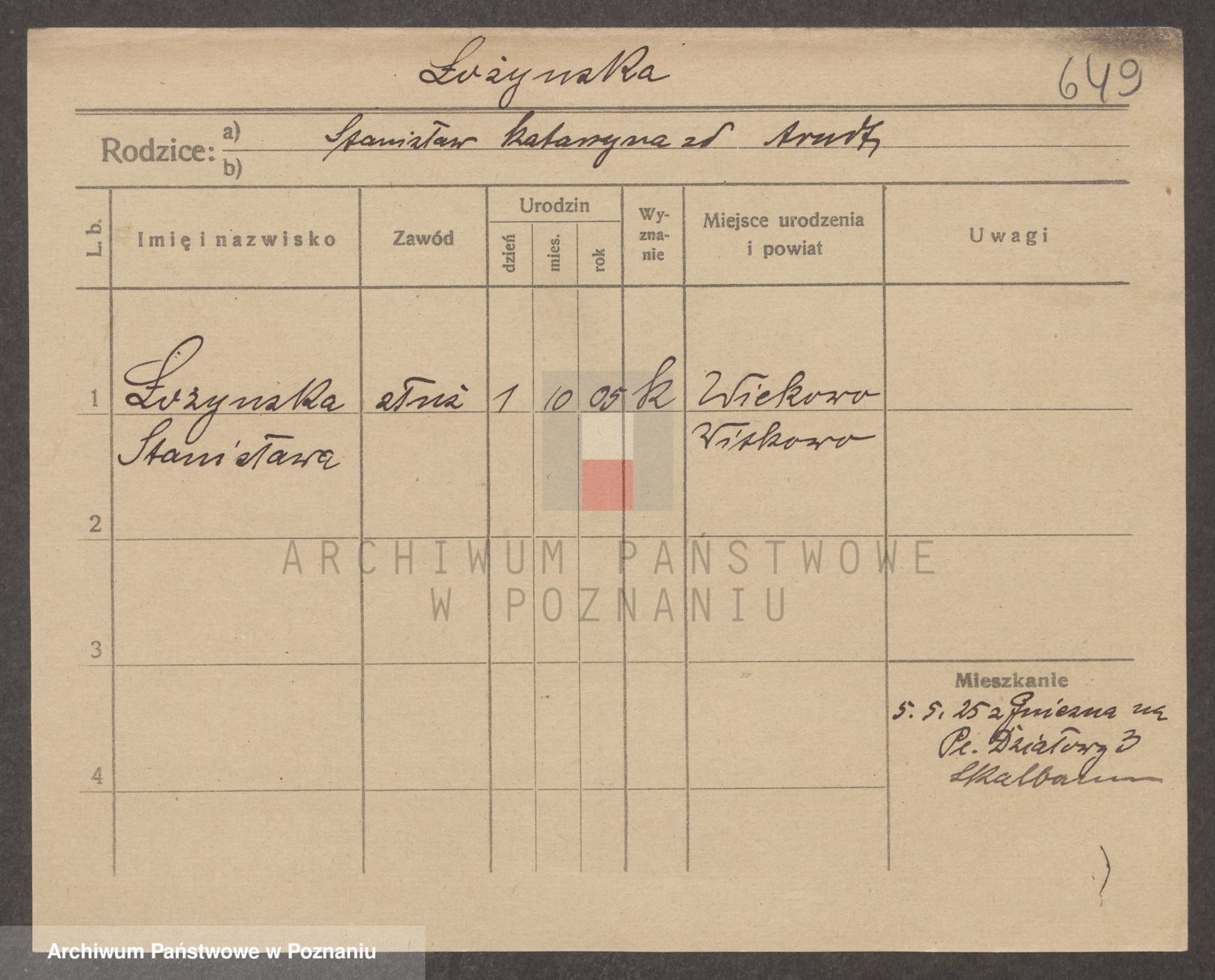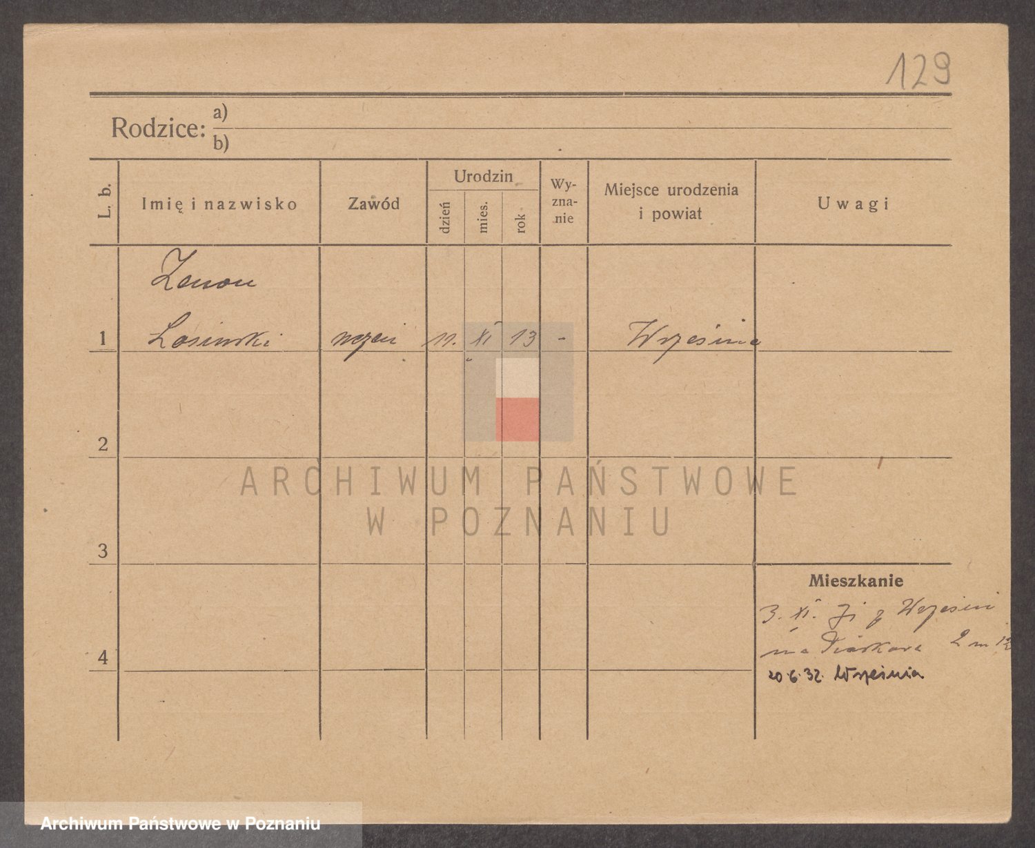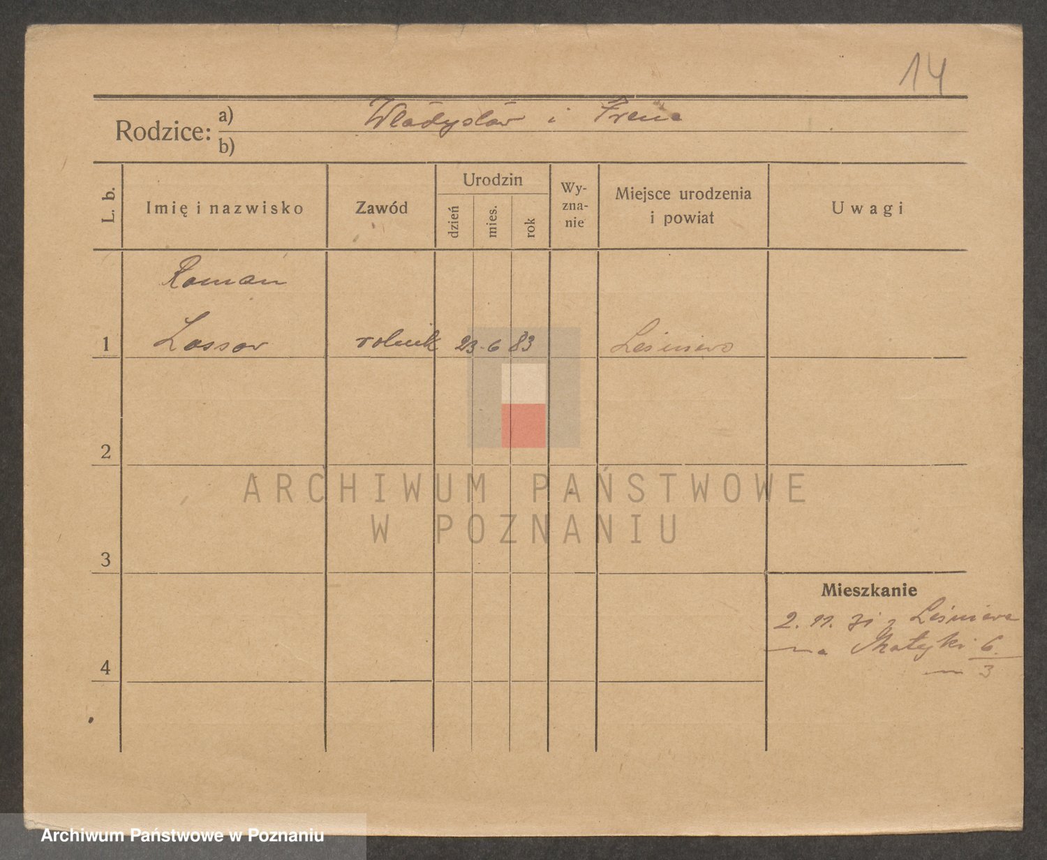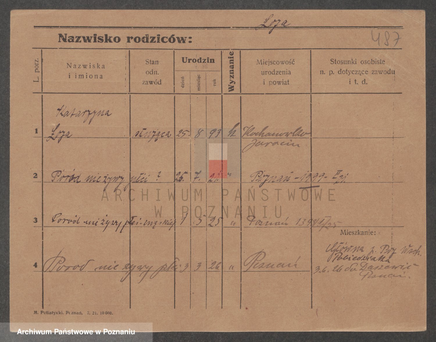 Podgląd karty osobowej dostępny jest po kliknięciu na nazwisko lub ikonkę karty. Można dokonywać powiększenia (ikony na górze) lub przechodzić między kolejnymi skanami (strzałki po bokach).
