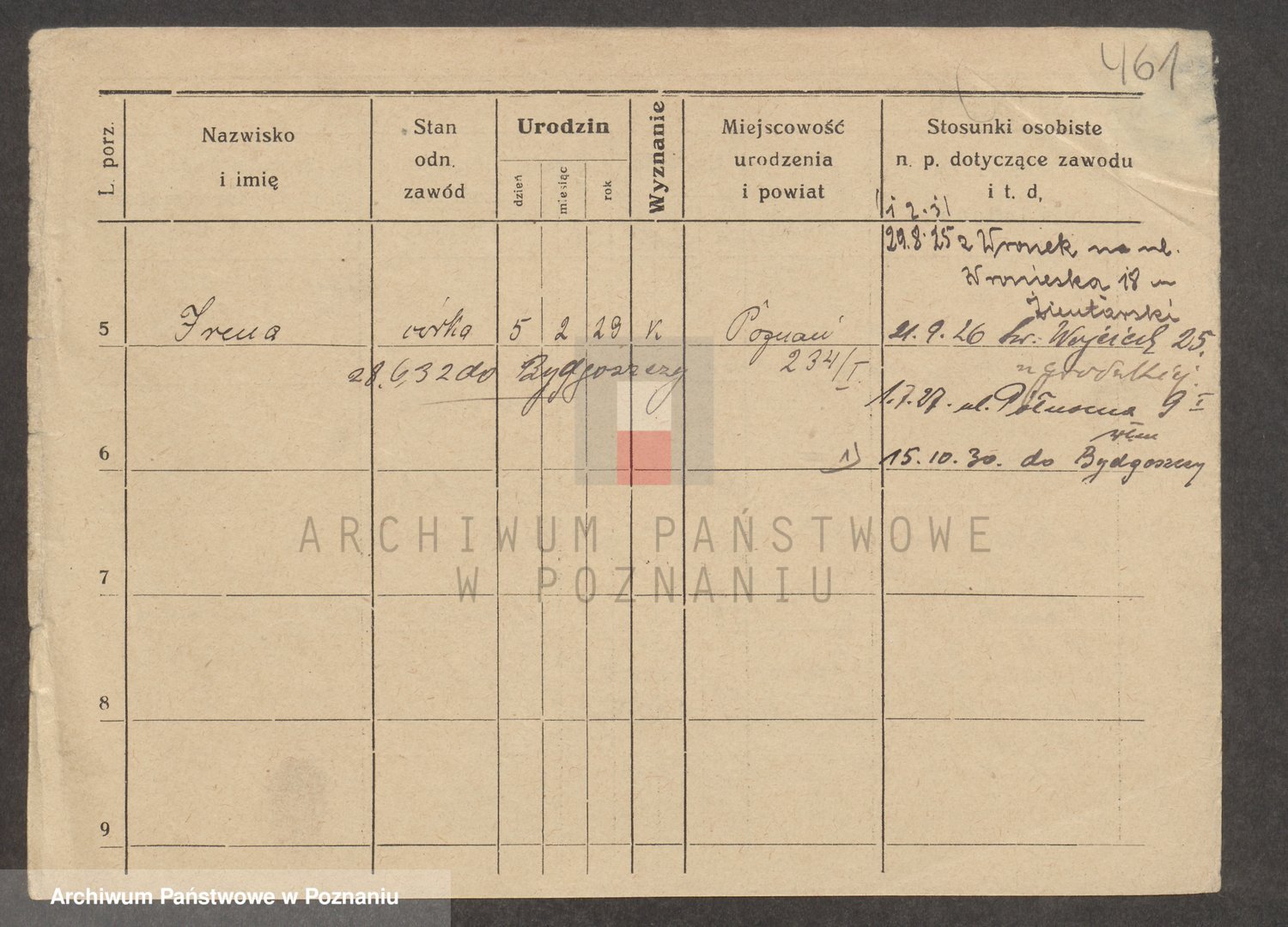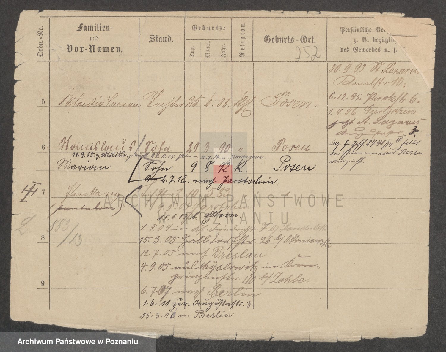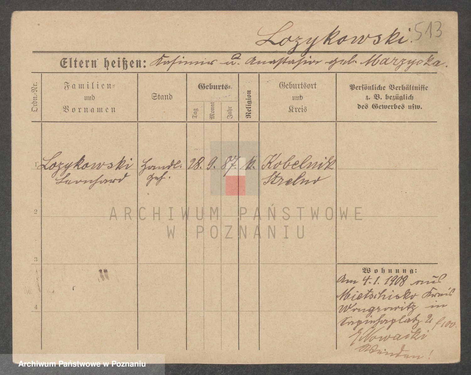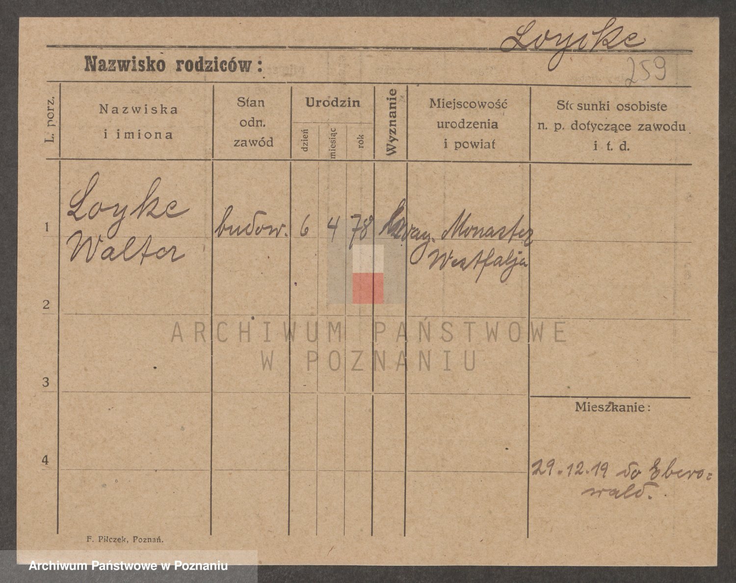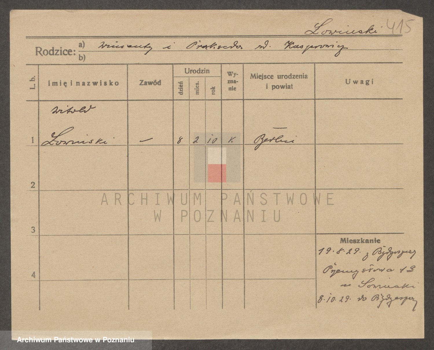 Podgląd karty osobowej dostępny jest po kliknięciu na nazwisko lub ikonkę karty. Można dokonywać powiększenia (ikony na górze) lub przechodzić między kolejnymi skanami (strzałki po bokach).