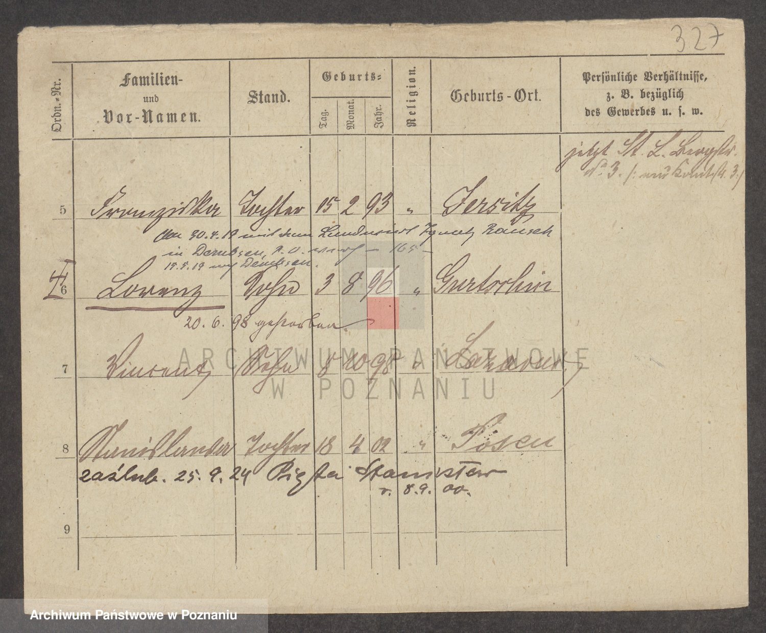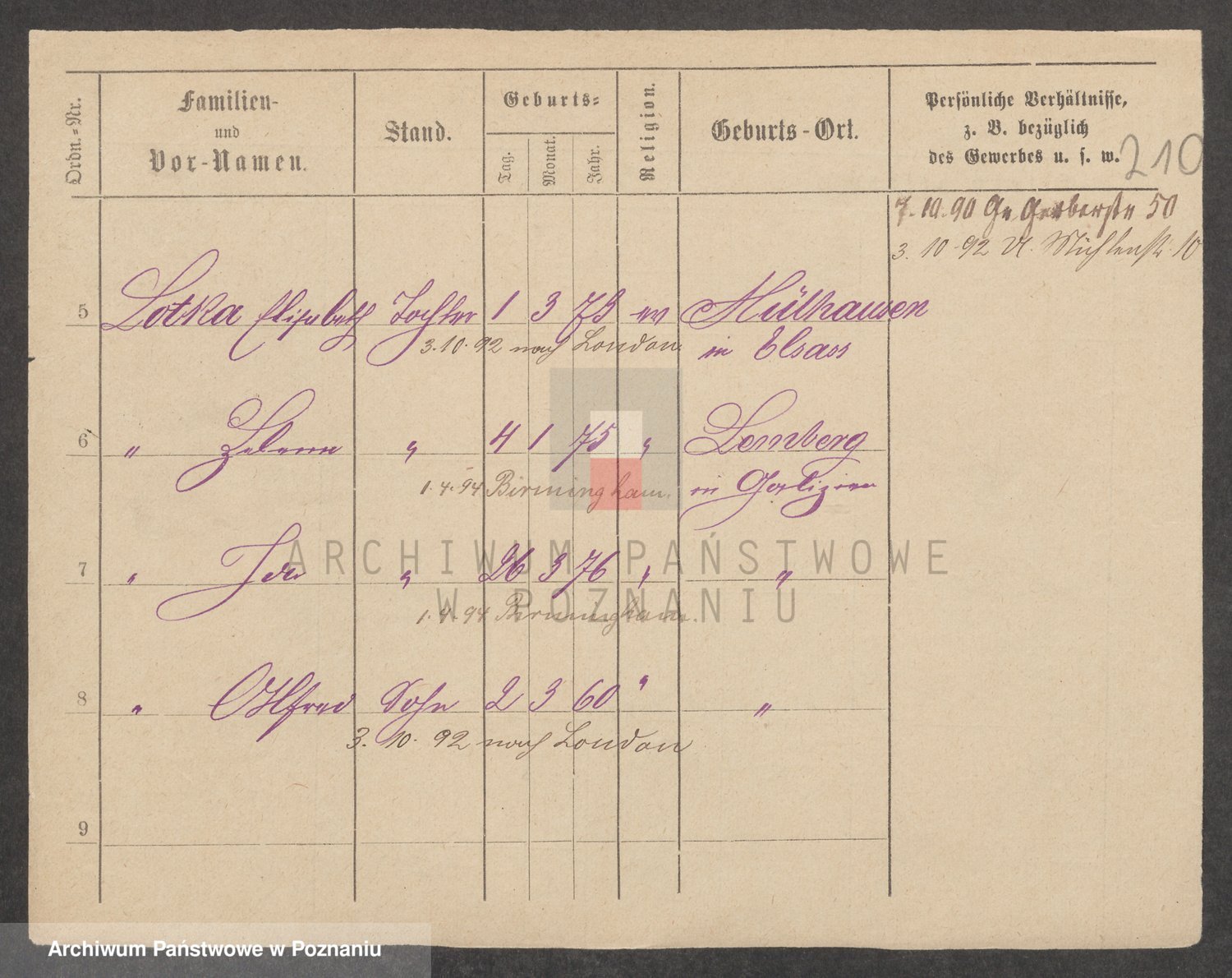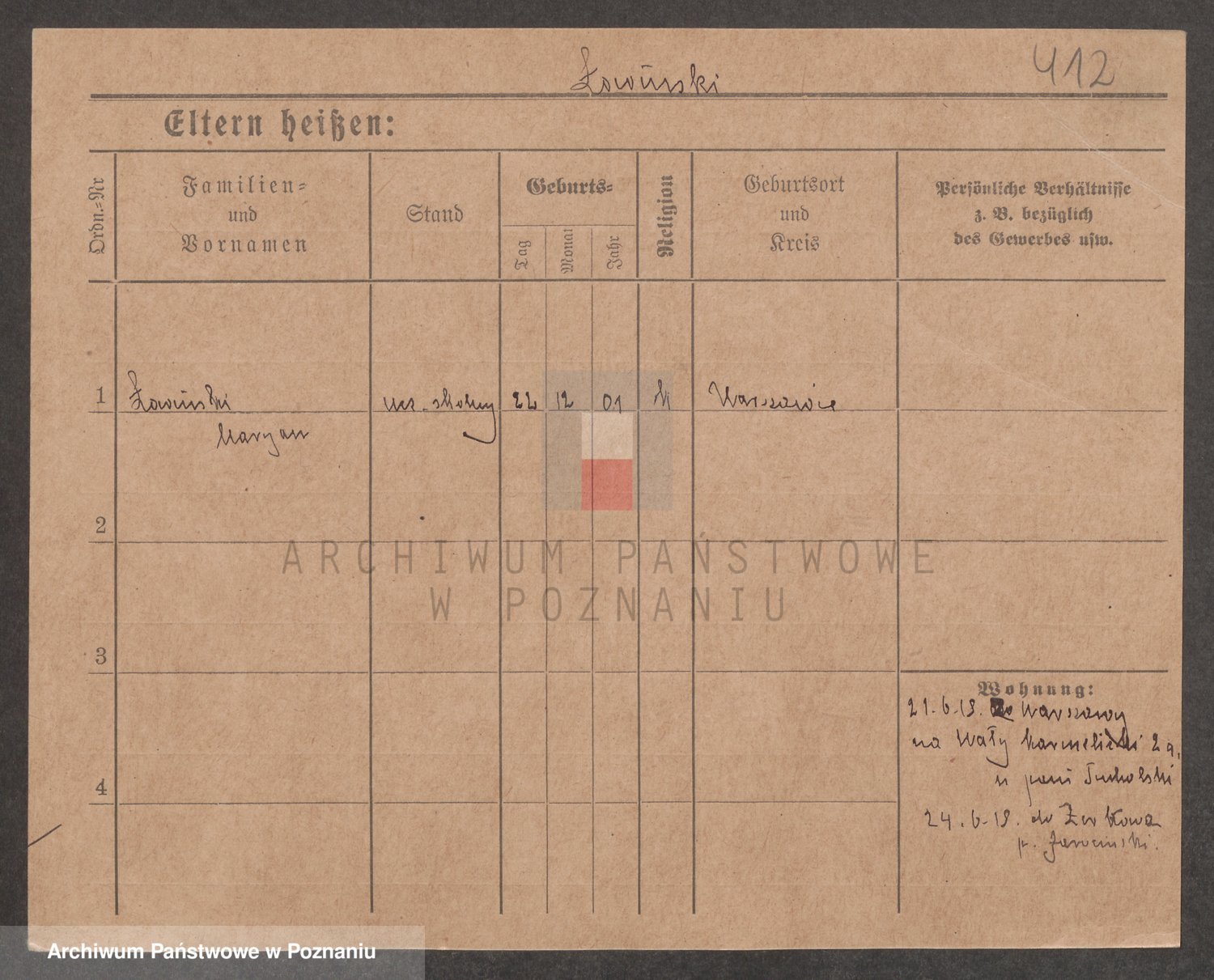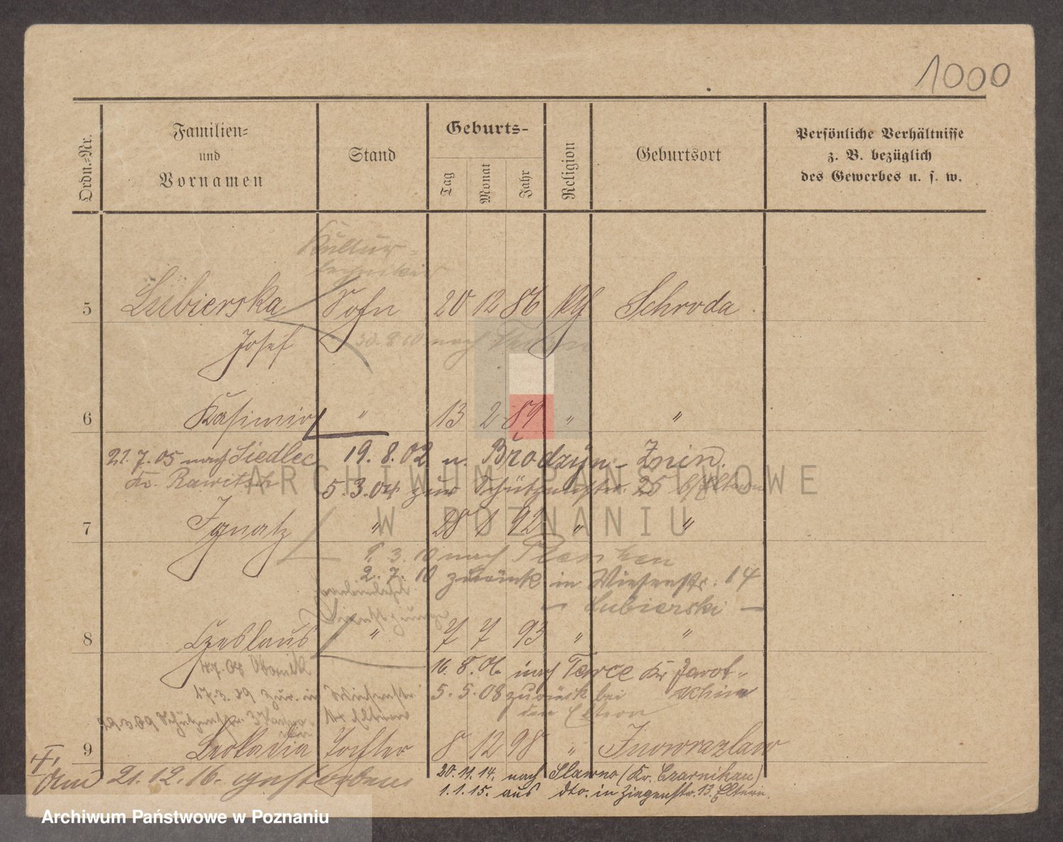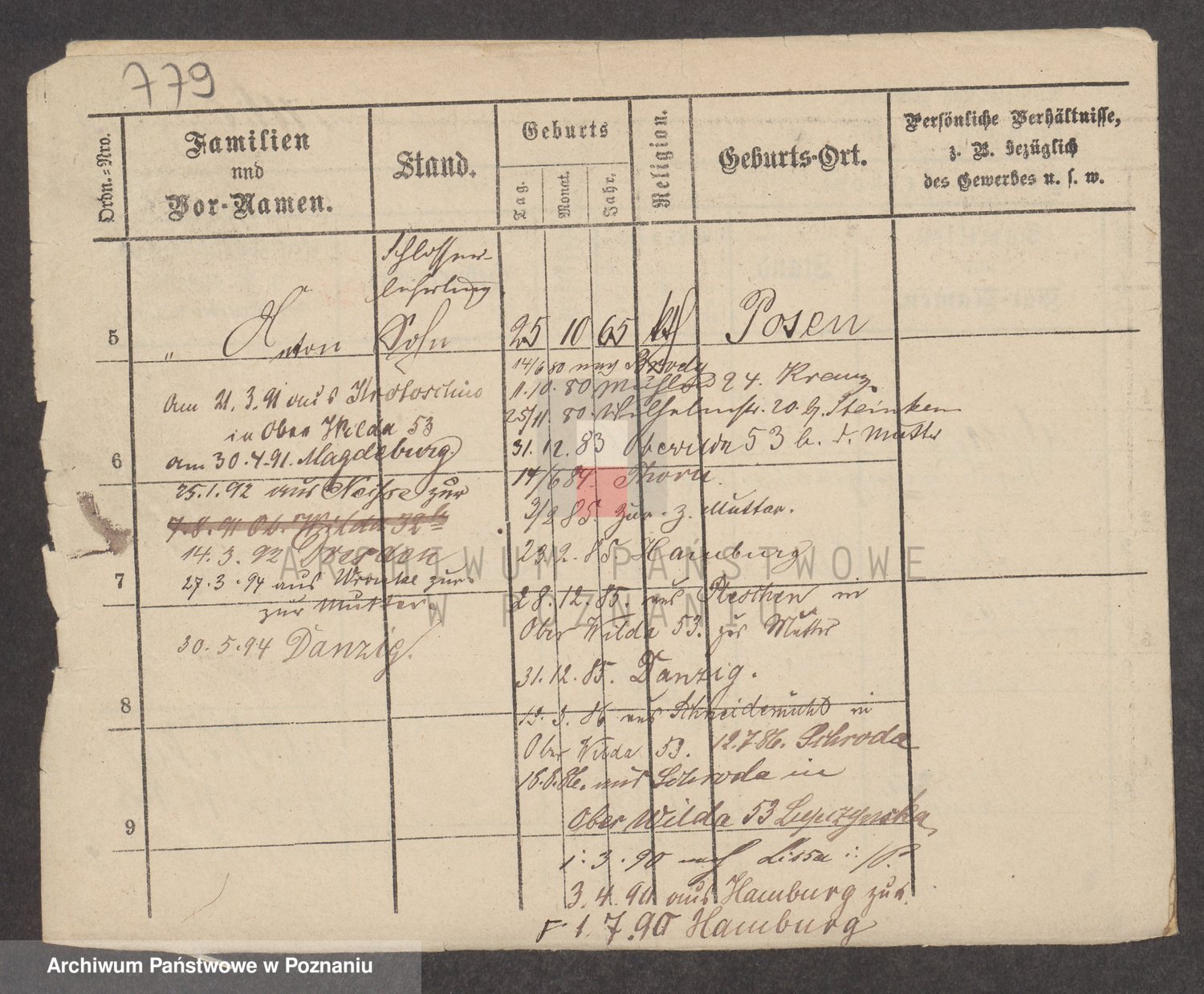 Podgląd karty osobowej dostępny jest po kliknięciu na nazwisko lub ikonkę karty. Można dokonywać powiększenia (ikony na górze) lub przechodzić między kolejnymi skanami (strzałki po bokach).
